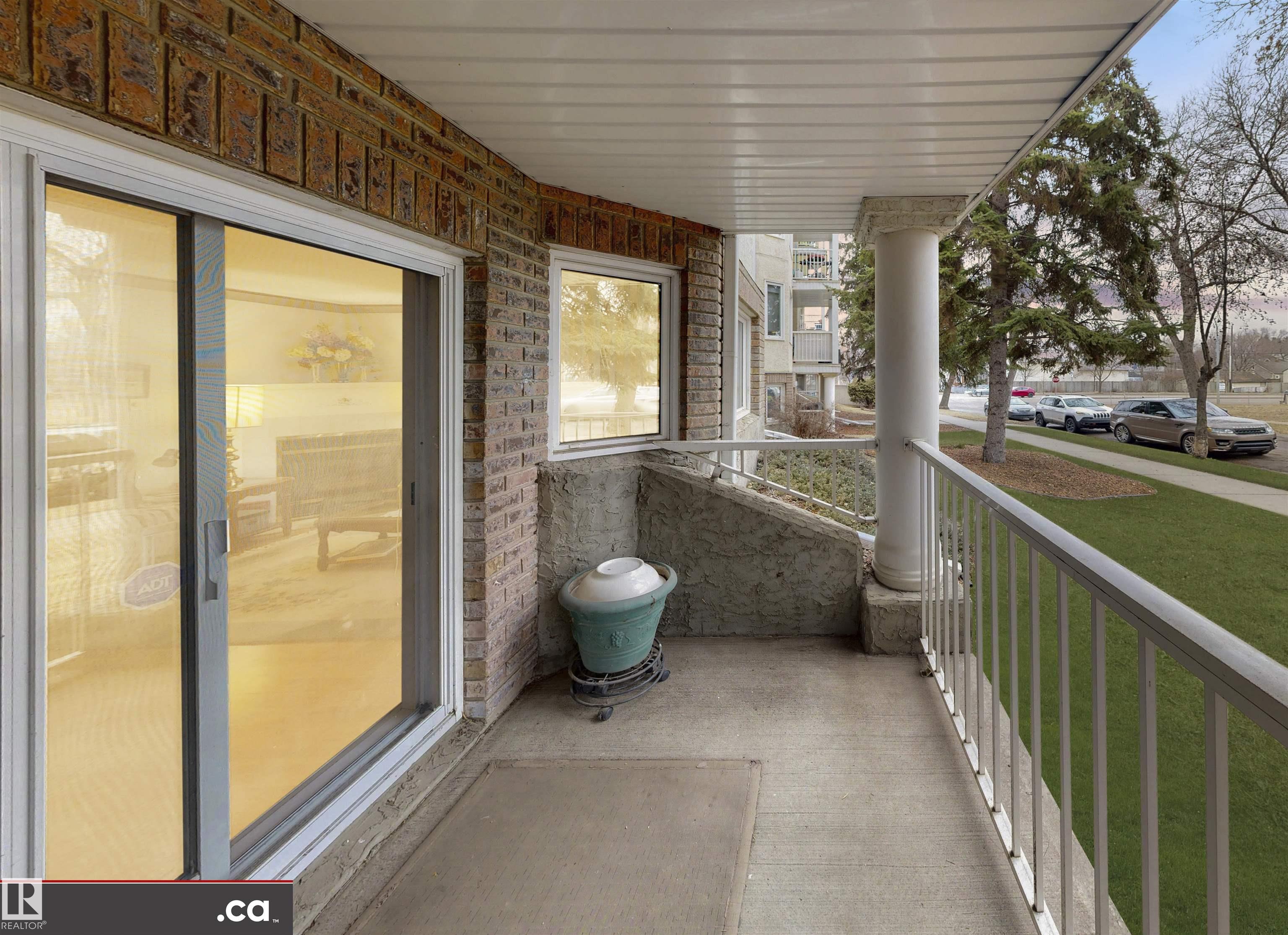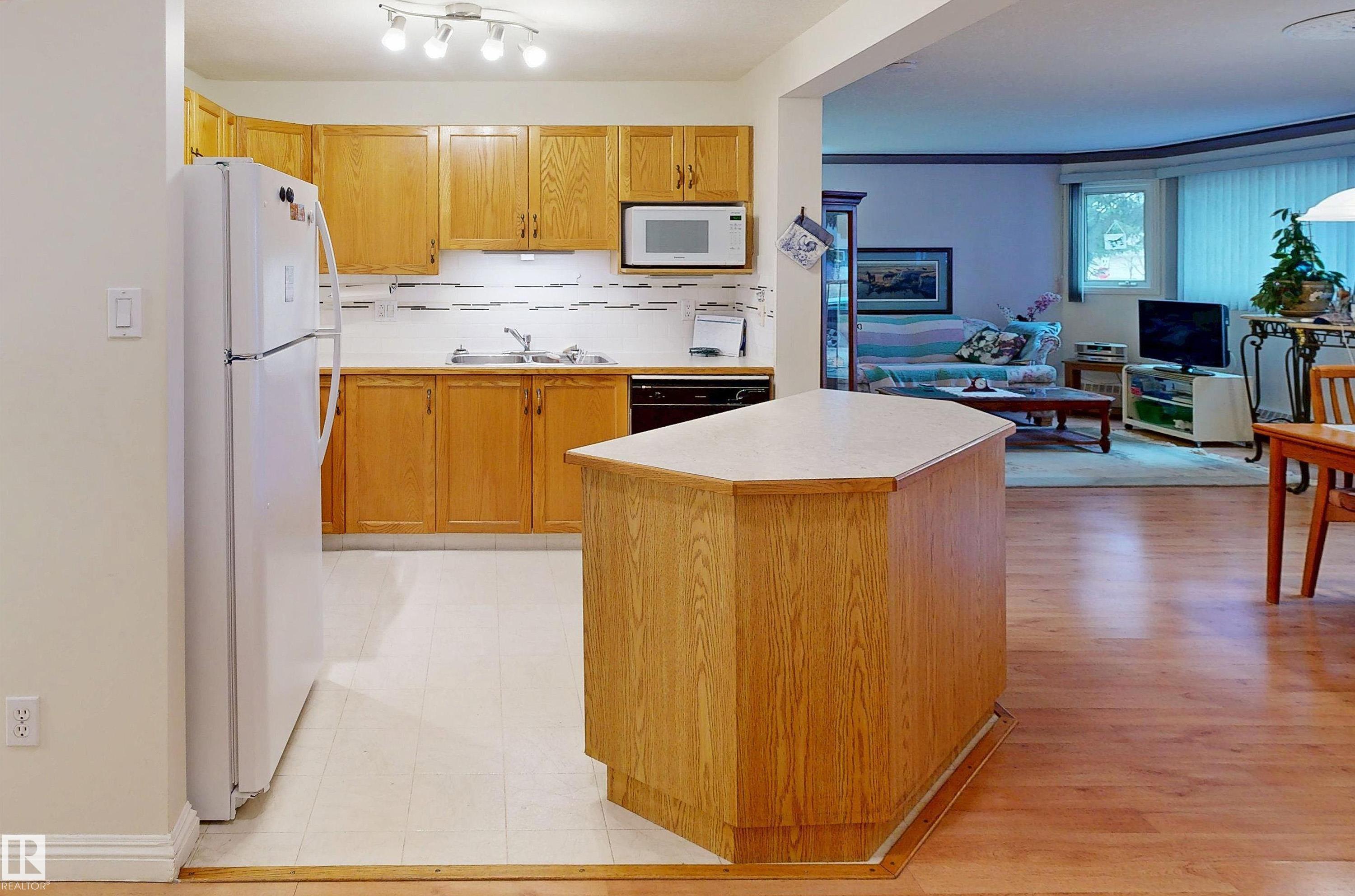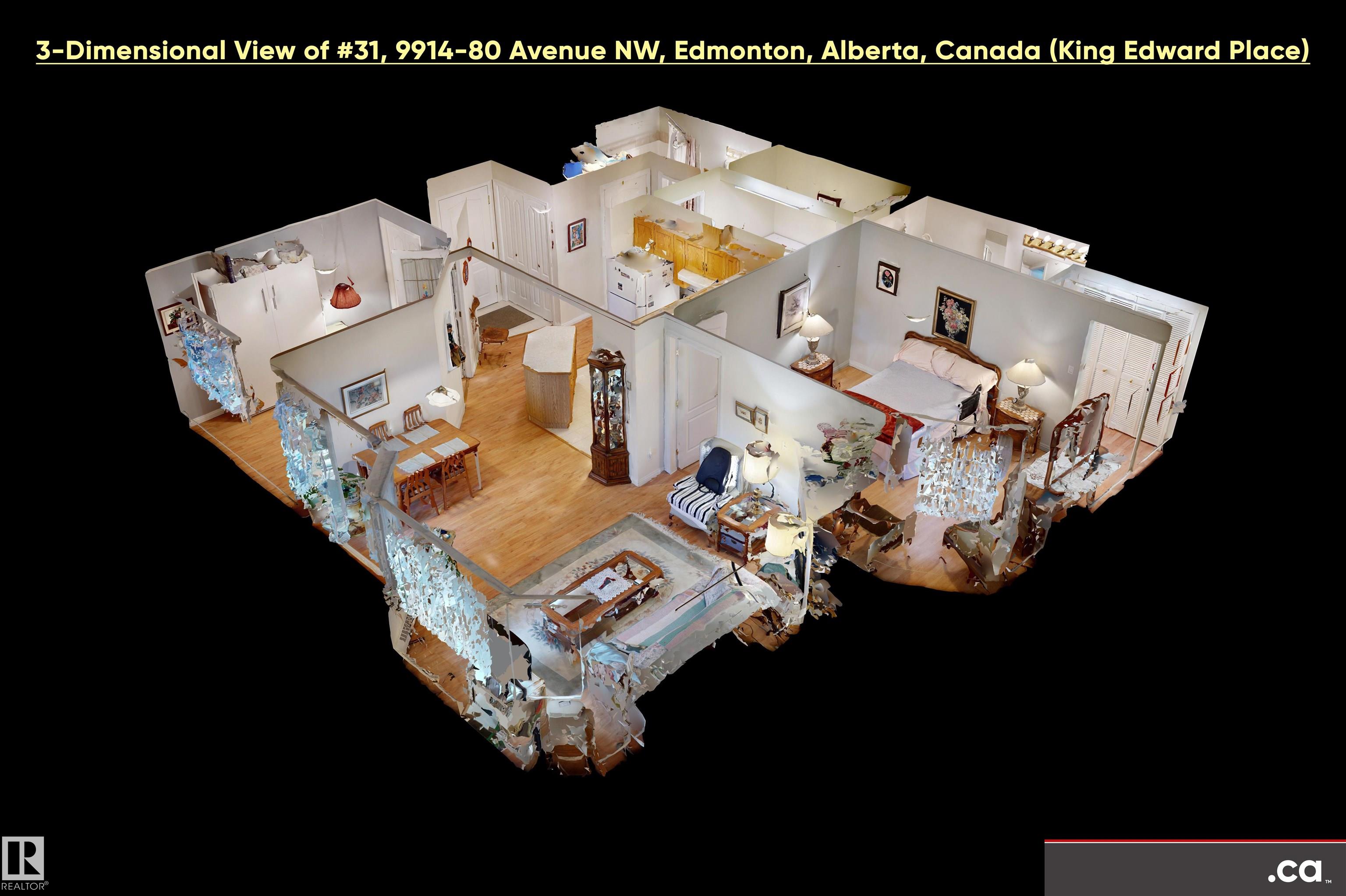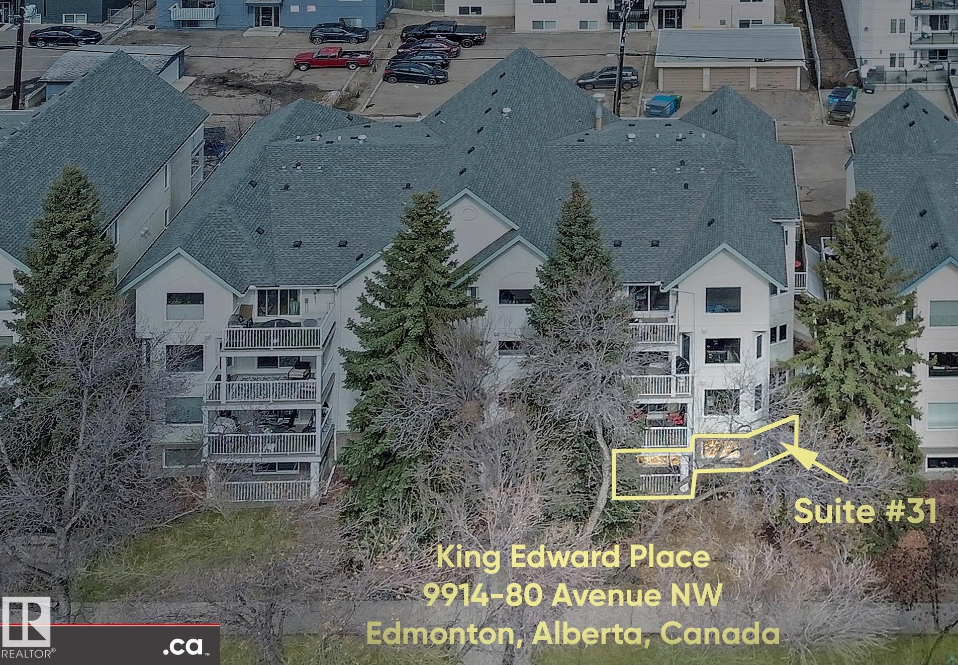 * ATTENTION SENIORS, RESTRICTED-MOBILITY BUYERS, PROFESSIONALS, STUDENTS, & INVESTORS: EXCELLENT CONDITION MAIN LEVEL UNIT NOW AVAILABLE IN KING EDWARD PLACE! A palette of suite features: * Very nice corner kitchen with island & white appliances * Spacious dinette accessing South-facing balcony * Living room corner gas fireplace & bay window * Large-sized primary bedroom plus full en suite bath * 2nd guest bedroom / office with desk & Murphy bed * Full 2nd bath beside medium-sized laundry / storage room. KING EDWARD PLACE is a low-rise apartment condominium complex divided into four separate buildings: * Suite #31 is adjacent to front entrance, lobby area, & mailboxes * Included: assigned parking stall #66 & storage locker #31 * Condo documents package on order for Buyer review * Restricted to Adult Living & No Pets for a quieter & tidier building * Prof. managed by KDM Mgmt. Located SE Edmonton -- Ritchie close to 99 St., Whyte Ave., transit, U of A, shopping, Downtown, recreation, & River Valley Parks!!