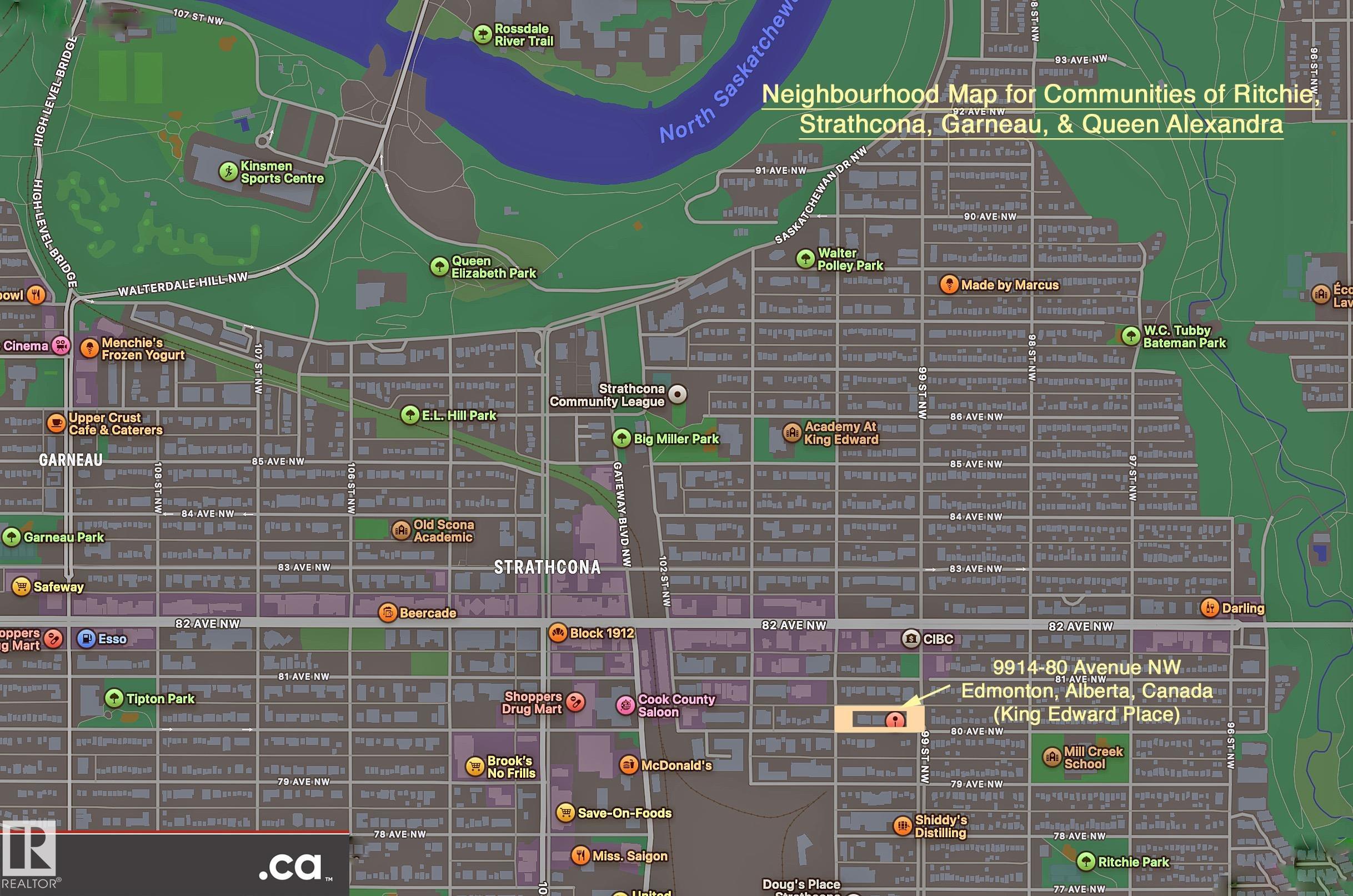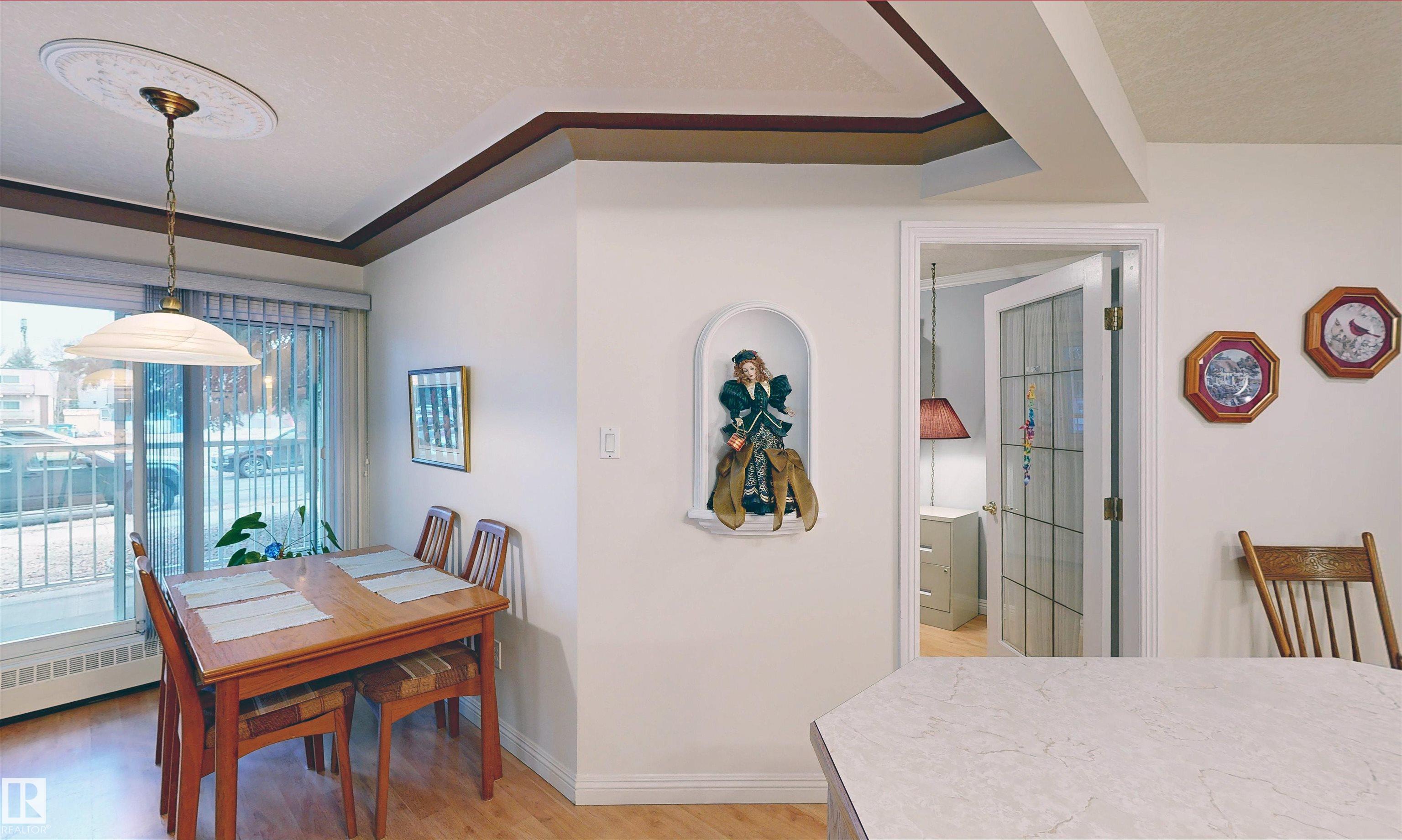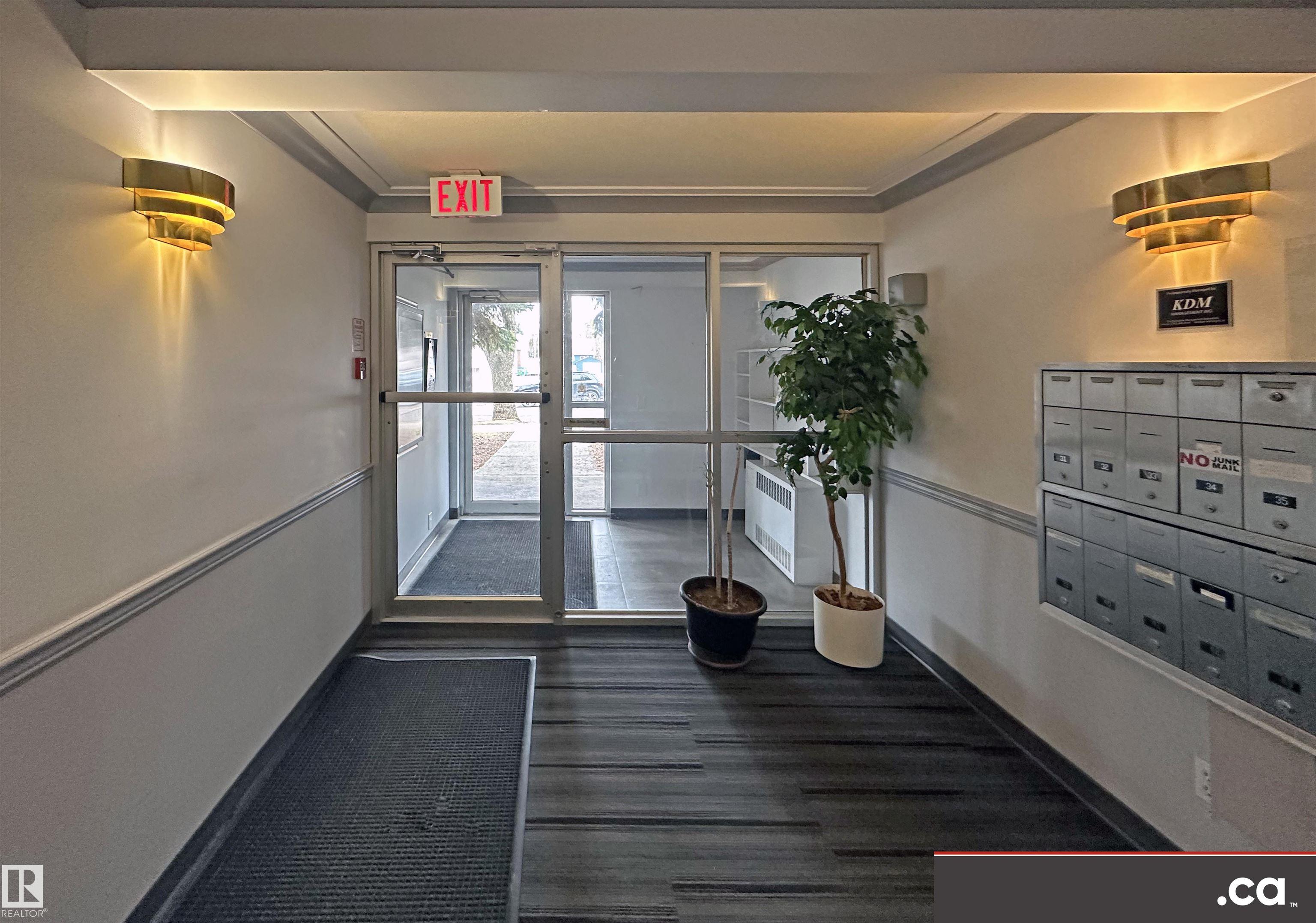 * ATTENTION SENIORS, RESTRICTED-MOBILITY BUYERS, PROFESSIONALS, STUDENTS, & INVESTORS: EXCELLENT CONDITION MAIN LEVEL UNIT NOW AVAILABLE IN KING EDWARD PLACE! A palette of suite features: * Very nice corner kitchen with island & white appliances * Spacious dinette accessing South-facing balcony * Living room corner gas fireplace & bay window * Large-sized primary bedroom plus full en suite bath * 2nd guest bedroom / office with desk & Murphy bed * Full 2nd bath beside medium-sized laundry / storage room. KING EDWARD PLACE is a low-rise apartment condominium complex divided into four separate buildings: * Suite #31 is adjacent to front entrance, lobby area, & mailboxes * Included: assigned parking stall #66 & storage locker #31 * Condo documents package on order for Buyer review * Restricted to Adult Living & No Pets for a quieter & tidier building * Prof. managed by KDM Mgmt. Located SE Edmonton -- Ritchie close to 99 St., Whyte Ave., transit, U of A, shopping, Downtown, recreation, & River Valley Parks!!
