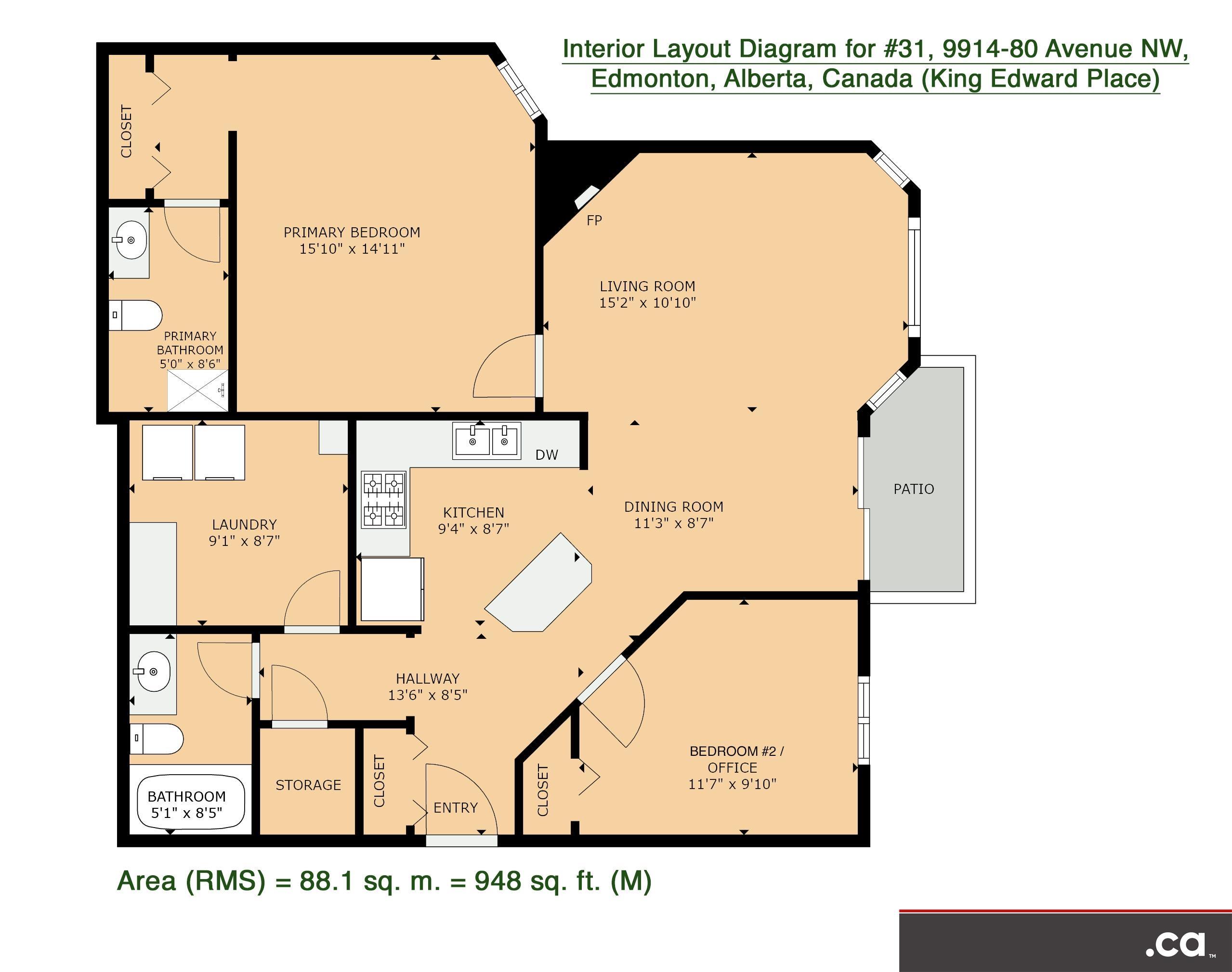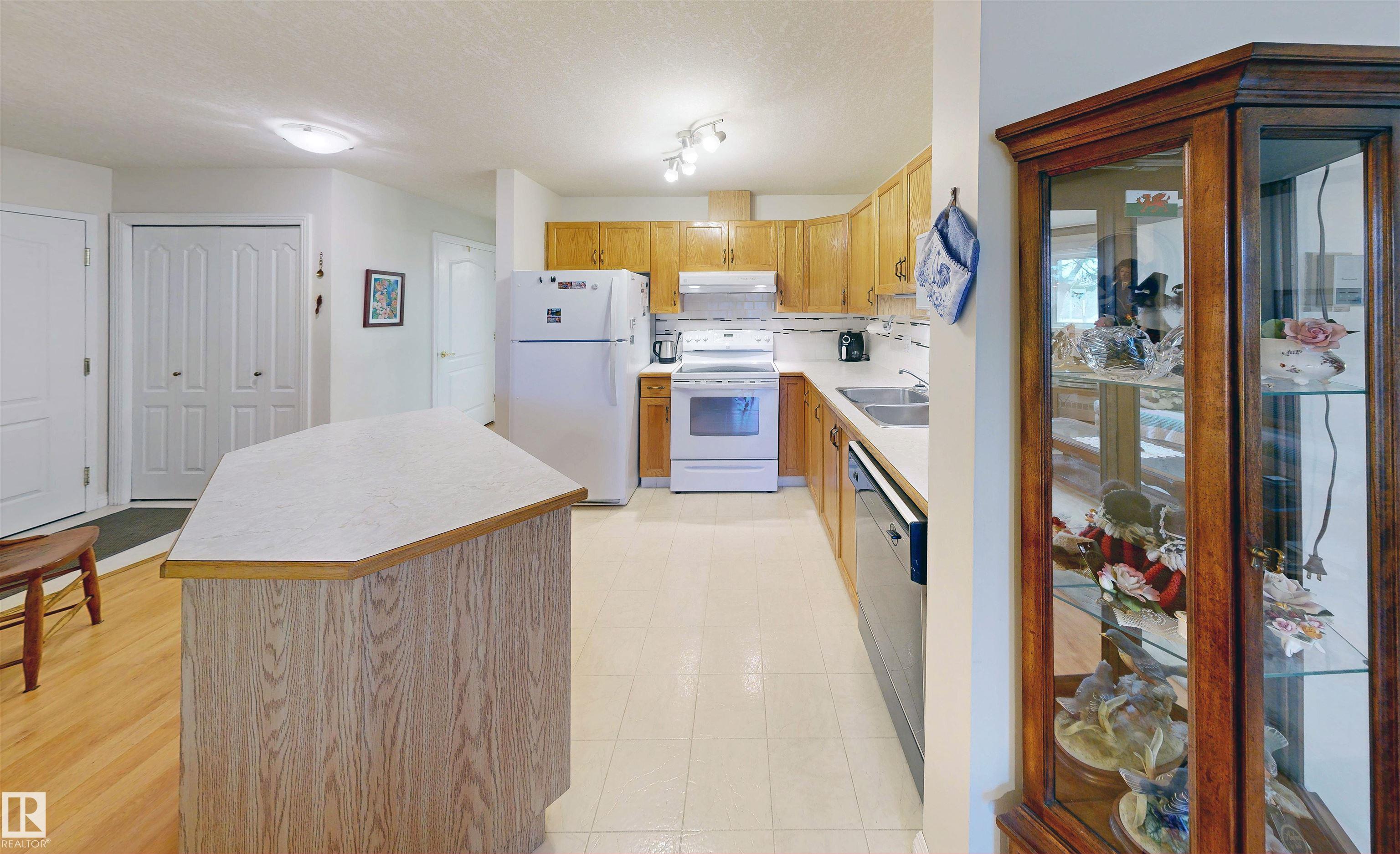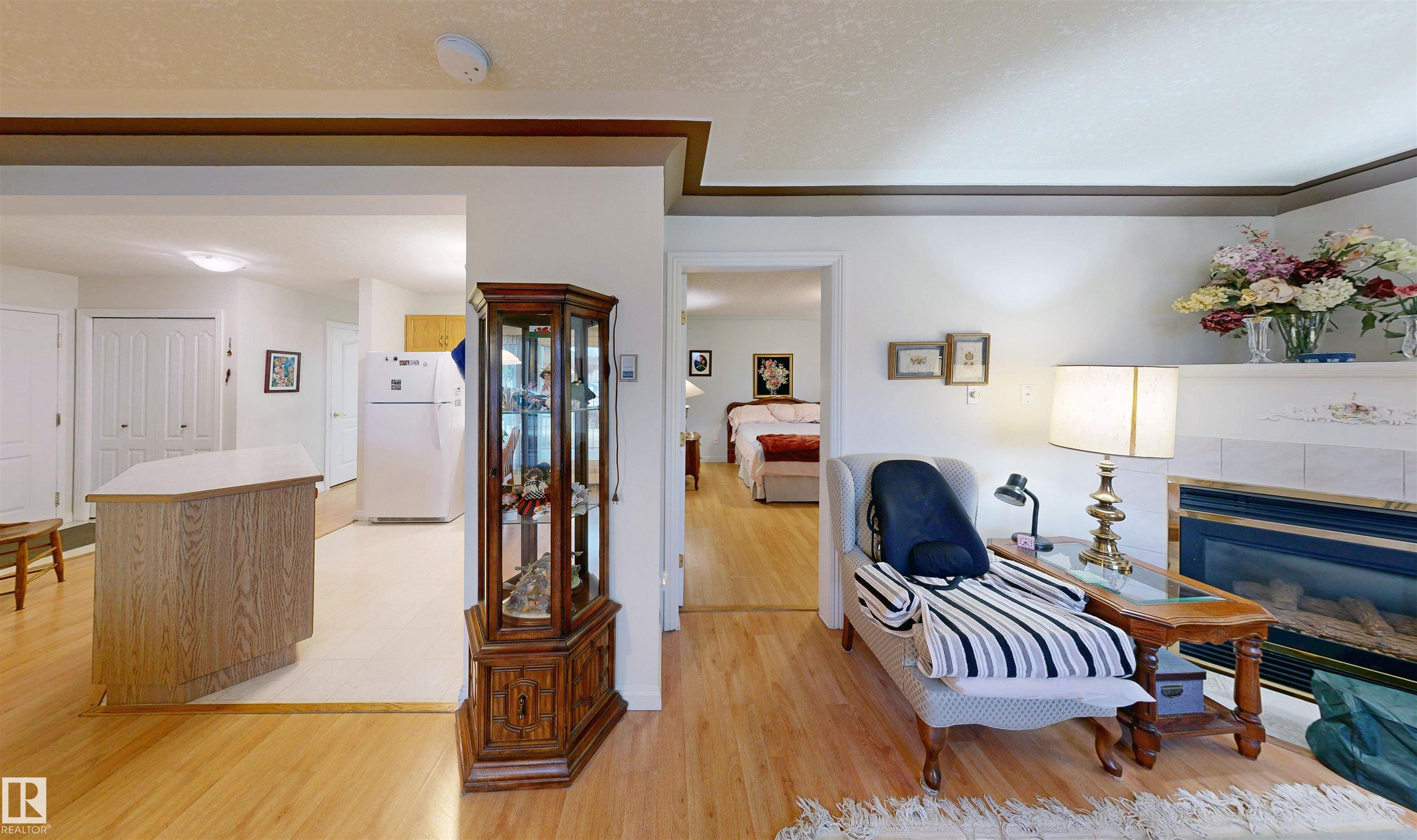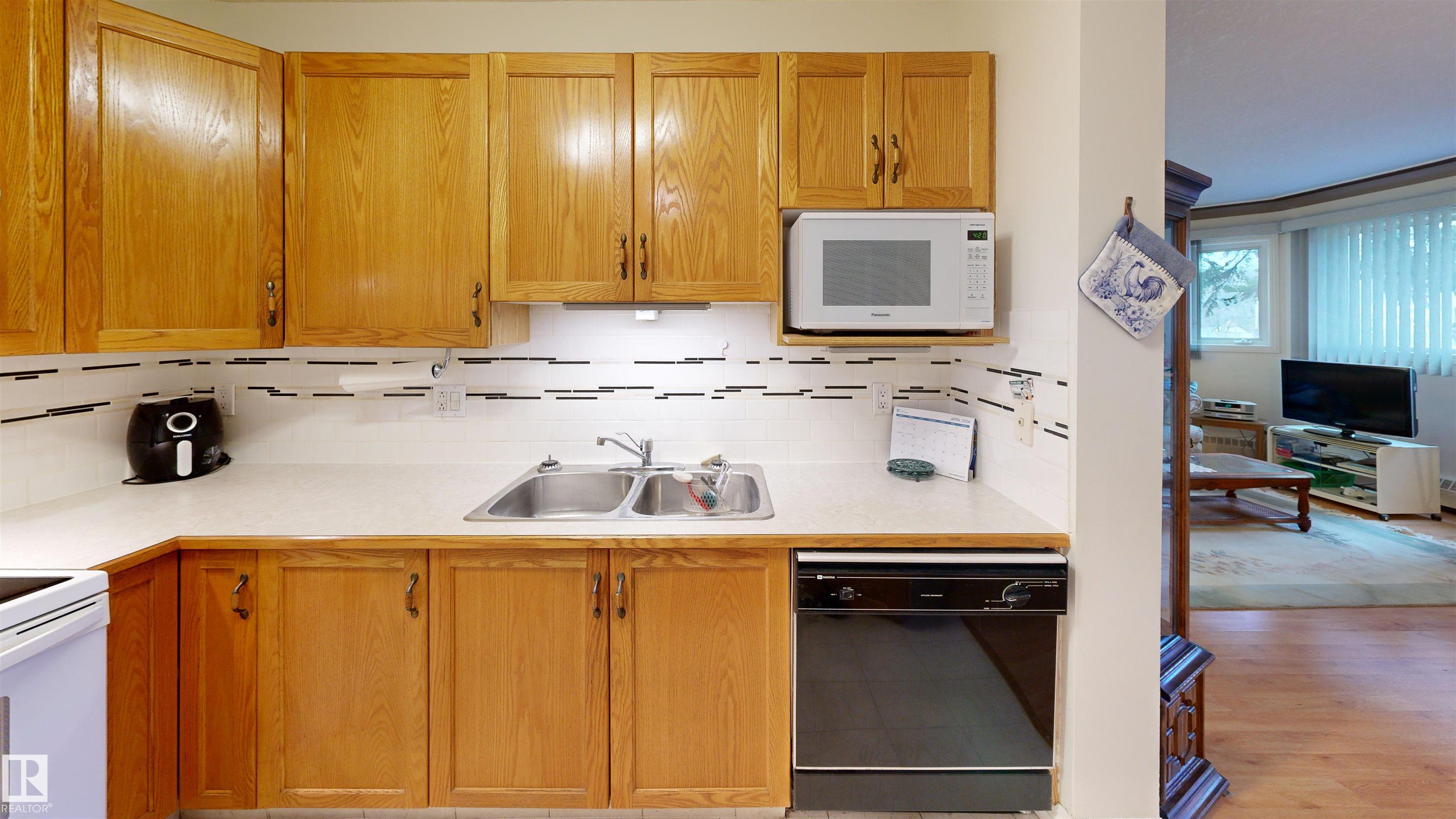 * ATTENTION SENIORS, RESTRICTED-MOBILITY BUYERS, PROFESSIONALS, STUDENTS, & INVESTORS: EXCELLENT CONDITION MAIN LEVEL UNIT NOW AVAILABLE IN KING EDWARD PLACE! A palette of suite features: * Very nice corner kitchen with island & white appliances * Spacious dinette accessing South-facing balcony * Living room corner gas fireplace & bay window * Large-sized primary bedroom plus full en suite bath * 2nd guest bedroom / office with desk & Murphy bed * Full 2nd bath beside medium-sized laundry / storage room. KING EDWARD PLACE is a low-rise apartment condominium complex divided into four separate buildings: * Suite #31 is adjacent to front entrance, lobby area, & mailboxes * Included: assigned parking stall #66 & storage locker #31 * Condo documents package on order for Buyer review * Restricted to Adult Living & No Pets for a quieter & tidier building * Prof. managed by KDM Mgmt. Located SE Edmonton -- Ritchie close to 99 St., Whyte Ave., transit, U of A, shopping, Downtown, recreation, & River Valley Parks!!