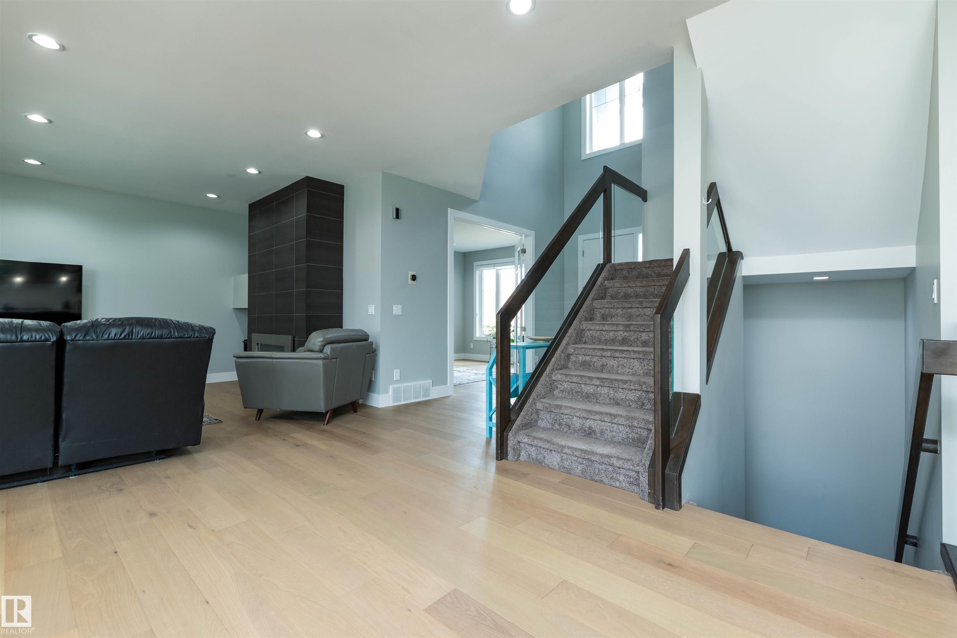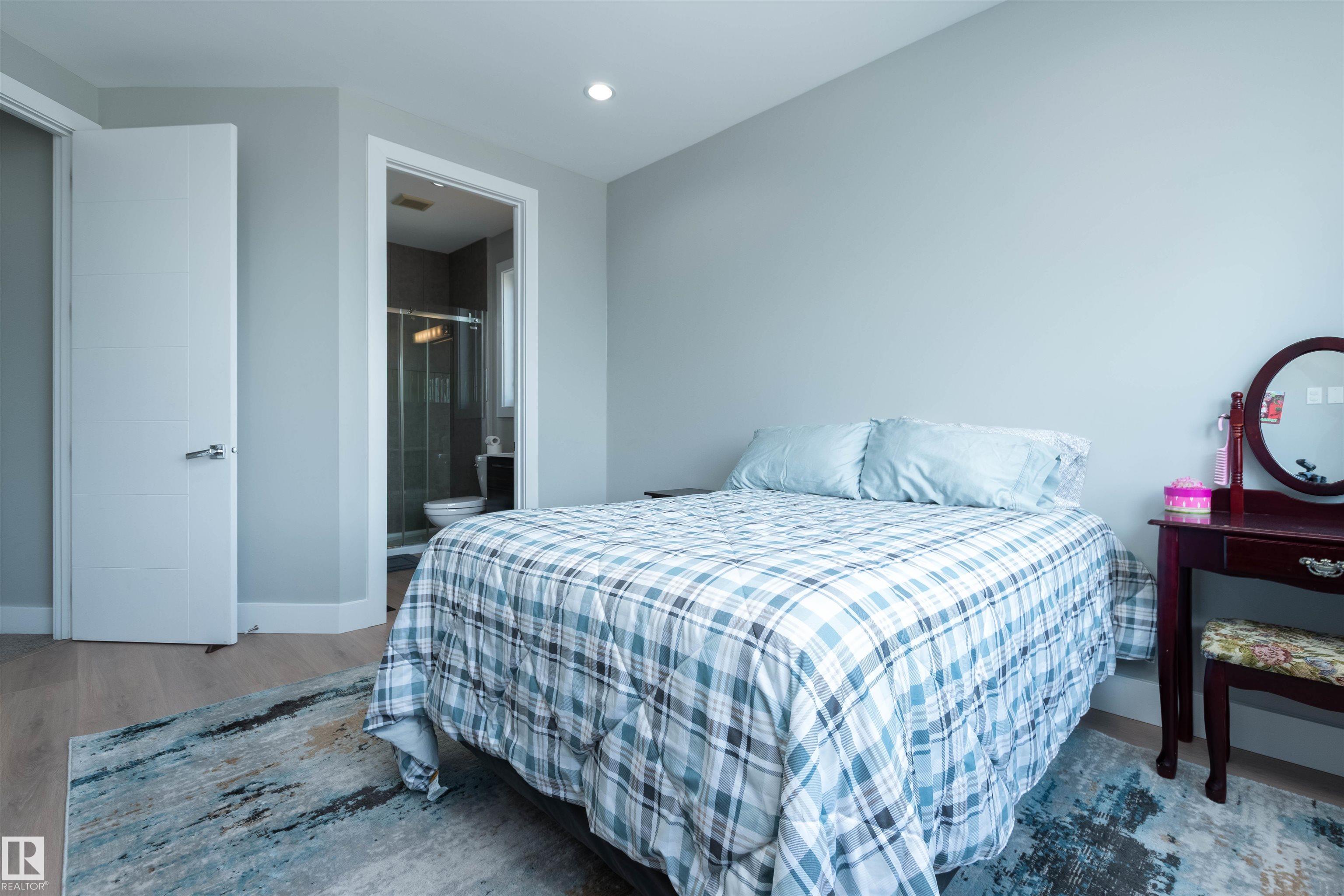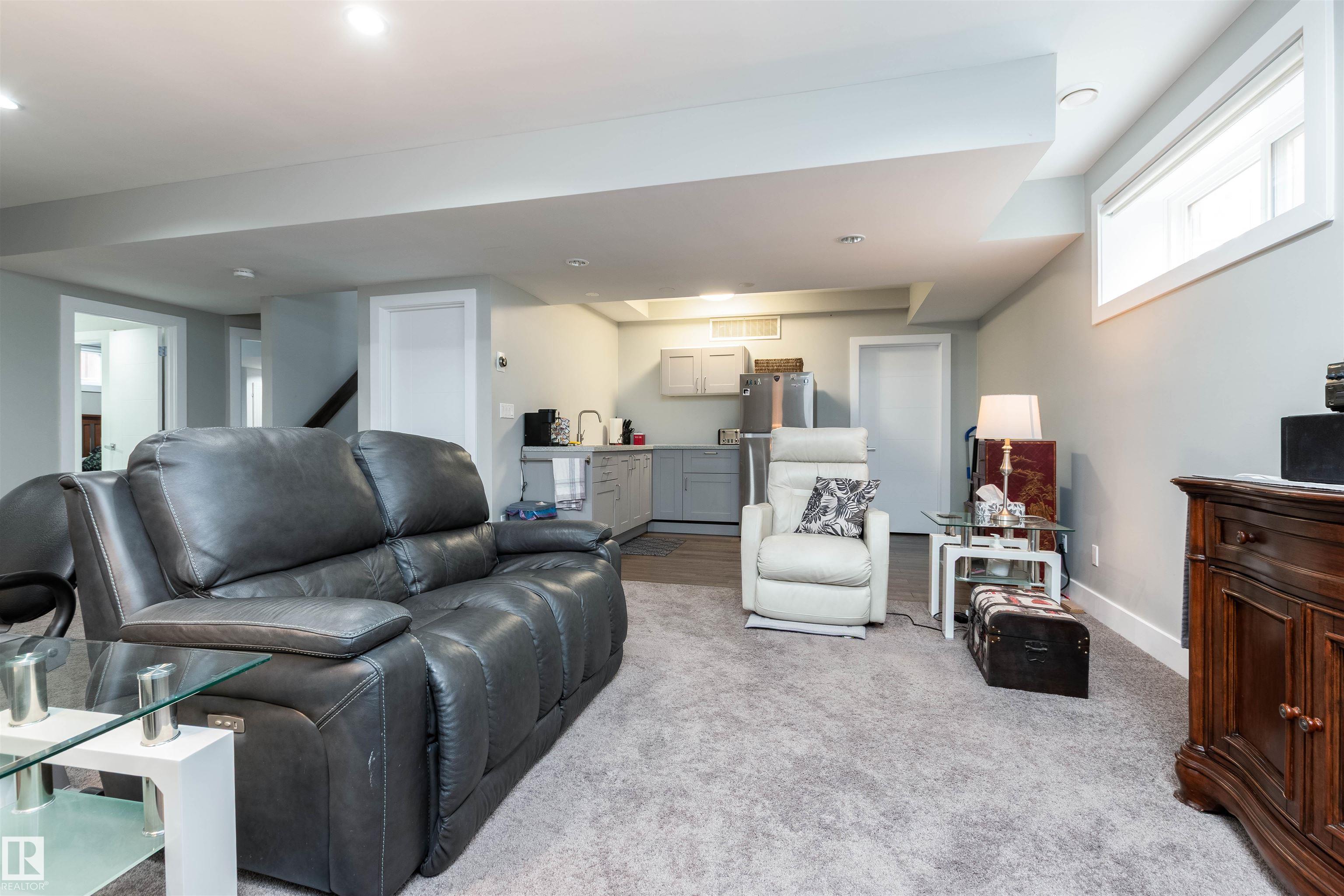 Welcome to this stunning 2-storey home in the desirable neighbourhood of Montrose Estates in Beaumont, offering 3,290 sq ft of beautifully designed living space. Featuring 5 bedrooms, this perfect family home boasts an open floor plan filled with loads of natural light from huge windows and a dining room open to the second story. The modern kitchen showcases a large quartz island, eat-up counter ideal for entertaining or family gatherings, Built In gas 5 burner range, ovens. Upstairs, each of the 3 bedroom offers its own ensuite and walk-in closet. The fully finished basement includes a second partial kitchen, 2 additional bedrooms, and a full bathroom. Enjoy the comfort of central air conditioning, a gas fireplace in the living room, main floor laundry, and a functional mudroom. Step outside to a covered deck and relax in the hot tub. Complete with a double attached heated, insulated garage, and close to shopping, schools, the airport, and Henday, this home truly has it all. Welcome to your dream home!!