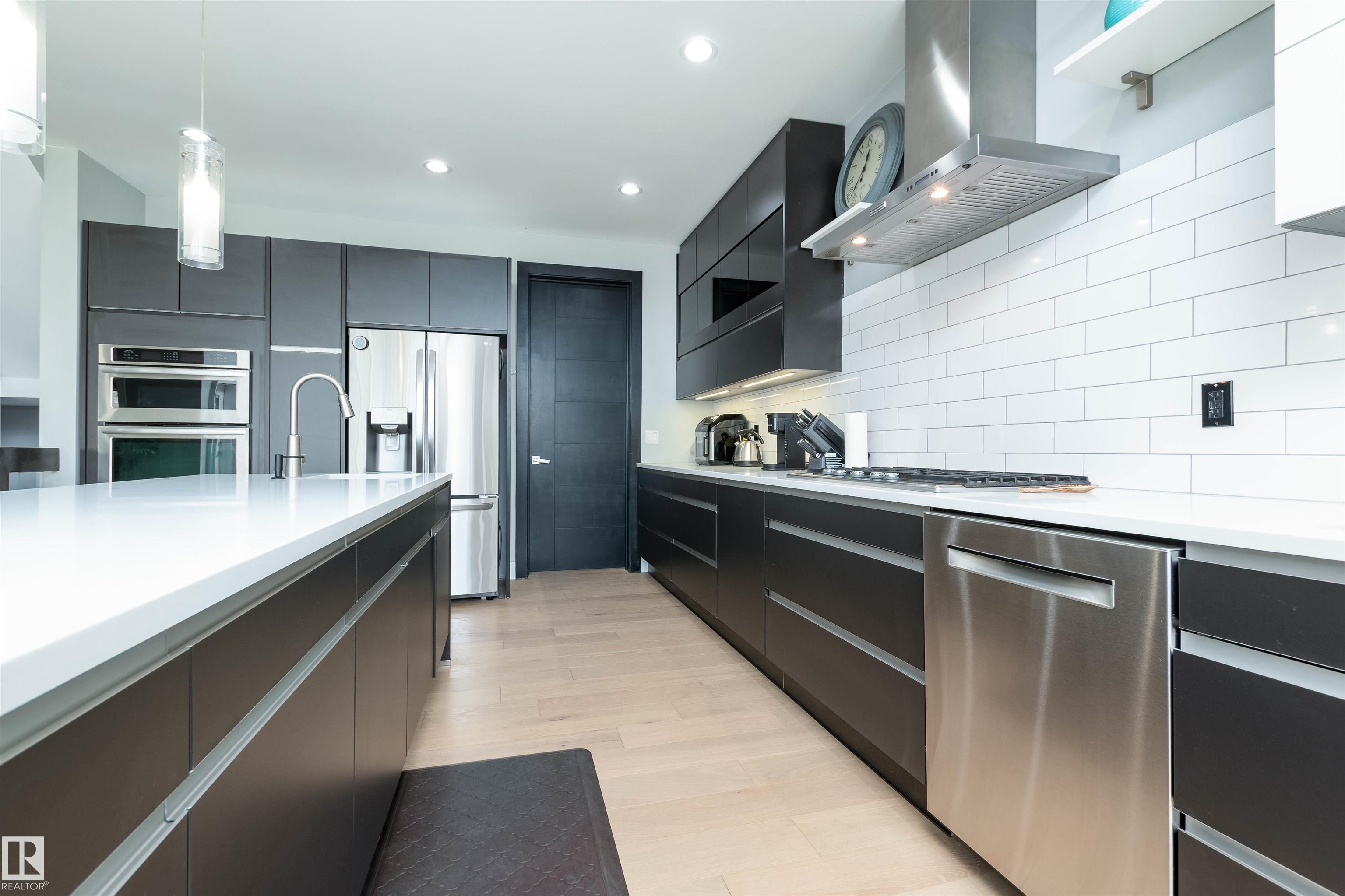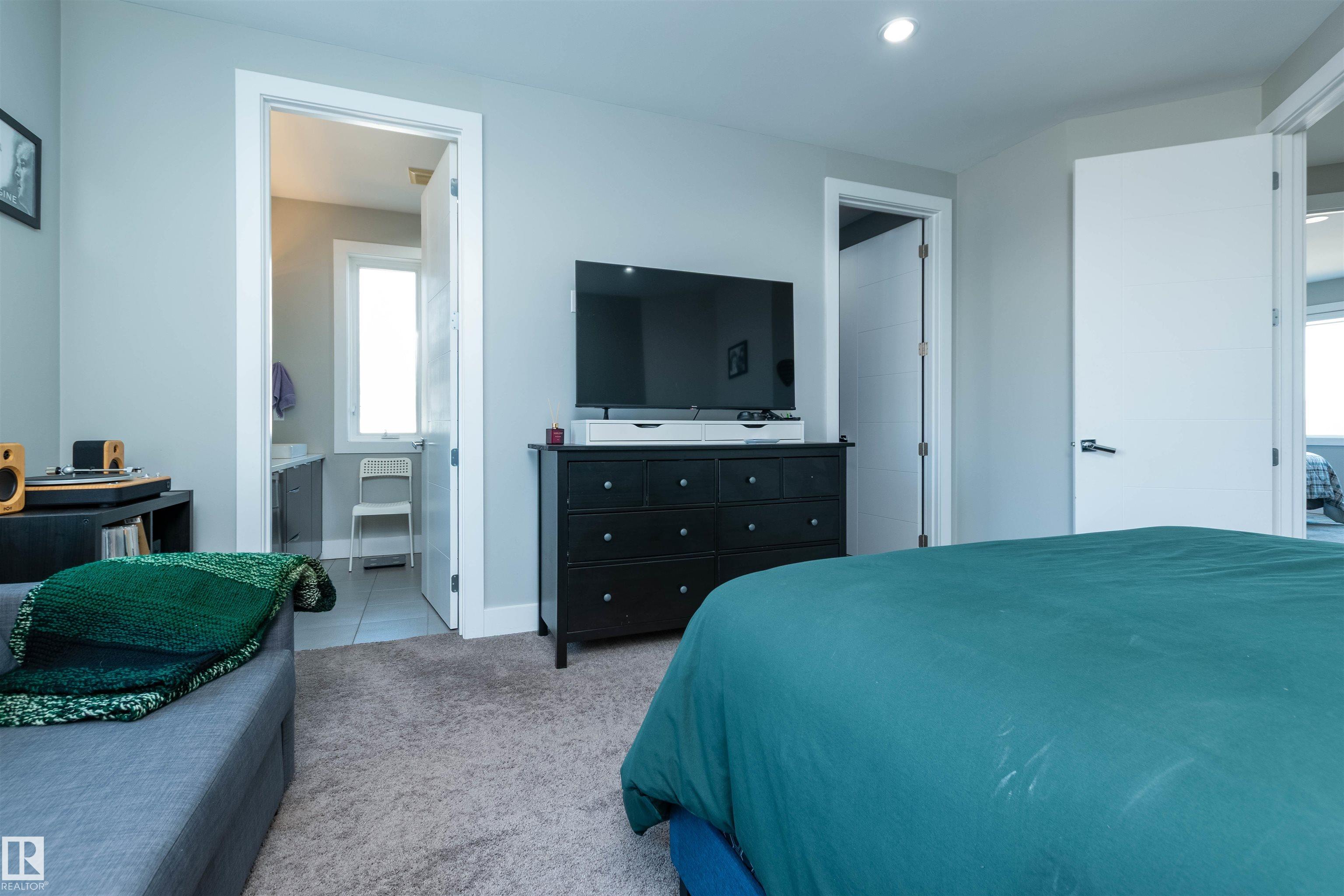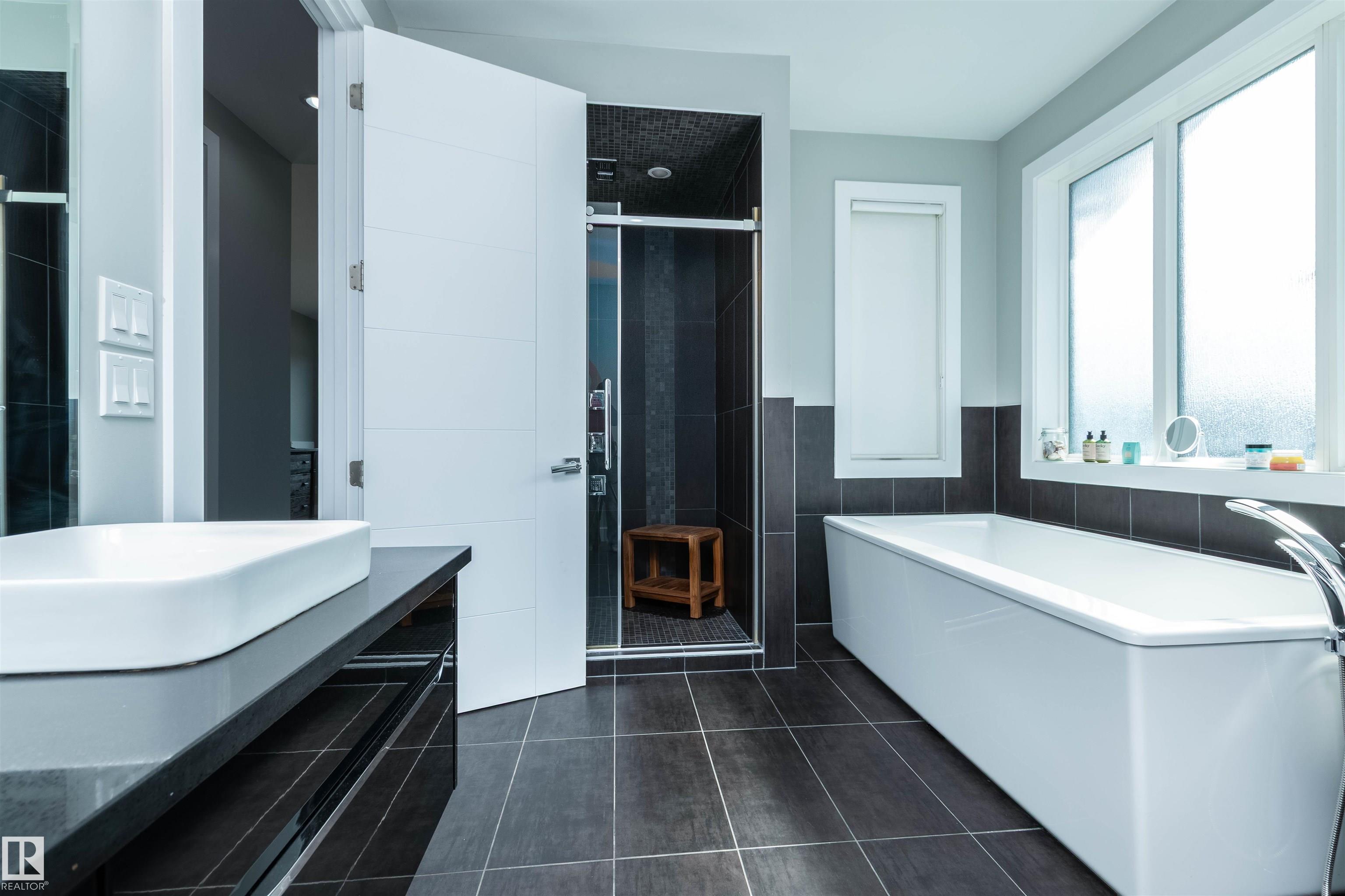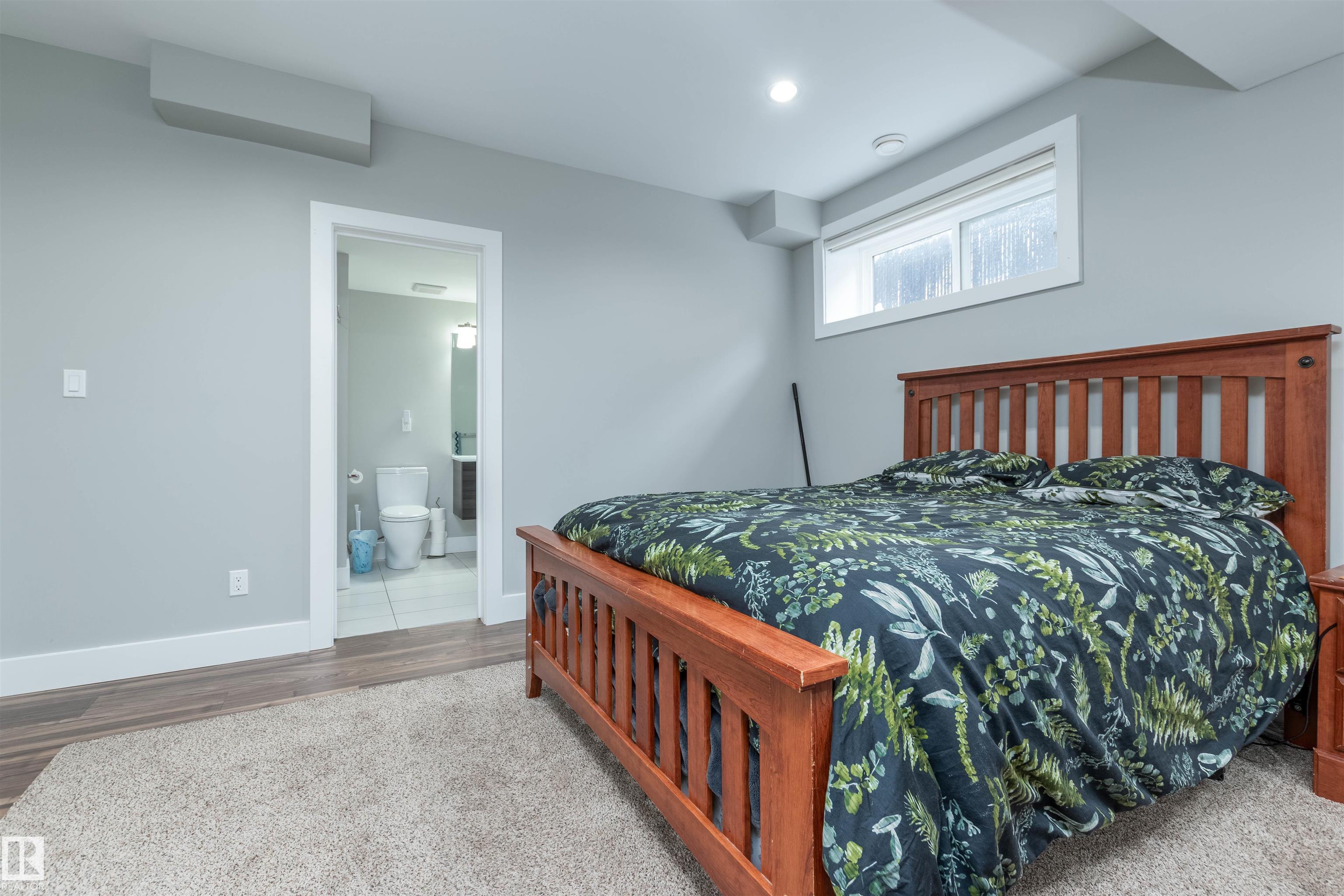 Welcome to this stunning 2-storey home in the desirable neighbourhood of Montrose Estates in Beaumont, offering 3,290 sq ft of beautifully designed living space. Featuring 5 bedrooms, this perfect family home boasts an open floor plan filled with loads of natural light from huge windows and a dining room open to the second story. The modern kitchen showcases a large quartz island, eat-up counter ideal for entertaining or family gatherings, Built In gas 5 burner range, ovens. Upstairs, each of the 3 bedroom offers its own ensuite and walk-in closet. The fully finished basement includes a second partial kitchen, 2 additional bedrooms, and a full bathroom. Enjoy the comfort of central air conditioning, a gas fireplace in the living room, main floor laundry, and a functional mudroom. Step outside to a covered deck and relax in the hot tub. Complete with a double attached heated, insulated garage, and close to shopping, schools, the airport, and Henday, this home truly has it all. Welcome to your dream home!!