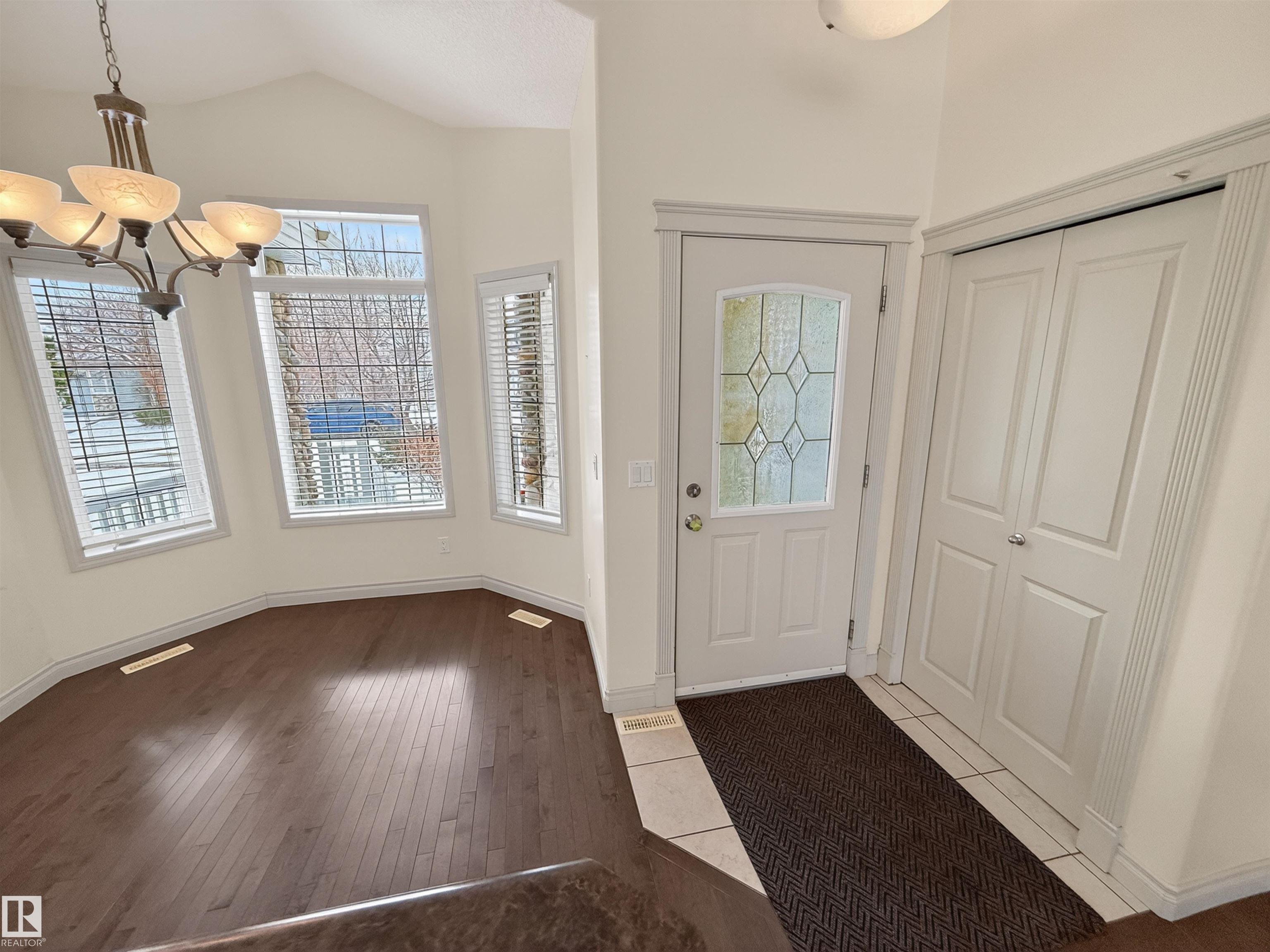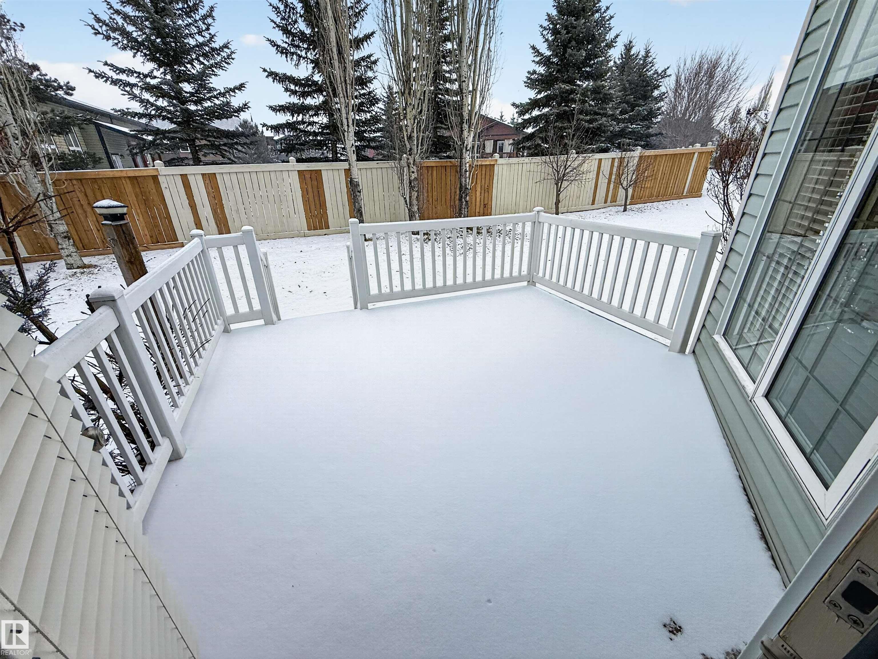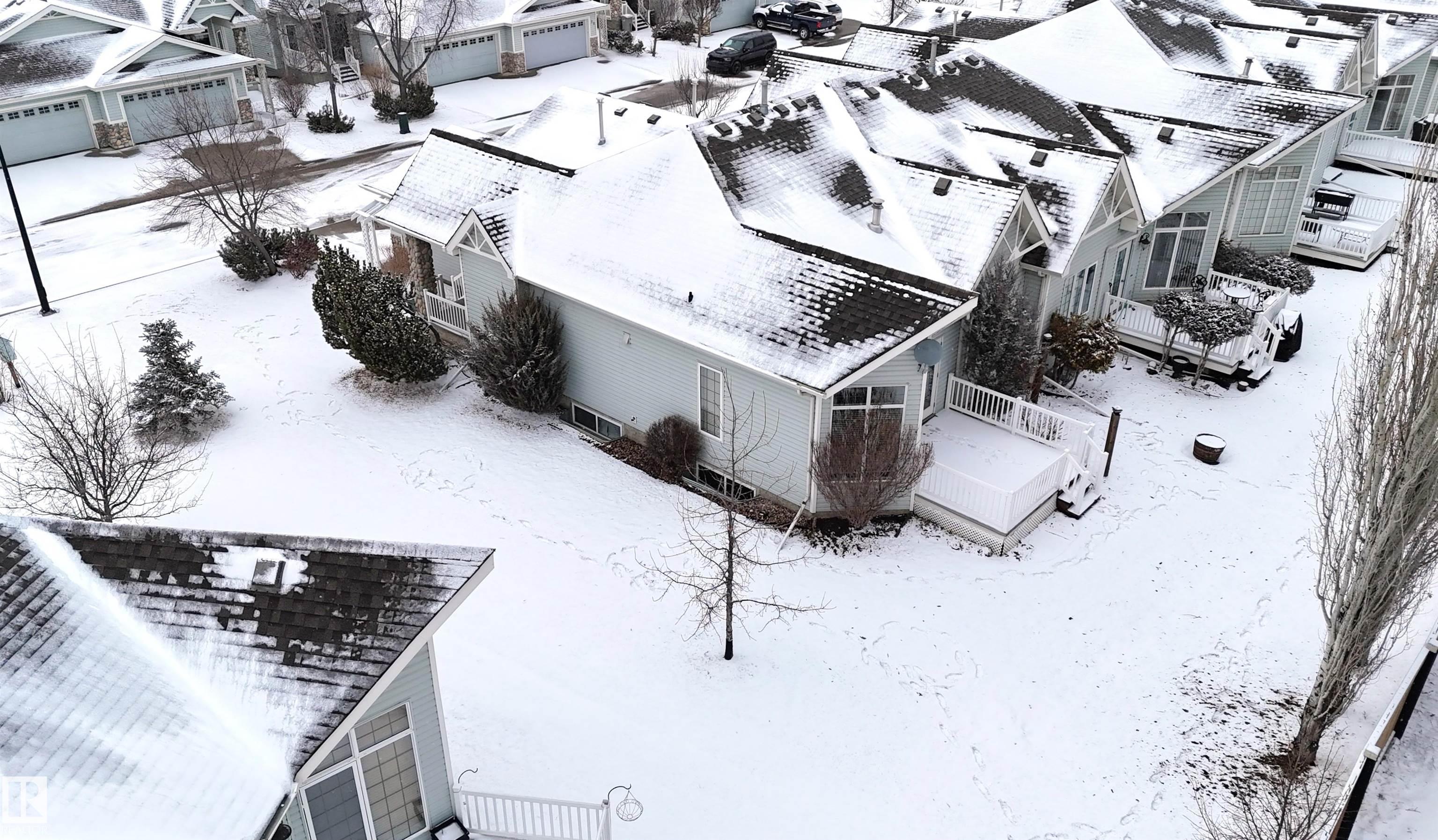 Charming bungalow half-duplex with attached double garage (18Wx24L, insulated) in a 55+ condo community, Briarwood Village. This 1,154 square foot (plus full basement) home features hardwood & tile flooring, main floor laundry and vaulted ceilings. Gourmet kitchen with island, two-tiered peninsula, built-in dishwasher & corner pantry. Bright formal dining room with bay window. Living room with gas fireplace, deck access and large windows. Finishing off the main level are 1.5 bathrooms and 2 bedrooms including the owner?s suite with 4-pc ensuite and walk-in closet with laundry. The fully finished basement boasts 2 more bedrooms, 4-pc bathroom, family room, storage room and an additional large room with sink & cabinetry that is roughed in to be a future second kitchen. Outside: east facing deck with posts for a hammock. Landscaping maintenance & snow removal is included in condo fees. Located on a quite no-through road near Stony Plain Golf course and walking trails.