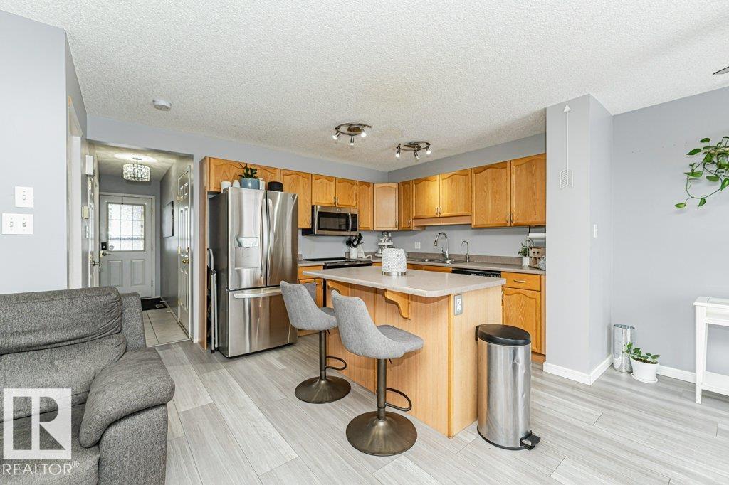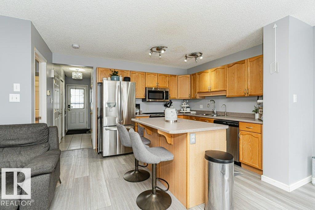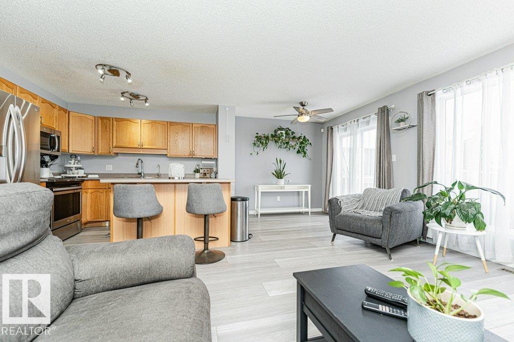 Welcome to this beautifully maintained half duplex offering style, space, and functionality in a family-friendly neighbourhood! Step inside to an open-concept main floor featuring newer ceramic tile and laminate flooring, a bright living room with cozy corner gas fireplace, and a spacious kitchen complete with stainless steel appliances, ample cabinetry, and a large island with seating. The dining area overlooks the backyard and provides direct access to the deck?perfect for summer BBQs and entertaining. Upstairs you?ll find generously sized bedrooms, plus a full bath. The fully finished basement adds valuable extra living space for a rec room, home office, gym, or guest area. Enjoy the convenience of a single attached garage and a long driveway for additional parking. The large fenced yard offers space for kids, pets, gardening, or future outdoor enjoyment. A fantastic opportunity for first-time buyers, families, or investors!