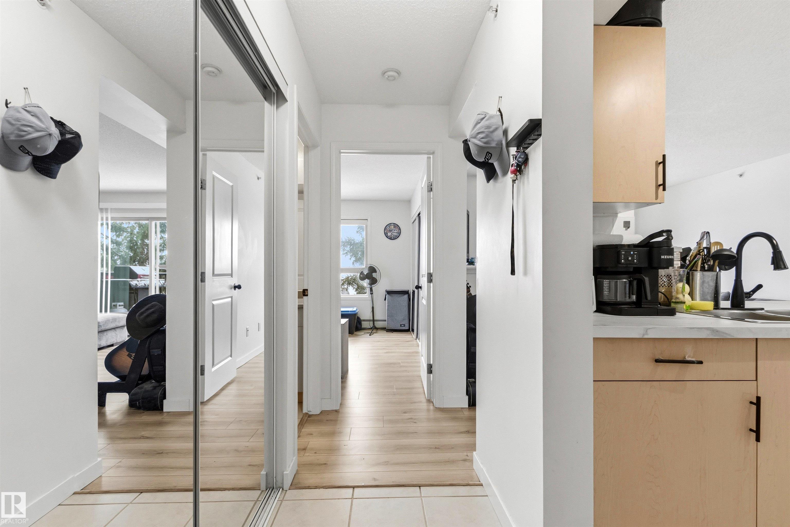 Opportunity knocks in Somerset Callingwood South! Welcome to this exceptionally functional TOP FLOOR 2 bed, 2 bath condo offering comfort, convenience, and unbeatable value! Step inside to a tiled entry leading to an open-concept layout designed for everyday living and effortless entertaining. The bright kitchen features white appliances and overlooks the dining and living areas, complete with electric fireplace, balcony access, and abundant natural light! Spacious primary retreat offers ample room, generous closet space, and a private 4 pc ensuite. Second bedroom is thoughtfully positioned on the opposite side?ideal for guests, roommates, or rental flexibility?next to the upgraded 3 pc bath. In-suite laundry and storage add everyday ease. Recent updates include paint, lighting, stove, flooring, baseboards, and countertops! The finishing touch? TITLED underground parking. Prime west-end location close to Whitemud, WEM, golf, transit, parks, trails, library, schools, recreation, and more. See it today!