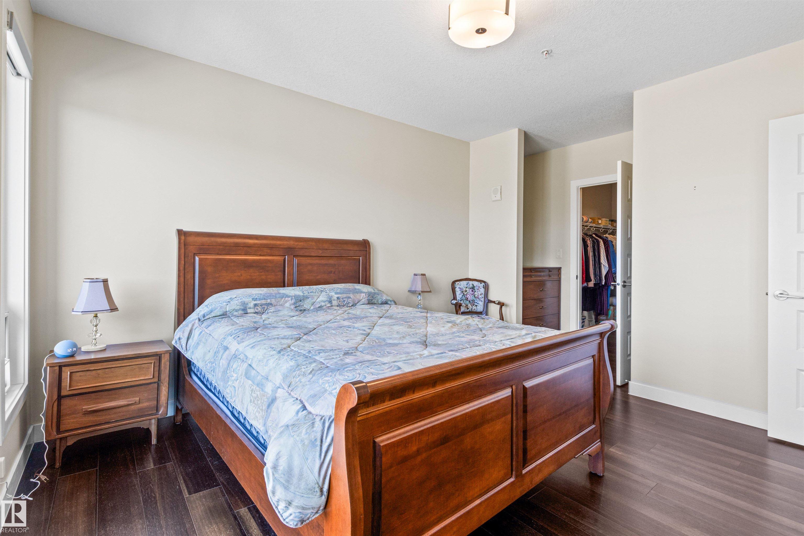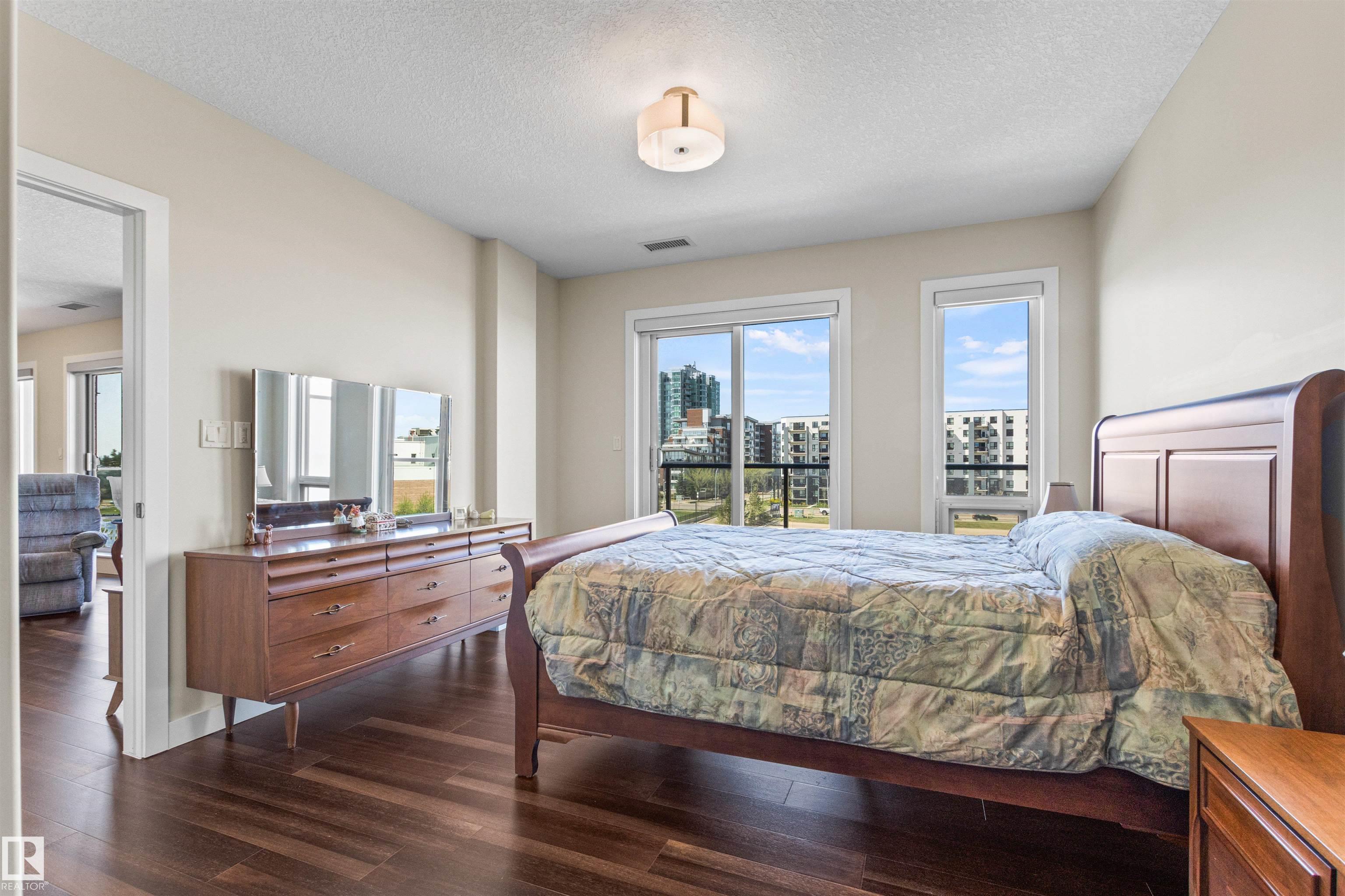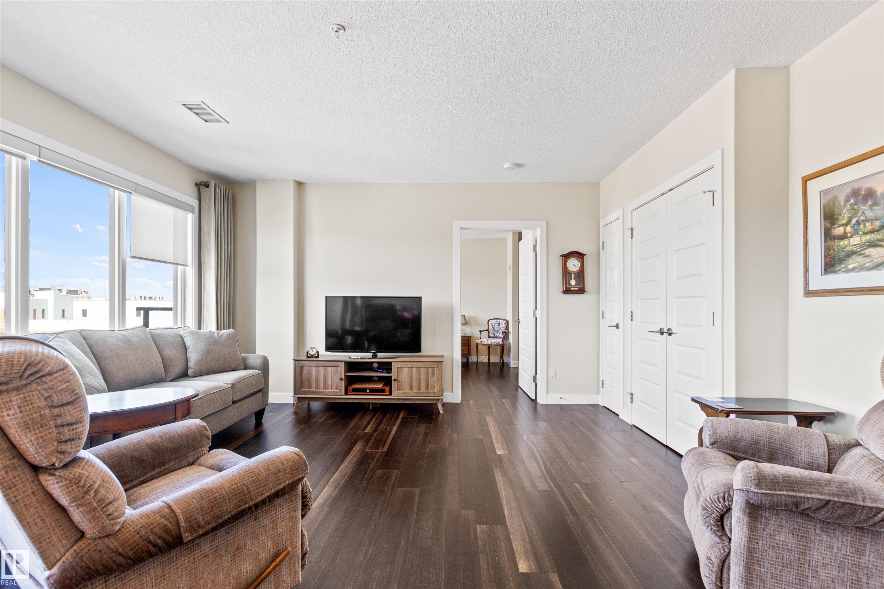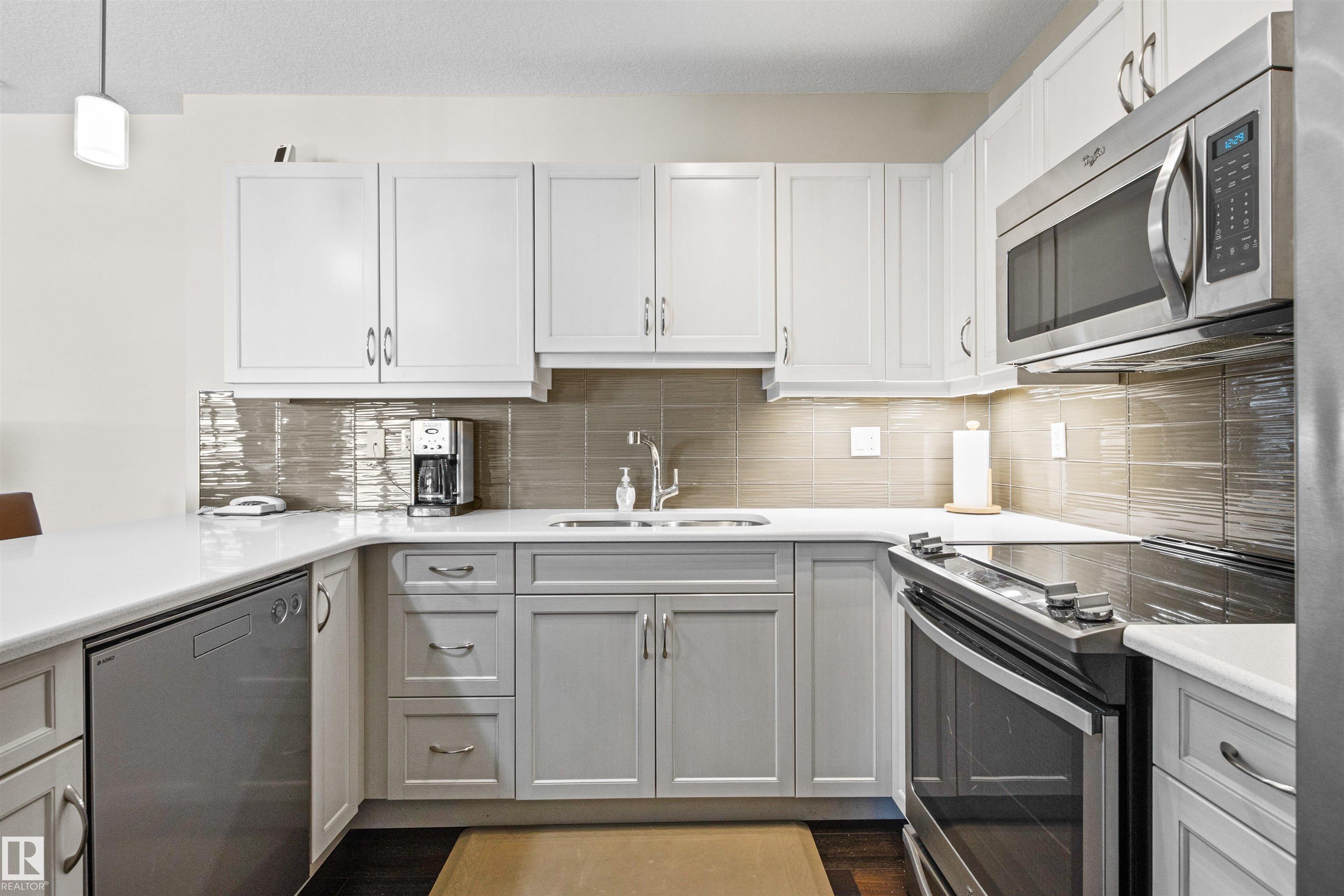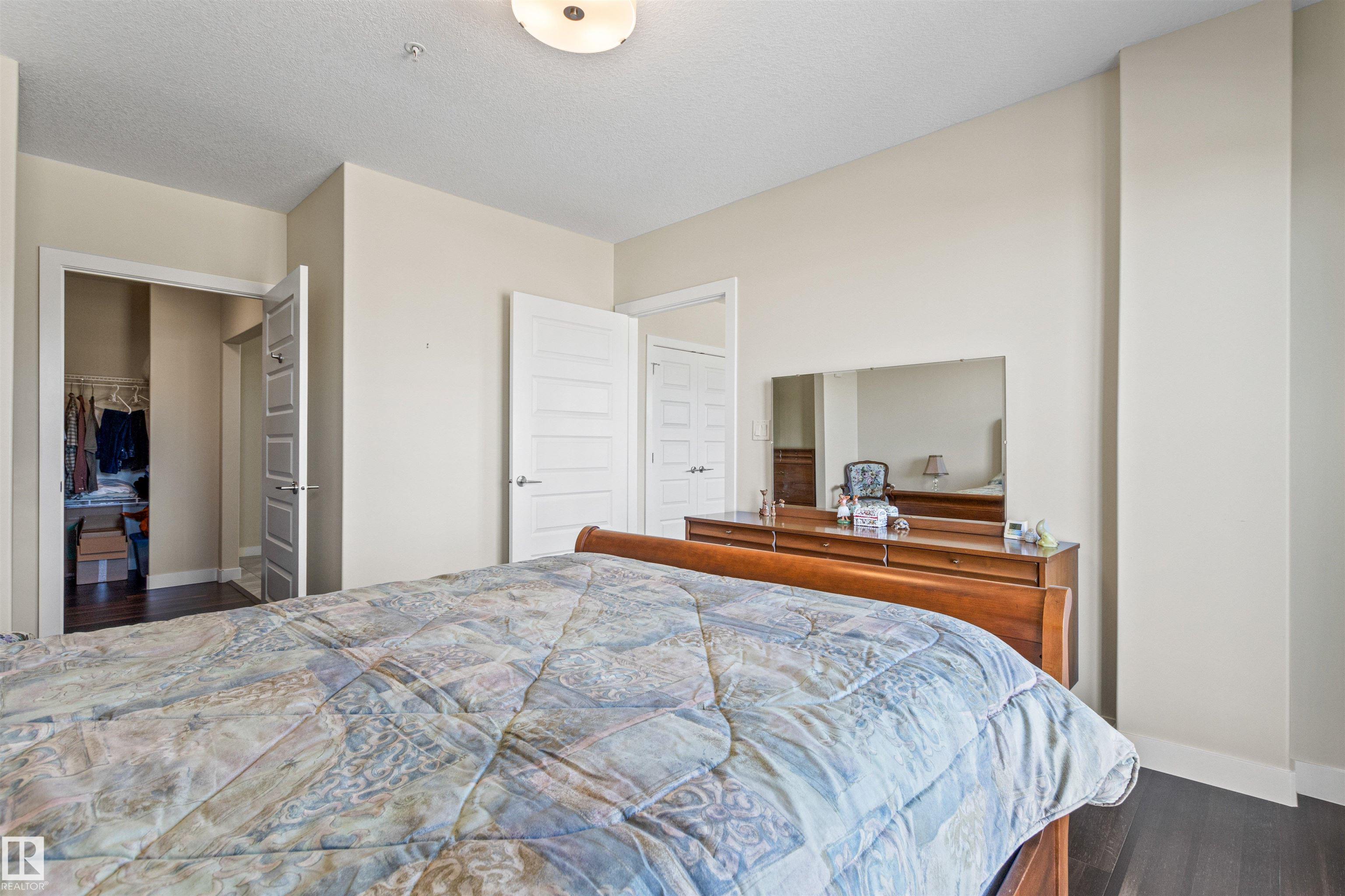 Here's the one you've been waiting for! This 2 Bedroom, 2 full Bath unit comes with bonus after bonus - 2 balconies; 2 Titled Parking stalls (1 oversized undergound - long enough for a full size truck & one outdoor) plus a titled storage room. This unit is one of only 2 in the building with this floorplan - large open concept living room/dining room, 2 Bedrooms , 2 full bathrooms offering a spacious ensuite with tub and a guest bathroom off the main living space that has a separate walk-in shower. Modern colour palette & finishes throughout including dark engineered wood flooring, quartz countertops, glass tile backsplash, under-cabinet lighting, stainless steel appliances, A/C & even MOTORIZED WINDOW COVERINGS! There are many added features to living in this community - social activities in the Mosiac Cove lounge (games, movies, exercise class, exercise room, car wash & workshop. Residents also have access to optional onsite HomeCare & Heritage Market Grill Restaurant.