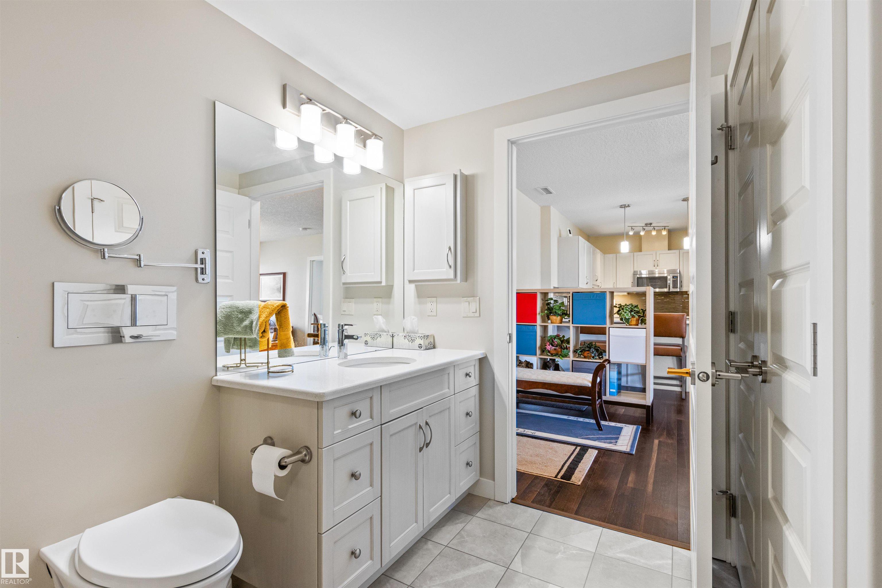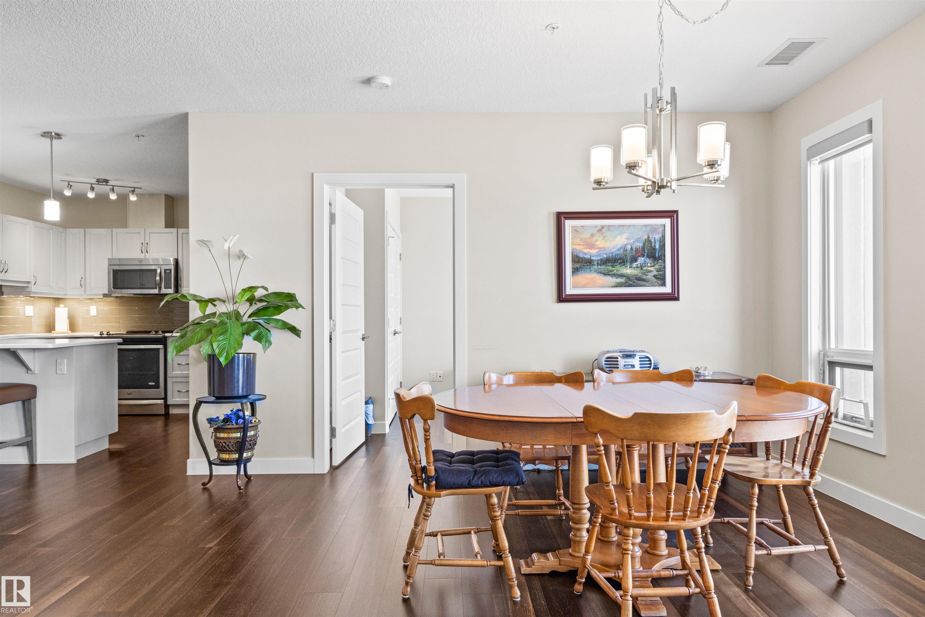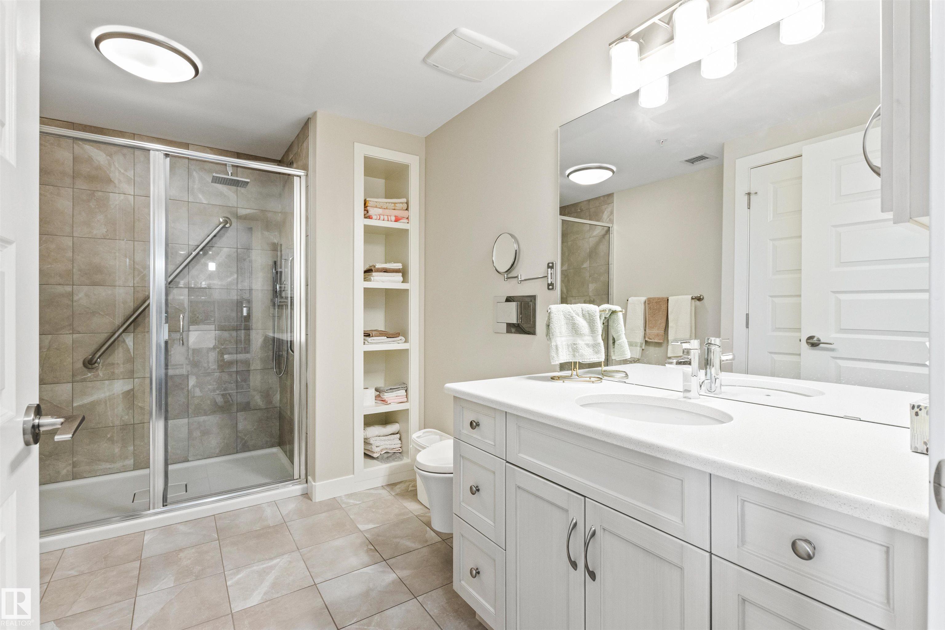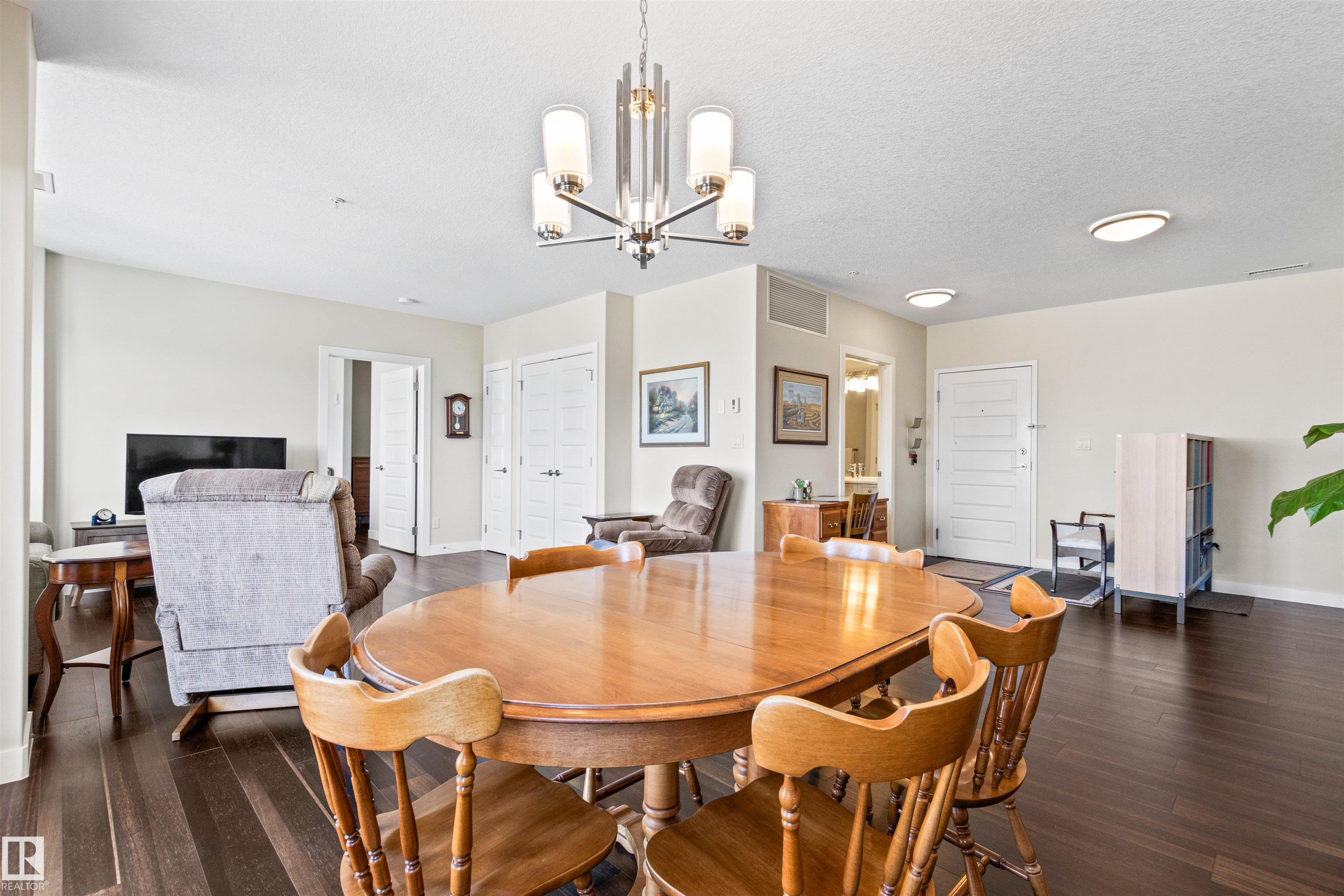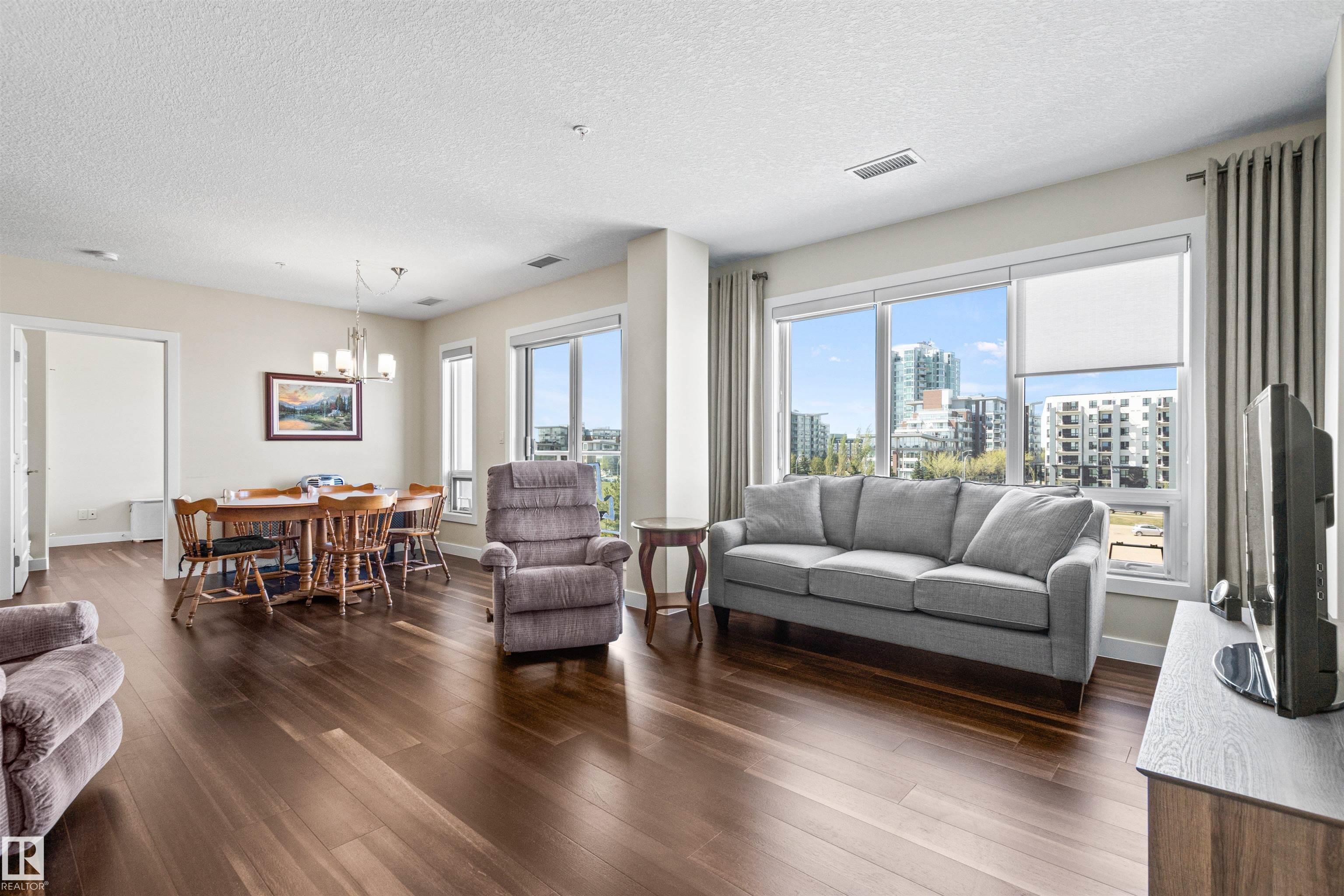 Here's the one you've been waiting for! This 2 Bedroom, 2 full Bath unit comes with bonus after bonus - 2 balconies; 2 Titled Parking stalls (1 oversized undergound - long enough for a full size truck & one outdoor) plus a titled storage room. This unit is one of only 2 in the building with this floorplan - large open concept living room/dining room, 2 Bedrooms , 2 full bathrooms offering a spacious ensuite with tub and a guest bathroom off the main living space that has a separate walk-in shower. Modern colour palette & finishes throughout including dark engineered wood flooring, quartz countertops, glass tile backsplash, under-cabinet lighting, stainless steel appliances, A/C & even MOTORIZED WINDOW COVERINGS! There are many added features to living in this community - social activities in the Mosiac Cove lounge (games, movies, exercise class, exercise room, car wash & workshop. Residents also have access to optional onsite HomeCare & Heritage Market Grill Restaurant.