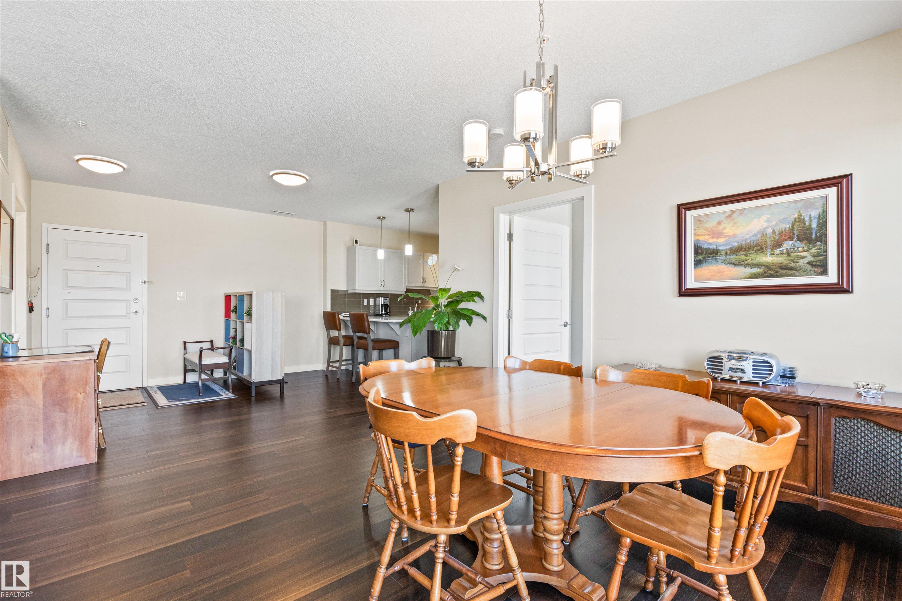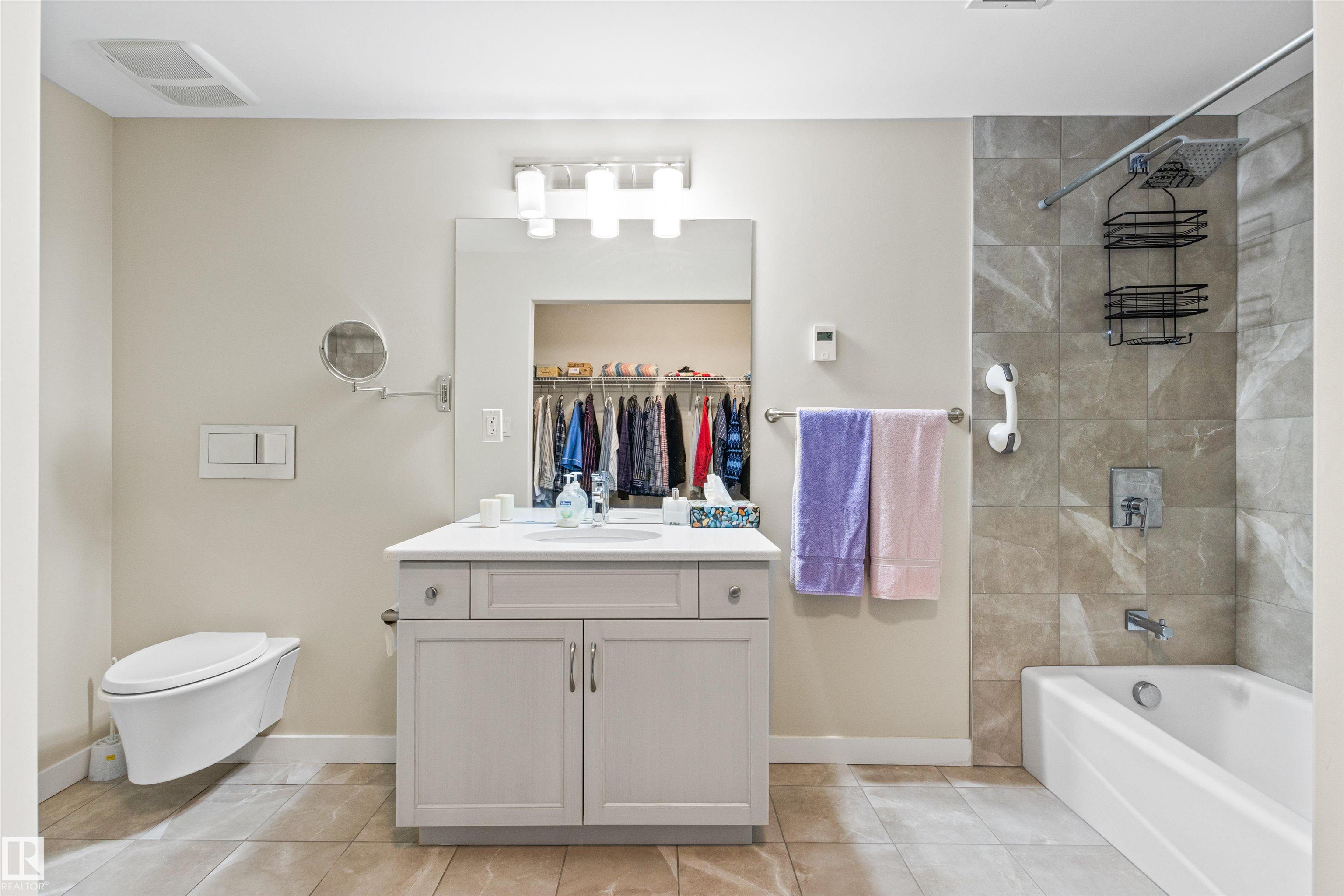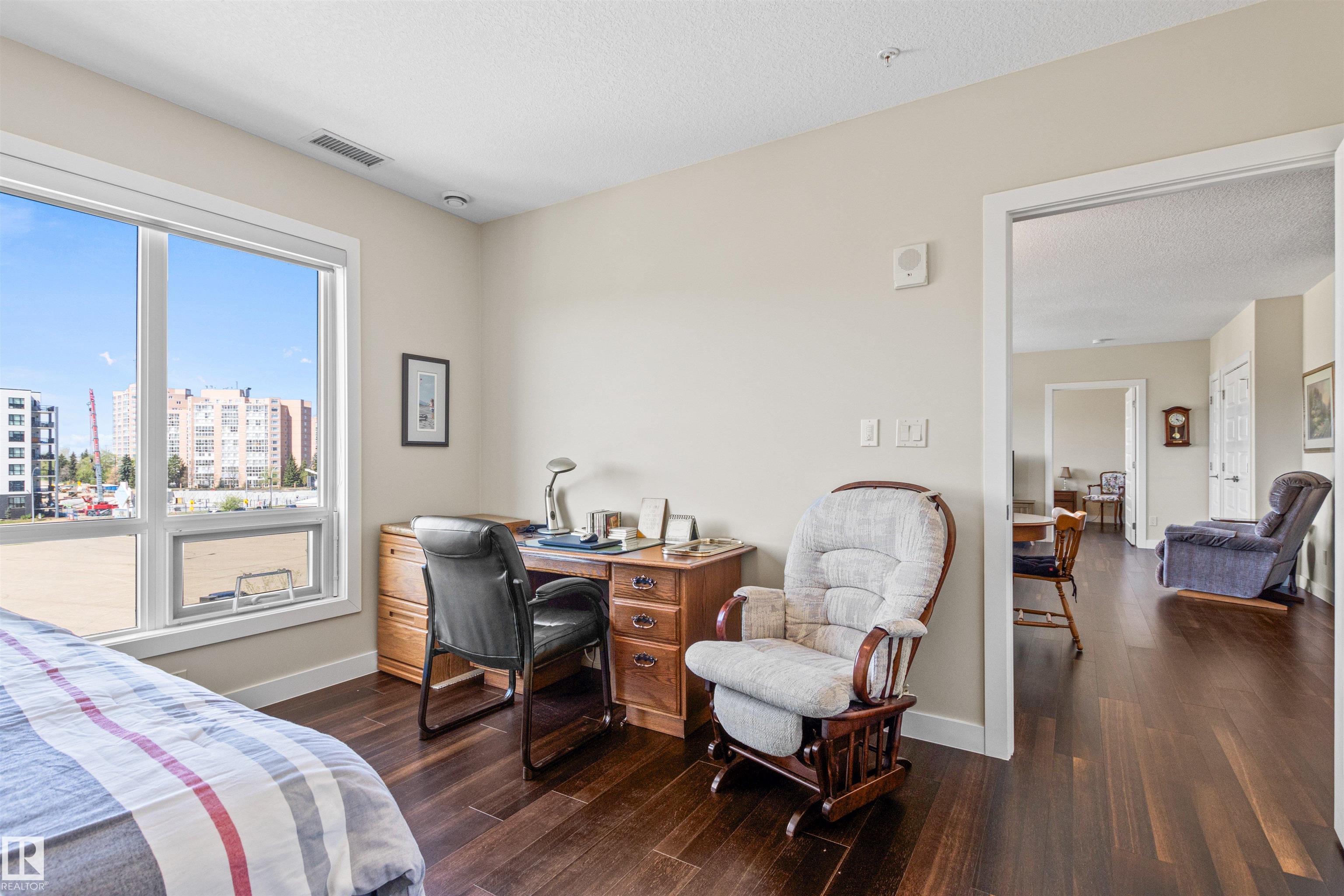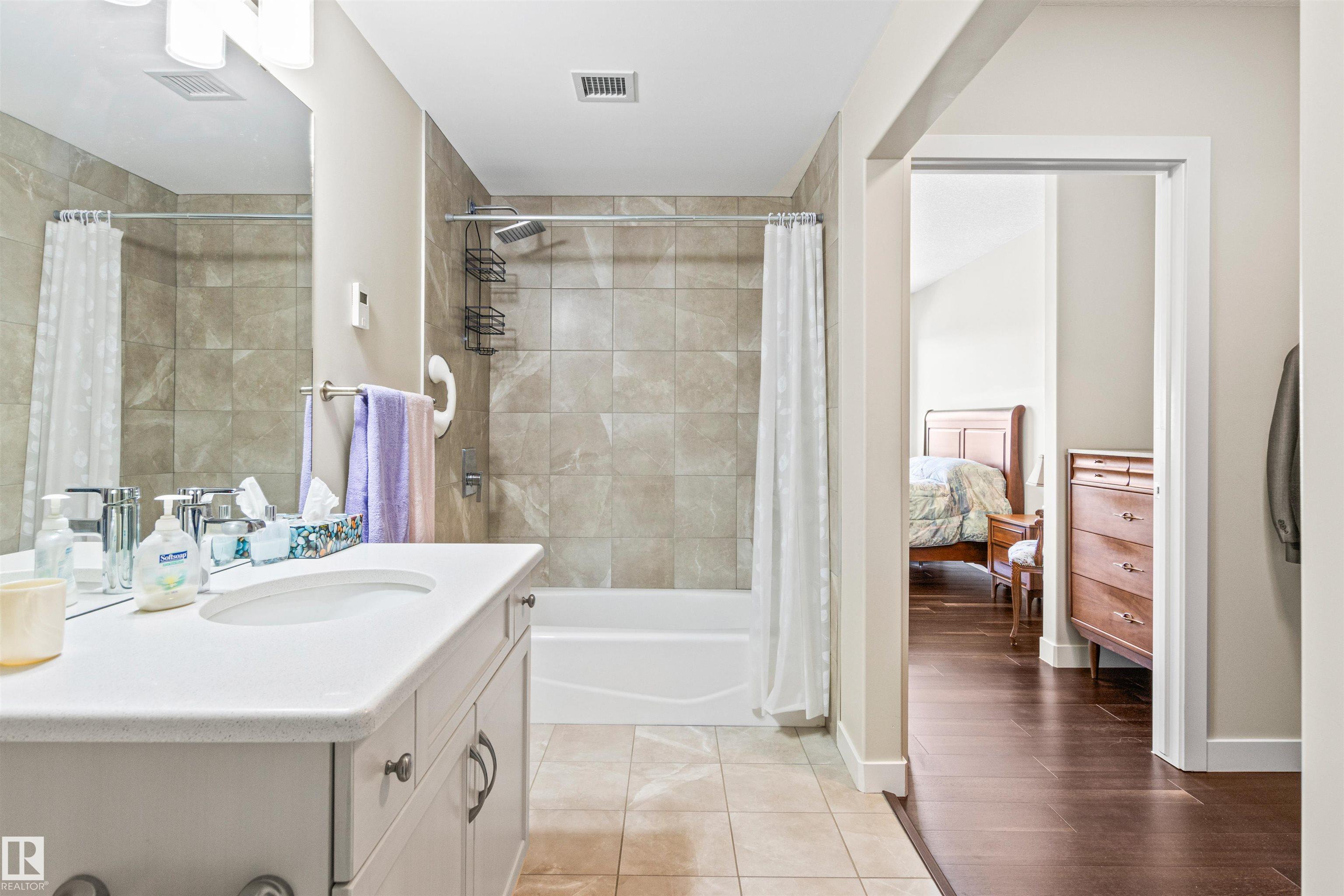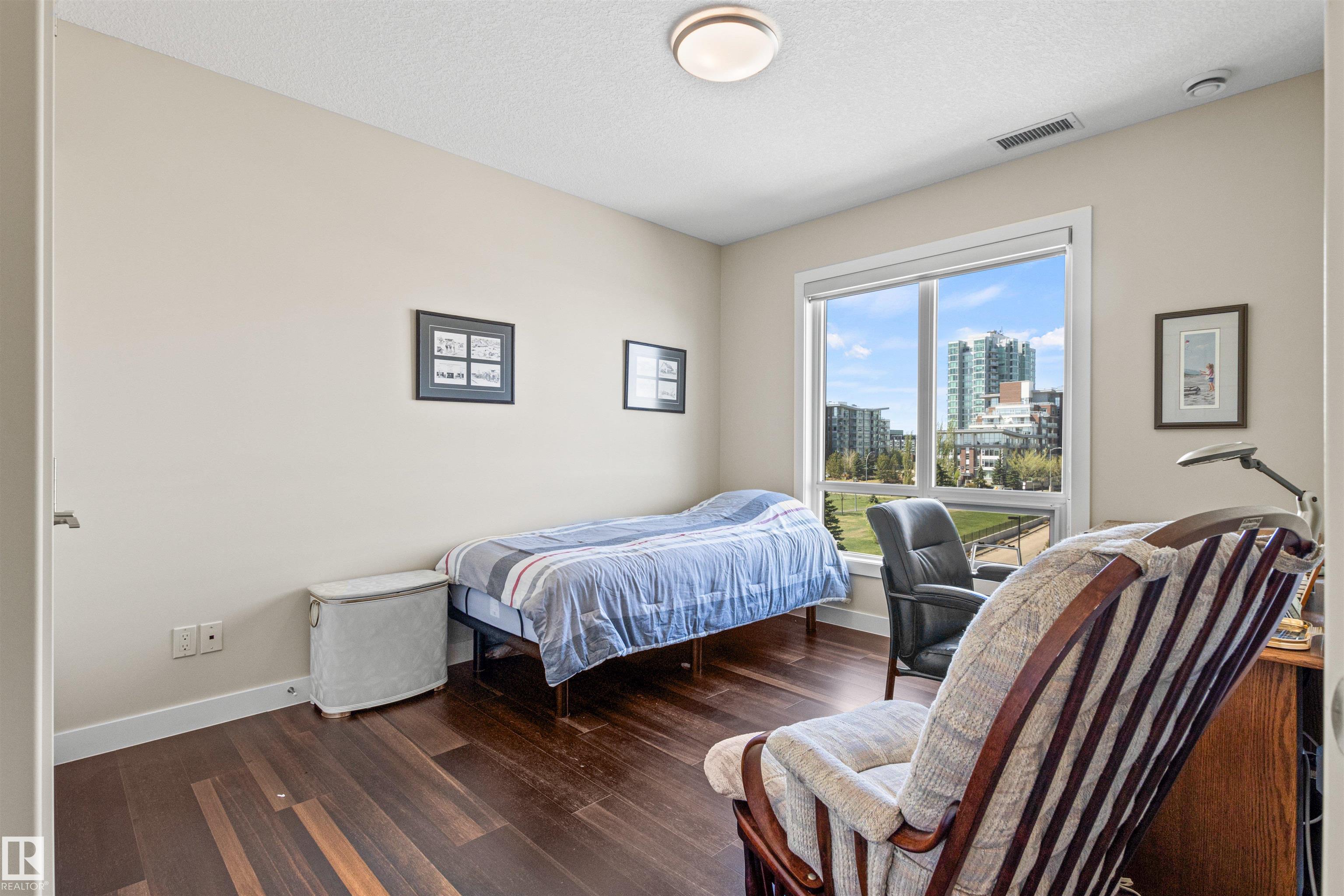 Here's the one you've been waiting for! This 2 Bedroom, 2 full Bath unit comes with bonus after bonus - 2 balconies; 2 Titled Parking stalls (1 oversized undergound - long enough for a full size truck & one outdoor) plus a titled storage room. This unit is one of only 2 in the building with this floorplan - large open concept living room/dining room, 2 Bedrooms , 2 full bathrooms offering a spacious ensuite with tub and a guest bathroom off the main living space that has a separate walk-in shower. Modern colour palette & finishes throughout including dark engineered wood flooring, quartz countertops, glass tile backsplash, under-cabinet lighting, stainless steel appliances, A/C & even MOTORIZED WINDOW COVERINGS! There are many added features to living in this community - social activities in the Mosiac Cove lounge (games, movies, exercise class, exercise room, car wash & workshop. Residents also have access to optional onsite HomeCare & Heritage Market Grill Restaurant.