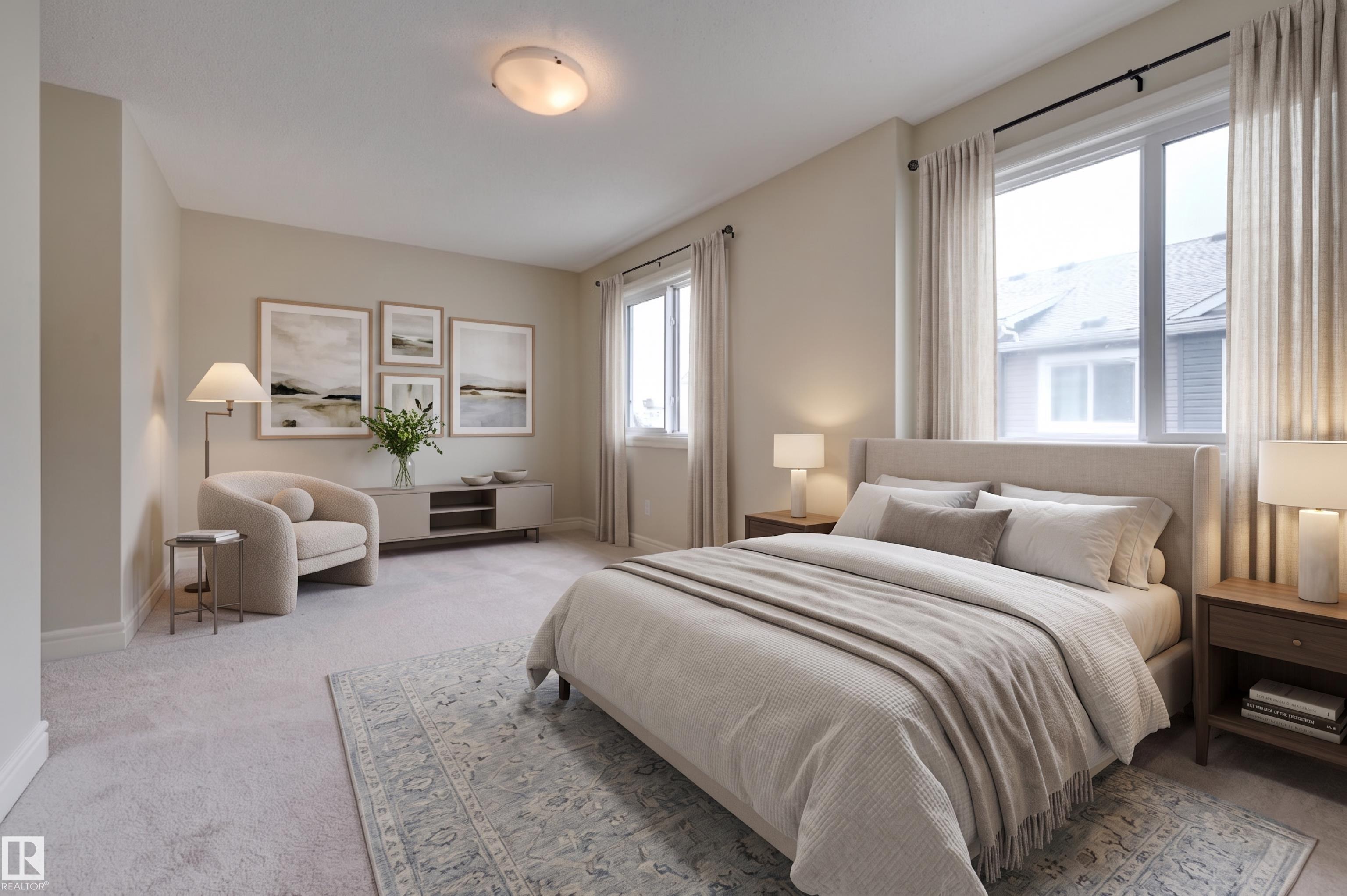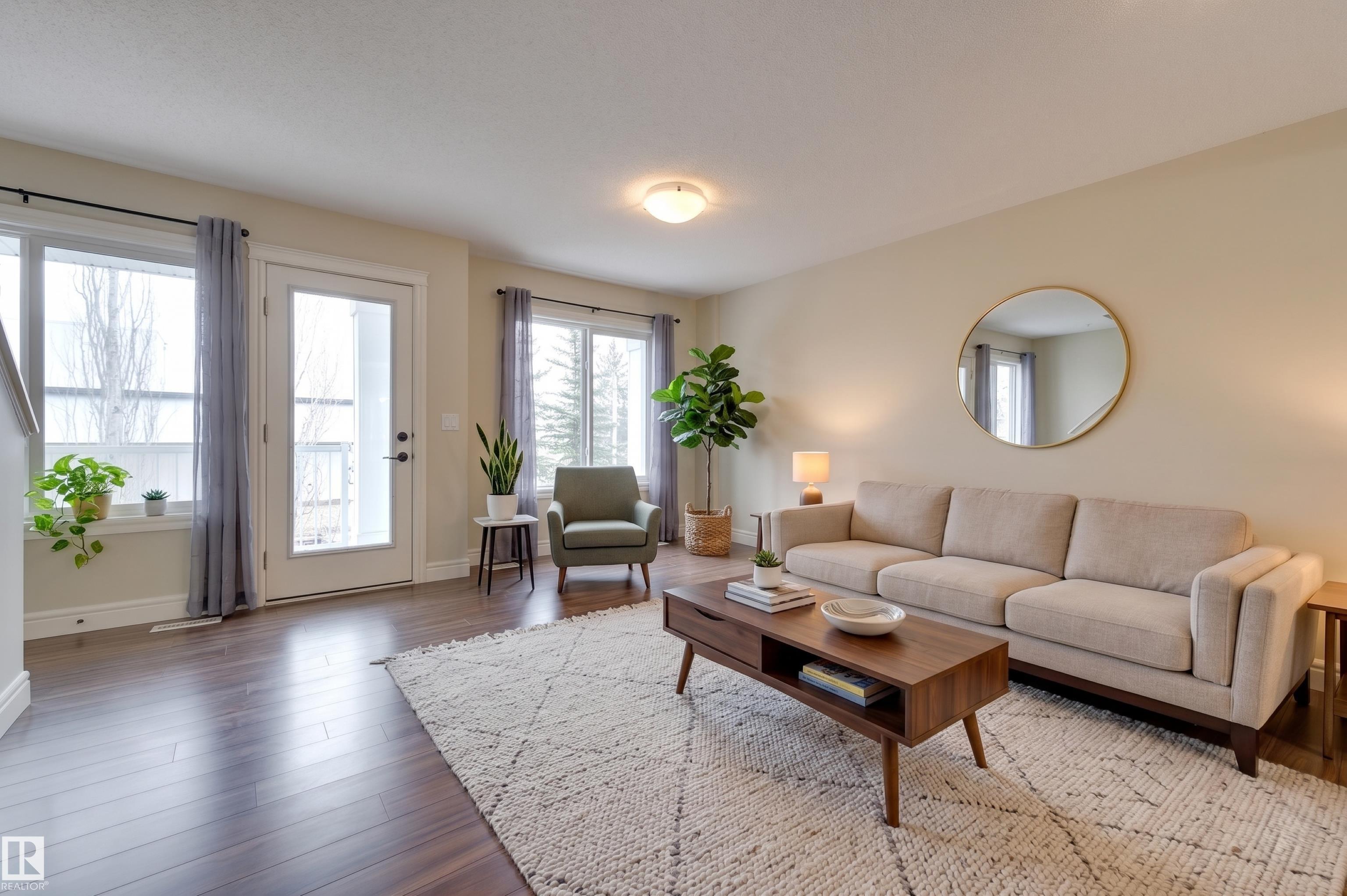 Welcome to this beautifully maintained, completely turnkey two-bedroom townhouse. The entry level features a double attached garage and a functional mudroom or office area, offering both convenience and storage. Upstairs, the bright open-concept living space is flooded with natural light from oversized windows, highlighted by hardwood floors throughout, and offers direct access to a private balcony?perfect for relaxing. The upgraded kitchen is complete with stainless steel appliances, granite countertops, and ample storage, seamlessly flowing into the living and dining areas. A convenient powder room completes this level. The upper floor features a spacious primary suite with excellent closet space and a well-appointed ensuite, along with a second generously sized bedroom and a full bathroom, making this home perfect for comfortable, modern living. AIR CONDITIONING INCLUDED! Some photos are virtually staged.