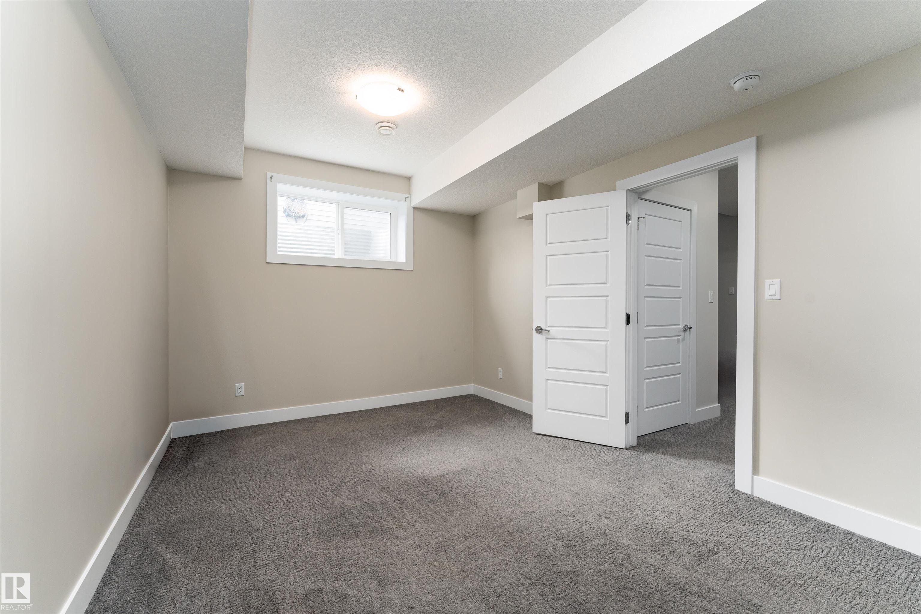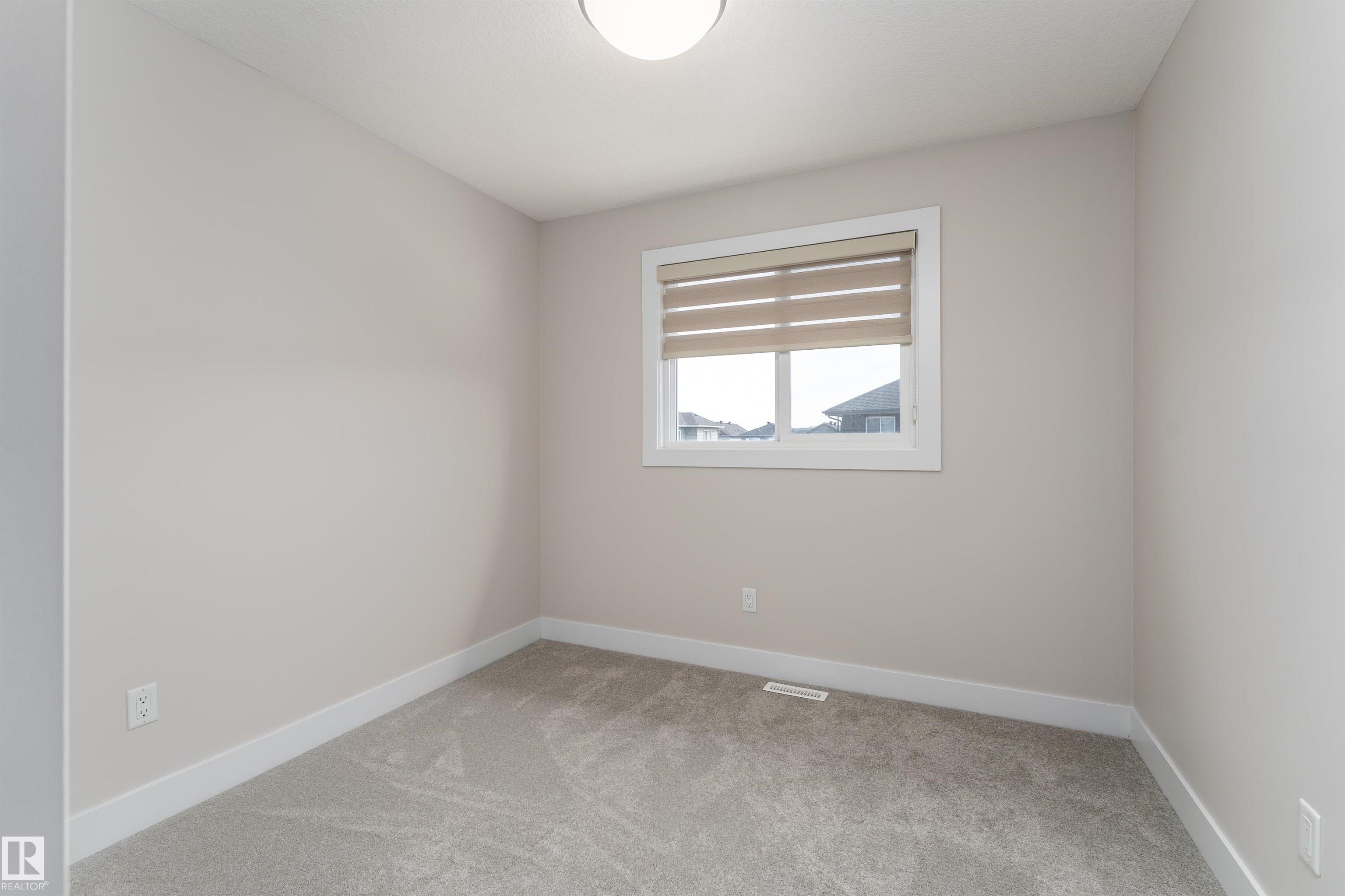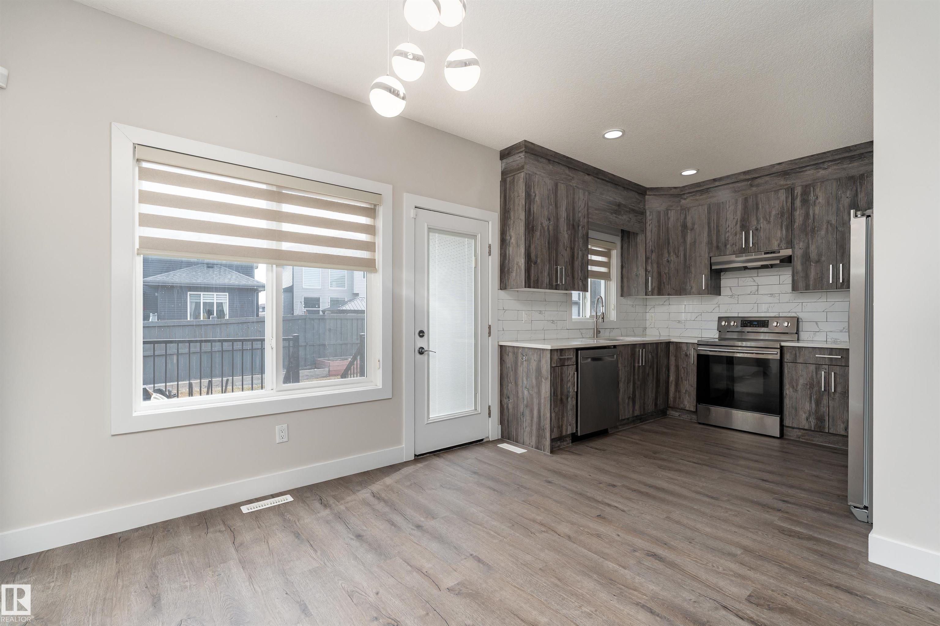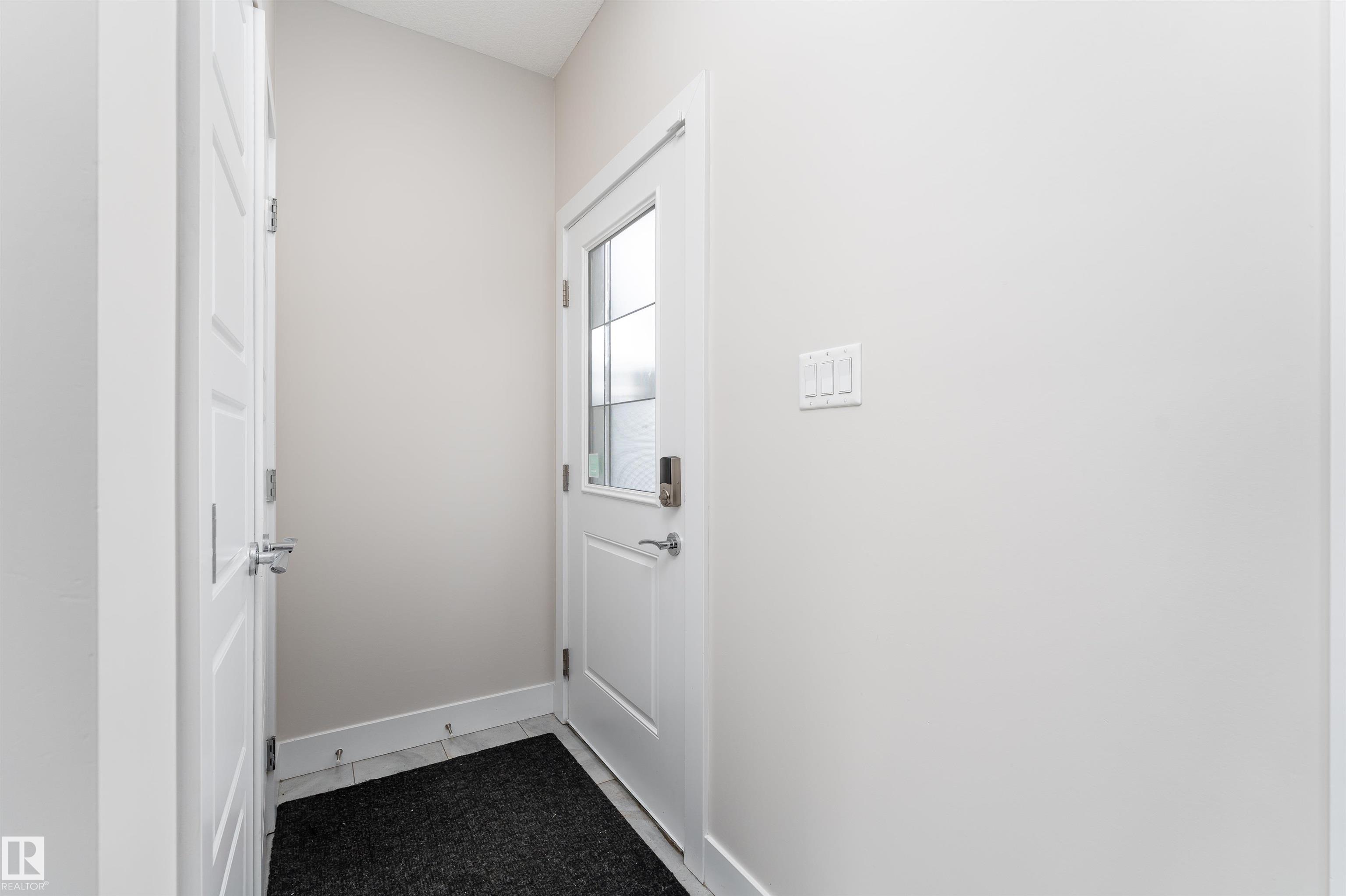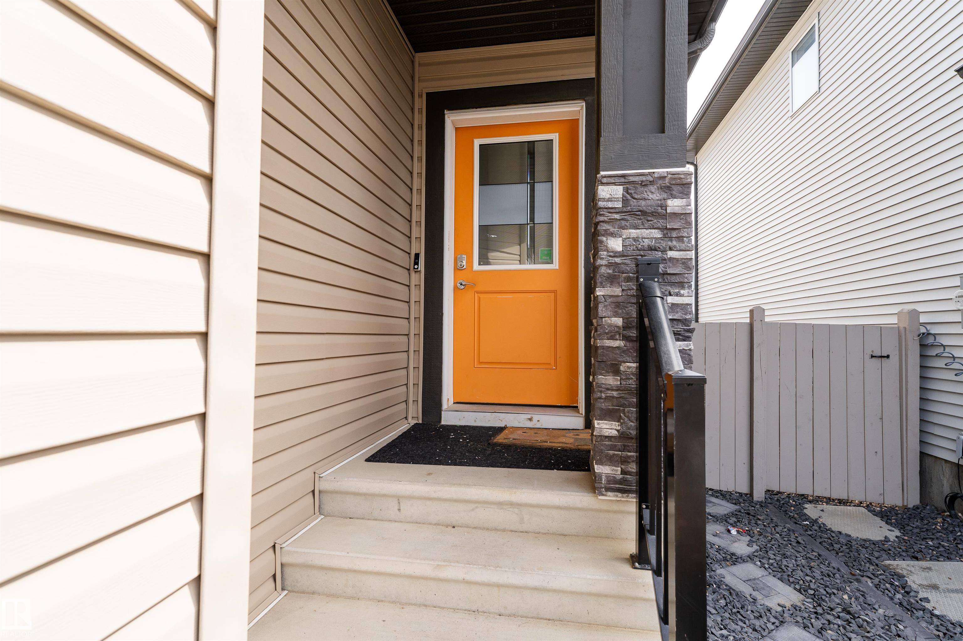 Be inspired by this modern and vibrant half duplex in McConachie with a double attached garage and over 2200 sq ft of living space designed for a growing family. The open concept main floor features a spacious living room centered around an electric fireplace with floor to ceiling tile. The kitchen showcases beautiful cabinetry, white quartz countertops, and brand new stainless steel appliances, all next to a dining nook that comfortably seats six. A two piece bath completes the main level. Upstairs offers a versatile bonus room, a large primary suite with a four piece ensuite and walk in closet with custom shelving, plus two more bedrooms, another full bath, and convenient upper laundry. The fully finished basement has a separate SIDE entrance, a bedroom, full bath, and rec space perfect for guests or future suite potential. Enjoy a landscaped yard with a deck. Freshly painted and move in ready.