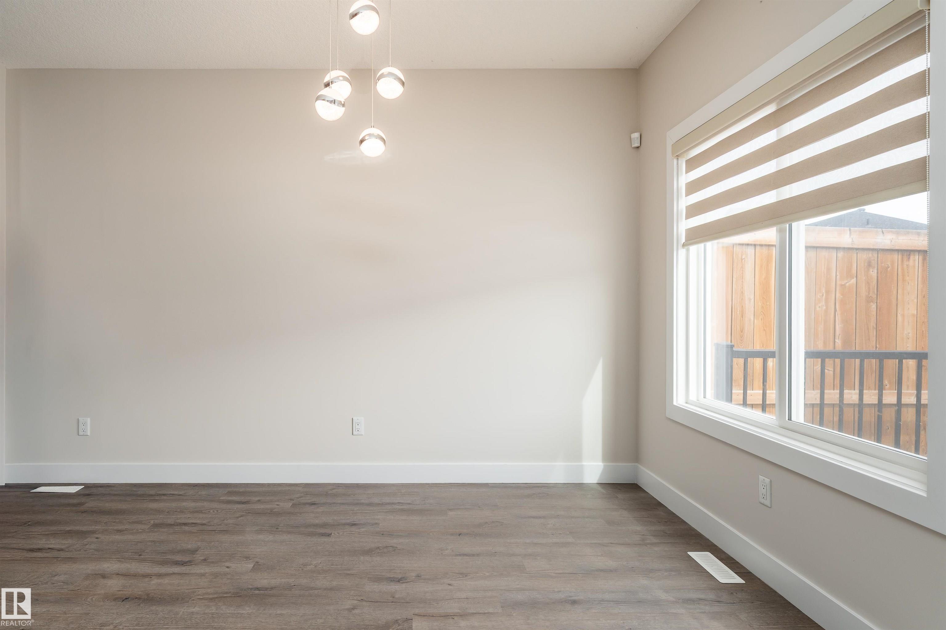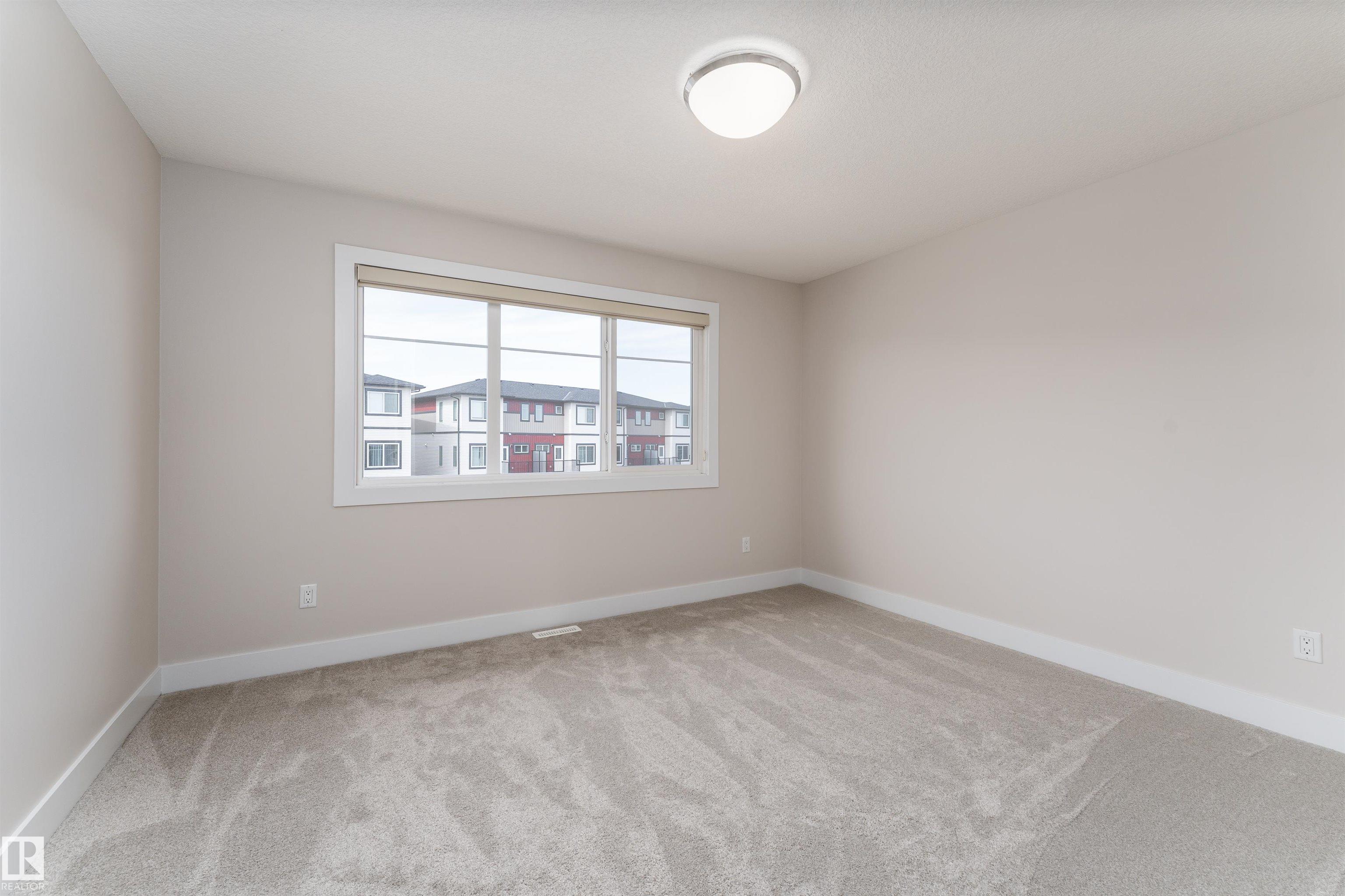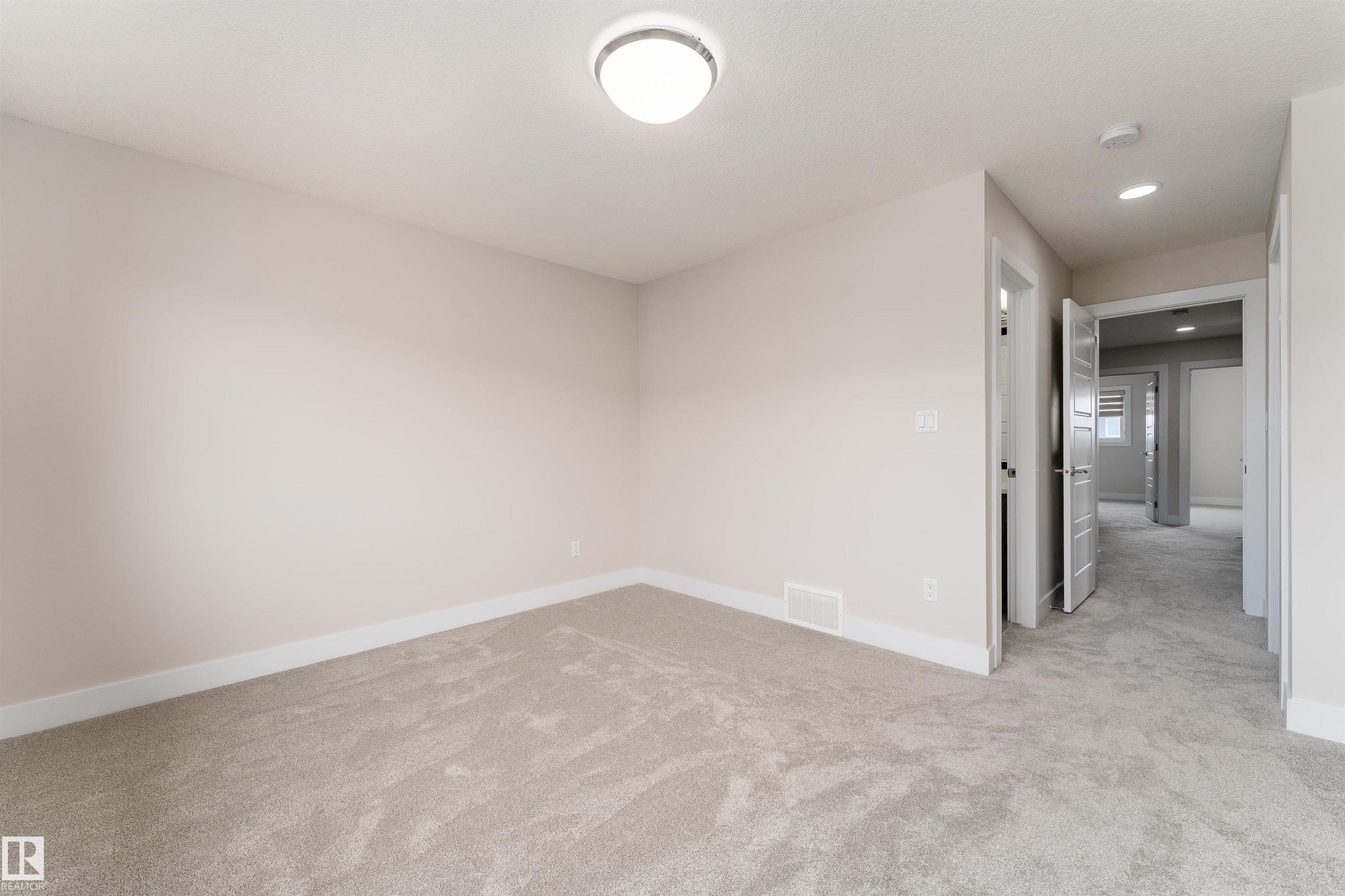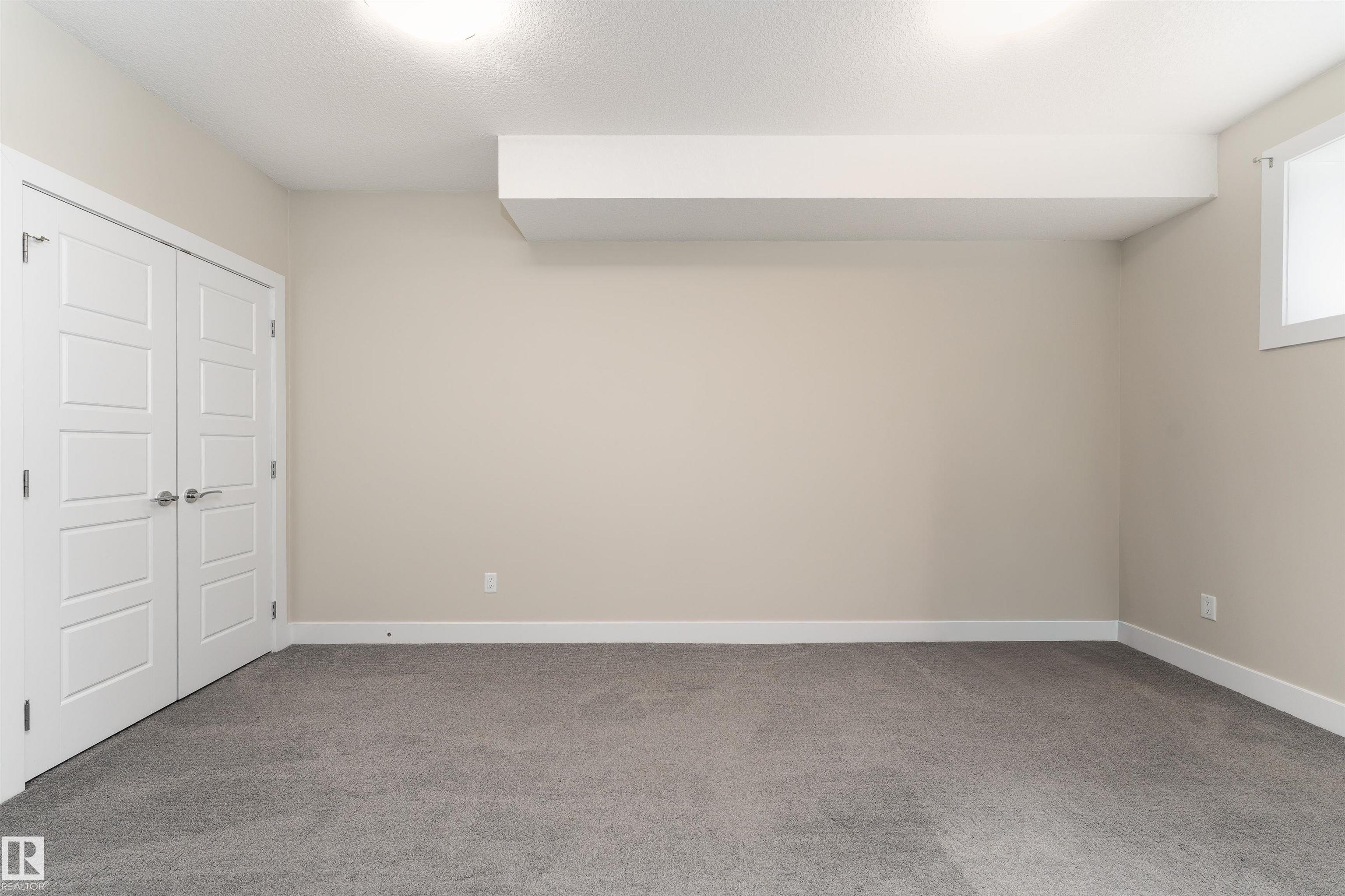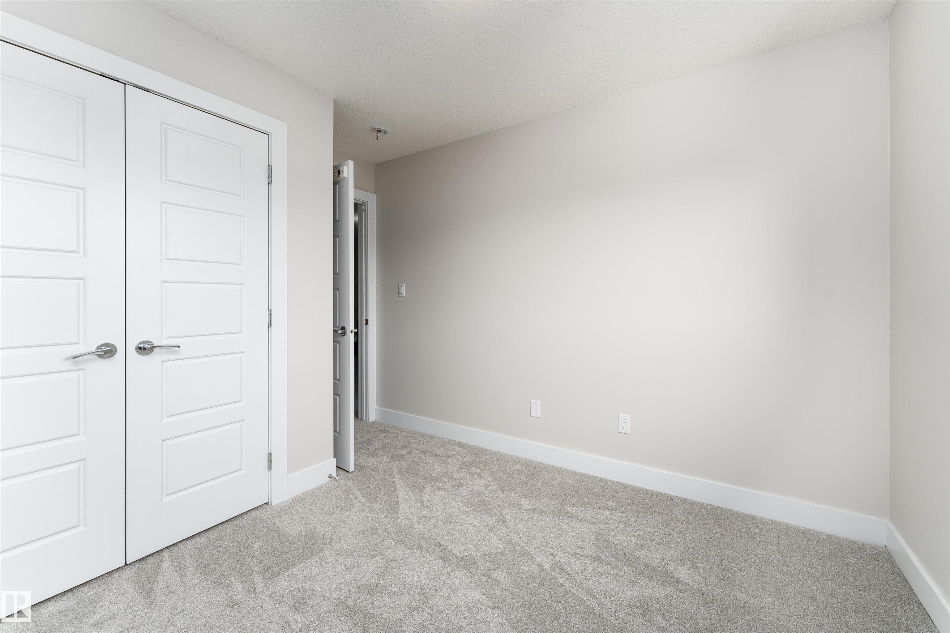 Be inspired by this modern and vibrant half duplex in McConachie with a double attached garage and over 2200 sq ft of living space designed for a growing family. The open concept main floor features a spacious living room centered around an electric fireplace with floor to ceiling tile. The kitchen showcases beautiful cabinetry, white quartz countertops, and brand new stainless steel appliances, all next to a dining nook that comfortably seats six. A two piece bath completes the main level. Upstairs offers a versatile bonus room, a large primary suite with a four piece ensuite and walk in closet with custom shelving, plus two more bedrooms, another full bath, and convenient upper laundry. The fully finished basement has a separate SIDE entrance, a bedroom, full bath, and rec space perfect for guests or future suite potential. Enjoy a landscaped yard with a deck. Freshly painted and move in ready.