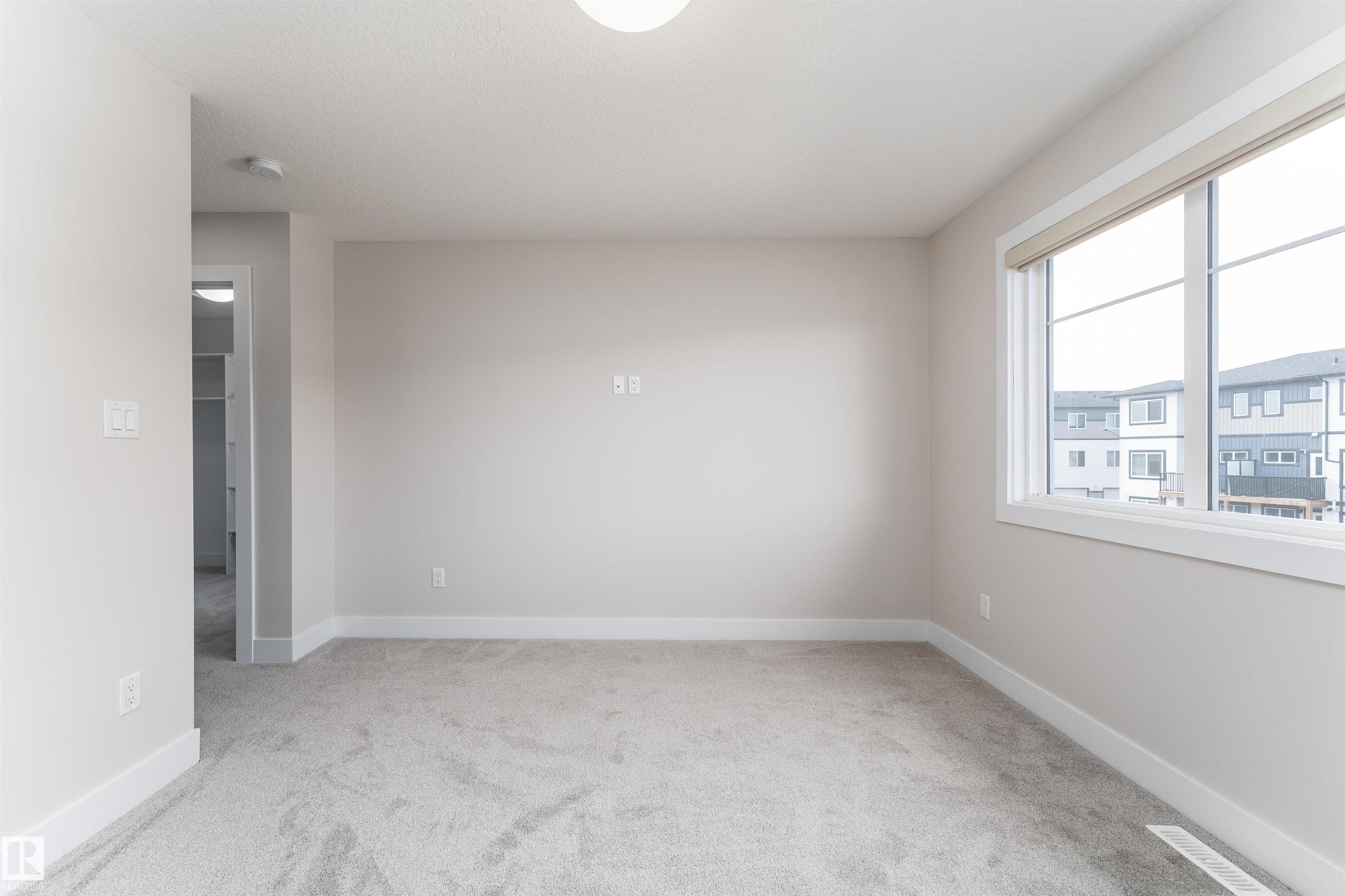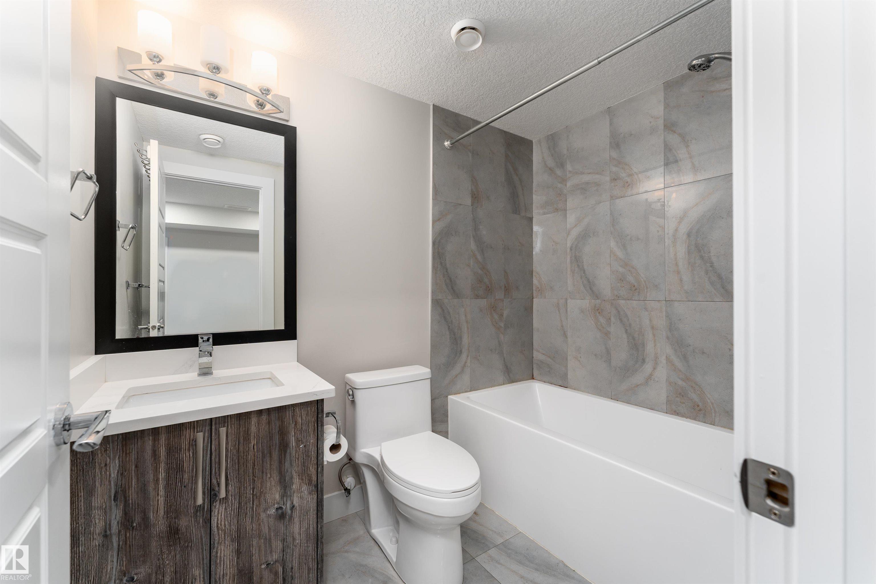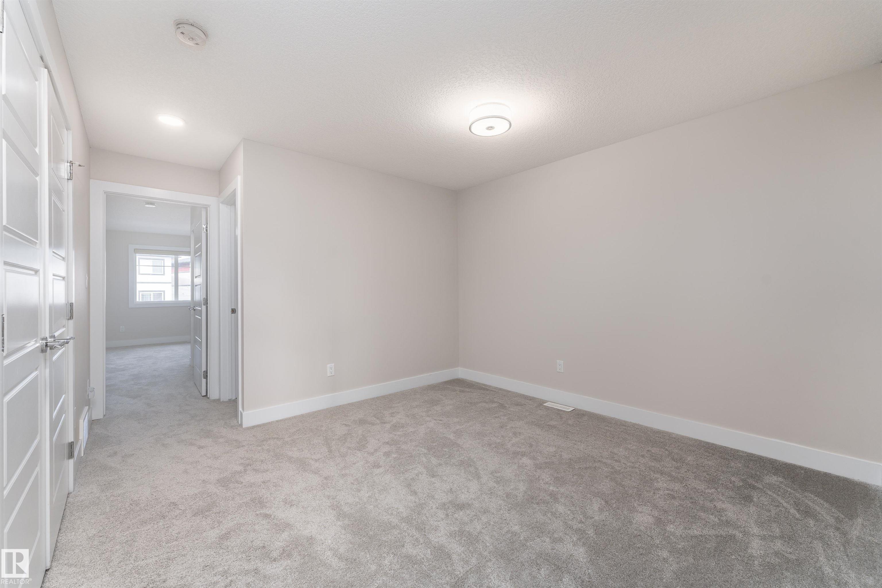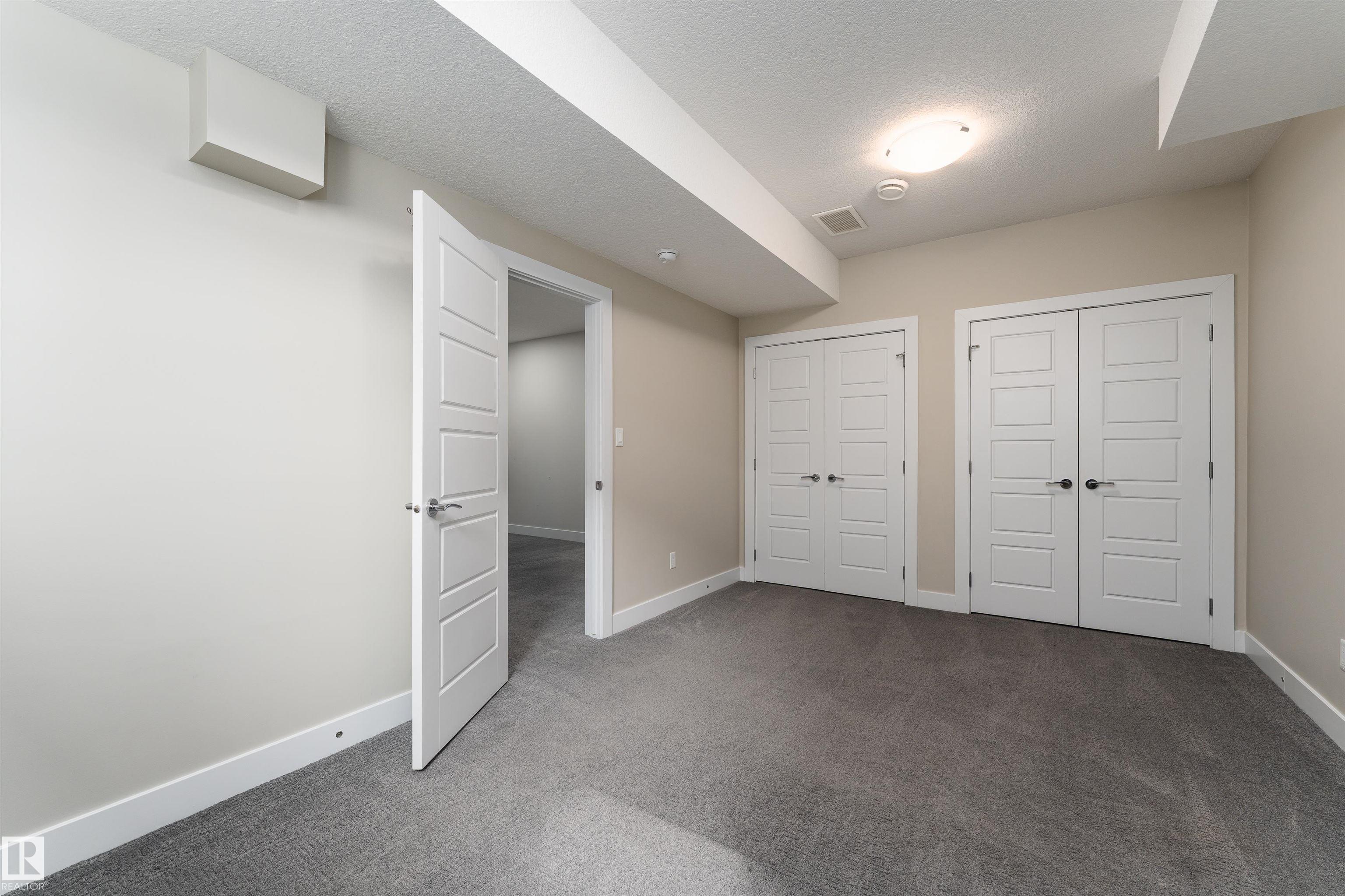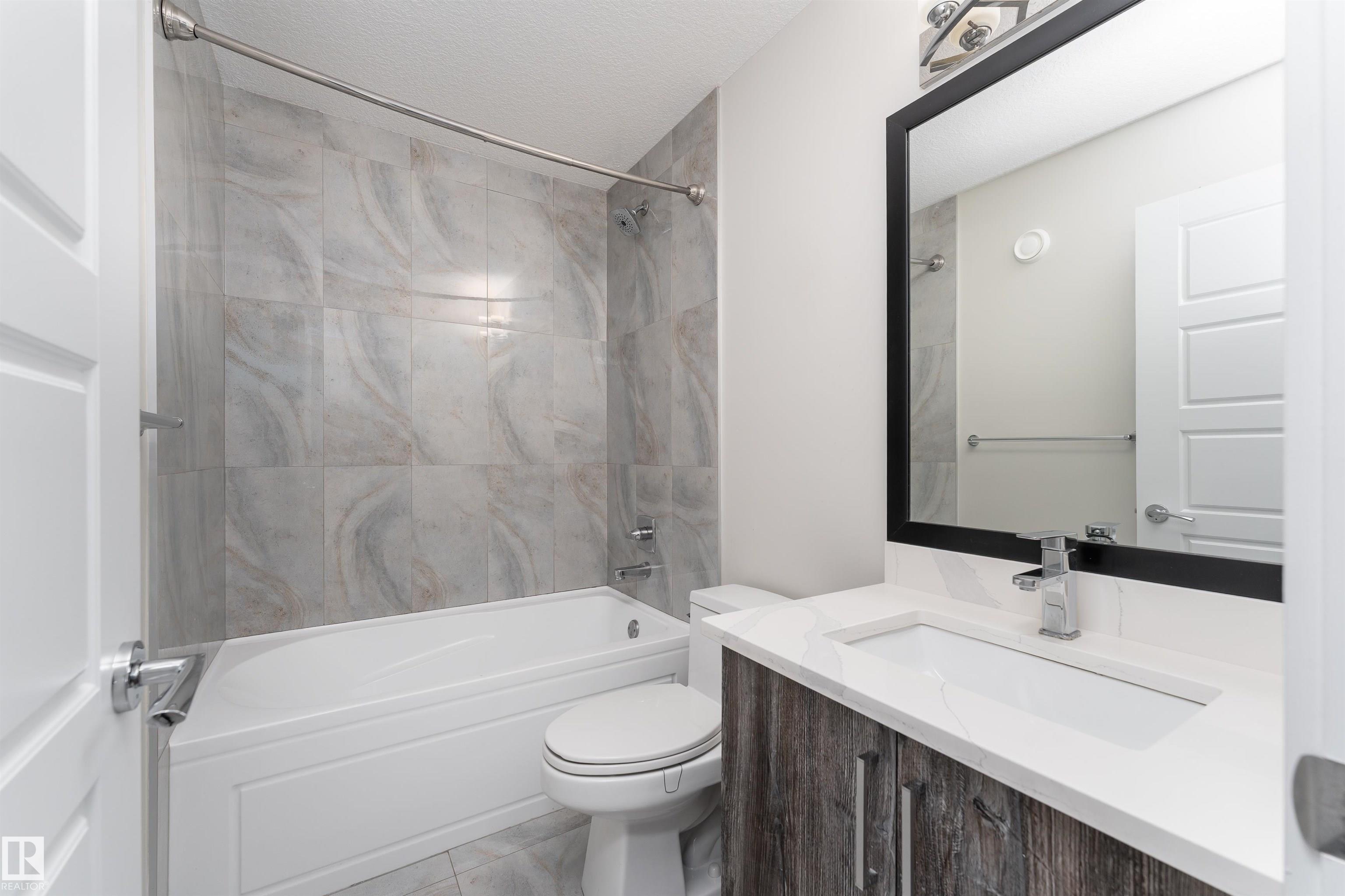 Be inspired by this modern and vibrant half duplex in McConachie with a double attached garage and over 2200 sq ft of living space designed for a growing family. The open concept main floor features a spacious living room centered around an electric fireplace with floor to ceiling tile. The kitchen showcases beautiful cabinetry, white quartz countertops, and brand new stainless steel appliances, all next to a dining nook that comfortably seats six. A two piece bath completes the main level. Upstairs offers a versatile bonus room, a large primary suite with a four piece ensuite and walk in closet with custom shelving, plus two more bedrooms, another full bath, and convenient upper laundry. The fully finished basement has a separate SIDE entrance, a bedroom, full bath, and rec space perfect for guests or future suite potential. Enjoy a landscaped yard with a deck. Freshly painted and move in ready.