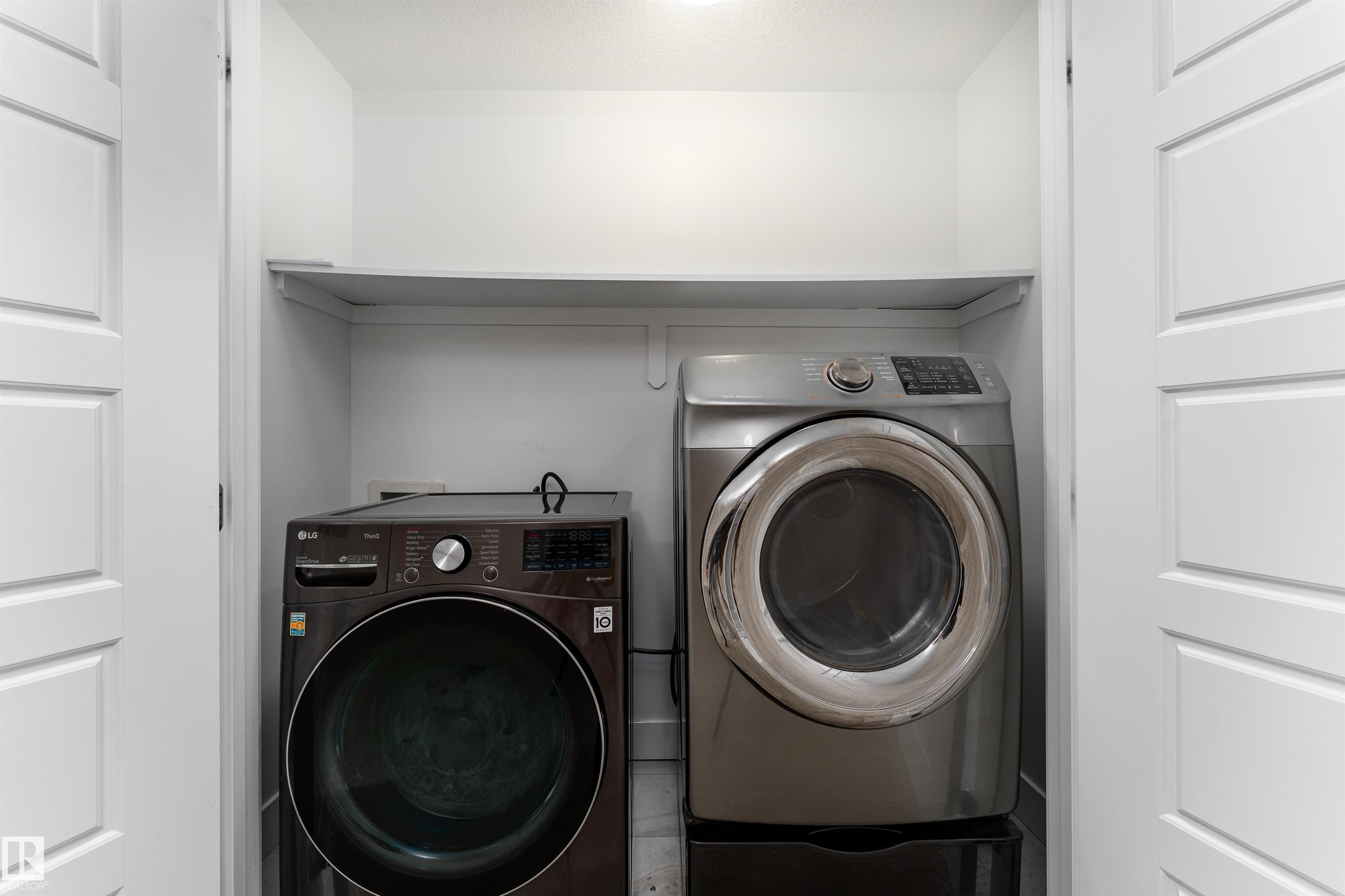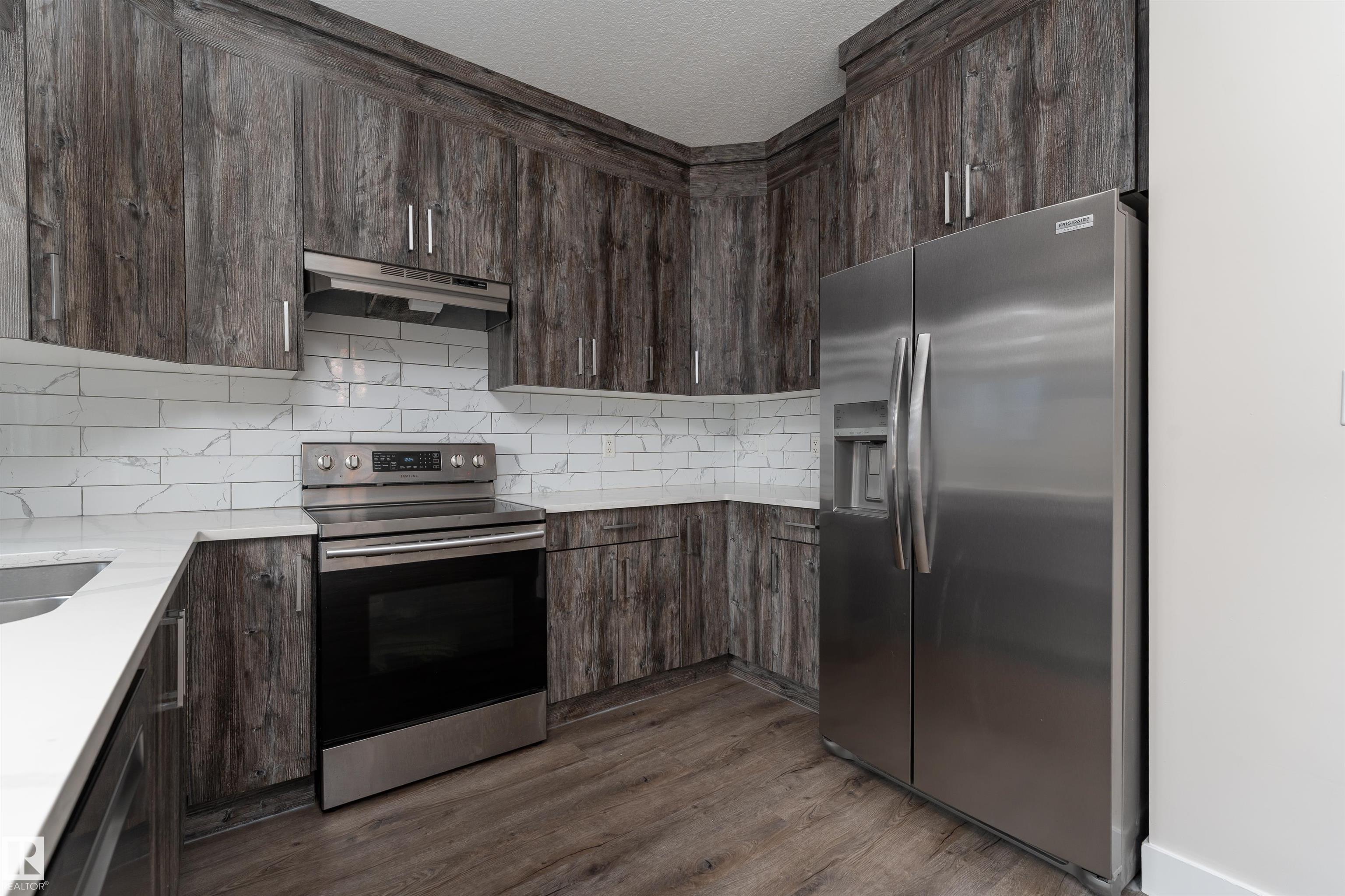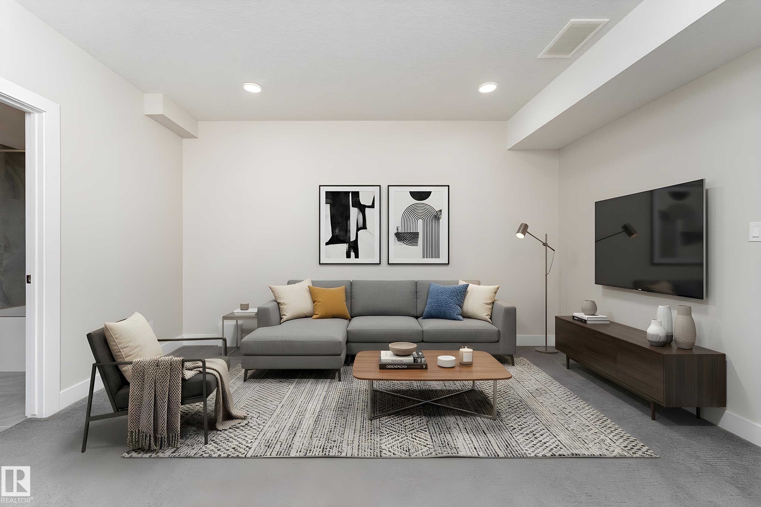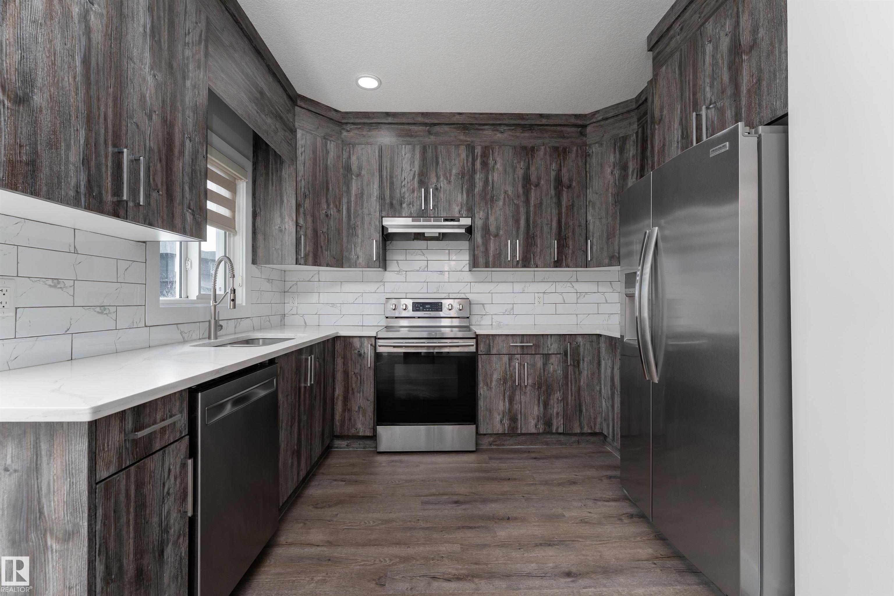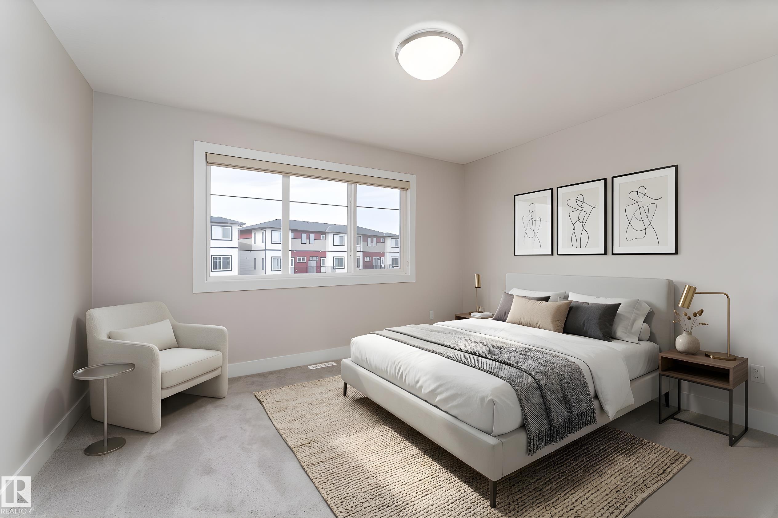 Be inspired by this modern and vibrant half duplex in McConachie with a double attached garage and over 2200 sq ft of living space designed for a growing family. The open concept main floor features a spacious living room centered around an electric fireplace with floor to ceiling tile. The kitchen showcases beautiful cabinetry, white quartz countertops, and brand new stainless steel appliances, all next to a dining nook that comfortably seats six. A two piece bath completes the main level. Upstairs offers a versatile bonus room, a large primary suite with a four piece ensuite and walk in closet with custom shelving, plus two more bedrooms, another full bath, and convenient upper laundry. The fully finished basement has a separate SIDE entrance, a bedroom, full bath, and rec space perfect for guests or future suite potential. Enjoy a landscaped yard with a deck. Freshly painted and move in ready.