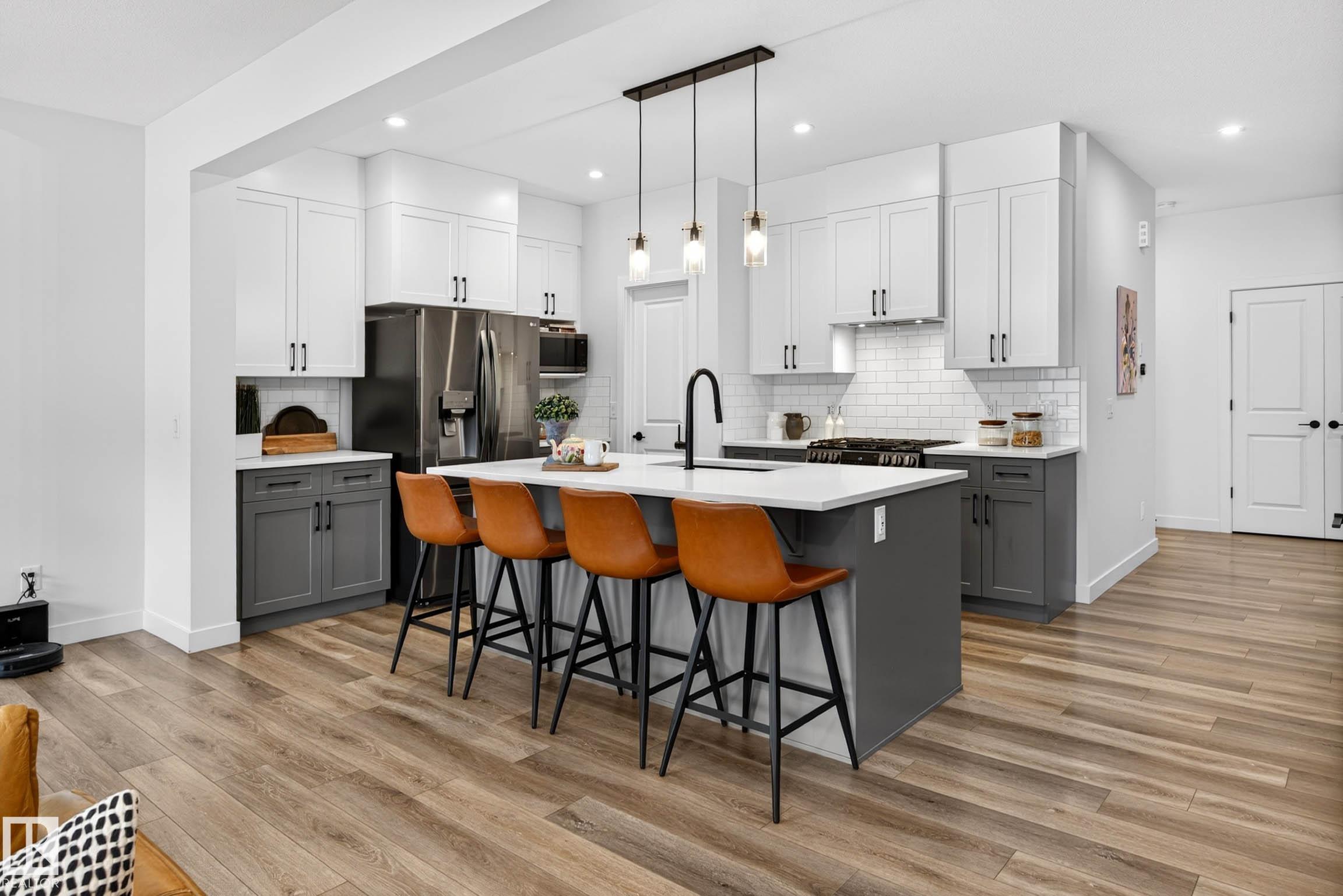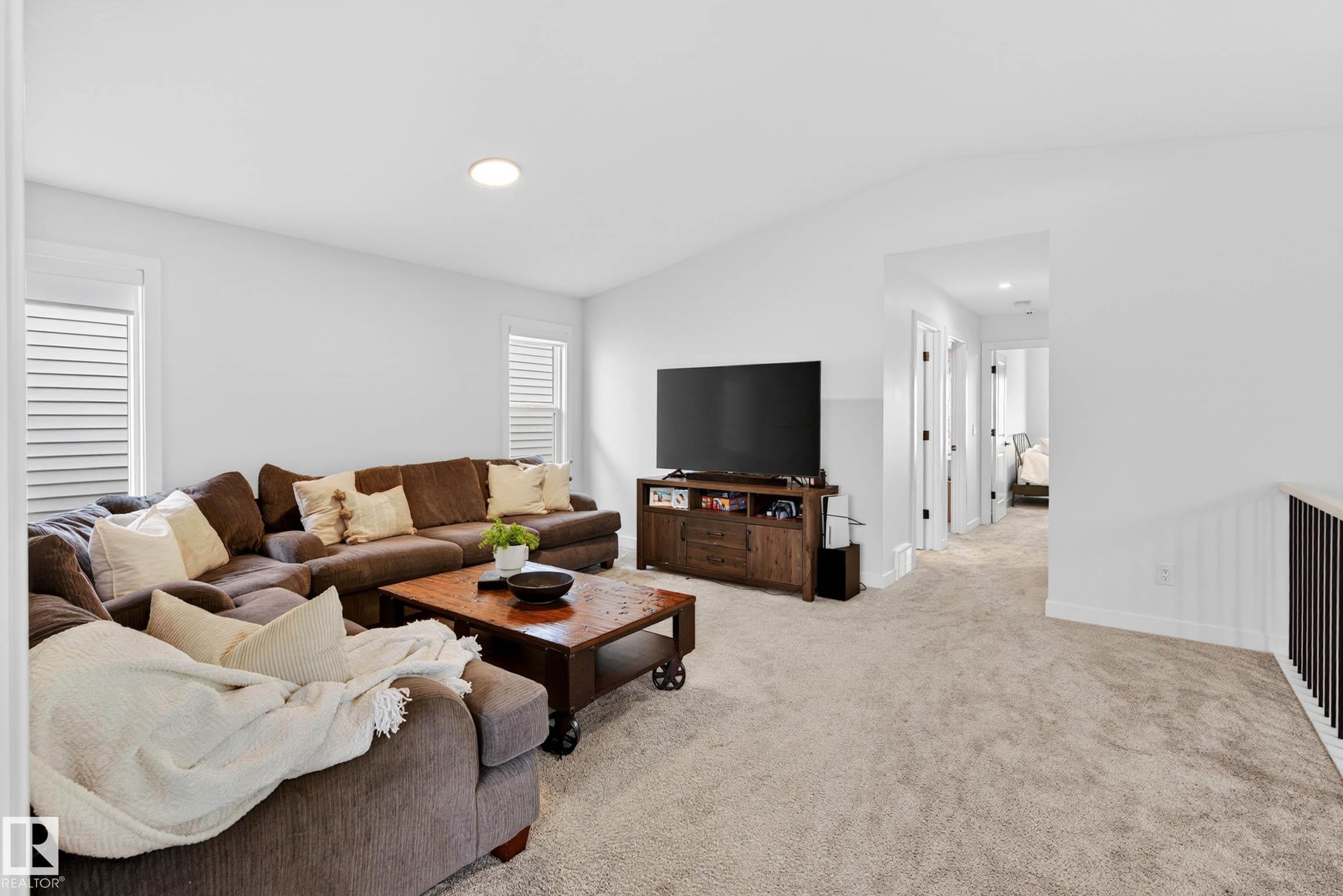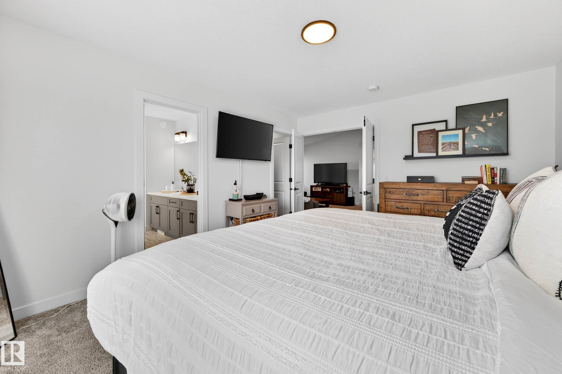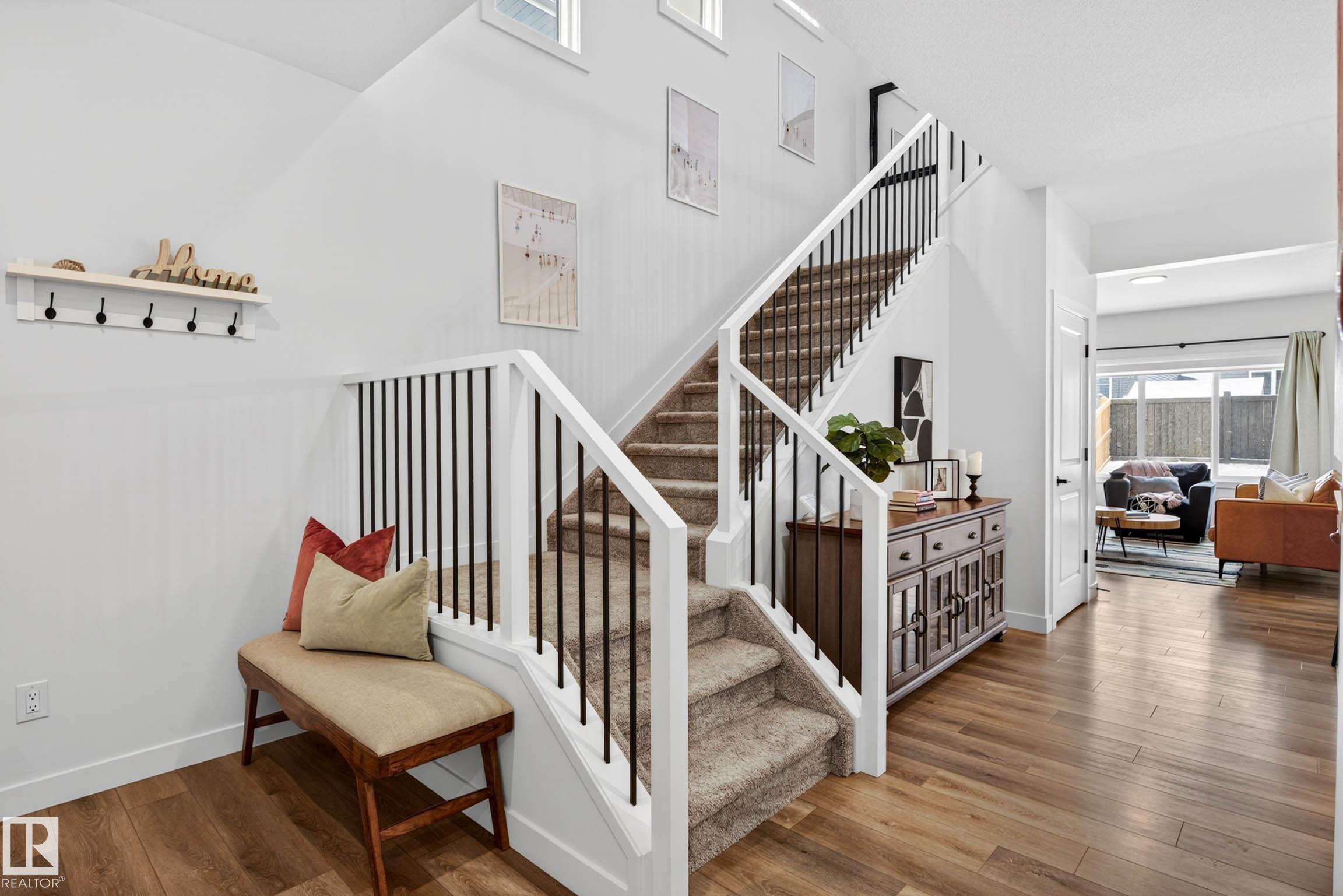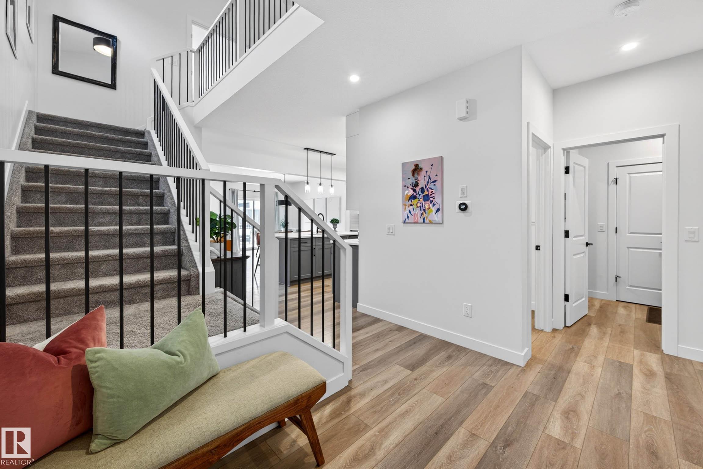 Elevate your lifestyle in this better-than-new 2-storey sanctuary, a masterclass in modern luxury located in the sought-after community of Prescott, Spruce Grove. This 3-bedroom, 2.5-bathroom gem redefines sophistication with airy 9ft ceilings and a show-stopping chef?s kitchen, complete with a massive quartz island, two-tone cabinetry, and a clever walk-through pantry. Sunlight pours through the window-lined living room, anchored by a sleek electric fireplace, while the upper level reveals a high-drama bonus room with soaring vaulted ceilings. The primary suite is a private spa retreat, featuring a lavish 5-piece ensuite with quartz counters and a bidet. Savvy investors will love the unfinished basement?s separate side entry and large windows, perfect for a future legal suite. Outside, enjoy summer nights on your two-tiered deck in a partially fenced yard. Finished with a 220V powered double garage and Nest tech, this home is perfectly situated near the expansive Heritage Grove Park trail system.