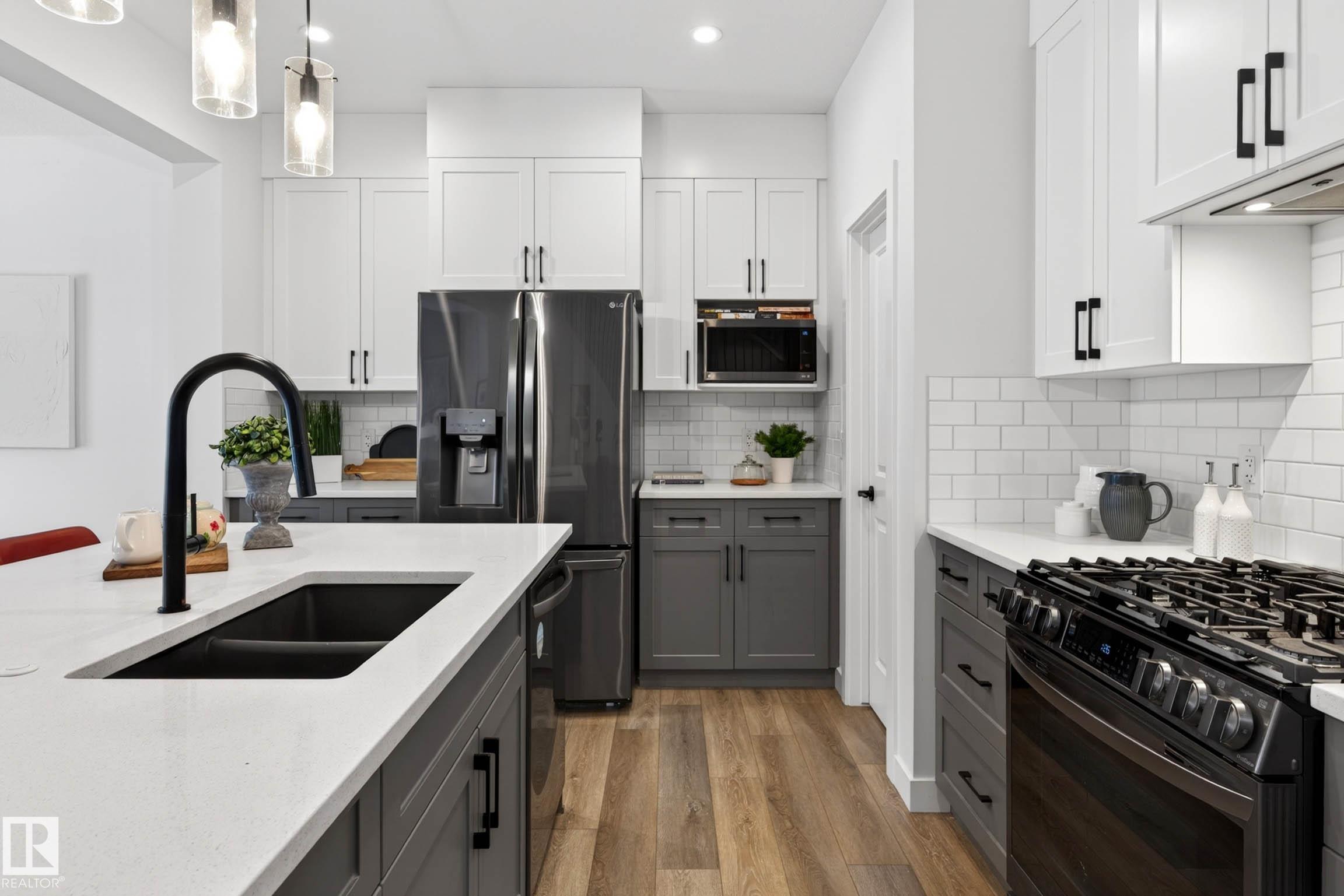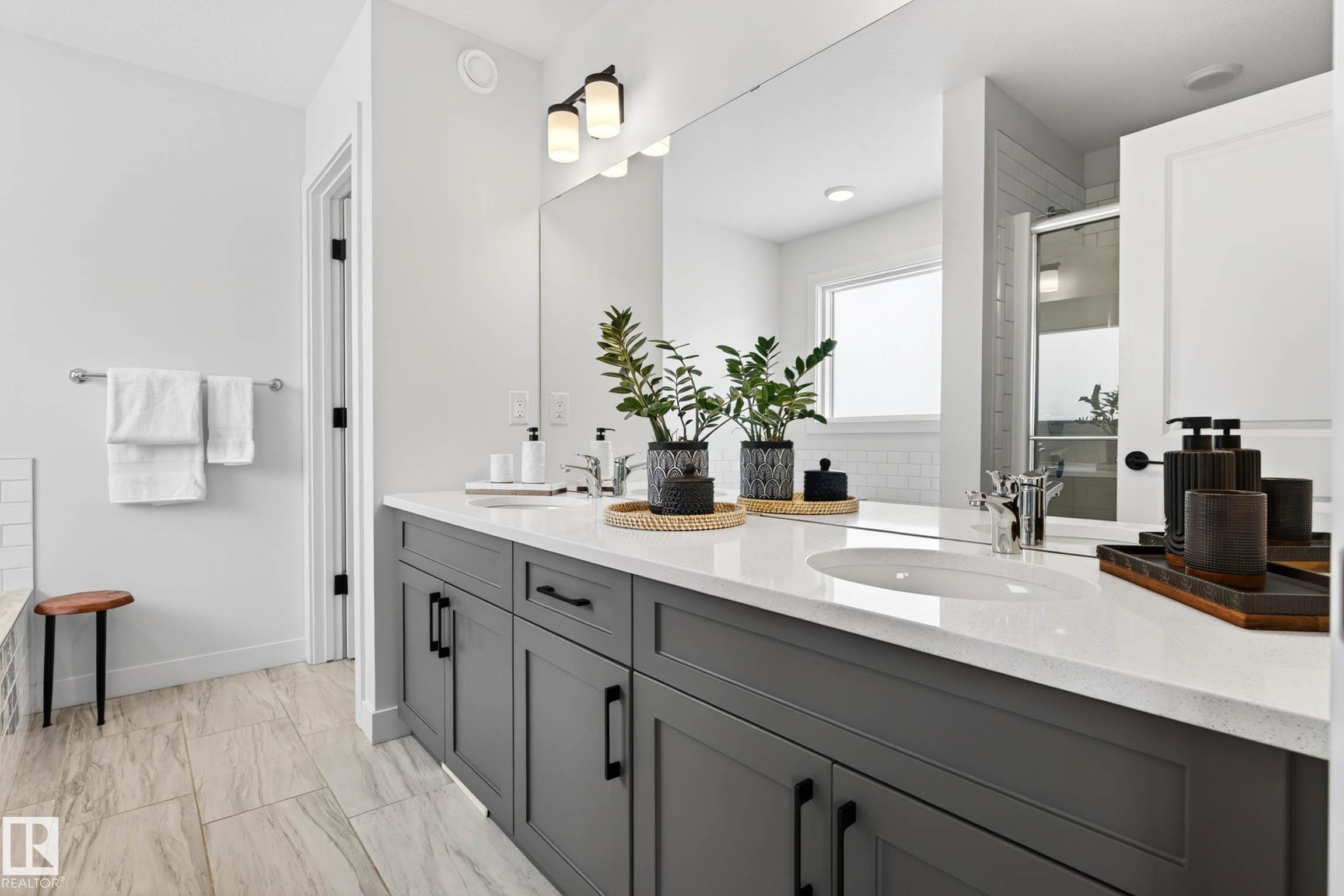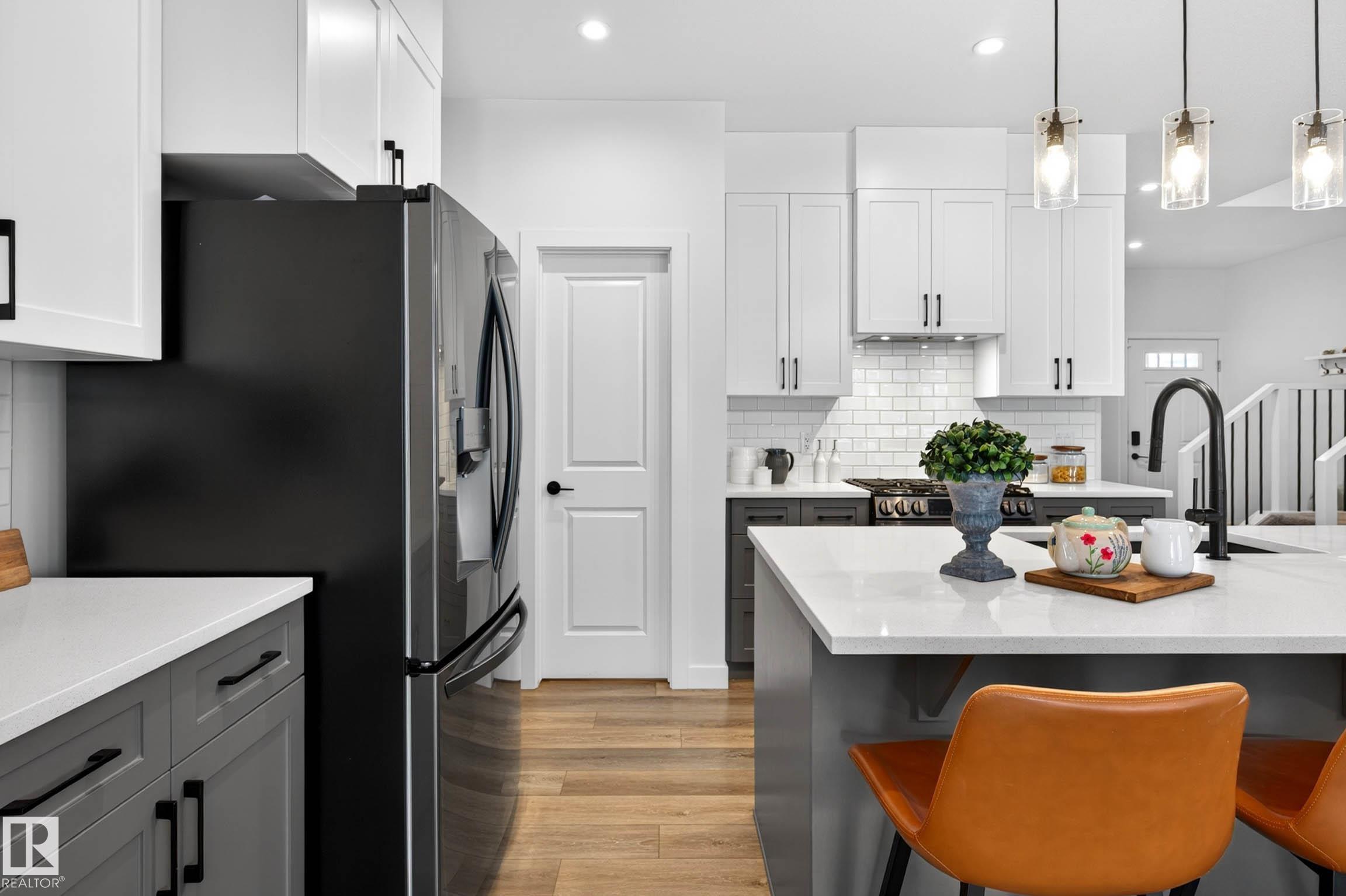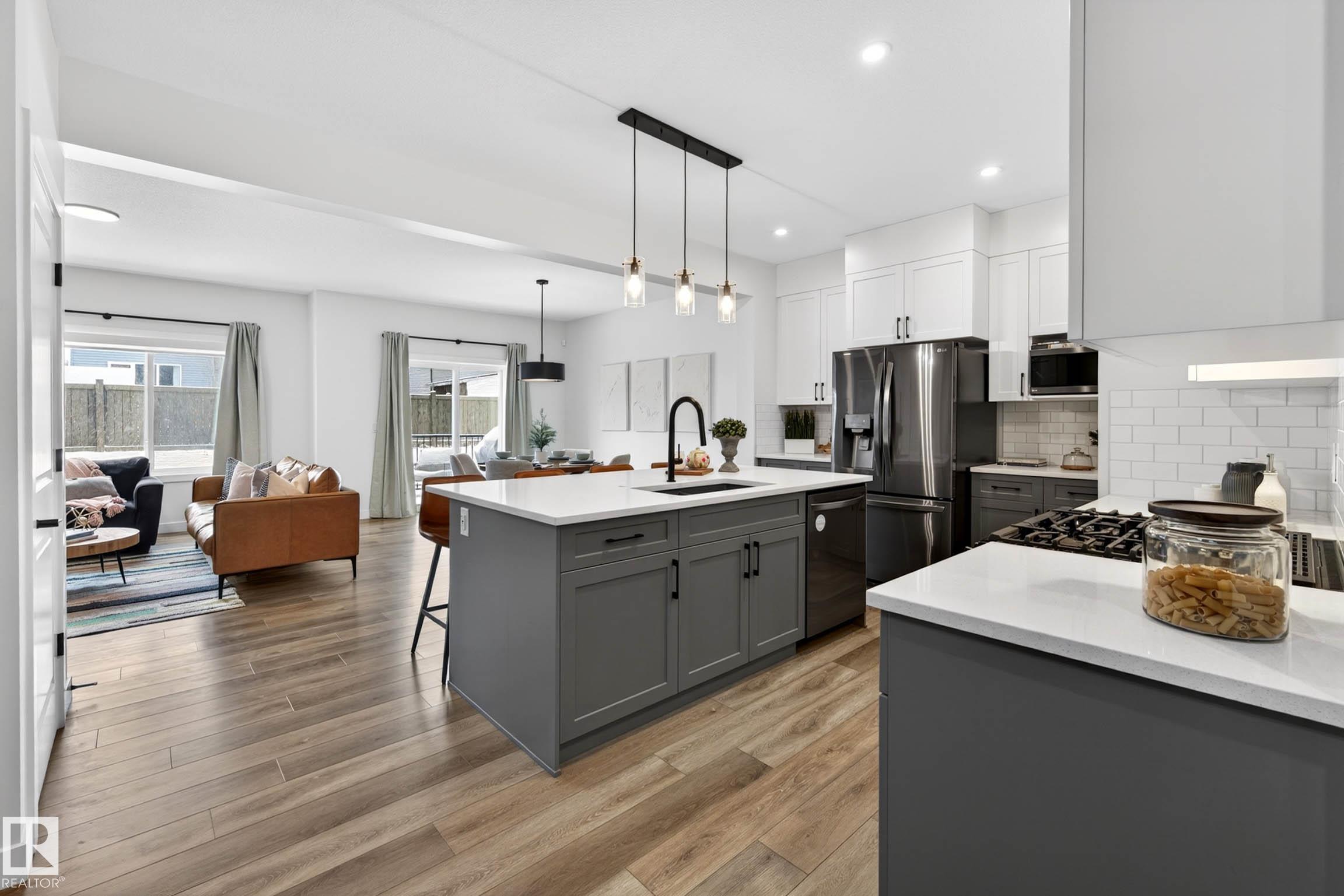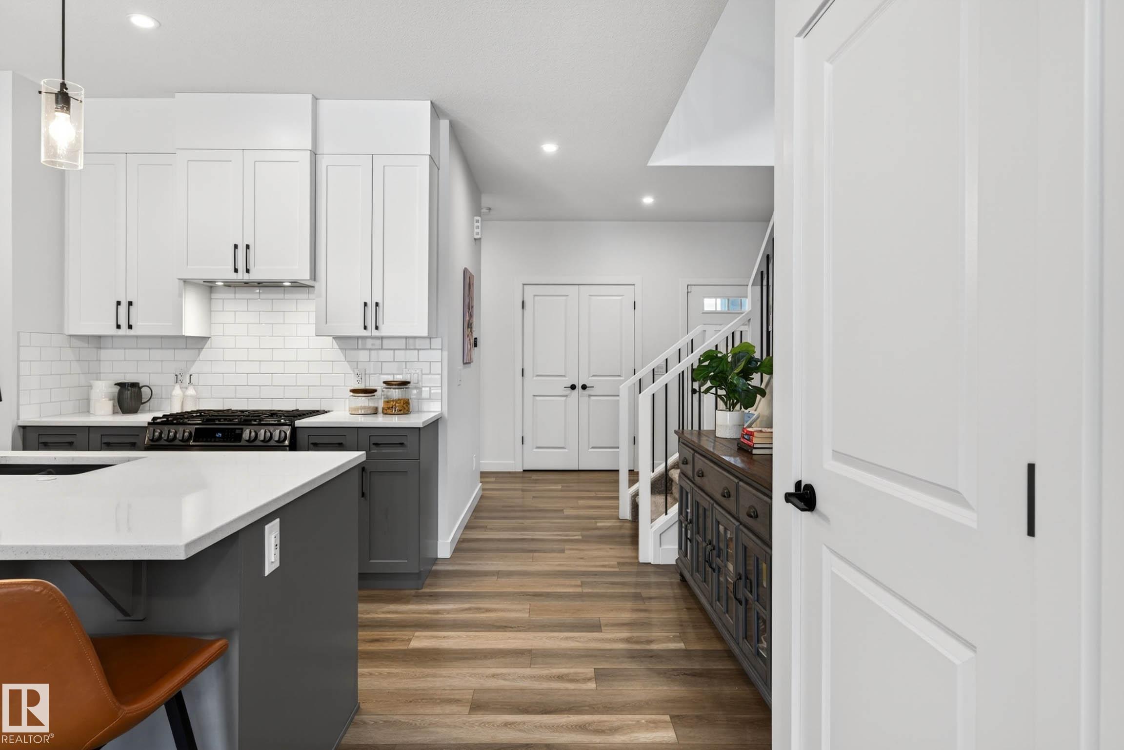 Elevate your lifestyle in this better-than-new 2-storey sanctuary, a masterclass in modern luxury located in the sought-after community of Prescott, Spruce Grove. This 3-bedroom, 2.5-bathroom gem redefines sophistication with airy 9ft ceilings and a show-stopping chef?s kitchen, complete with a massive quartz island, two-tone cabinetry, and a clever walk-through pantry. Sunlight pours through the window-lined living room, anchored by a sleek electric fireplace, while the upper level reveals a high-drama bonus room with soaring vaulted ceilings. The primary suite is a private spa retreat, featuring a lavish 5-piece ensuite with quartz counters and a bidet. Savvy investors will love the unfinished basement?s separate side entry and large windows, perfect for a future legal suite. Outside, enjoy summer nights on your two-tiered deck in a partially fenced yard. Finished with a 220V powered double garage and Nest tech, this home is perfectly situated near the expansive Heritage Grove Park trail system.