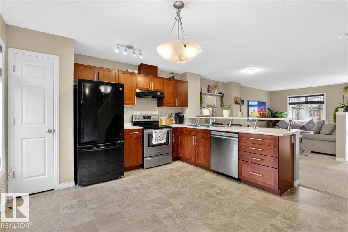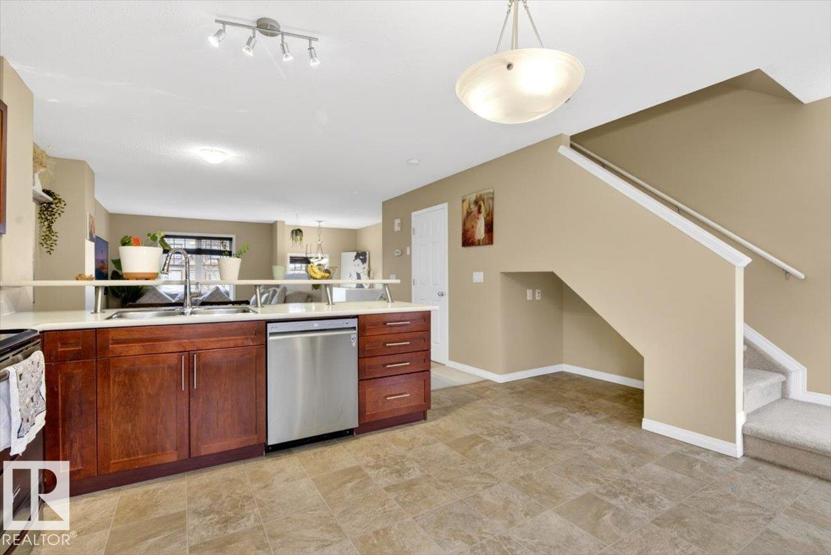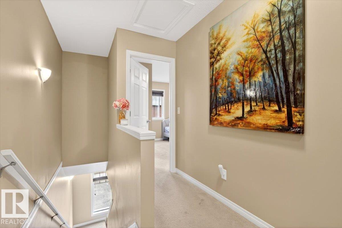 This beautifully designed home offers comfort, functionality, and natural light in a convenient location close to shopping, dining, and transit. Welcome to the desirable community of South Terwillegar. With charming curb appeal behind a white picket fence on a tree-lined street, this townhouse features a bright foyer with soaring ceilings and a soft neutral palette. The main floor includes a spacious living room, along with an open-concept dining area and kitchen, plus a 2-piece guest bath. Upstairs, you?ll find a versatile den or flex space and two generously sized primary bedrooms, each with its own private ensuite. The lower level offers laundry, storage, and direct access to the double attached garage. Thoughtfully laid out with a clean, modern feel, this home is ready to reflect your personal style. Welcome to Mosaic Towne Square.