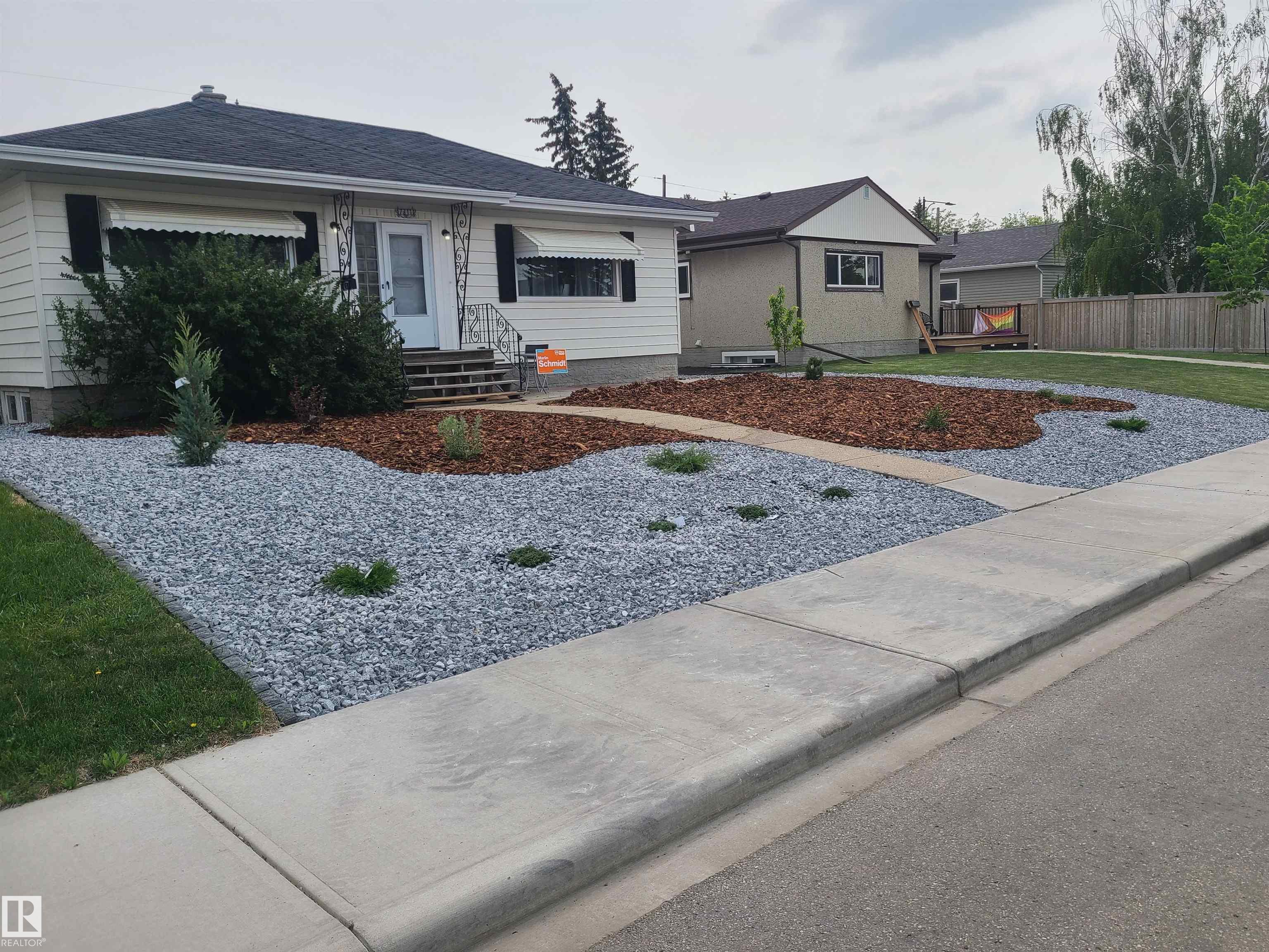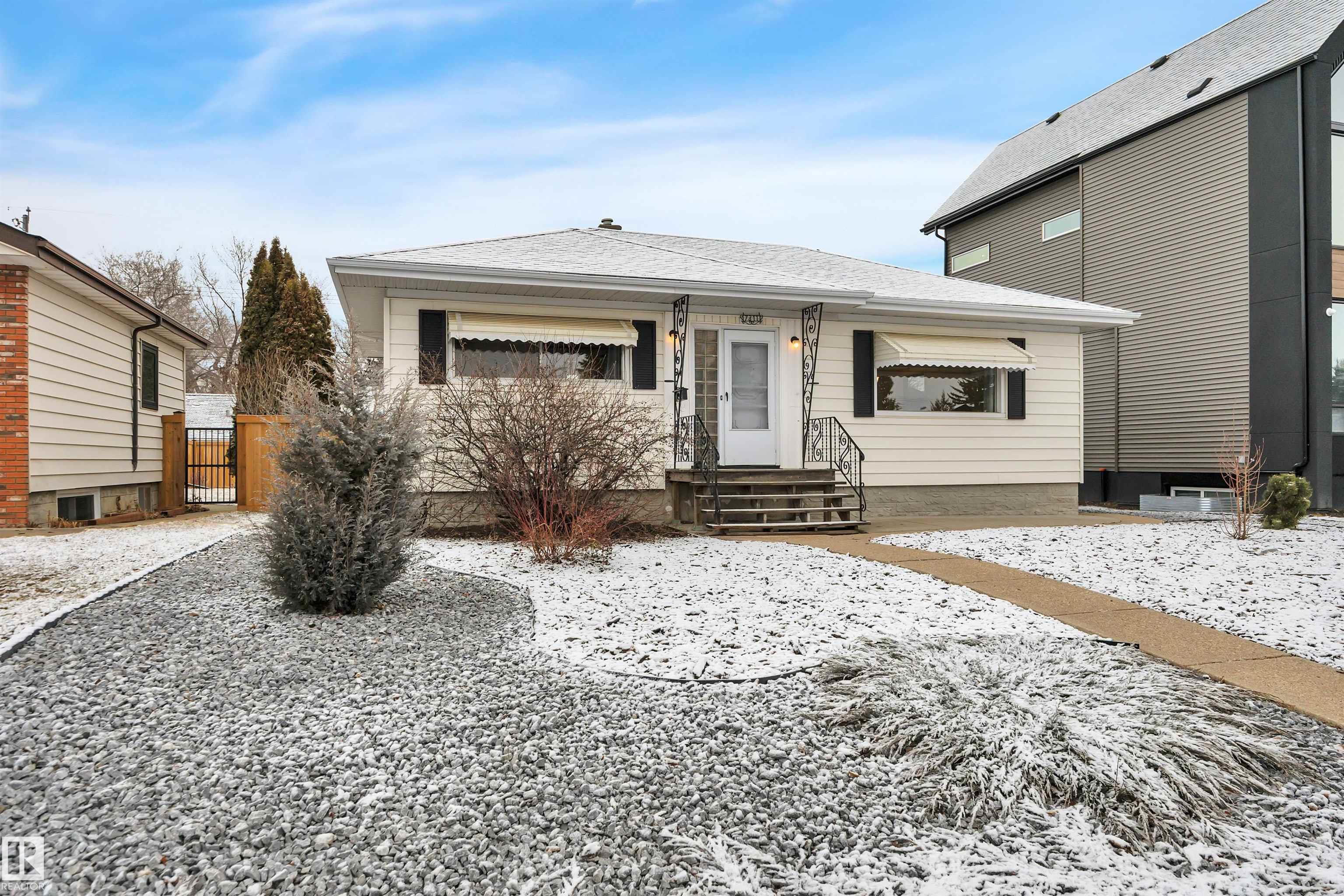 STUNNING AVONMORE LOCATION! Adorable TURN KEY ART DECO 1950s VIBE in this nearly 1000 SF bungalow. A mother-in-law suite in the basement boasts a large rumpus room, a three-piece bath and small kitchenette. Electric fireplace in the basement pushes out loads of heat. Two bedrooms up with a super cute Living Room/Dining Room/Kitchen overlooking an east facing backyard. All the heavy lifting is done. FRESHLY PAINTED and IMMACULATE. Minutes to MILL CREEK RAVINE! MAINTENANCE-FREE LANDSCAPED FRONT YARD with rocks, trees and shrubs. Lot size is 52' X 110'. NEW SHINGLES on the house & garage (2025). Lovely. Brand new microwave hood fan (2025). NEW FENCING on both sides of the yard. HOT WATER (2017) with a Mid-efficient TRANE furnace. Backyard patio and firepit. Washer and Dryer are newer. Upgraded attic insulation. Just waiting for your personal touch! Wide streets. Loads of parking. Close to all the amenities and an elementary school. Perfect for first time homebuyers or investors.