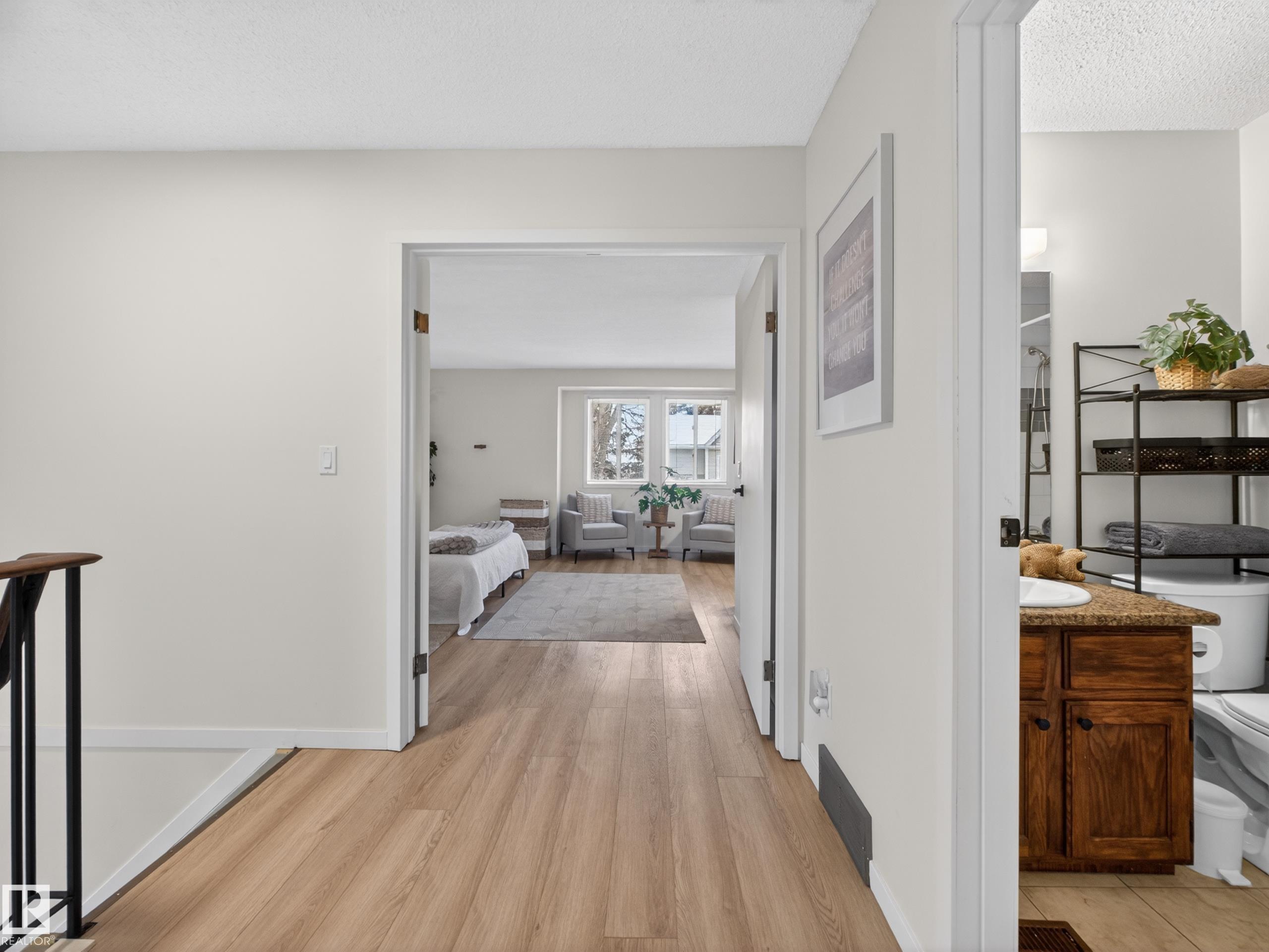~!WELCOME!~ FULLY TRANSFORMED. DESIGNER FINISHES...UNREAL LOCATION. This isn?t the home you remember?this one?s been taken down, stripped back & rebuilt with a boutique, modern edge. Luxury vinyl plank flooring throughout, fresh paint top to bottom, updated bathrooms, & statement wallpaper that brings serious personality. And the showstopper? An epic cocktail-style bar that feels straight out of a high-end lounge?perfect for entertaining or unwinding at the end of the day. Set in the heart of Woodbridge Farms?directly across from the lake, park, and walking paths?& backing a quiet green space. Inside, the layout delivers: bright open-rise staircase, oversized windows flooding the end unit with natural light, a spacious kitchen w/access to the front patio, & a large rear deck to enjoy those summer nights. The welcoming primary retreat w/double doors, large closet, & 4pc ensuite, plus two additional bedrooms. Lower level offers laundry, storage, & direct access to the single garage. Prepare to be impressed!