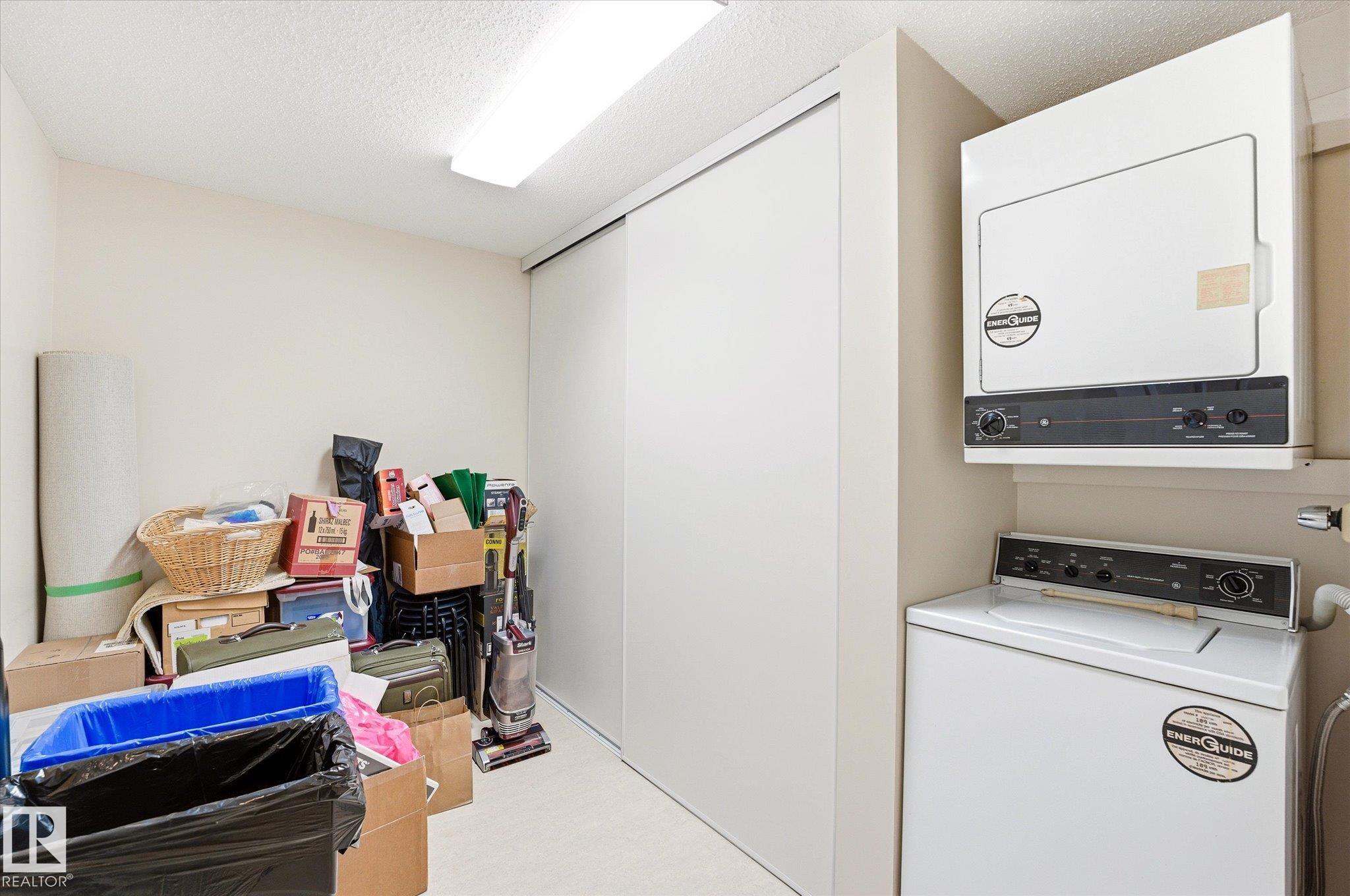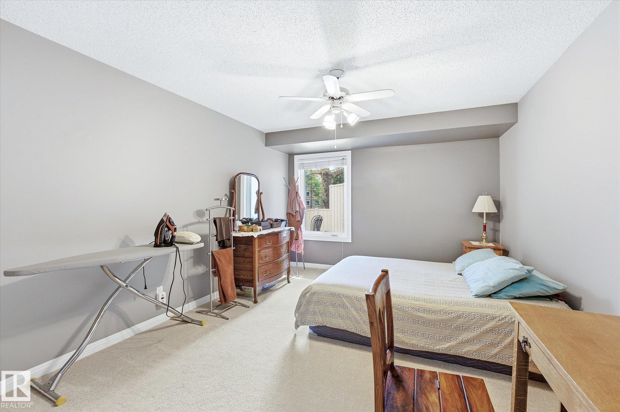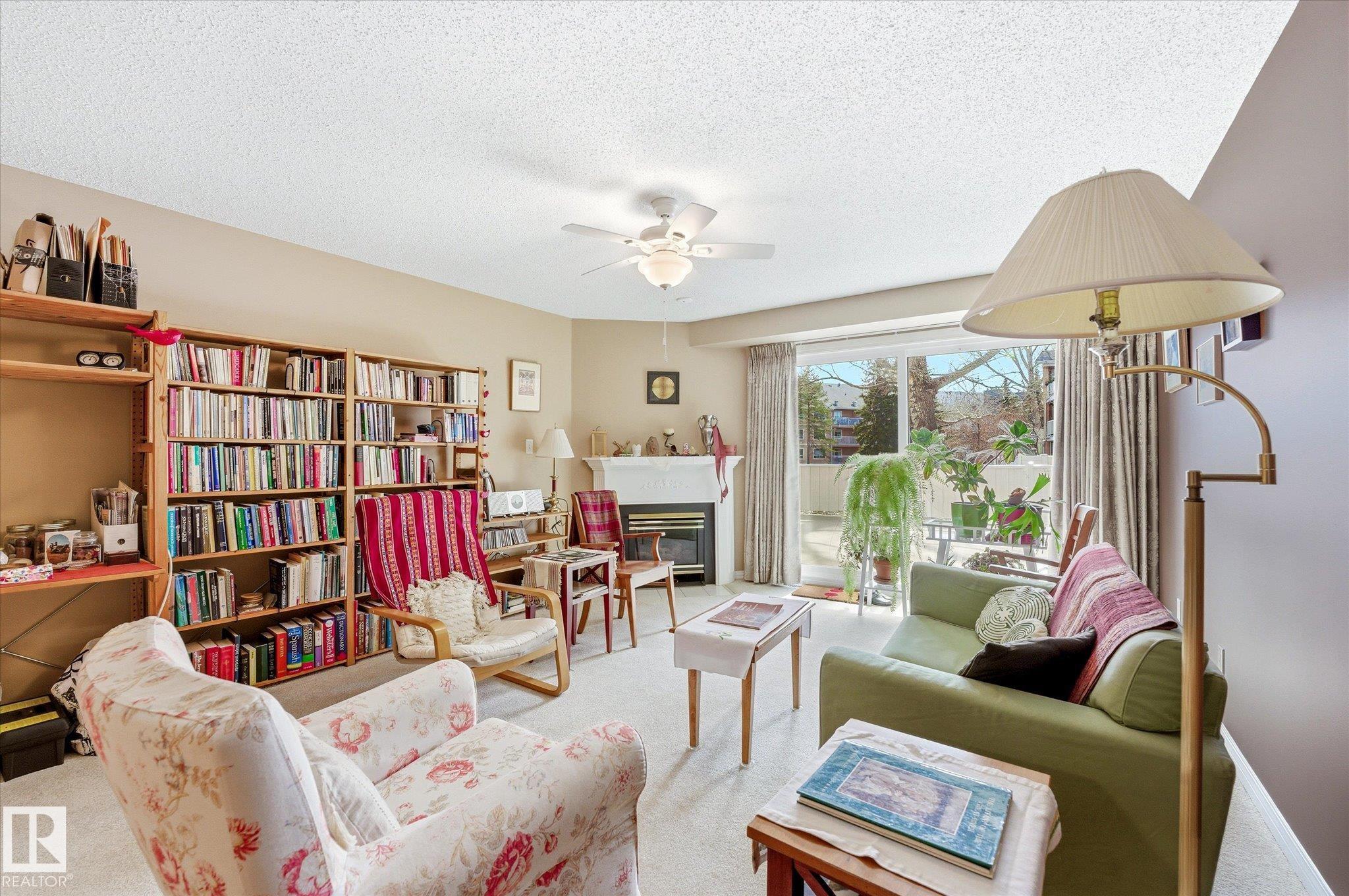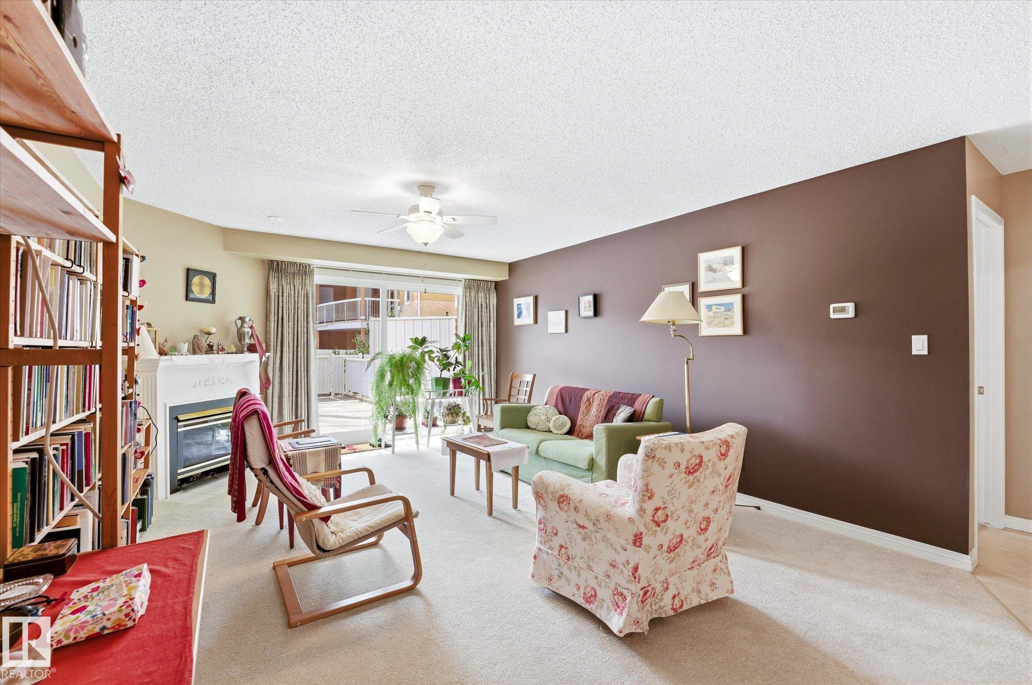 Bright, spacious, and set in a peaceful, park-like environment, this immaculate condo offers the best of both worlds convenient access to downtown with the tranquility of a private retreat. Featuring 2 large bedrooms, 2 full bathrooms, this home is ideal for professionals?whether you?re working from home or commuting with ease.Thoughtful upgrades and features include new windows and patio doors, a bright European-style kitchen with a new dishwasher & microwave open to adjoining dining area, and an inviting living room complete with a cozy corner gas fireplace.The primary suite offers comfort and functionality with dual closets and a 4 pce. ensuite. Additional highlights include in-suite laundry room, storage, and a heated parking stall. Step outside to the standout feature! An expansive balcony overlooking a beautifully landscaped private courtyard. Mature trees provide exceptional privacy, creating a serene, country-like setting right in the heart of the city. There is a gym & work room in common areas.