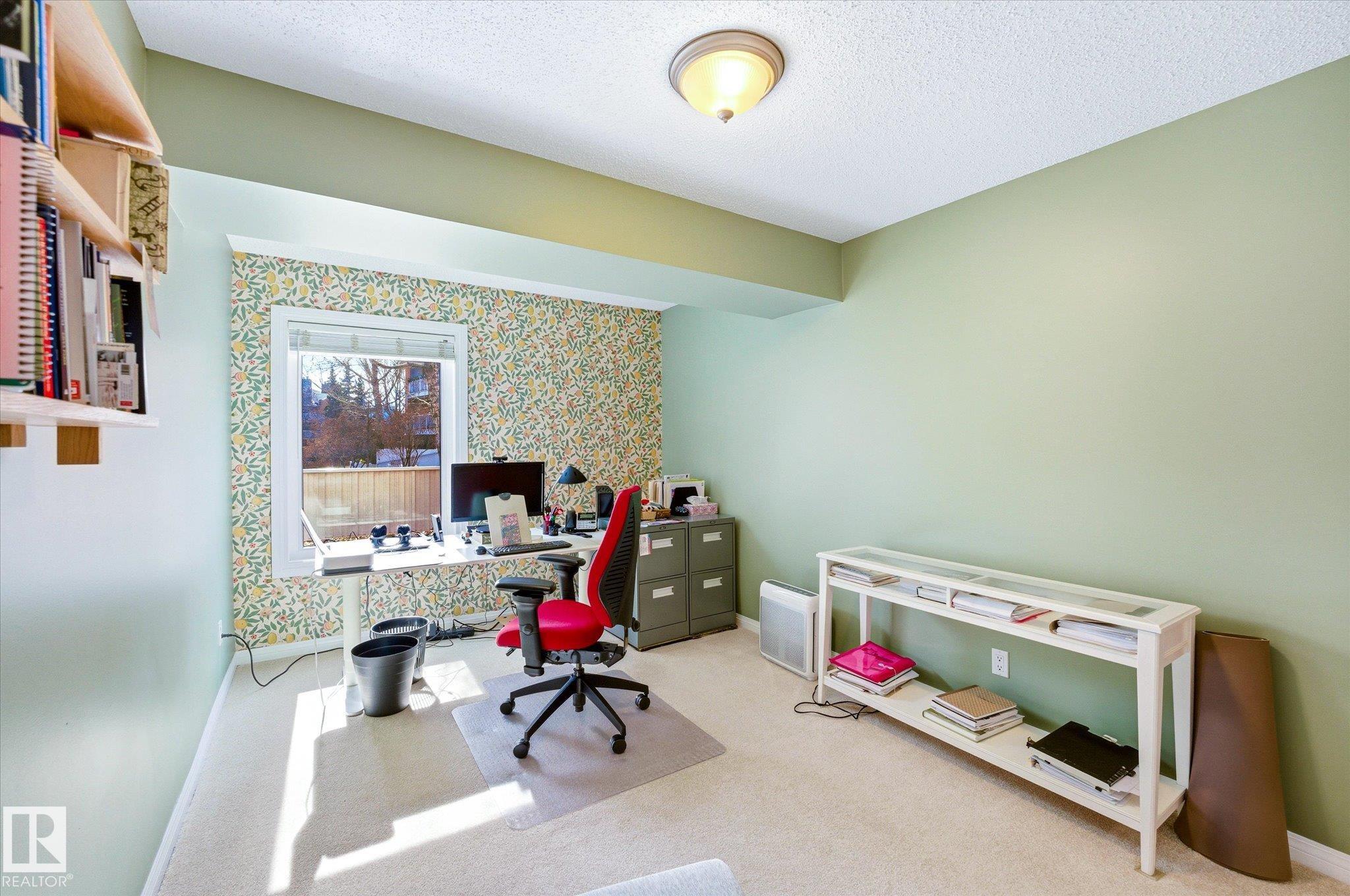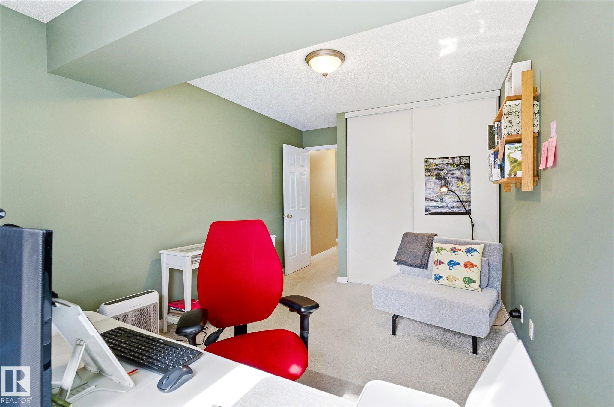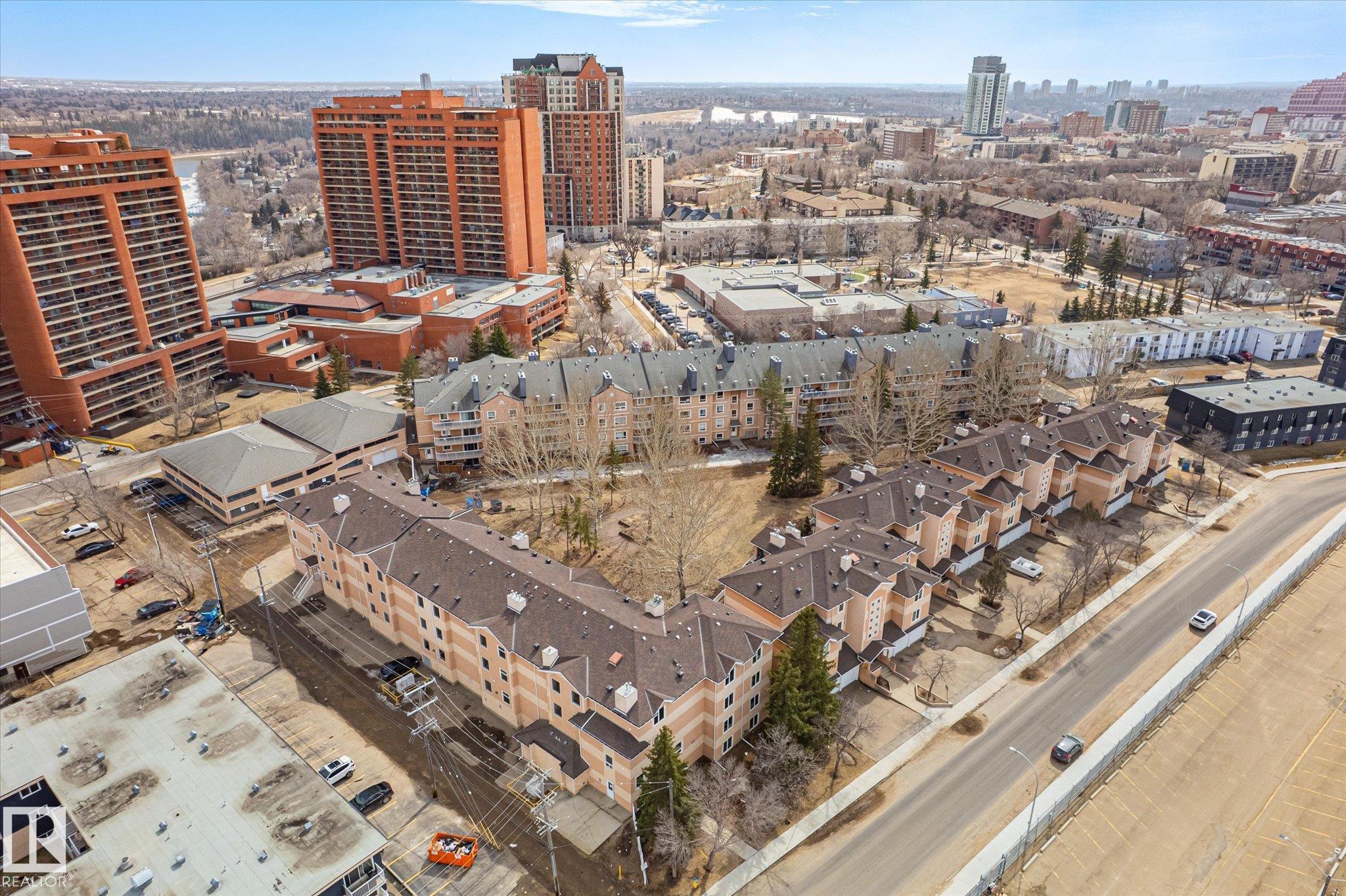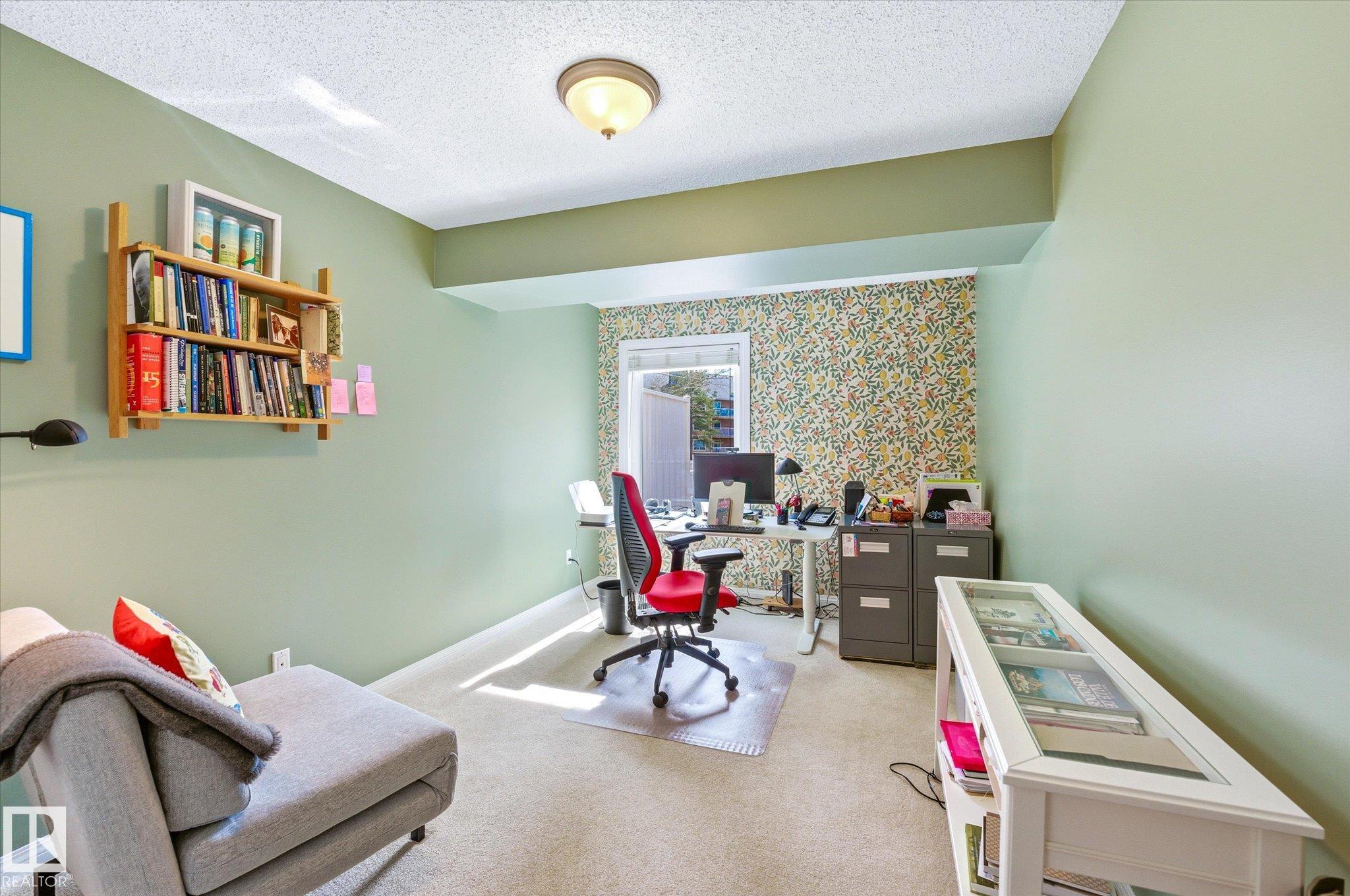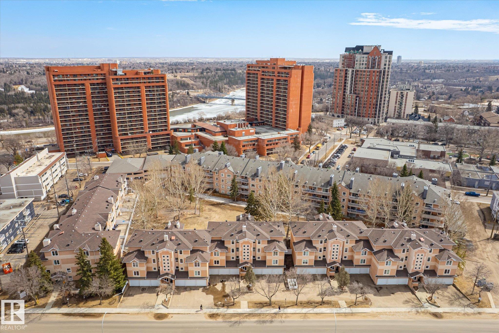 Bright, spacious, and set in a peaceful, park-like environment, this immaculate condo offers the best of both worlds convenient access to downtown with the tranquility of a private retreat. Featuring 2 large bedrooms, 2 full bathrooms, this home is ideal for professionals?whether you?re working from home or commuting with ease.Thoughtful upgrades and features include new windows and patio doors, a bright European-style kitchen with a new dishwasher & microwave open to adjoining dining area, and an inviting living room complete with a cozy corner gas fireplace.The primary suite offers comfort and functionality with dual closets and a 4 pce. ensuite. Additional highlights include in-suite laundry room, storage, and a heated parking stall. Step outside to the standout feature! An expansive balcony overlooking a beautifully landscaped private courtyard. Mature trees provide exceptional privacy, creating a serene, country-like setting right in the heart of the city. There is a gym & work room in common areas.
