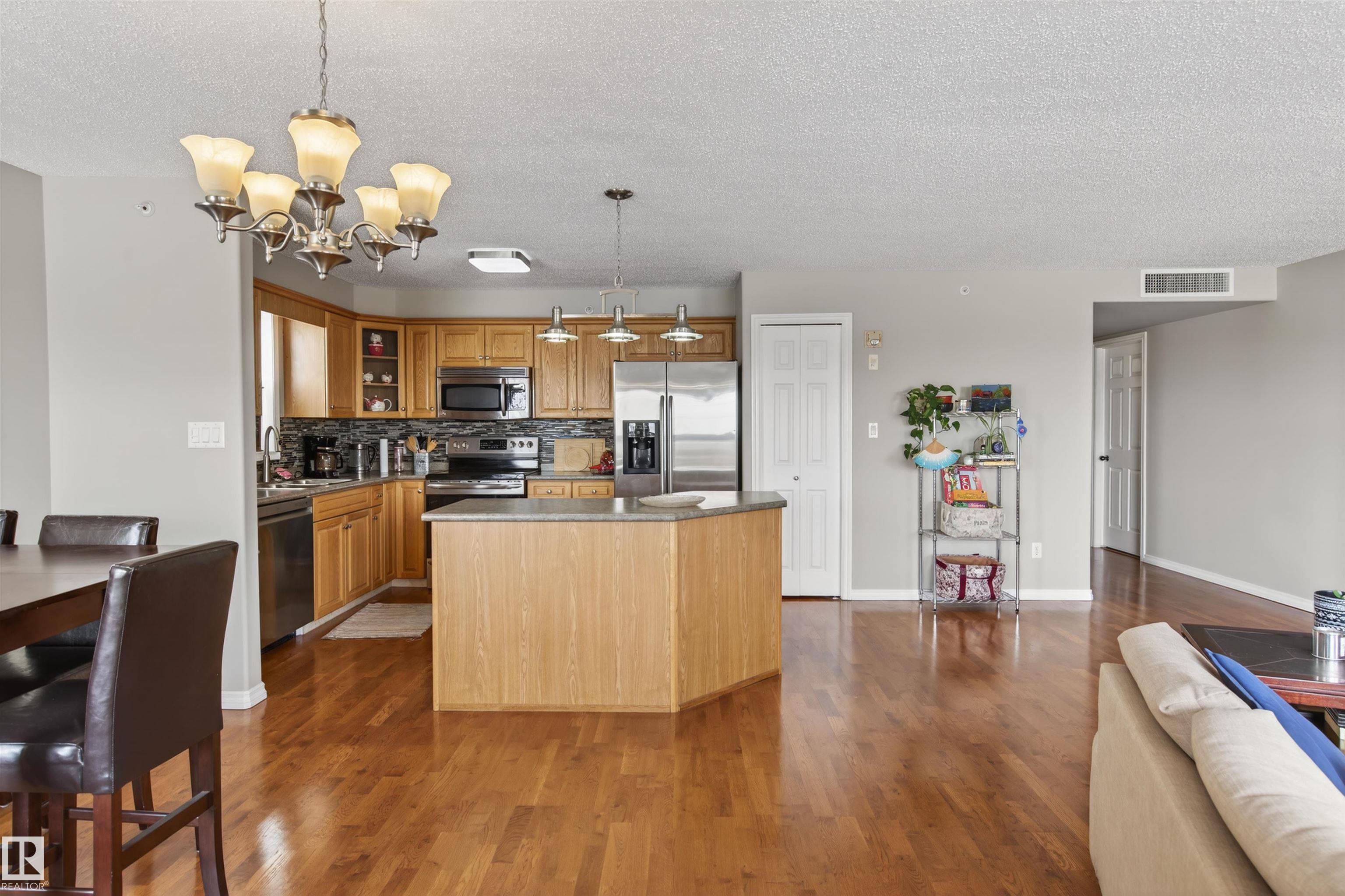 Nestled within the esteemed Harbour Vantage building, this condominium offers a maintenance-free lifestyle. Located just a stone?s throw from the beach, marina, retail, and dining. Within this controlled-access building, complete with an elevator and underground parking, you?ll find this 2-bedroom, 2-bathroom unit. As you enter, you?re greeted by hardwood floors that accentuate the airy, open-concept design. The sizeable kitchen features an island, adding valuable prep space. Enjoy the convenience of in-suite laundry and a versatile area offering ample storage options. Step outside to the north-facing balcony, where there?s plenty of room for a cozy patio set and BBQ, all while taking in stunning panoramic lake views.