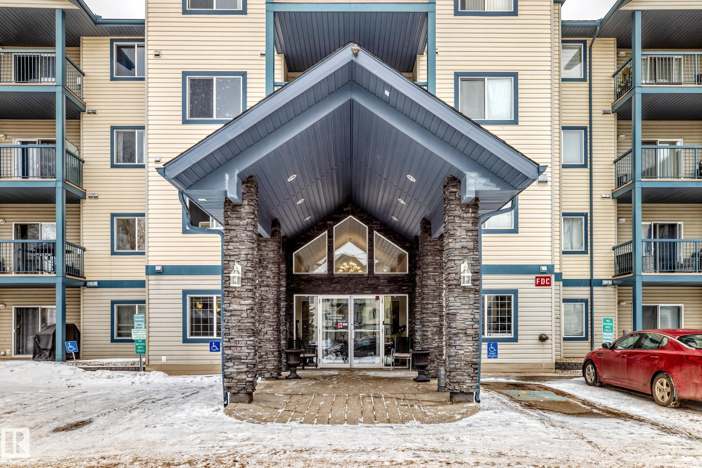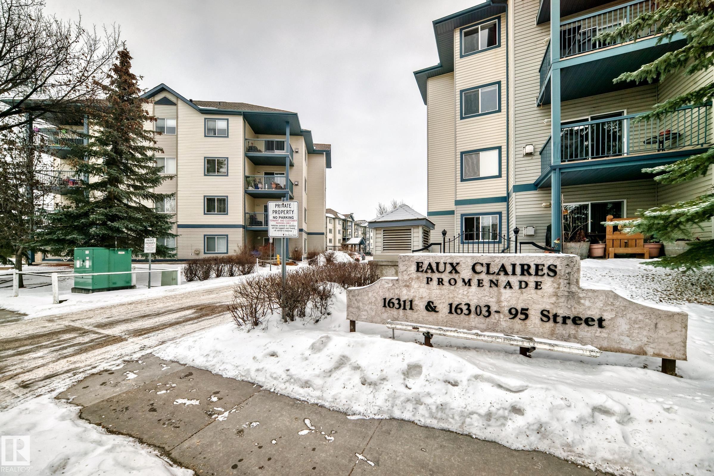 Extremely clean and cozy 3-BEDROOM or 2-beds + den corner unit located on the 2nd floor of Promenade Eaux Claires. Offering approximately 1,200 sq ft, this is one of the largest units in the building, ideal for families or those seeking extra space. The bright, open layout is filled with natural light and features plush, newer carpet, modern paint tones, and a gas fireplace. The functional kitchen includes newer high-end stainless steel appliances. Bedrooms are generously sized and thoughtfully positioned on opposite ends of the unit for added privacy. The den with French doors easily functions as a third bedroom, home office, or flex space. Additional highlights include in-suite laundry with storage, air conditioning, and two titled parking stalls?one heated underground with a storage cage and one surface stall. Well-managed building offering a fitness room, games lounge, guest suite, ample visitor parking, and walking distance to all amenities.