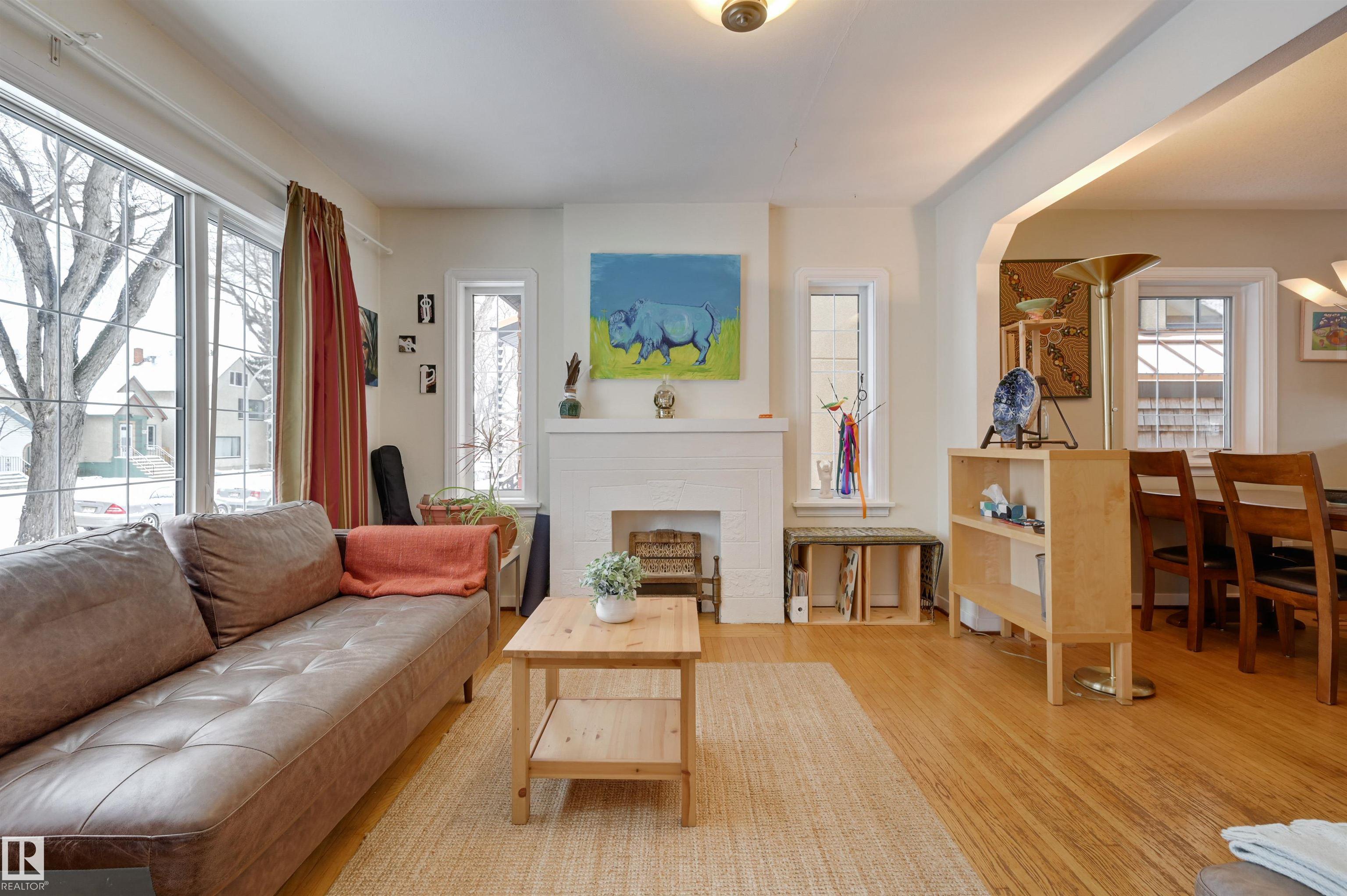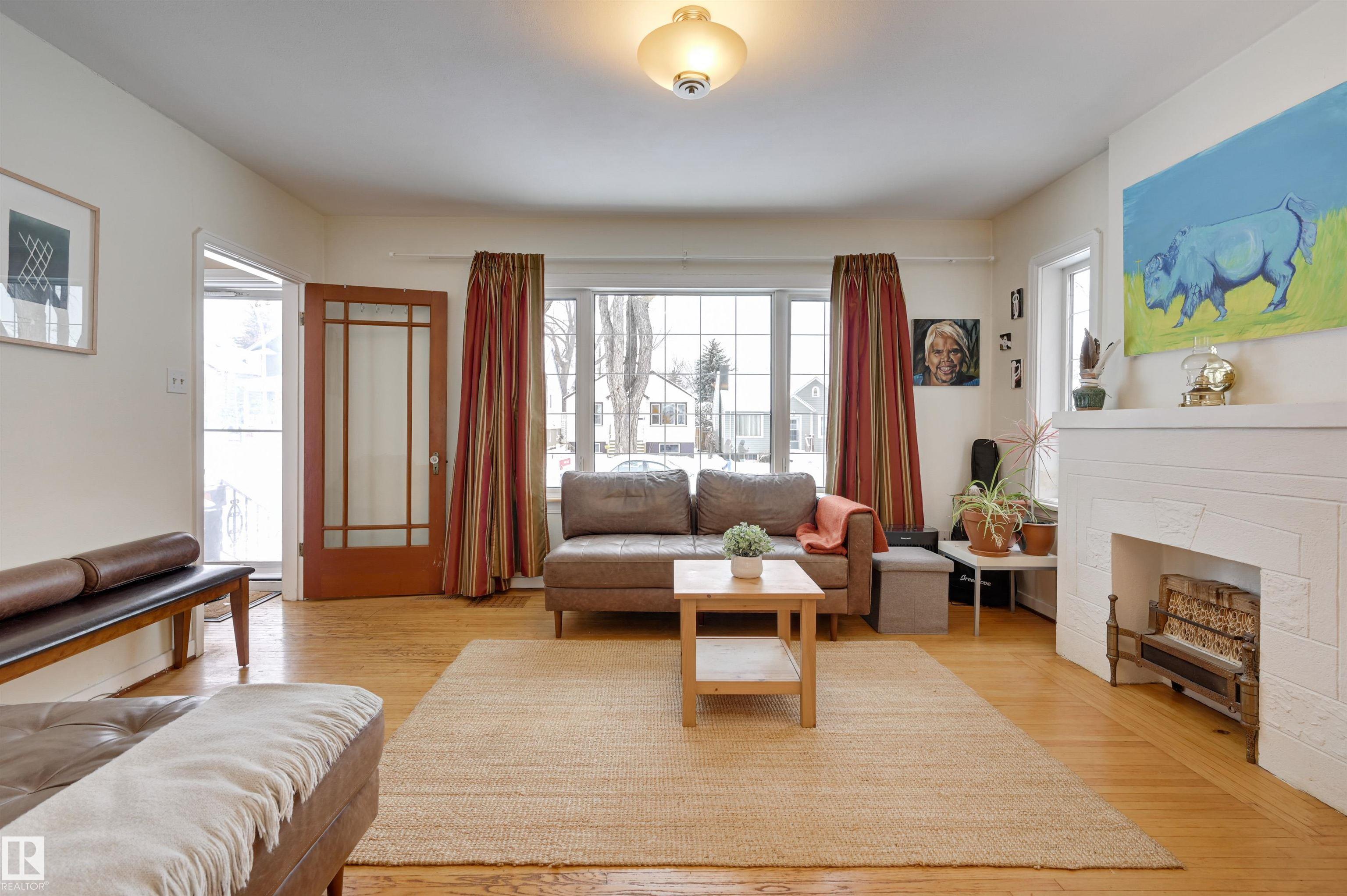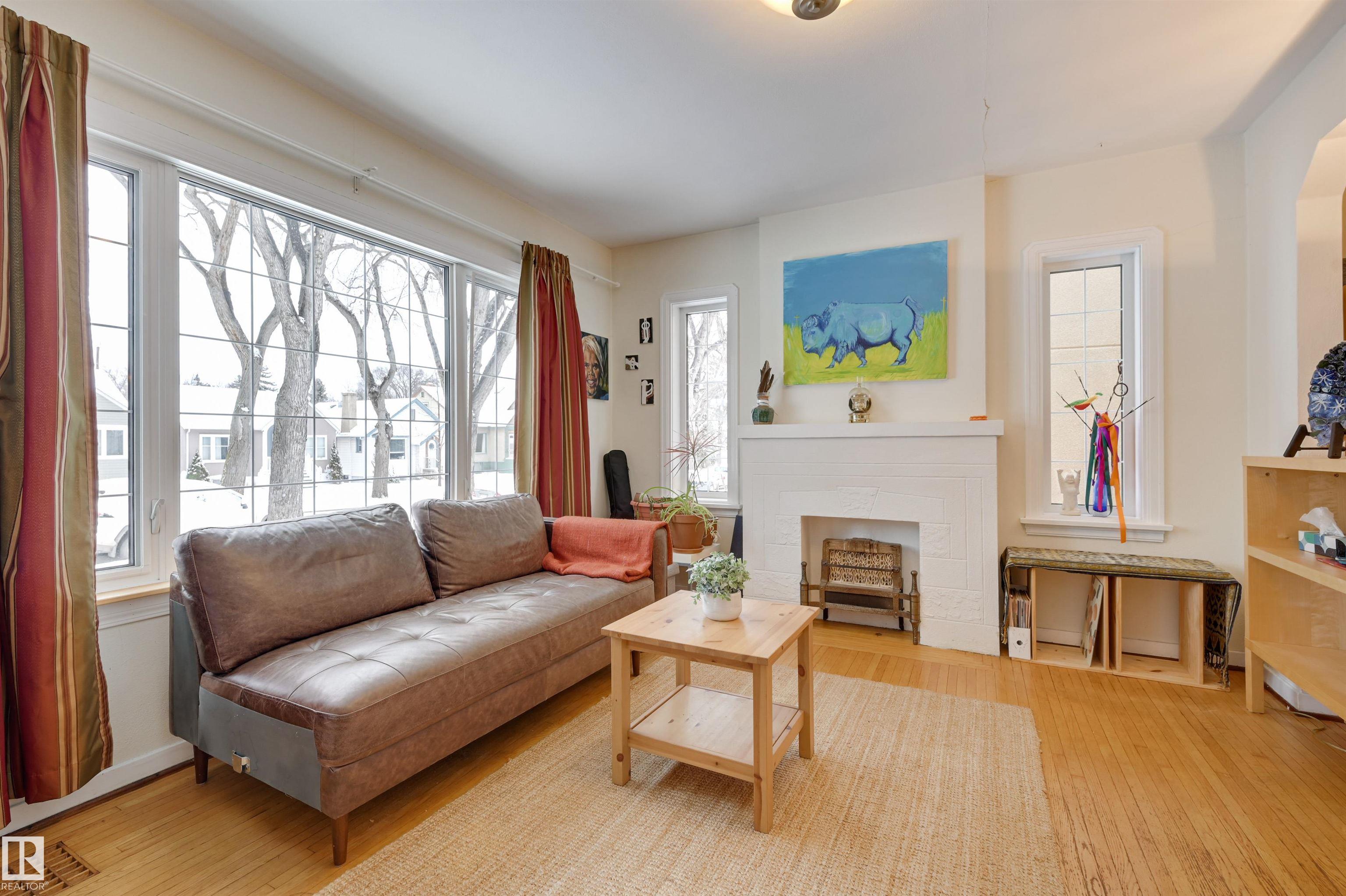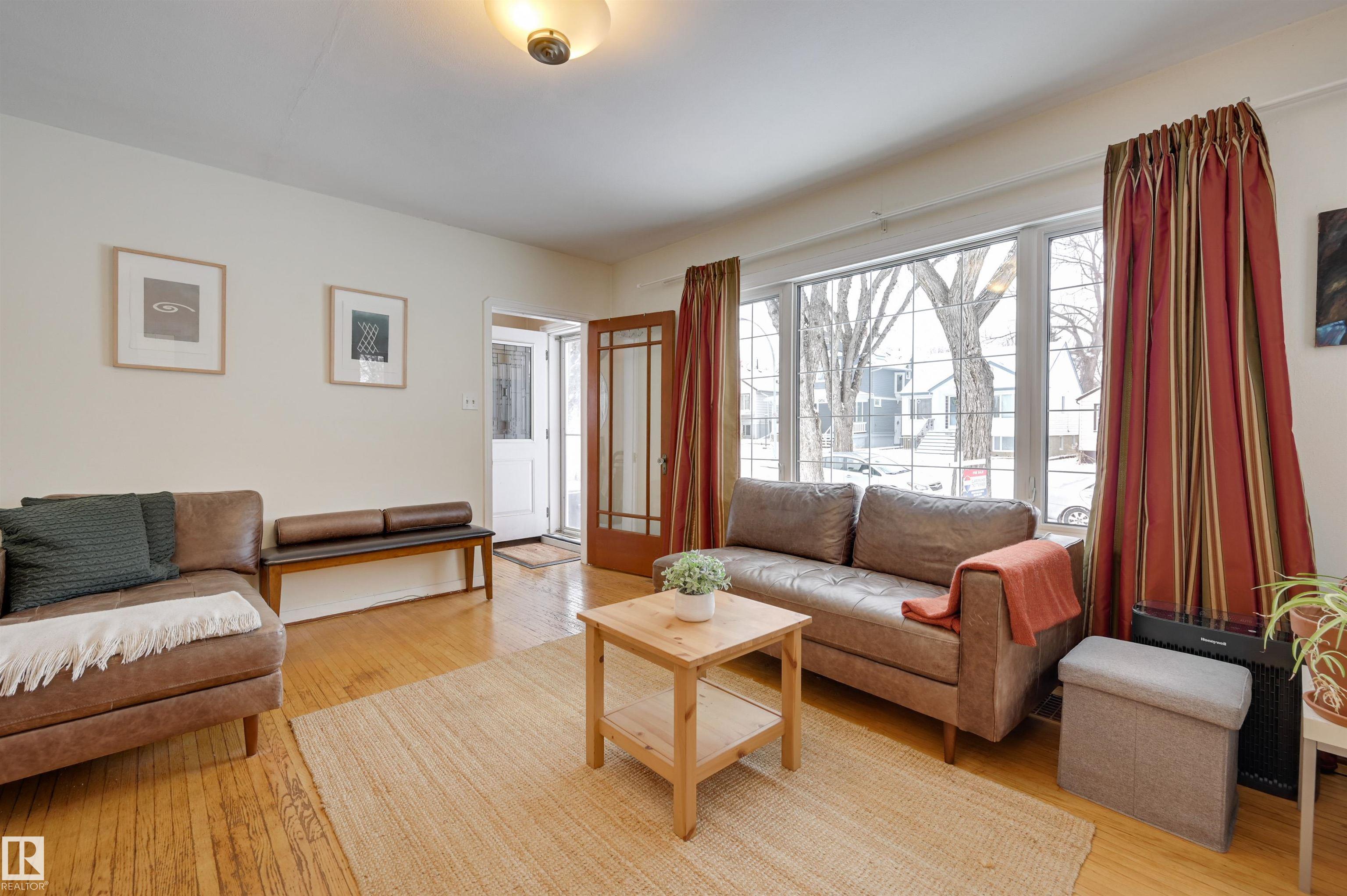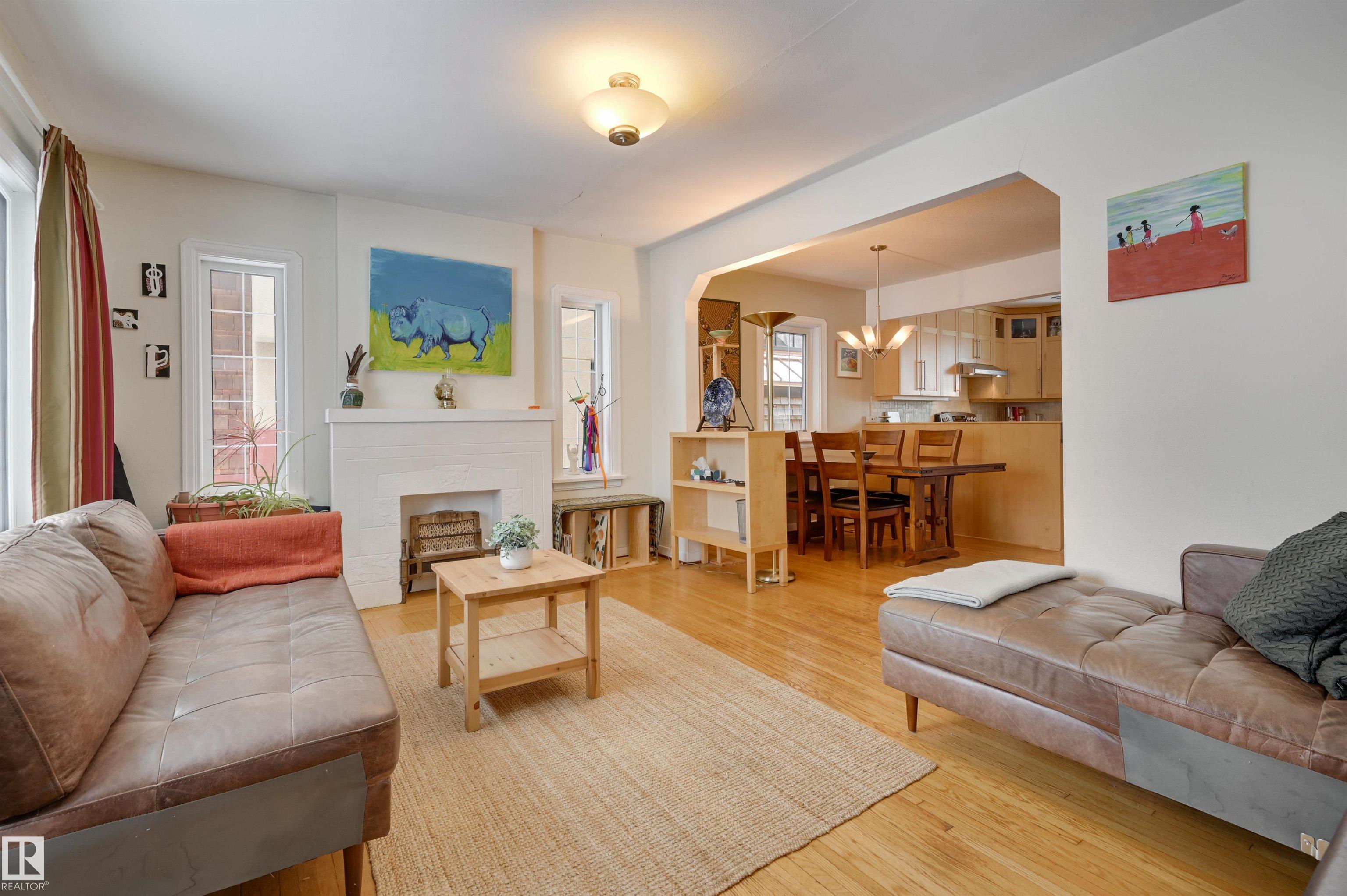 Perfectly maintained and cute as a button, this charming bungalow sits on a beautiful tree-lined street in Strathcona, just steps from Mill Creek Ravine. With a sunny south-facing backyard, the home is filled with natural light throughout the day. Full of character, yet thoughtfully updated, it blends timeless charm with modern convenience. The main floor offers a bright, open-concept living space featuring coved ceilings, original hardwood floors, & a decorative fireplace. The dining area flows seamlessly into the upgraded kitchen. Two well-sized bedrooms and a full bathroom complete the main level. Downstairs, the fully finished basement adds excellent versatility with an additional bedroom, full bathroom, and a spacious bonus room. Lovingly cared for and in excellent condition, this home is truly move-in ready. Ideally located in a highly walkable neighbourhood near Whyte Ave, Take Care Café, and local restaurants. A single car garage used as storage at back. Some photos are virtually staged.