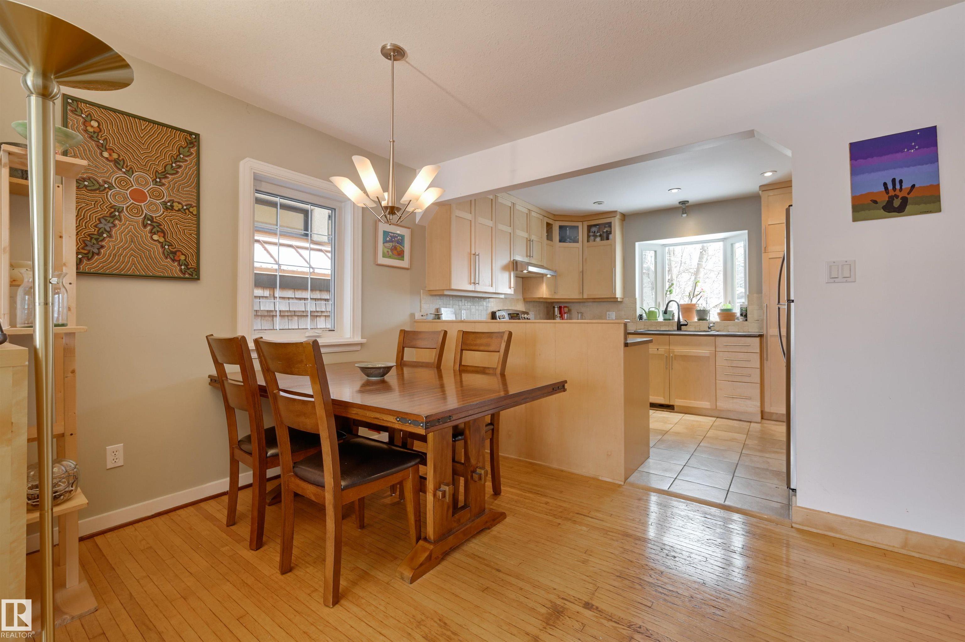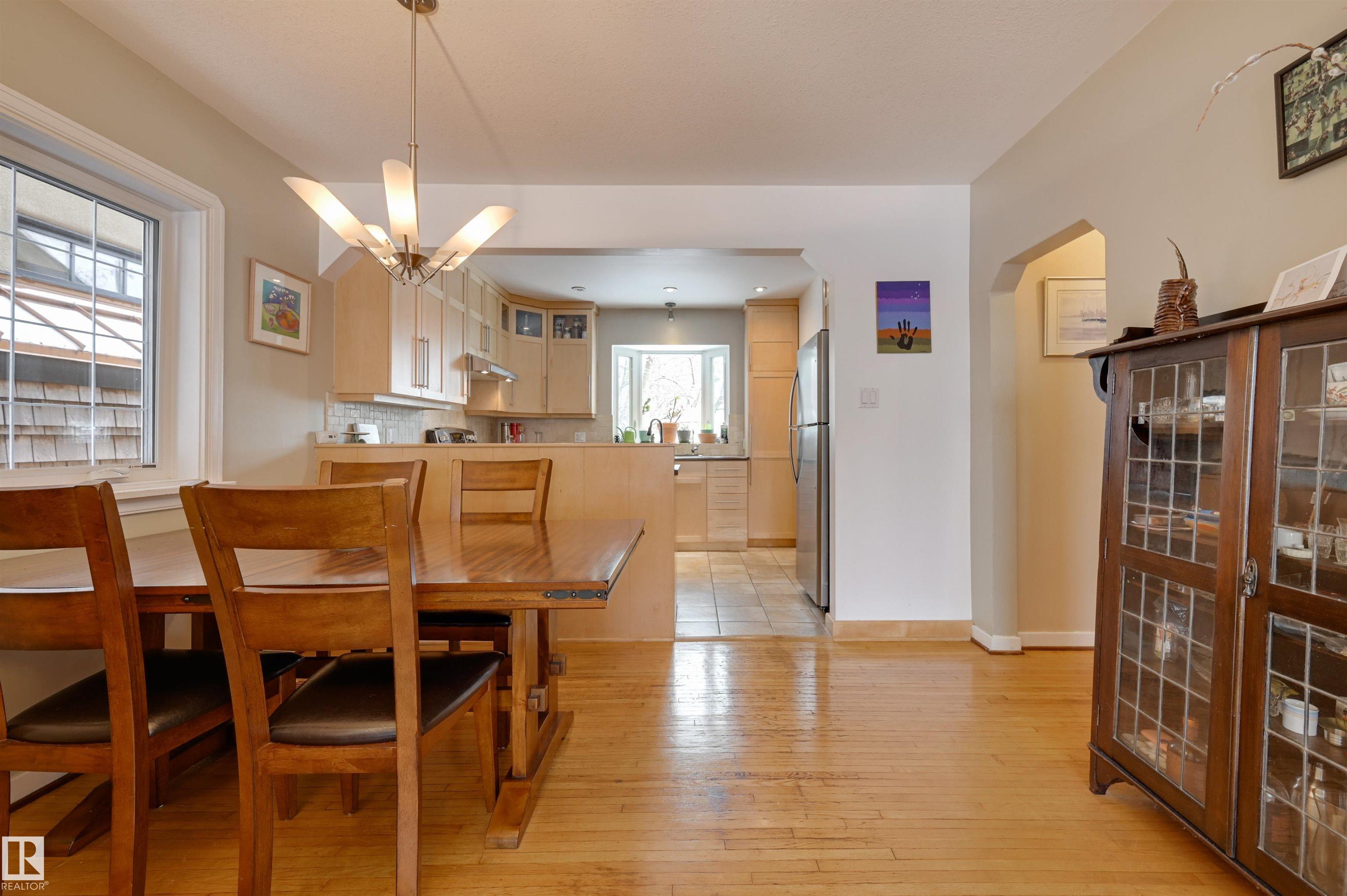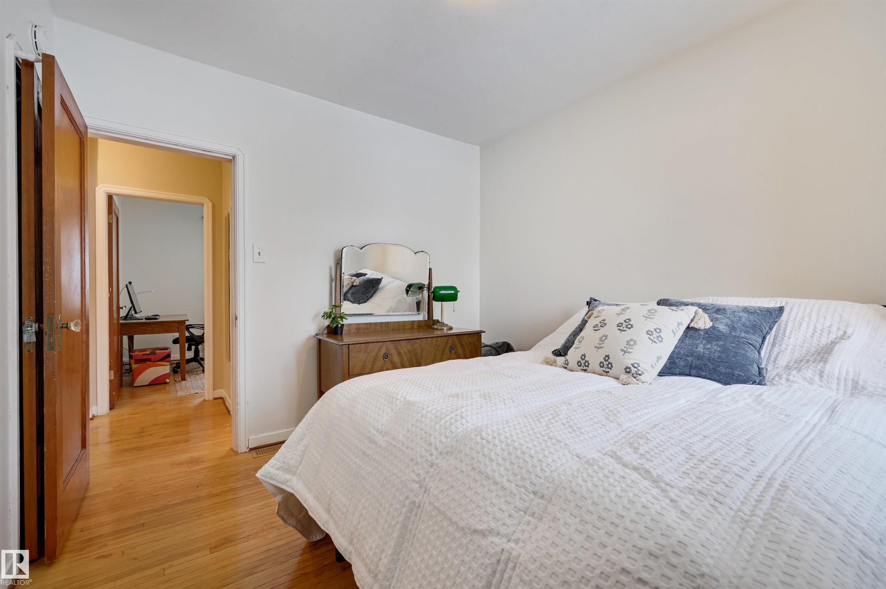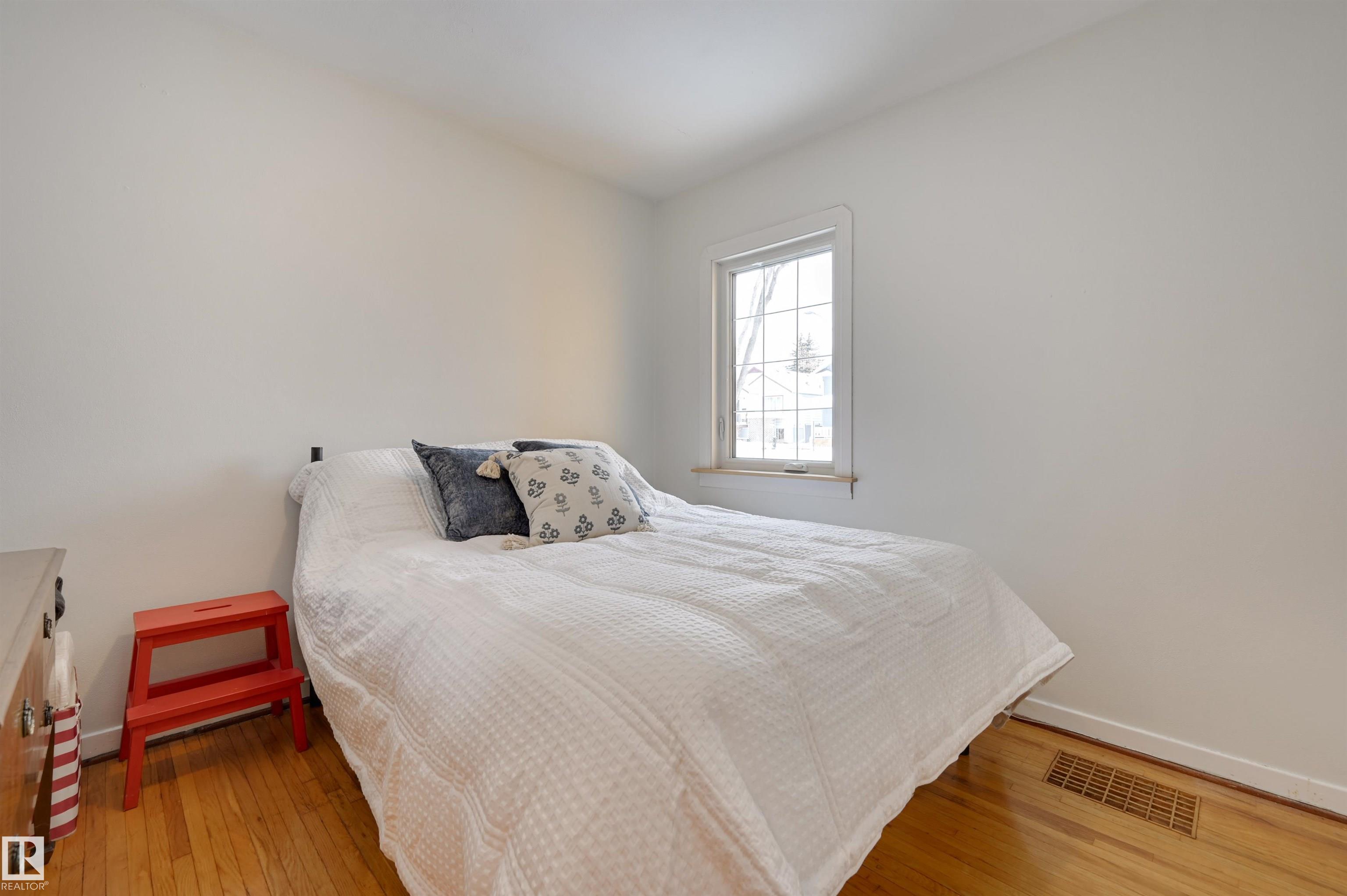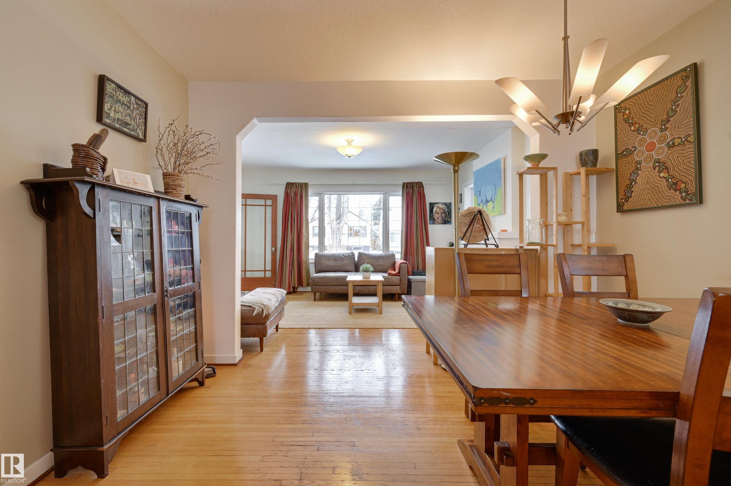 Perfectly maintained and cute as a button, this charming bungalow sits on a beautiful tree-lined street in Strathcona, just steps from Mill Creek Ravine. With a sunny south-facing backyard, the home is filled with natural light throughout the day. Full of character, yet thoughtfully updated, it blends timeless charm with modern convenience. The main floor offers a bright, open-concept living space featuring coved ceilings, original hardwood floors, & a decorative fireplace. The dining area flows seamlessly into the upgraded kitchen. Two well-sized bedrooms and a full bathroom complete the main level. Downstairs, the fully finished basement adds excellent versatility with an additional bedroom, full bathroom, and a spacious bonus room. Lovingly cared for and in excellent condition, this home is truly move-in ready. Ideally located in a highly walkable neighbourhood near Whyte Ave, Take Care Café, and local restaurants. A single car garage used as storage at back. Some photos are virtually staged.