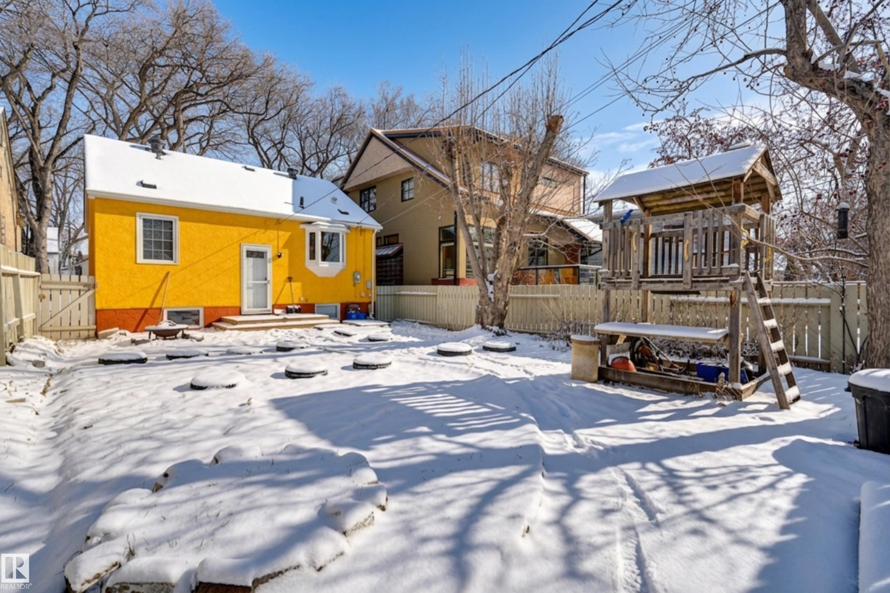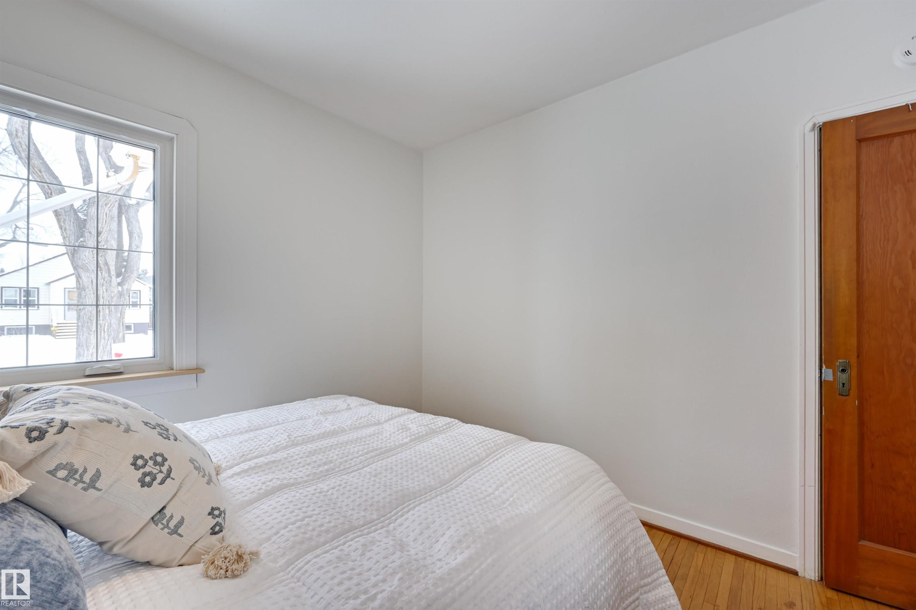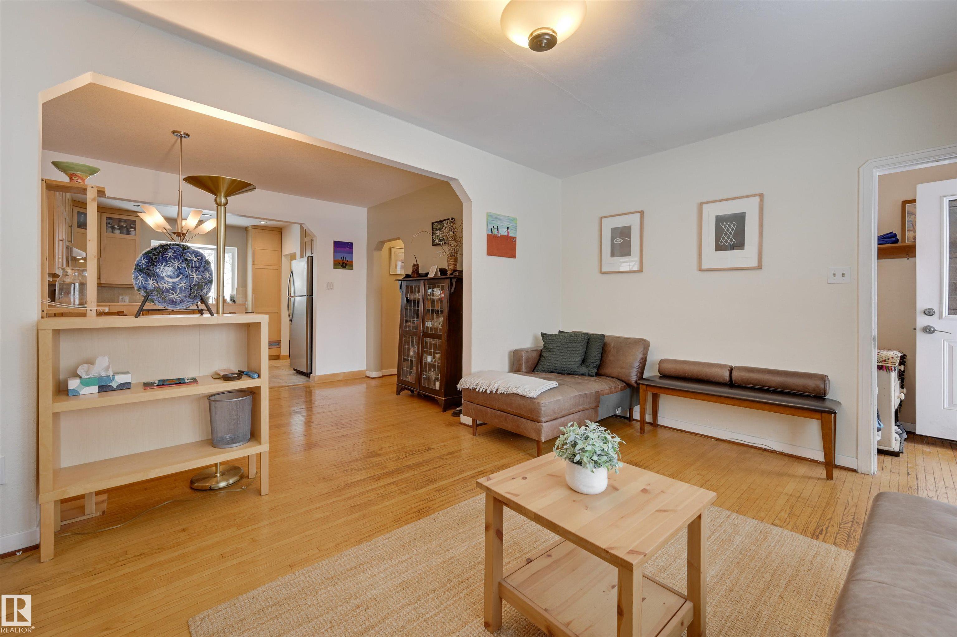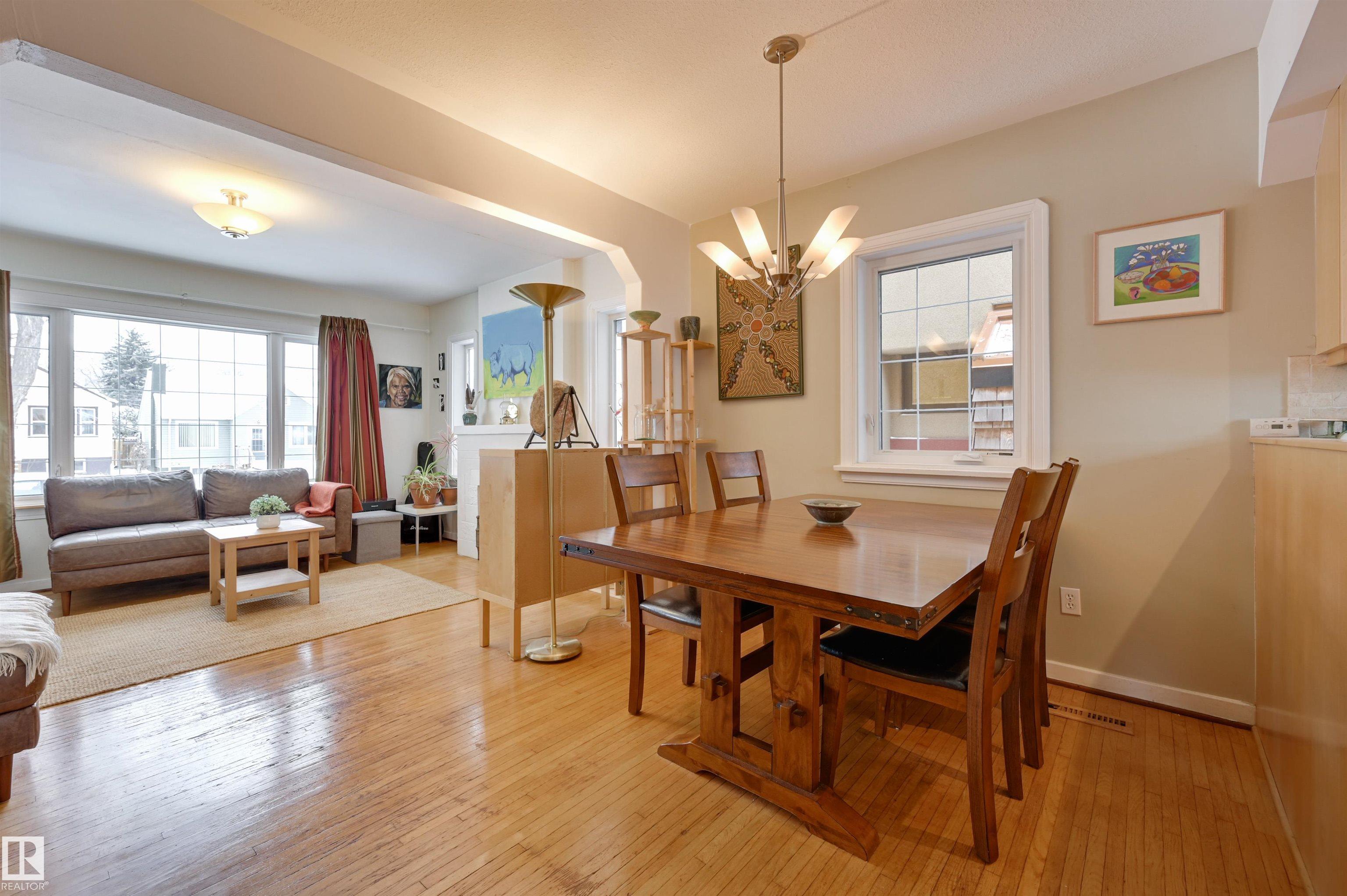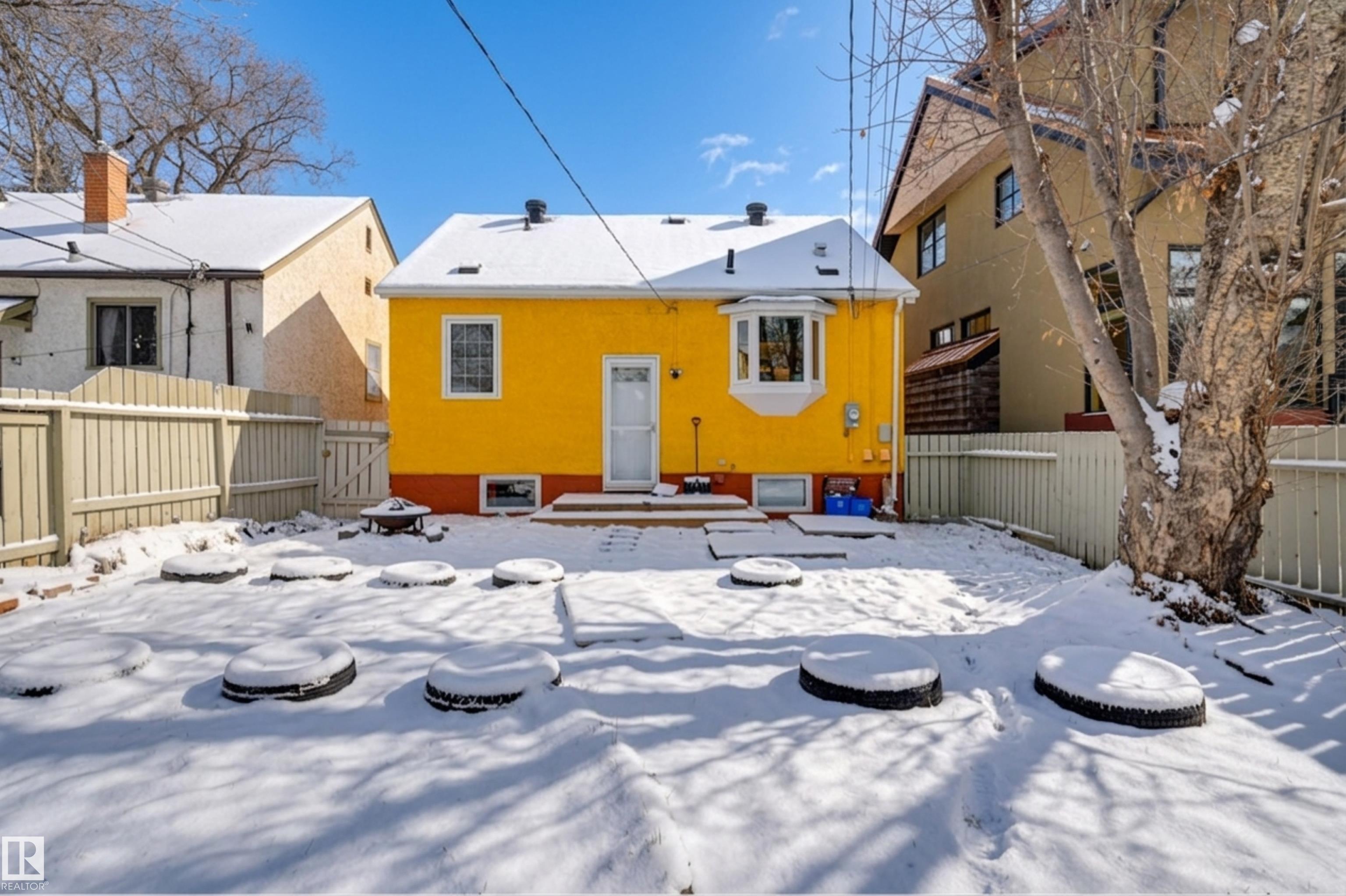 Perfectly maintained and cute as a button, this charming bungalow sits on a beautiful tree-lined street in Strathcona, just steps from Mill Creek Ravine. With a sunny south-facing backyard, the home is filled with natural light throughout the day. Full of character, yet thoughtfully updated, it blends timeless charm with modern convenience. The main floor offers a bright, open-concept living space featuring coved ceilings, original hardwood floors, & a decorative fireplace. The dining area flows seamlessly into the upgraded kitchen. Two well-sized bedrooms and a full bathroom complete the main level. Downstairs, the fully finished basement adds excellent versatility with an additional bedroom, full bathroom, and a spacious bonus room. Lovingly cared for and in excellent condition, this home is truly move-in ready. Ideally located in a highly walkable neighbourhood near Whyte Ave, Take Care Café, and local restaurants. A single car garage used as storage at back. Some photos are virtually staged.