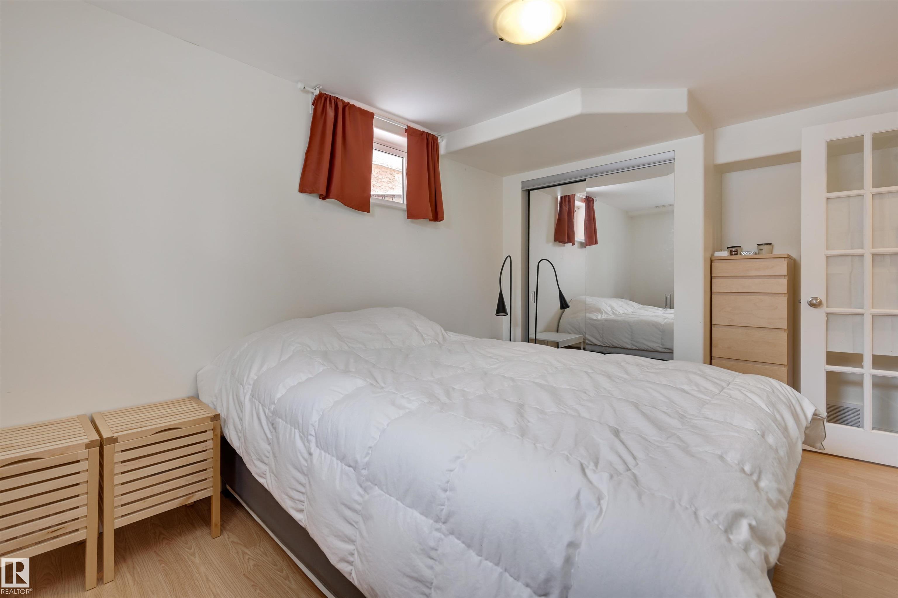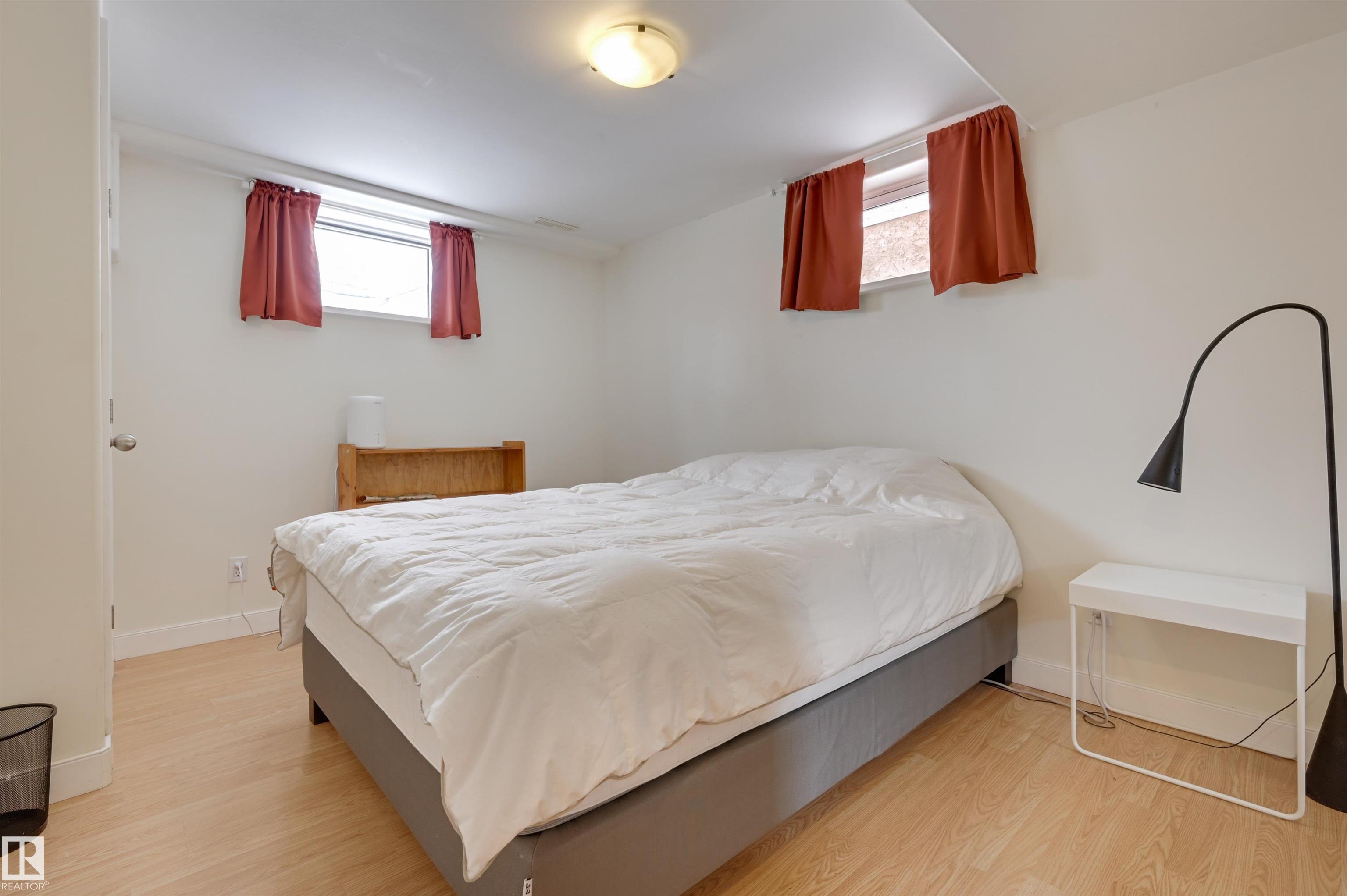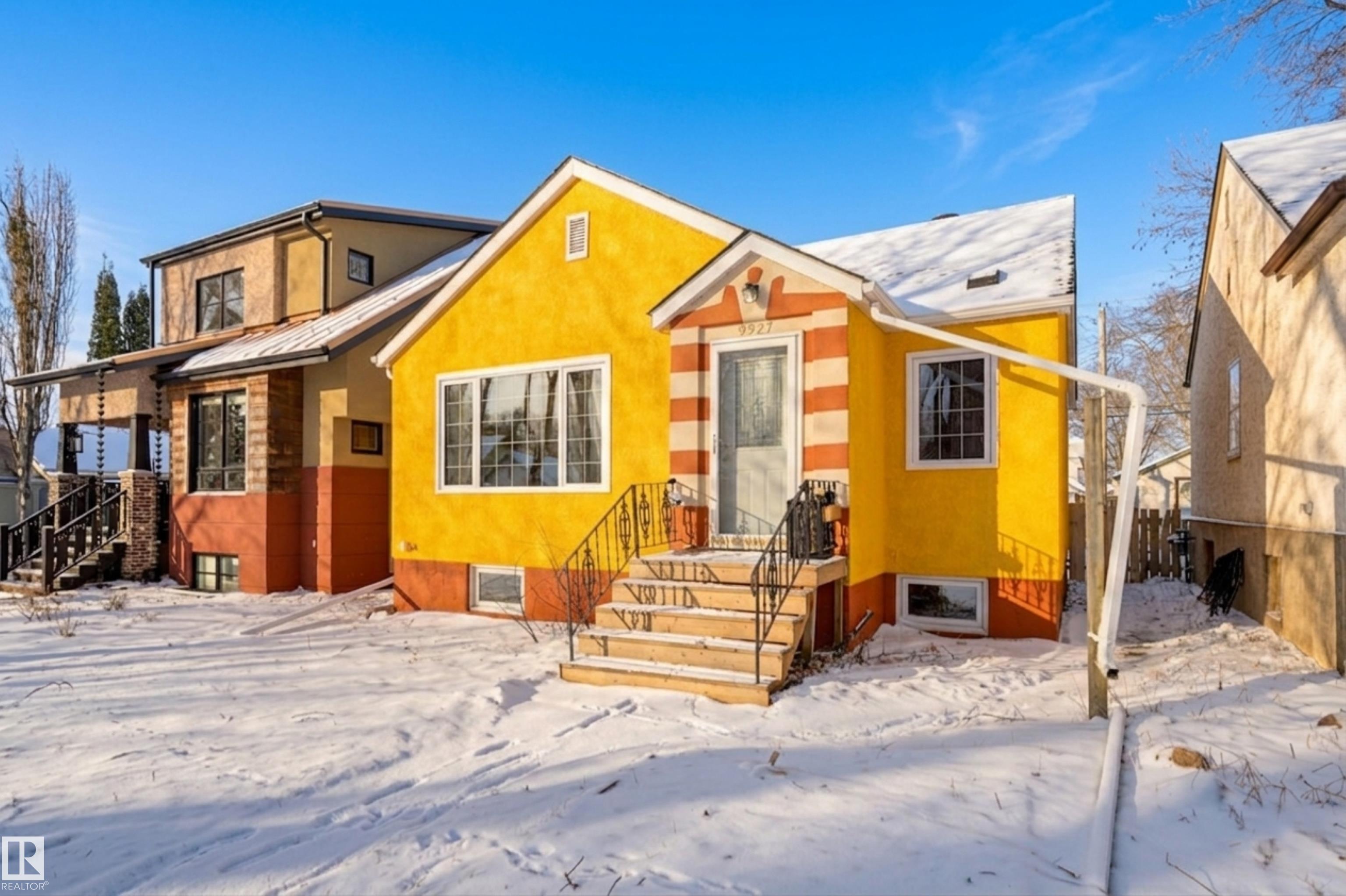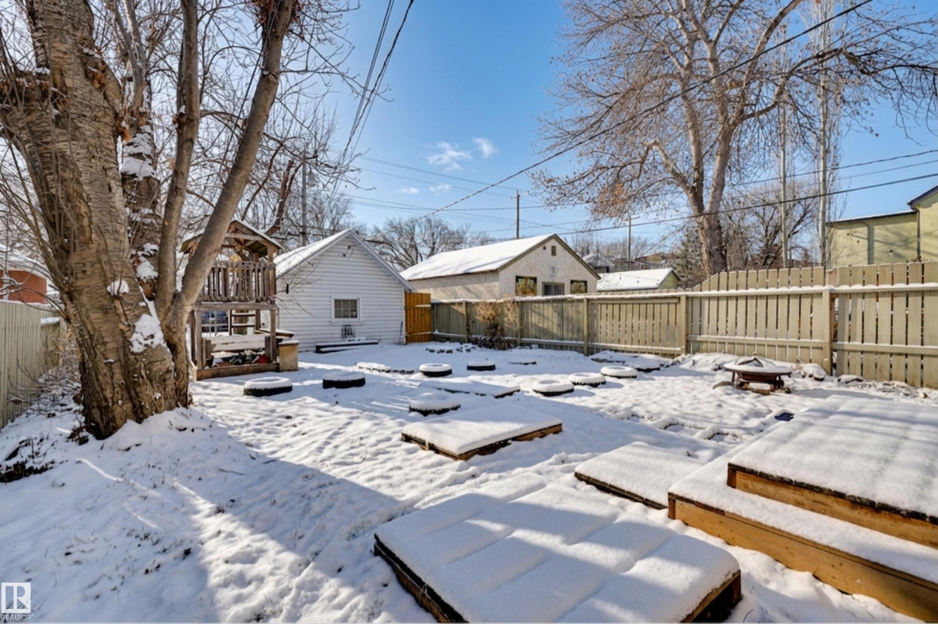 Perfectly maintained and cute as a button, this charming bungalow sits on a beautiful tree-lined street in Strathcona, just steps from Mill Creek Ravine. With a sunny south-facing backyard, the home is filled with natural light throughout the day. Full of character, yet thoughtfully updated, it blends timeless charm with modern convenience. The main floor offers a bright, open-concept living space featuring coved ceilings, original hardwood floors, & a decorative fireplace. The dining area flows seamlessly into the upgraded kitchen. Two well-sized bedrooms and a full bathroom complete the main level. Downstairs, the fully finished basement adds excellent versatility with an additional bedroom, full bathroom, and a spacious bonus room. Lovingly cared for and in excellent condition, this home is truly move-in ready. Ideally located in a highly walkable neighbourhood near Whyte Ave, Take Care Café, and local restaurants. A single car garage used as storage at back. Some photos are virtually staged.