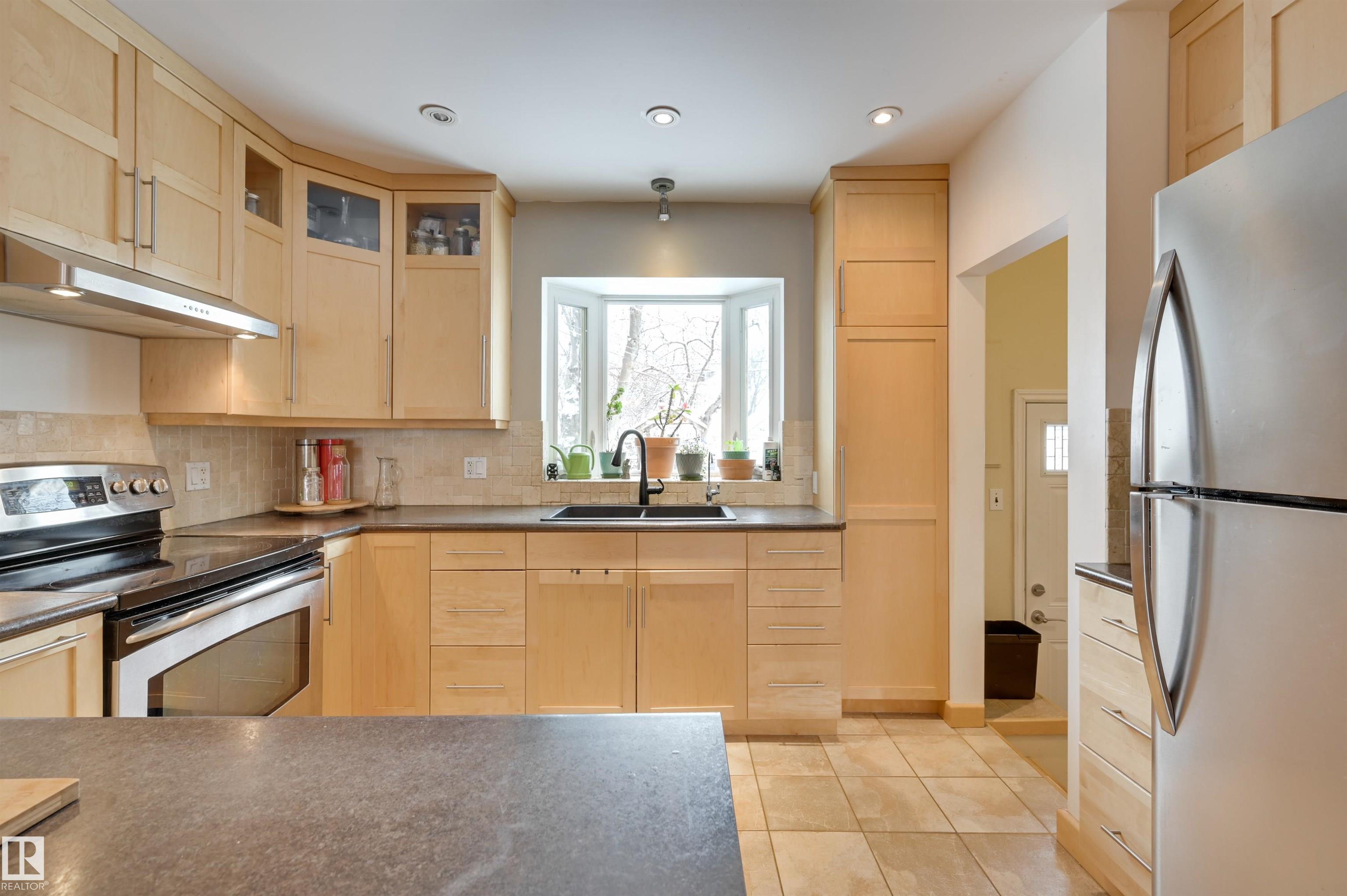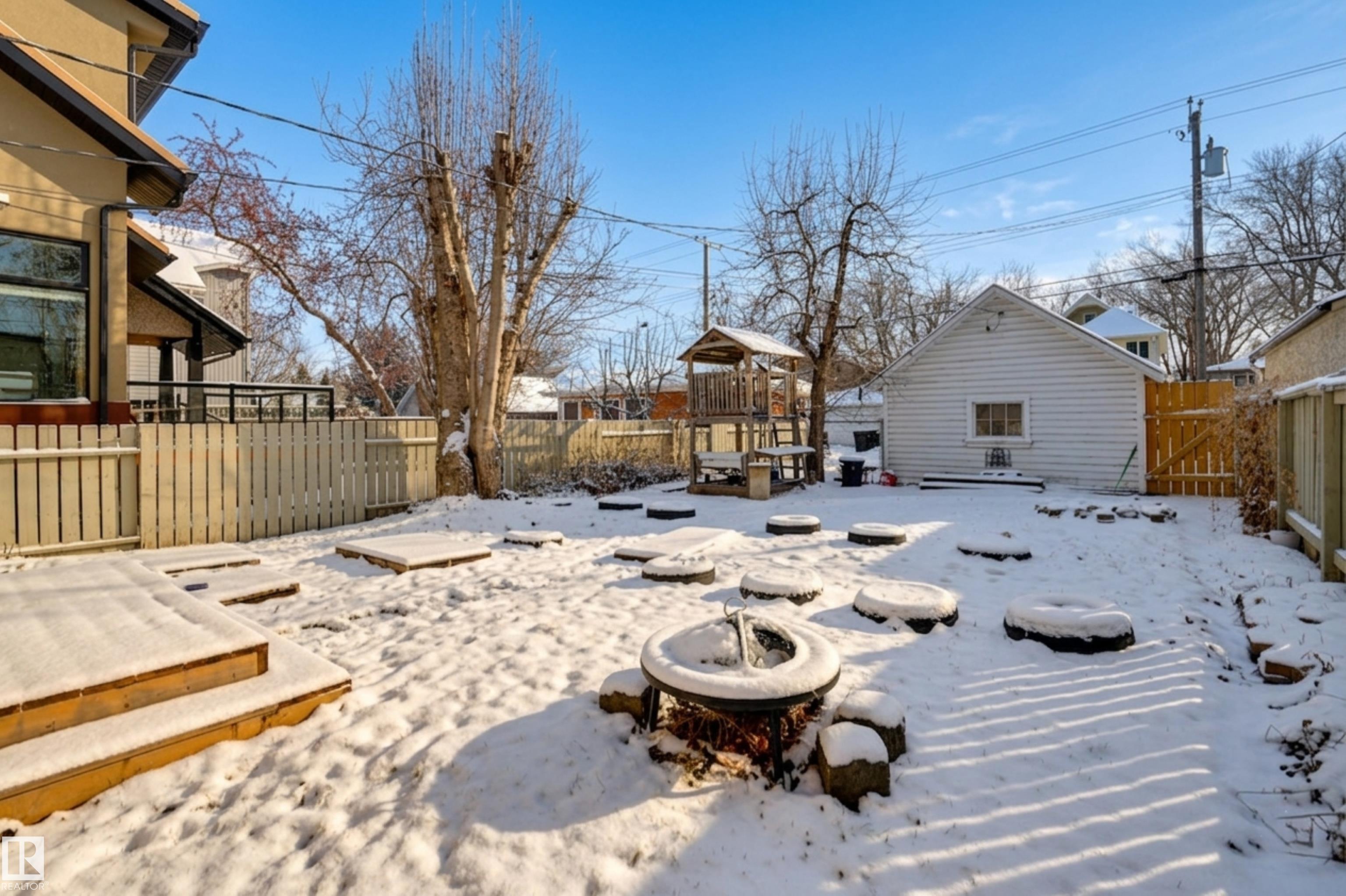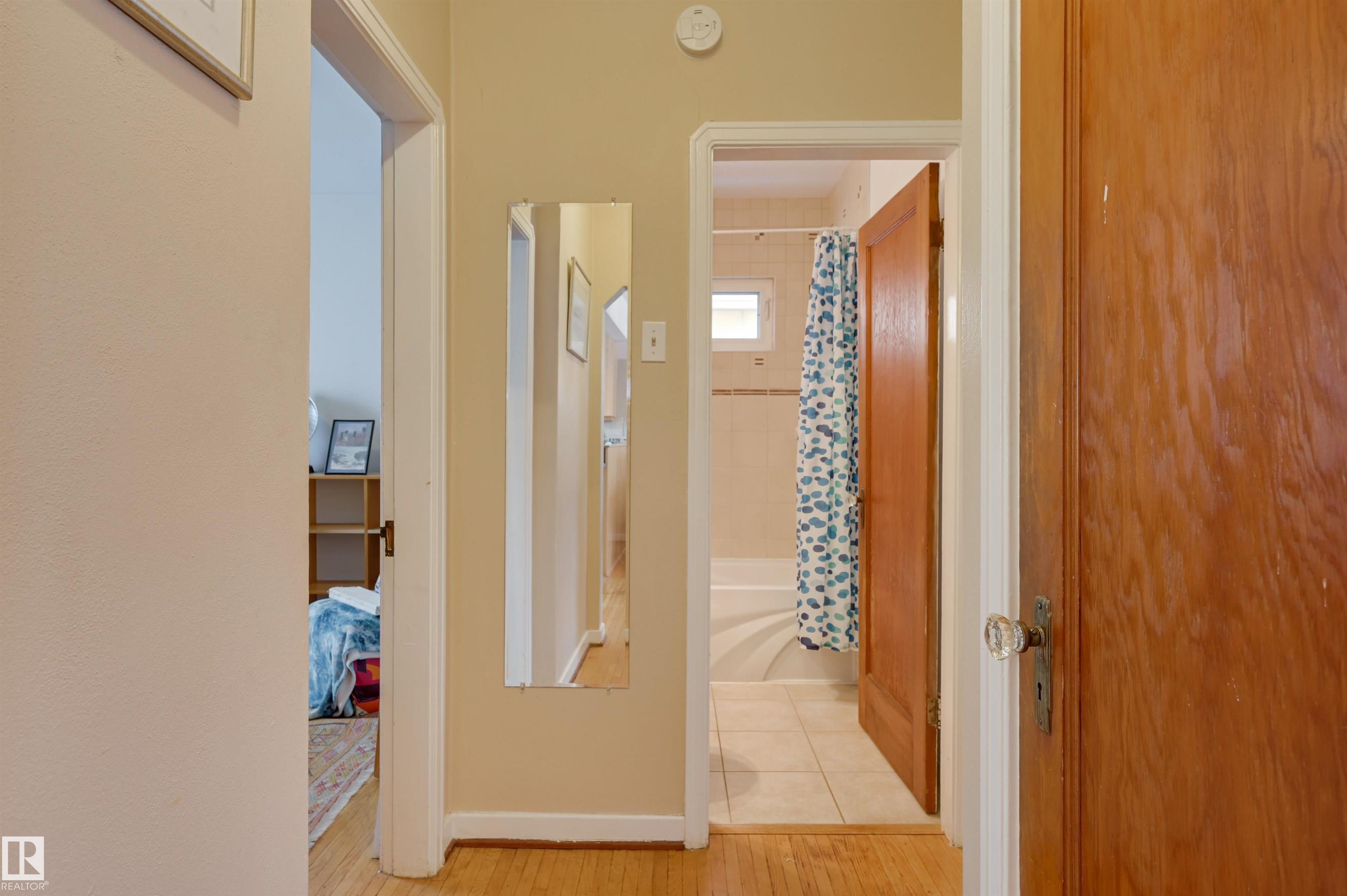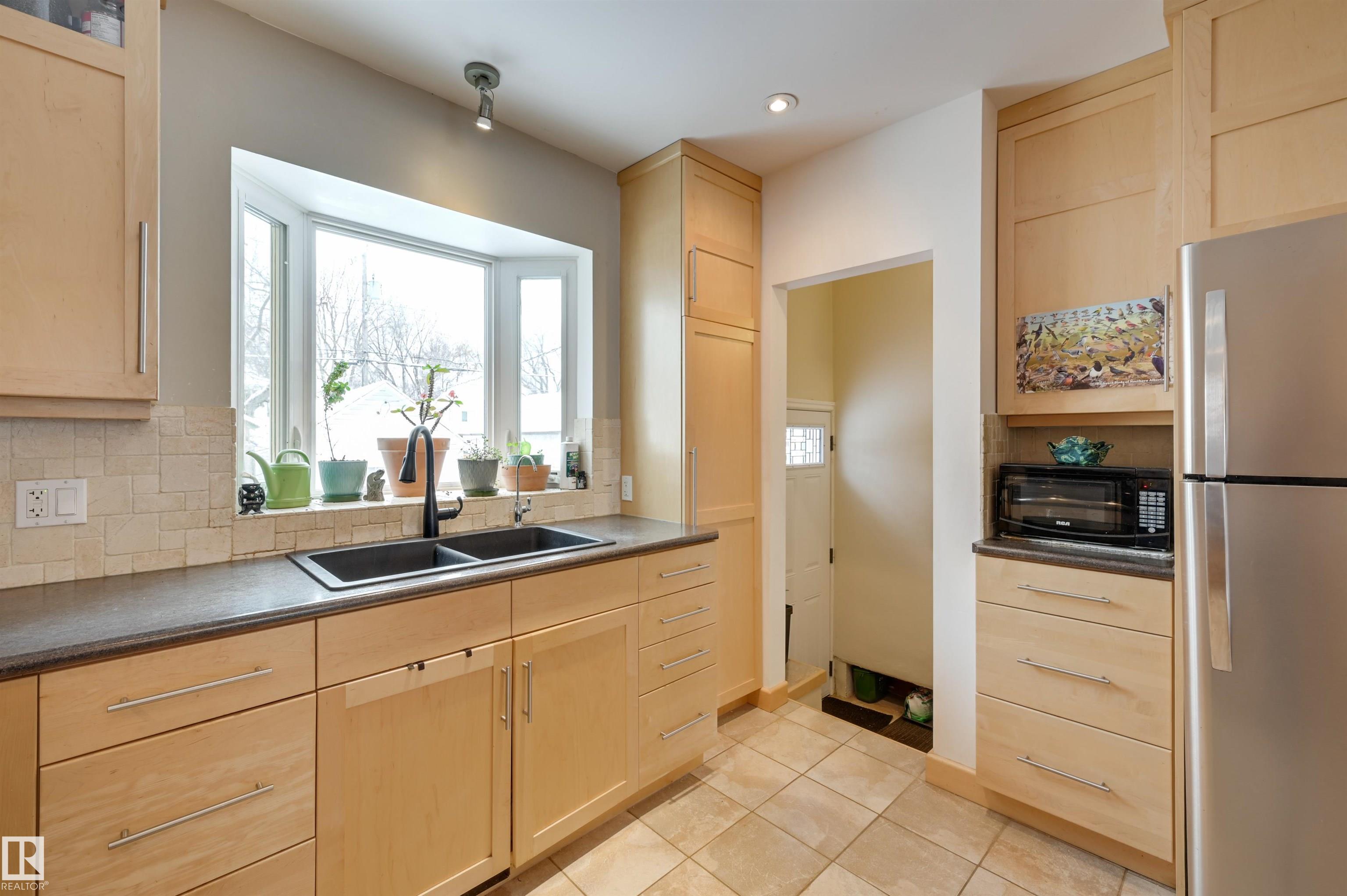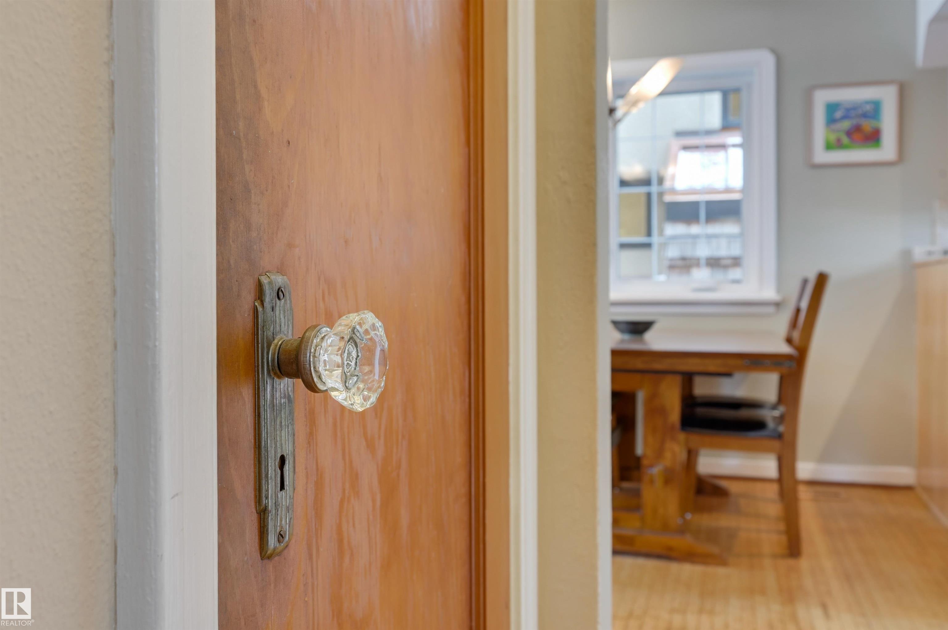 Perfectly maintained and cute as a button, this charming bungalow sits on a beautiful tree-lined street in Strathcona, just steps from Mill Creek Ravine. With a sunny south-facing backyard, the home is filled with natural light throughout the day. Full of character, yet thoughtfully updated, it blends timeless charm with modern convenience. The main floor offers a bright, open-concept living space featuring coved ceilings, original hardwood floors, & a decorative fireplace. The dining area flows seamlessly into the upgraded kitchen. Two well-sized bedrooms and a full bathroom complete the main level. Downstairs, the fully finished basement adds excellent versatility with an additional bedroom, full bathroom, and a spacious bonus room. Lovingly cared for and in excellent condition, this home is truly move-in ready. Ideally located in a highly walkable neighbourhood near Whyte Ave, Take Care Café, and local restaurants. A single car garage used as storage at back. Some photos are virtually staged.