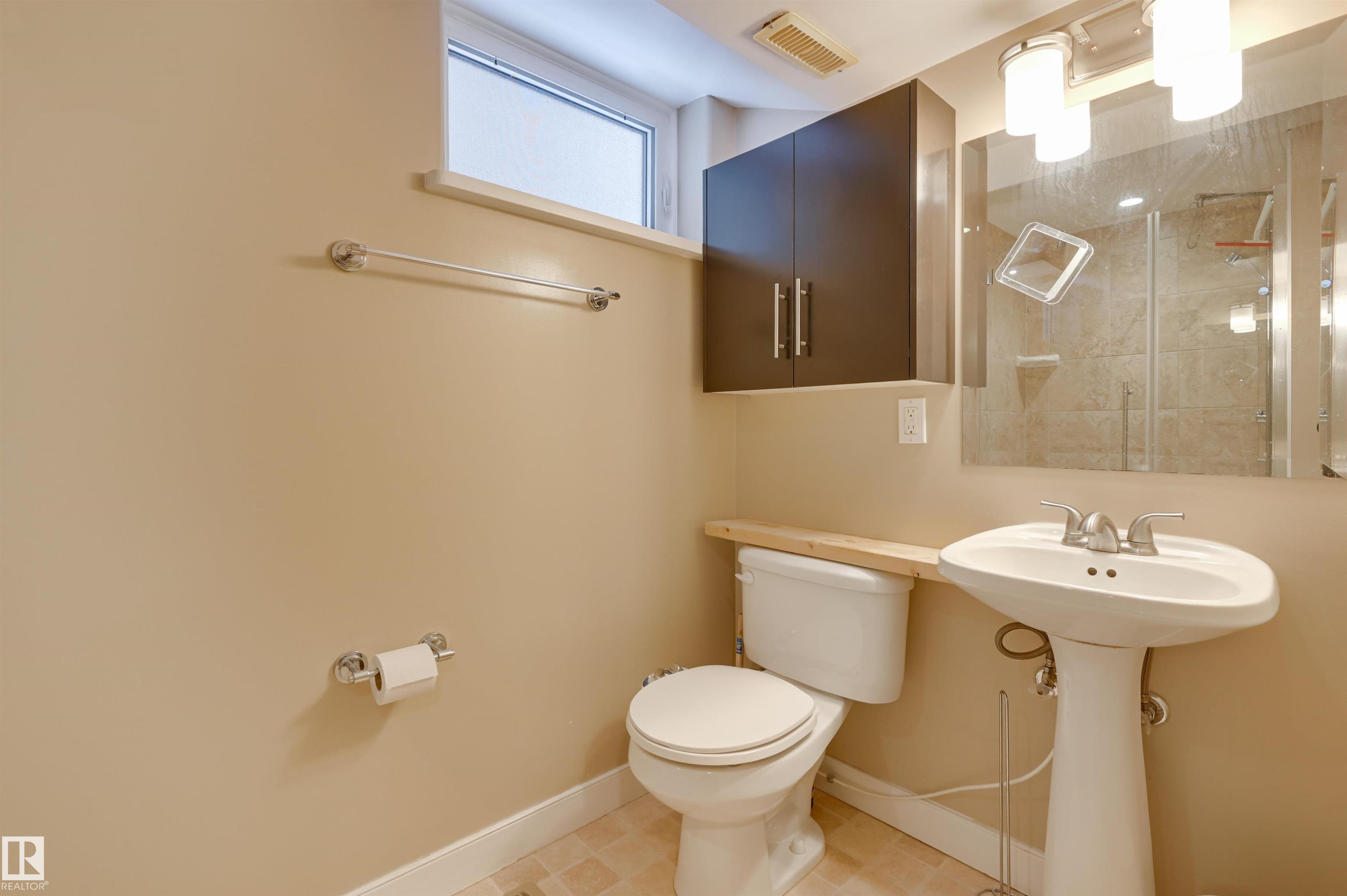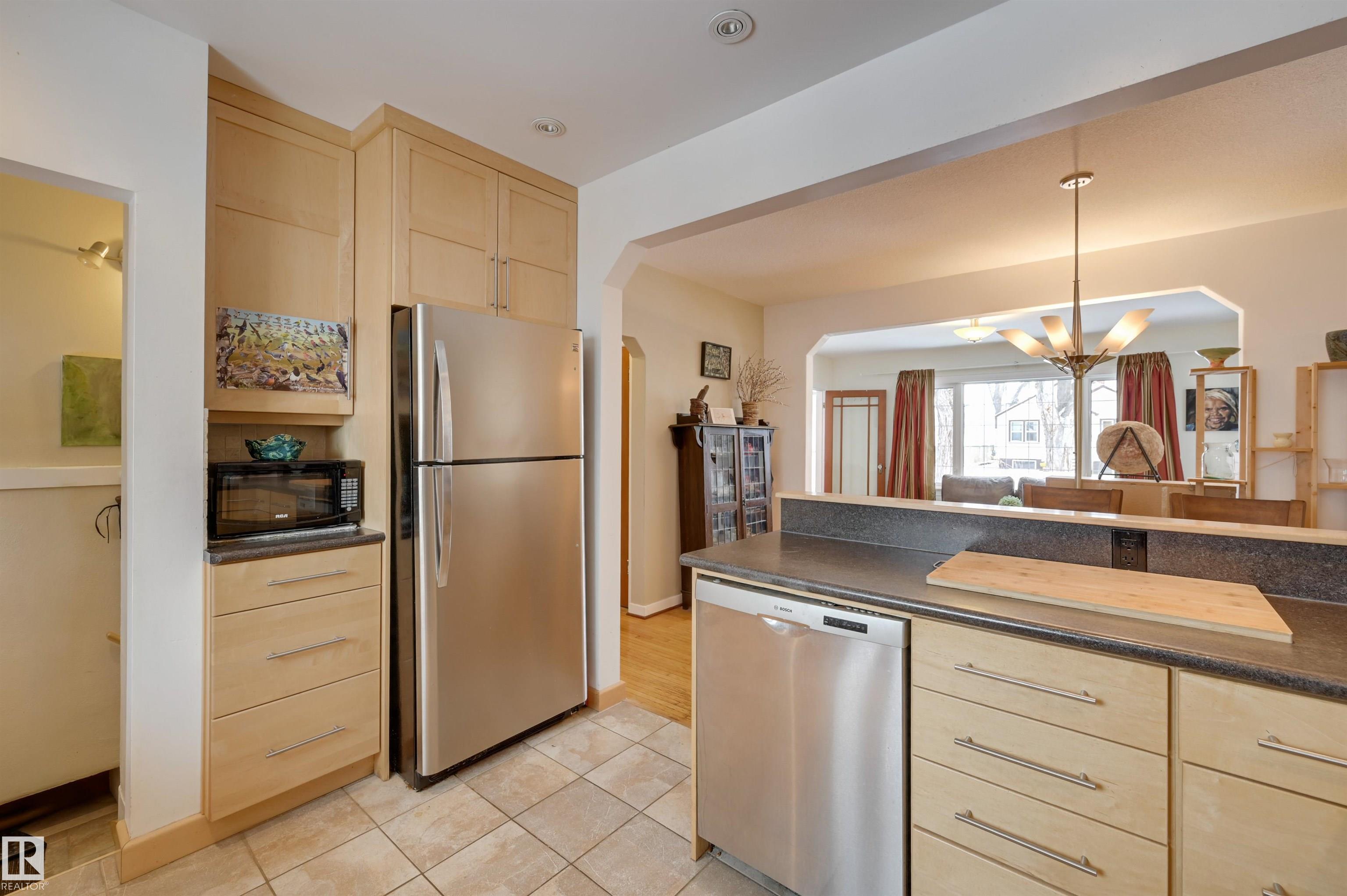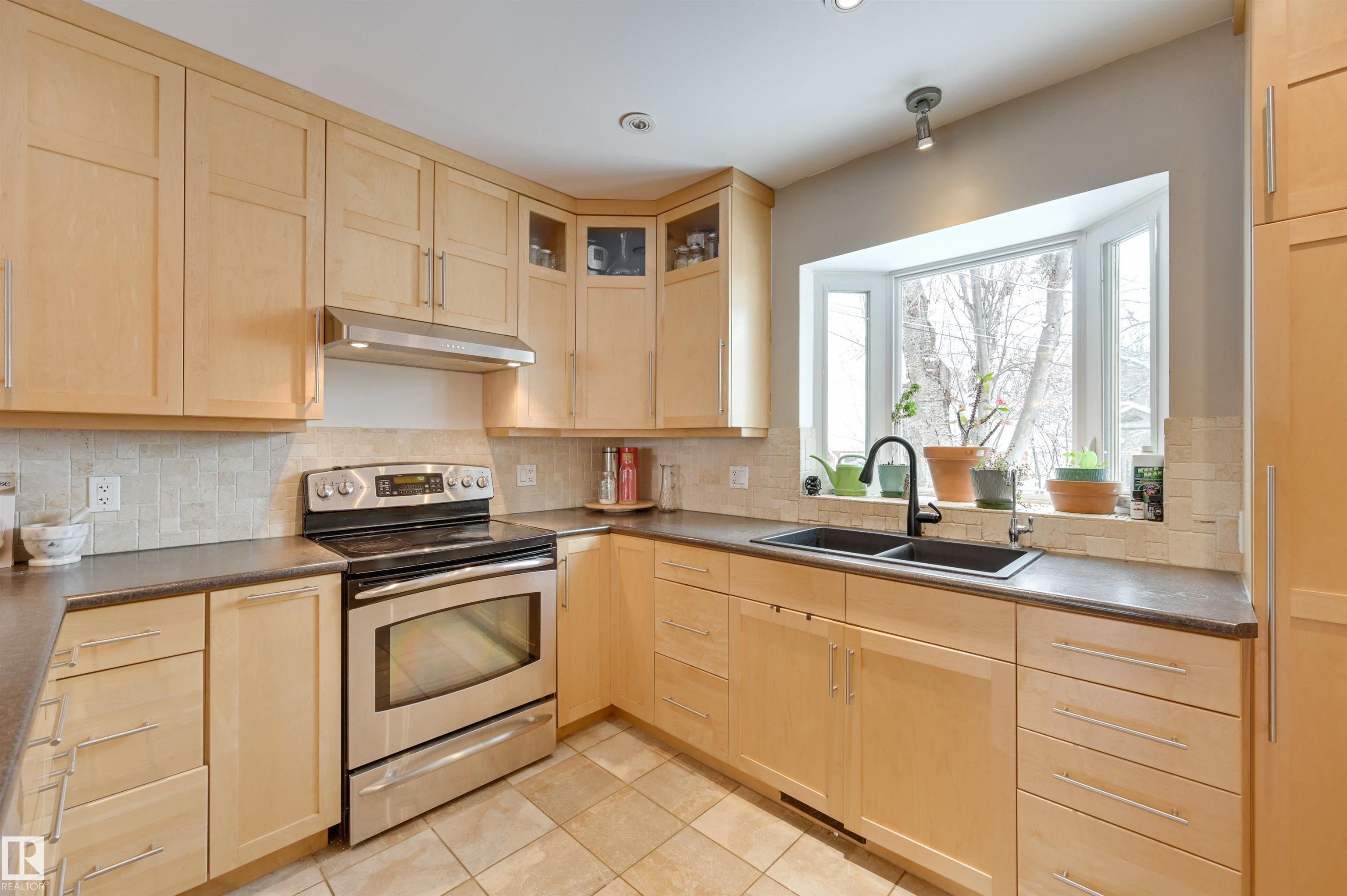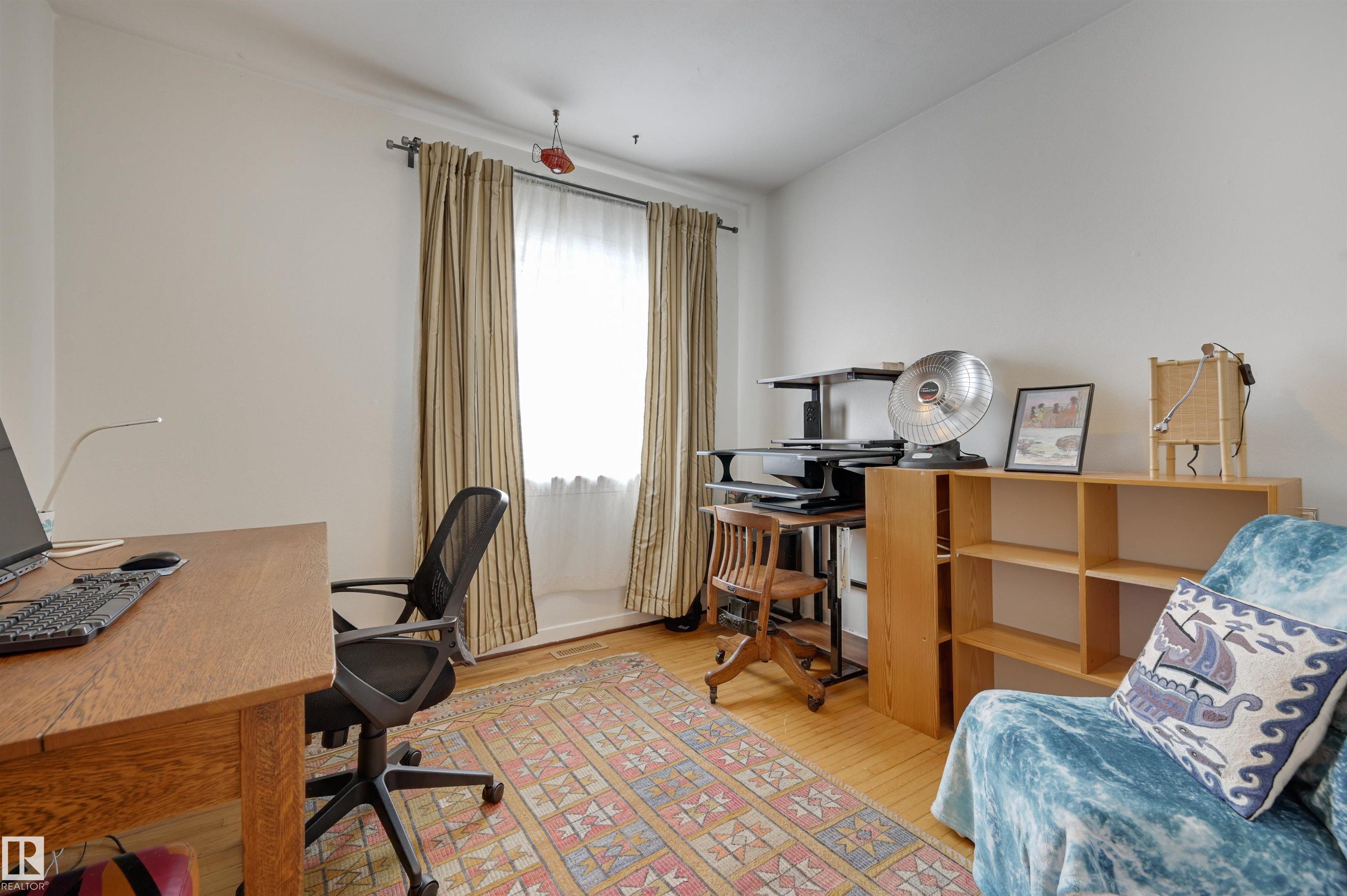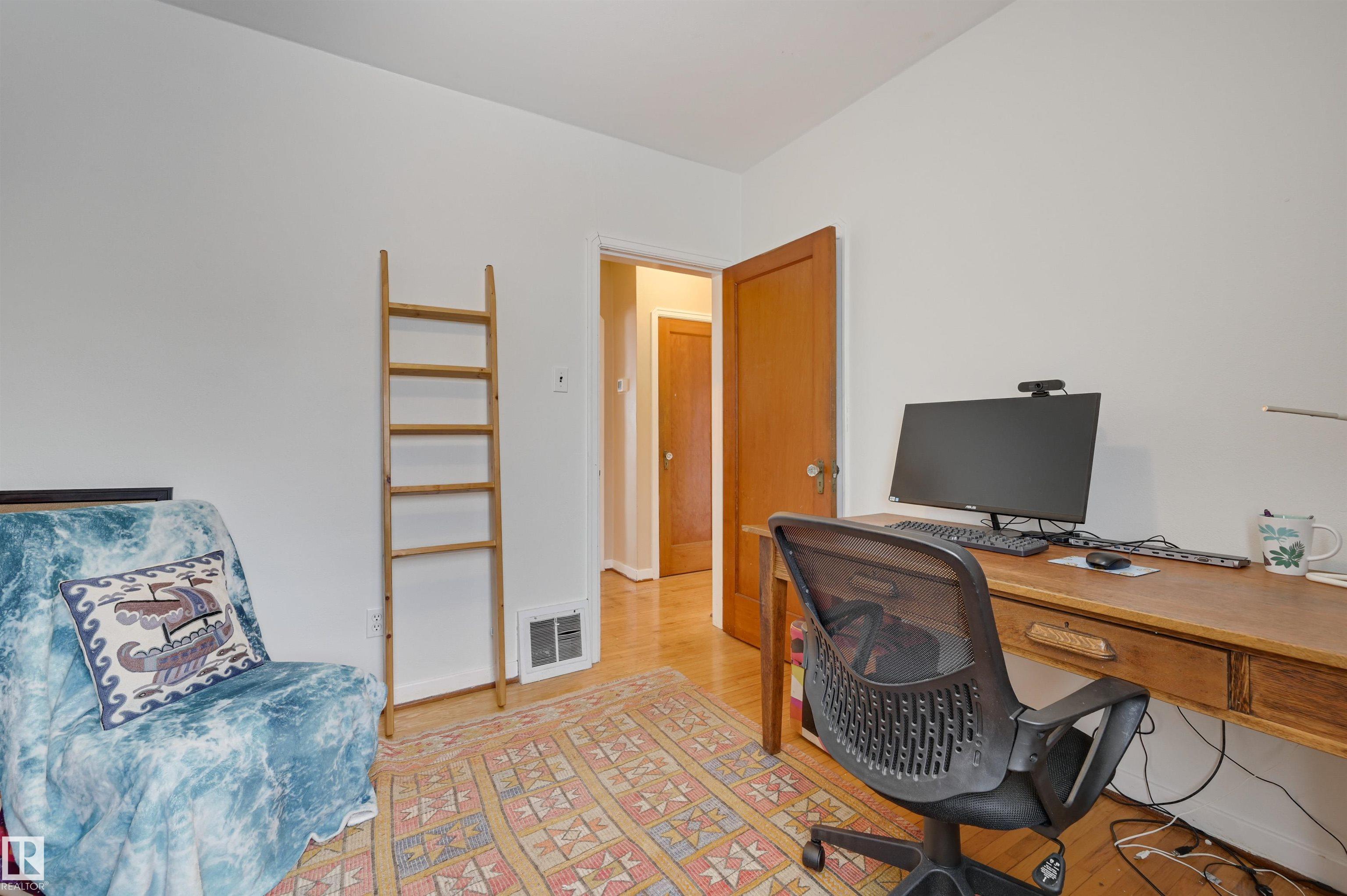 Perfectly maintained and cute as a button, this charming bungalow sits on a beautiful tree-lined street in Strathcona, just steps from Mill Creek Ravine. With a sunny south-facing backyard, the home is filled with natural light throughout the day. Full of character, yet thoughtfully updated, it blends timeless charm with modern convenience. The main floor offers a bright, open-concept living space featuring coved ceilings, original hardwood floors, & a decorative fireplace. The dining area flows seamlessly into the upgraded kitchen. Two well-sized bedrooms and a full bathroom complete the main level. Downstairs, the fully finished basement adds excellent versatility with an additional bedroom, full bathroom, and a spacious bonus room. Lovingly cared for and in excellent condition, this home is truly move-in ready. Ideally located in a highly walkable neighbourhood near Whyte Ave, Take Care Café, and local restaurants. A single car garage used as storage at back. Some photos are virtually staged.