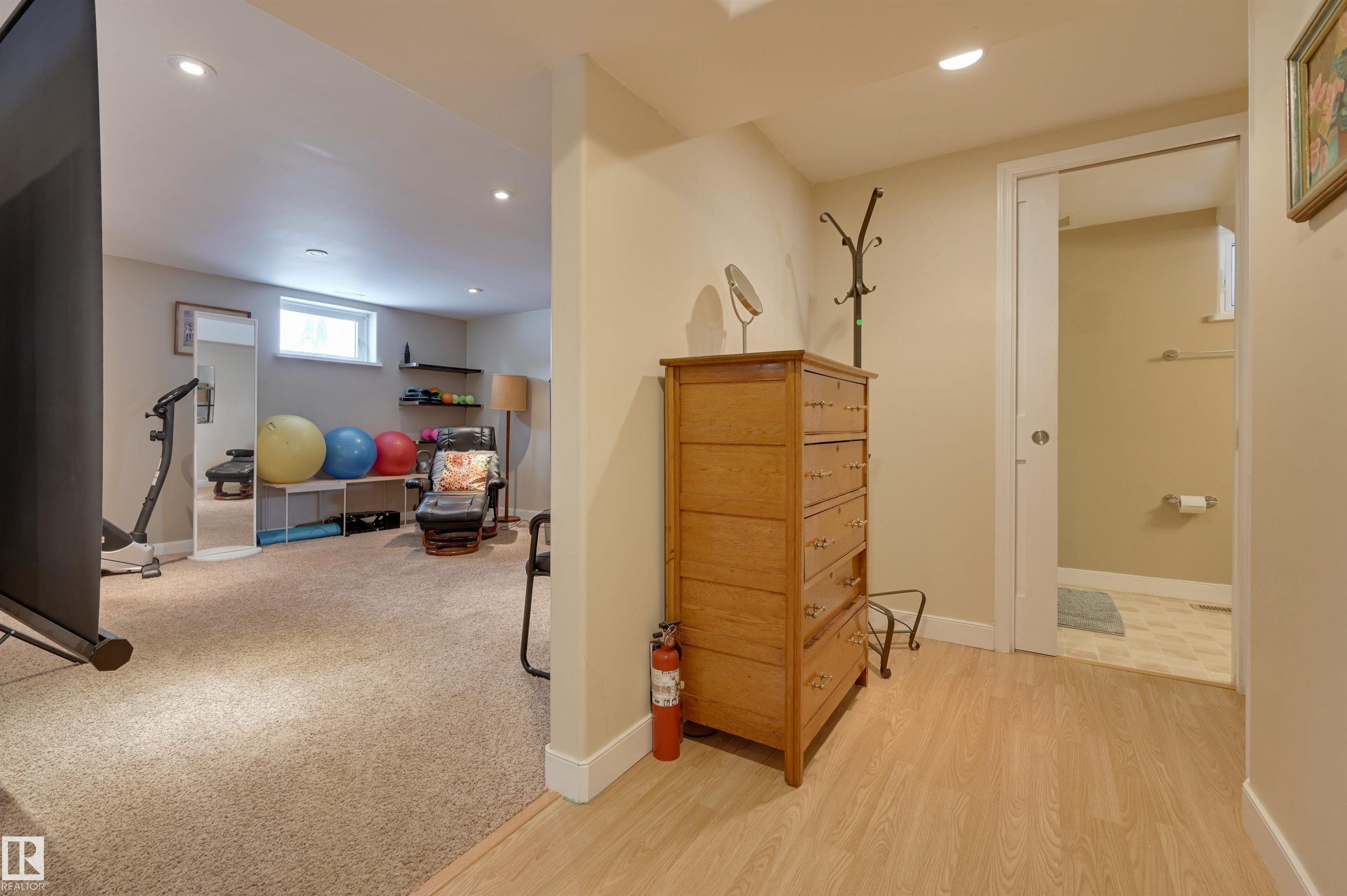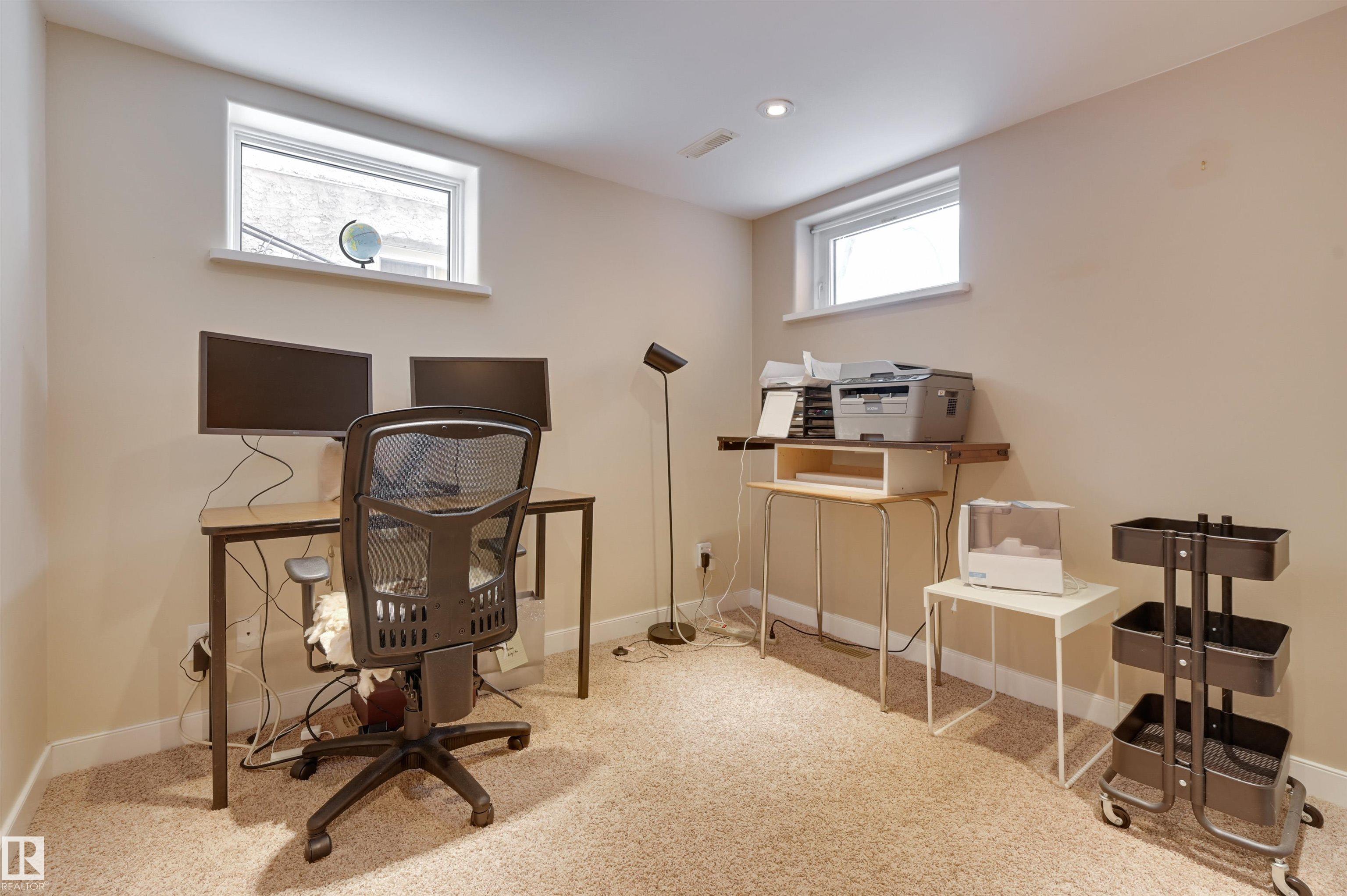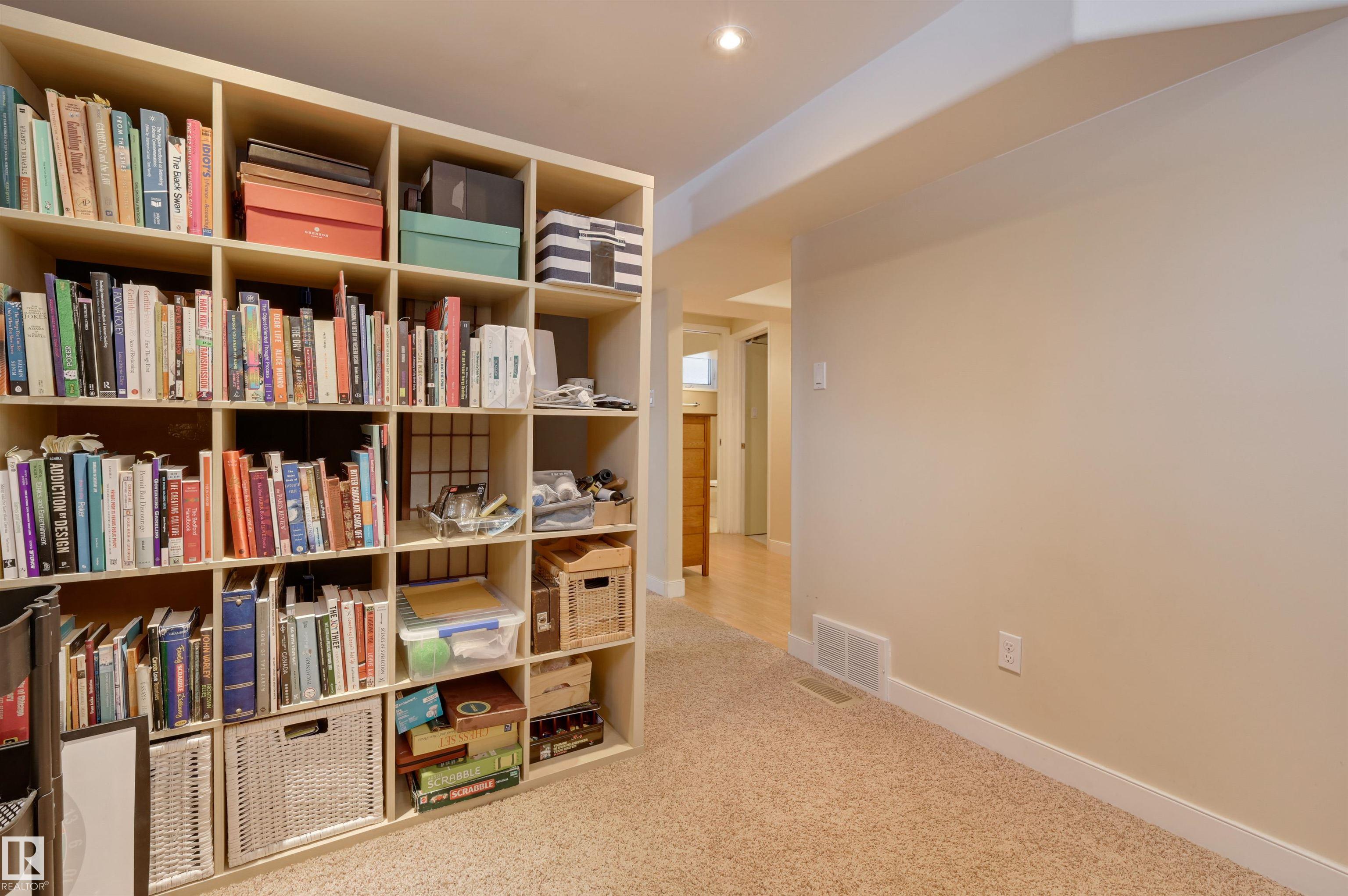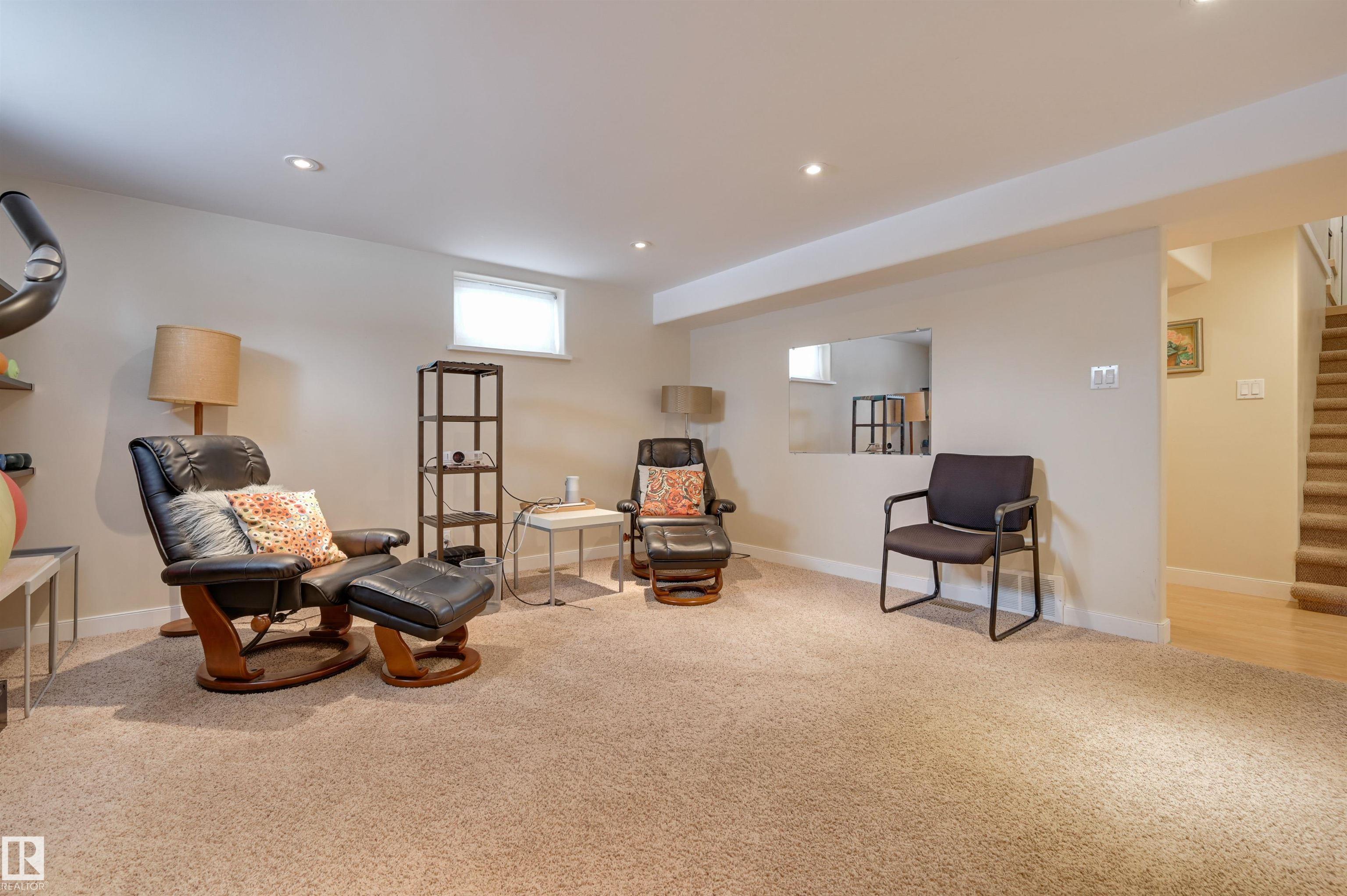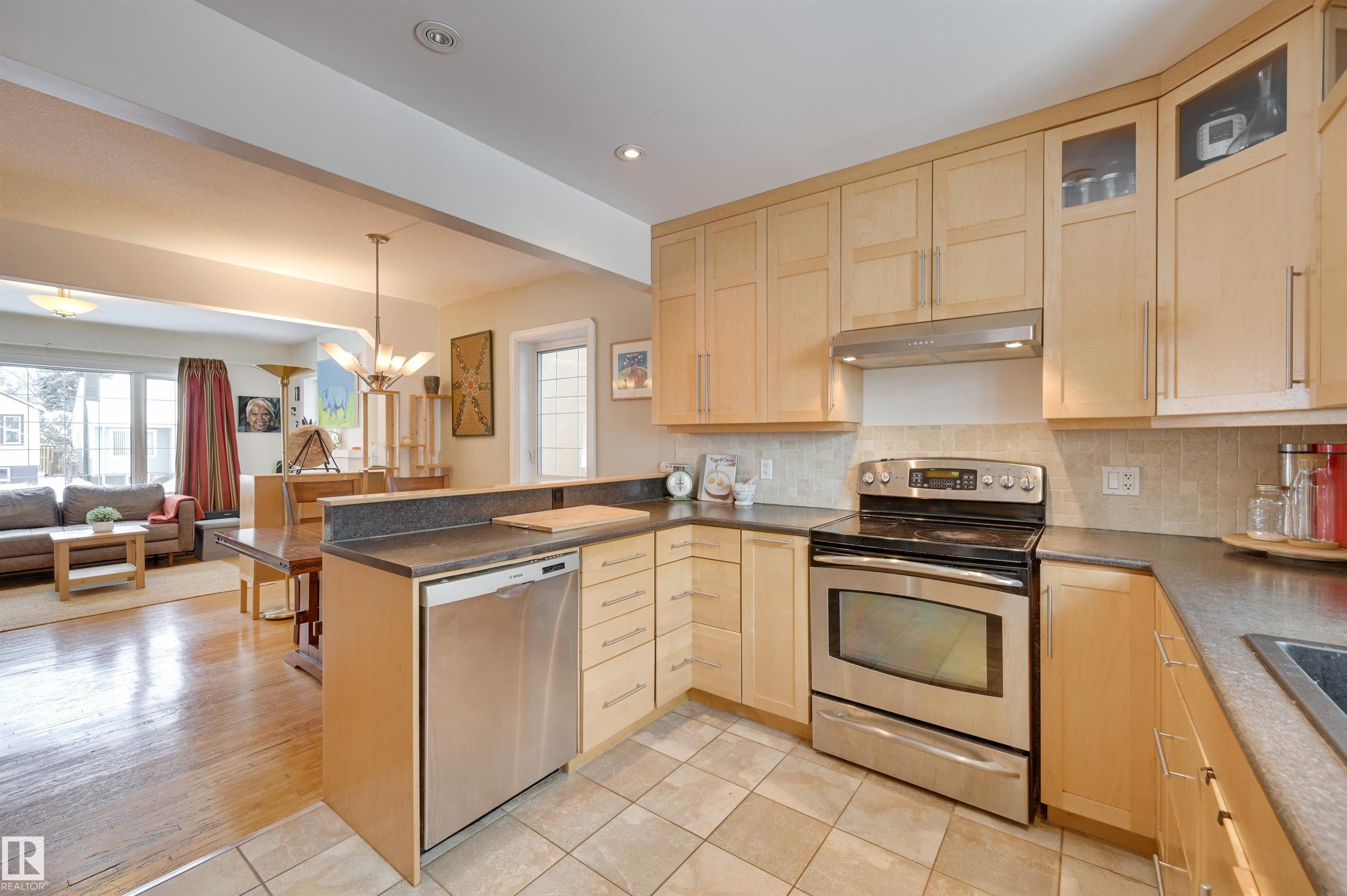 Perfectly maintained and cute as a button, this charming bungalow sits on a beautiful tree-lined street in Strathcona, just steps from Mill Creek Ravine. With a sunny south-facing backyard, the home is filled with natural light throughout the day. Full of character, yet thoughtfully updated, it blends timeless charm with modern convenience. The main floor offers a bright, open-concept living space featuring coved ceilings, original hardwood floors, & a decorative fireplace. The dining area flows seamlessly into the upgraded kitchen. Two well-sized bedrooms and a full bathroom complete the main level. Downstairs, the fully finished basement adds excellent versatility with an additional bedroom, full bathroom, and a spacious bonus room. Lovingly cared for and in excellent condition, this home is truly move-in ready. Ideally located in a highly walkable neighbourhood near Whyte Ave, Take Care Café, and local restaurants. A single car garage used as storage at back. Some photos are virtually staged.