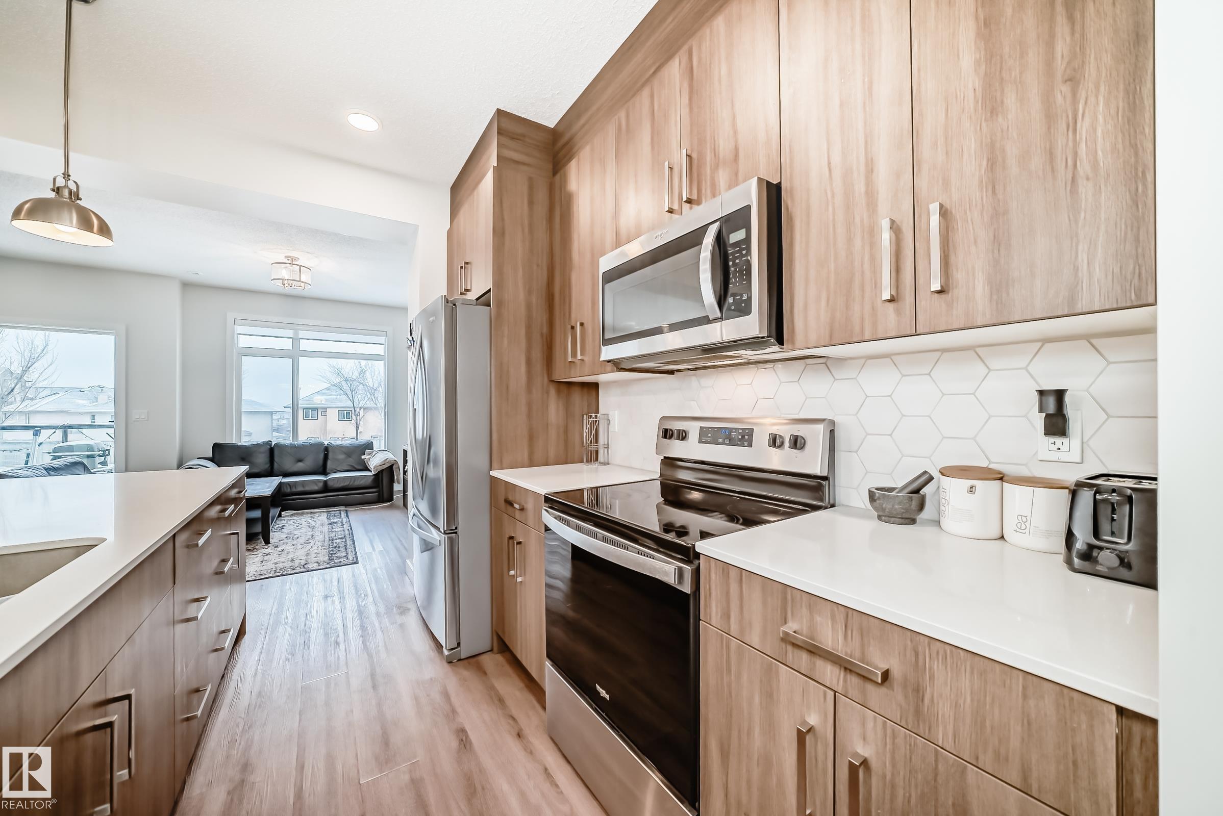ENJOY MODERN LIVING in the HEART OF WALKER with this immaculate 2022 BUILT 3 BED, 2.5 bath townhouse. Great OFFICE/DEN area as you enter, along with utility room and DOUBLE ATTACHED garage entry. Stairs lead up to the OPEN-CONCEPT main level with gorgeous VINYL PLANK flooring, bright dining space, kitchen offers QUARTZ COUNTERTOPS, stainless steel appliances, ample cabinetry, and a functional living room perfect for everyday living and entertaining. Upstairs you?ll find a fantastic primary bedroom with large window, WALK-IN closets, and 3pc ENSUITE! Perfect sized 2nd & 3rd bedroom, laundry & 4pc bath complete this level. NO NEIGHBOURS in the front. LOW CONDO FEES and convenient access to nearby WALKING TRAILS, LAKE, schools, shopping, parks, and Anthony Henday make this an excellent opportunity for first-time buyers or investors. Energy-efficient mechanical including HRV & tankless hot water for a lower utility bill. This well maintained complex offers visitor parking perfect when entertaining guests.