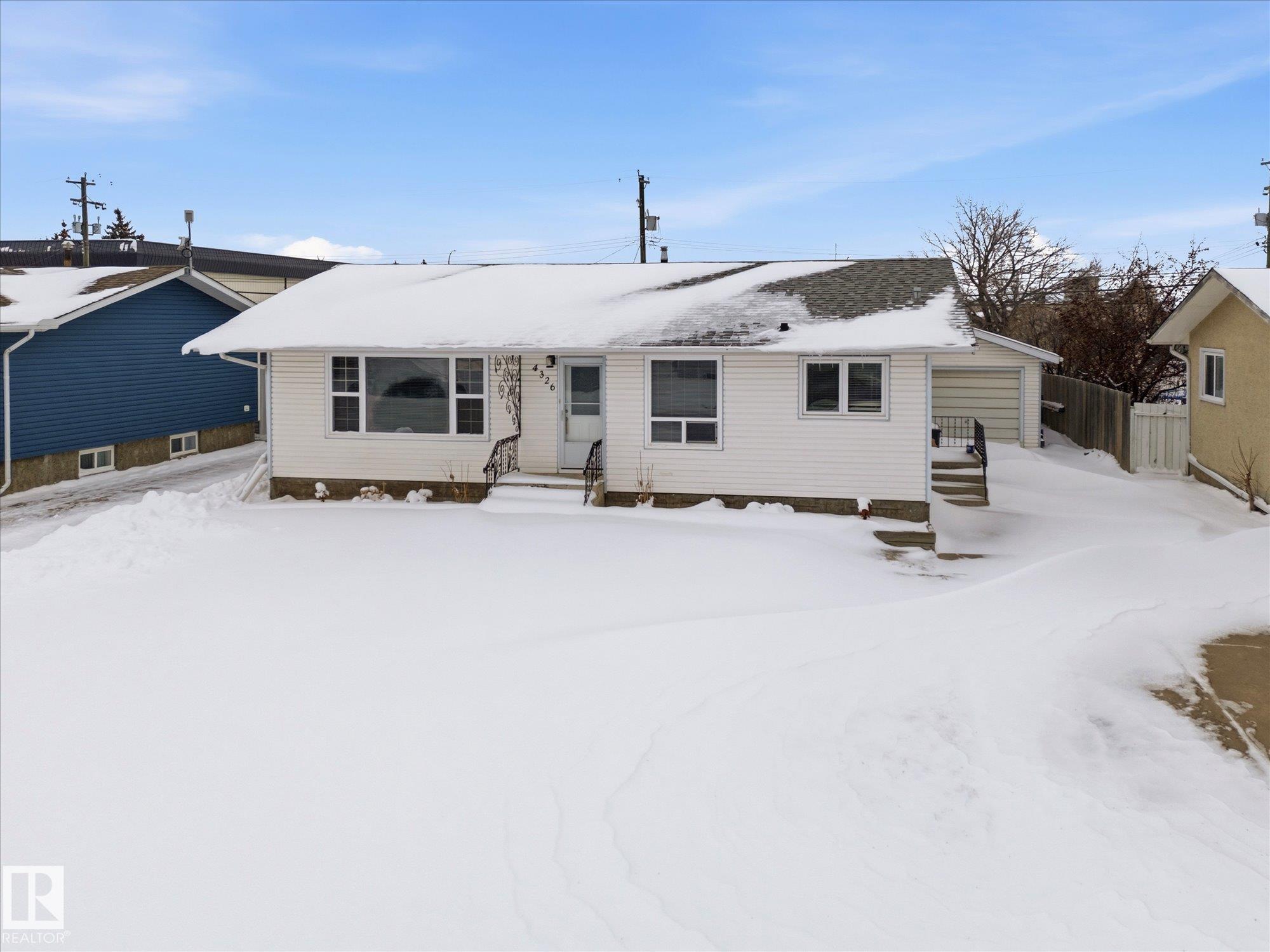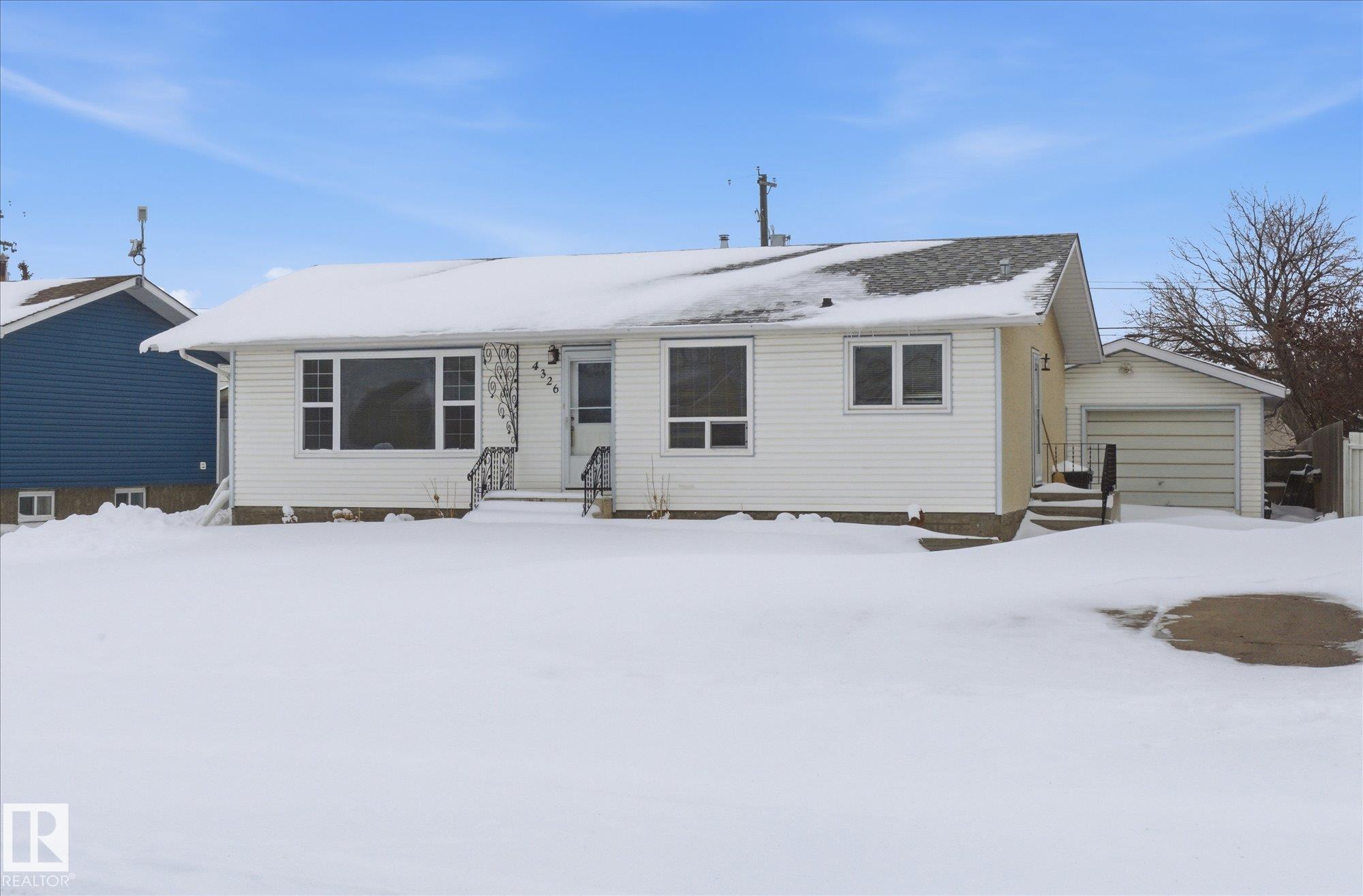 Welcome to 4326-49 Avenue in St Paul, this small town is located 2 hours northeast of Edmonton. This 1089 sqft bungalow has been fully renovated on the main floor, including the newer kitchen with dark cabinetry, light countertops & SS appliances. The kitchen also has updated vinyl plank flooring. You will enjoy the open concept floorplan this home offers. There are 3 bedrooms and a 5p bath on the main floor. One of the bedrooms has access to the newer deck but could be used as mudroom or office. The basement is partially finished & included the another bedroom, a den, a 2p bathroom, large laundry/storage room & a family room. Outside you will find a large fenced yard & a single detatched garage. This home backs onto businesses instead of other backyards so it is very private. The town of St. Paul offers a Rec Centre, Aquatics Centre, Golf Course, Arena, Outdoor Ball Diamonds, Movie Theatre & Museum. *The basement bedroom windows doesn't meet egress *Some photos are virtually staged
