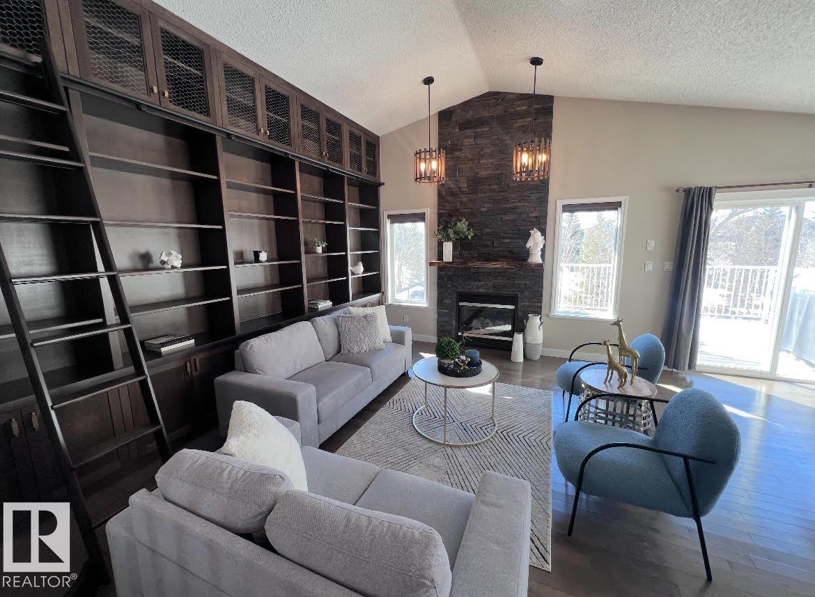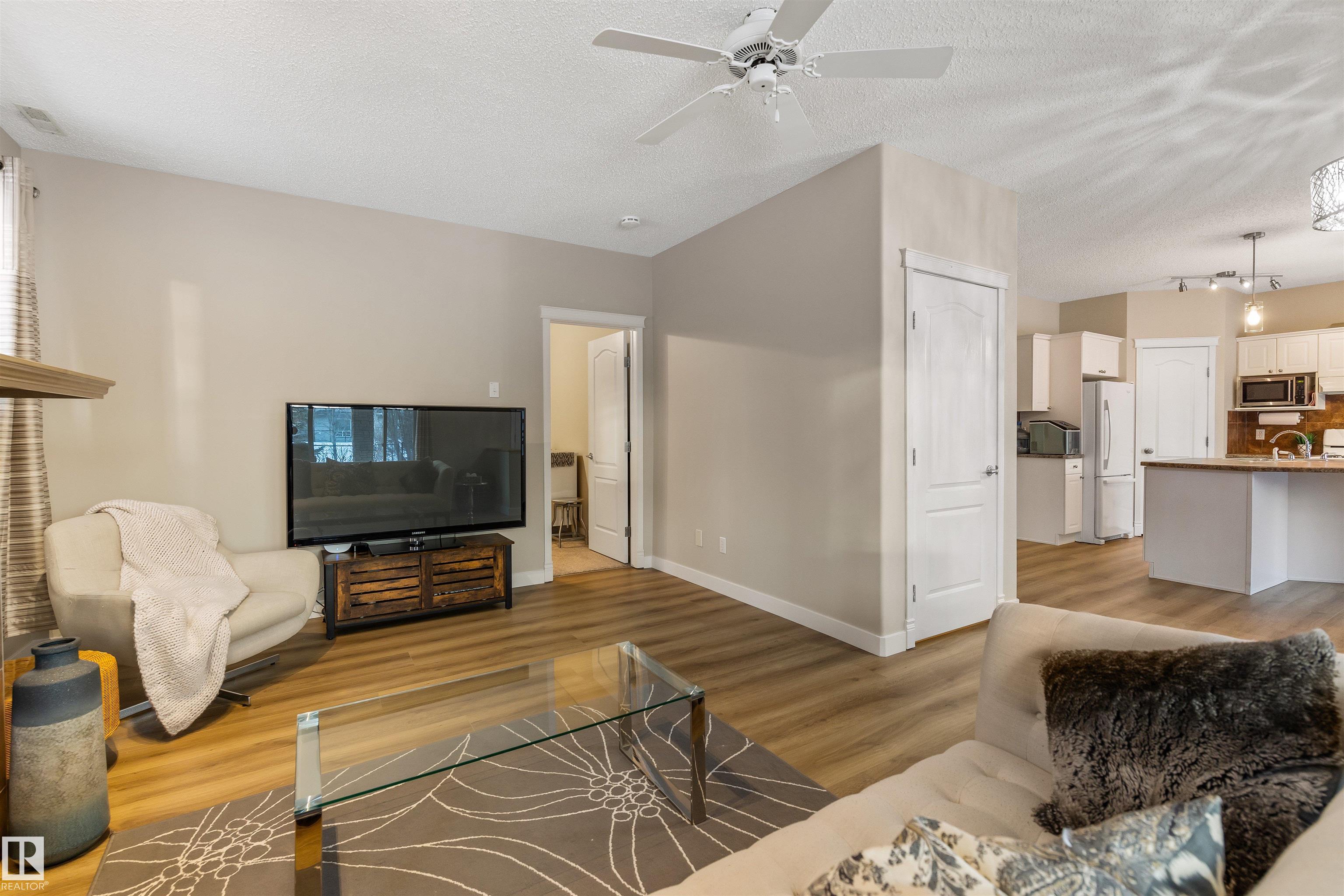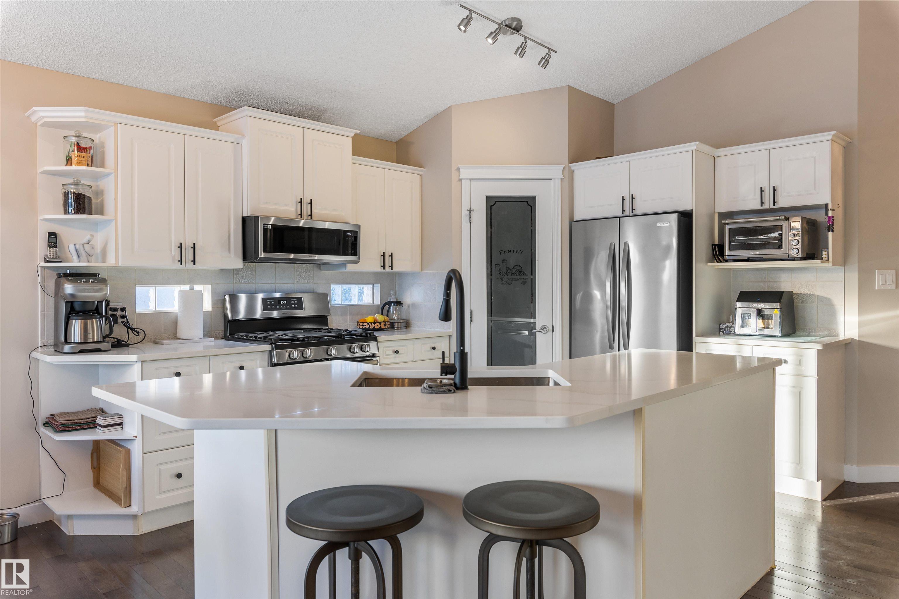 On a quiet crescent in Northridge, discover this charming WALKOUT BUNGALOW backing onto Newbury PARK. This home has great curb appeal w/ a covered front deck. The entrance welcomes guests into an OPEN DESIGN featuring a white kitchen w/ QUARTZ counters, eating bar island, corner pantry, tile backsplash, pot/pan drawers, crown moulding trim on the upper cabinets & s/s appliances. The living room has soaring VAULTED CEILINGS, a gas f/p w/ stone front, a wood mantle & a stunning library wall. The dining nook has access out to the maintenance free back deck w/ gorgeous park views. A French door leads into a front office w/ hardwood flooring which flows throughout most of the main floor. The garage entrance has the laundry facilities. There are 2 main floor bedrooms, a 4pce bath & a 3pce ensuite. The fully finished WALKOUT basement has a 2nd kitchen, family room w/ f/p, 3rd bedroom, hobby room, 4pce bath & a 2nd laundry room. A double attached OVERSIZED HEATED garage completes this excellent property!