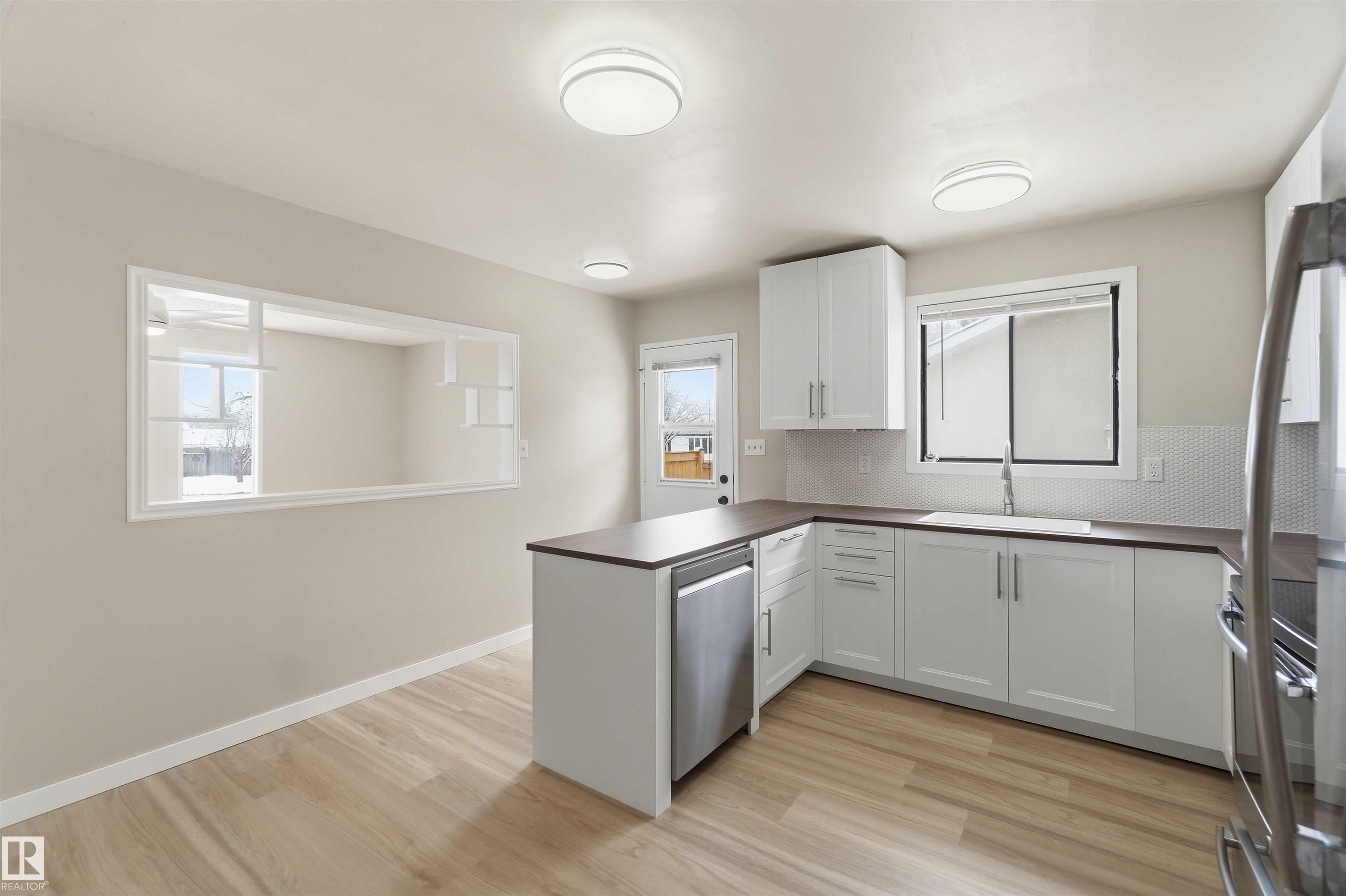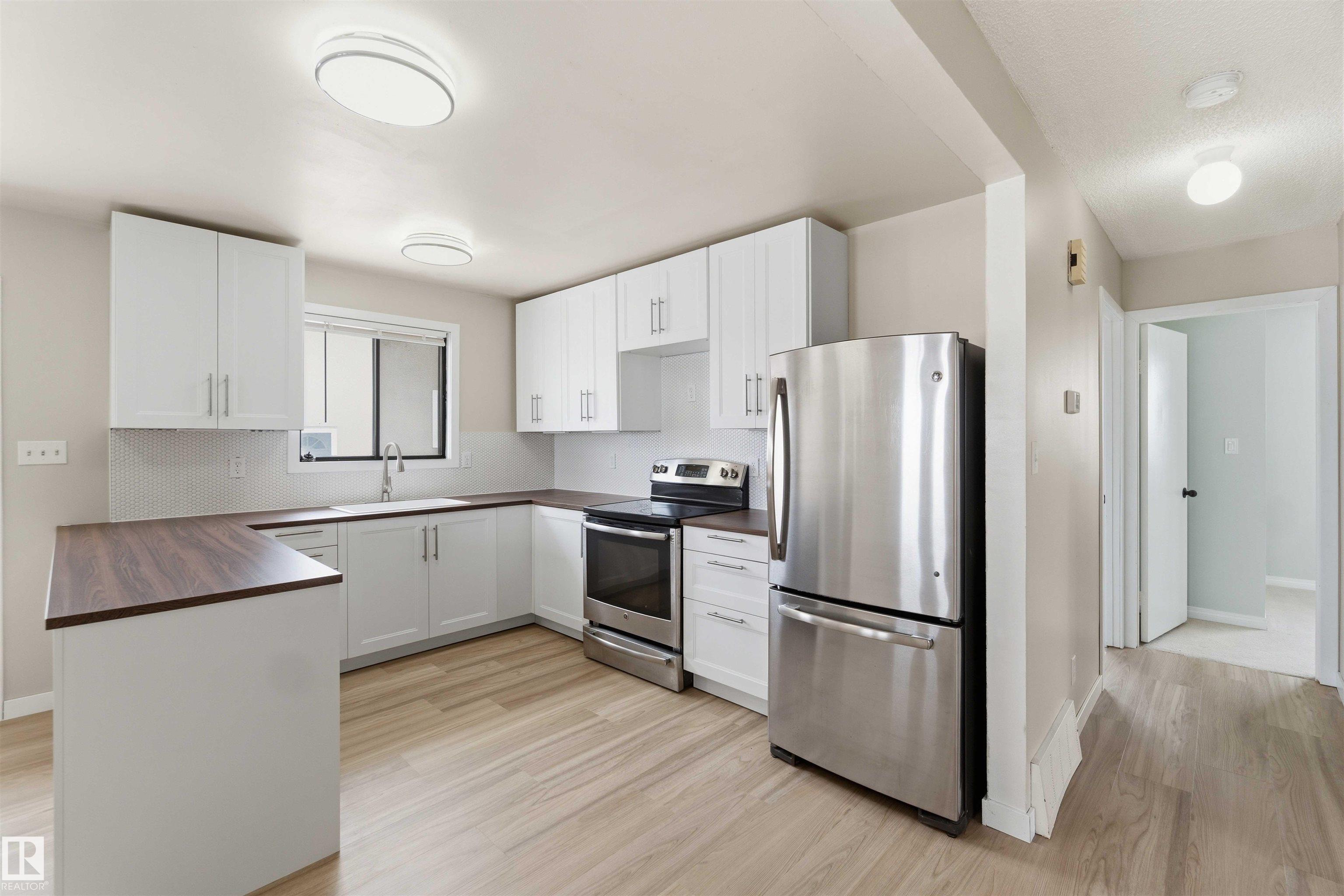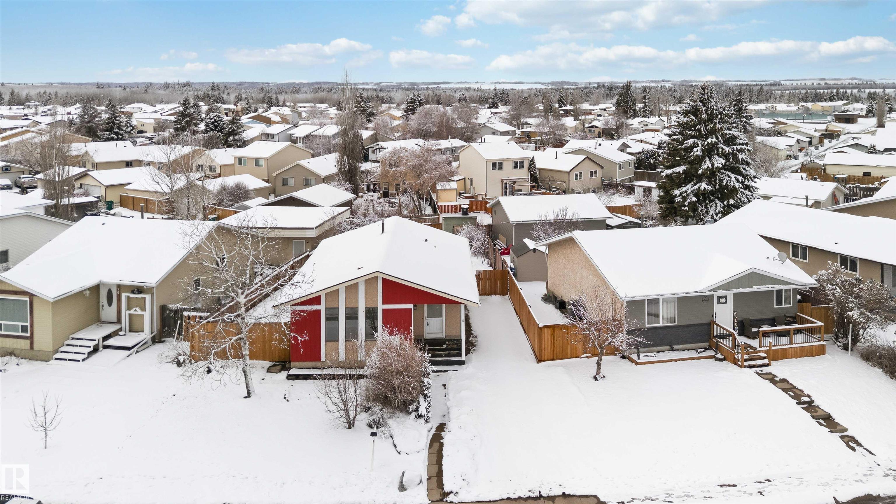 This charming 993 sq. ft. bungalow in Gibbons is the quintessential starter home, offering an unbeatable mix of affordability and high-value modern updates. The main floor features three comfortable bedrooms and has been beautifully refreshed with brand-new flooring and a stunning kitchen completed just months ago, while the finished basement provides a spacious rec room and two additional bedrooms (please note basement windows do not meet current egress codes). You can enjoy total peace of mind with major mechanical upgrades including a new furnace and central AC installed in 2022, along with a lovely new deck built last year that is perfect for summer entertaining. Ideally situated for convenience, this move-in-ready gem is located just 15 minutes from the military base, making it a fantastic opportunity for service members or first-time buyers looking for a solid investment in a friendly community. some picture are virtually Stages