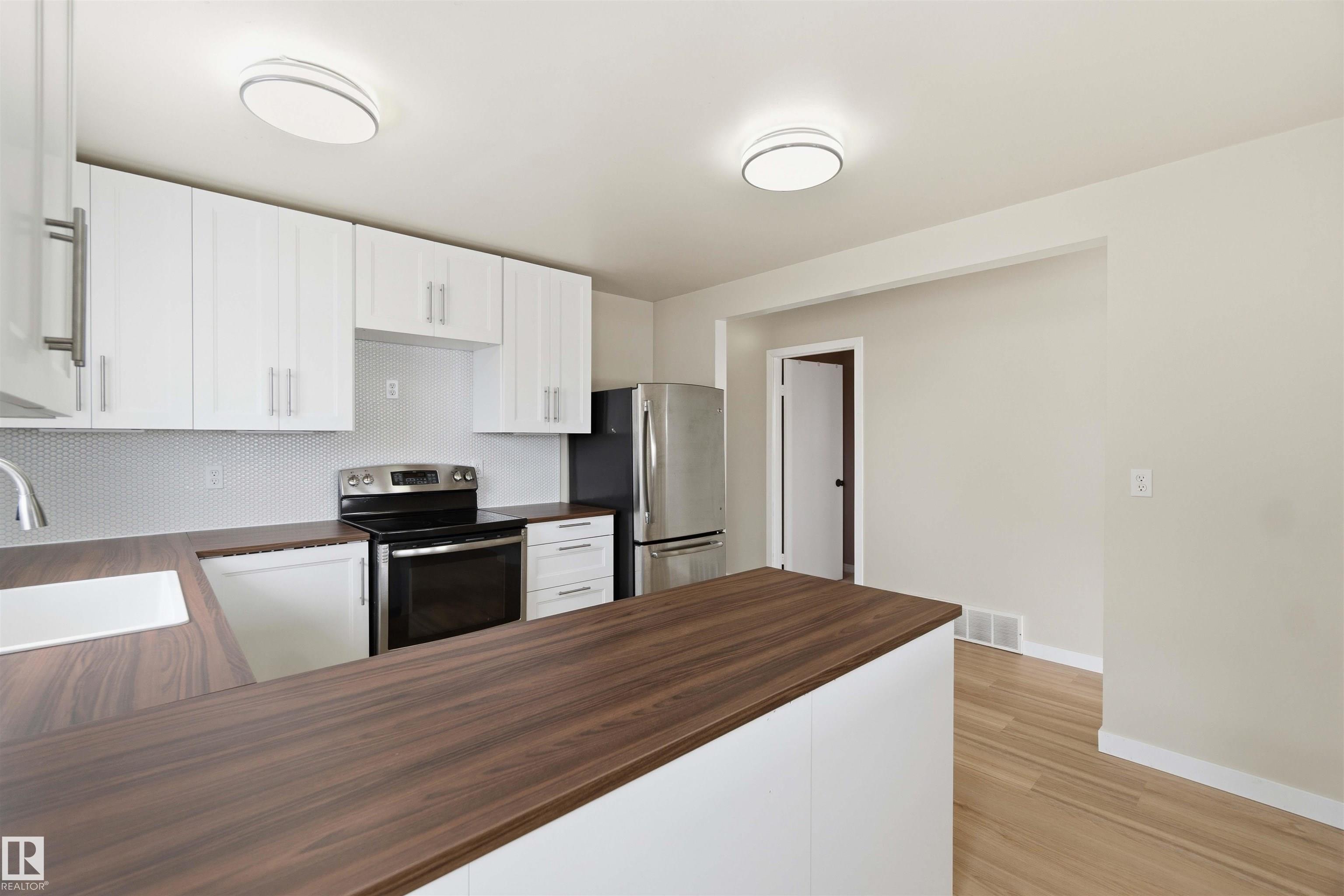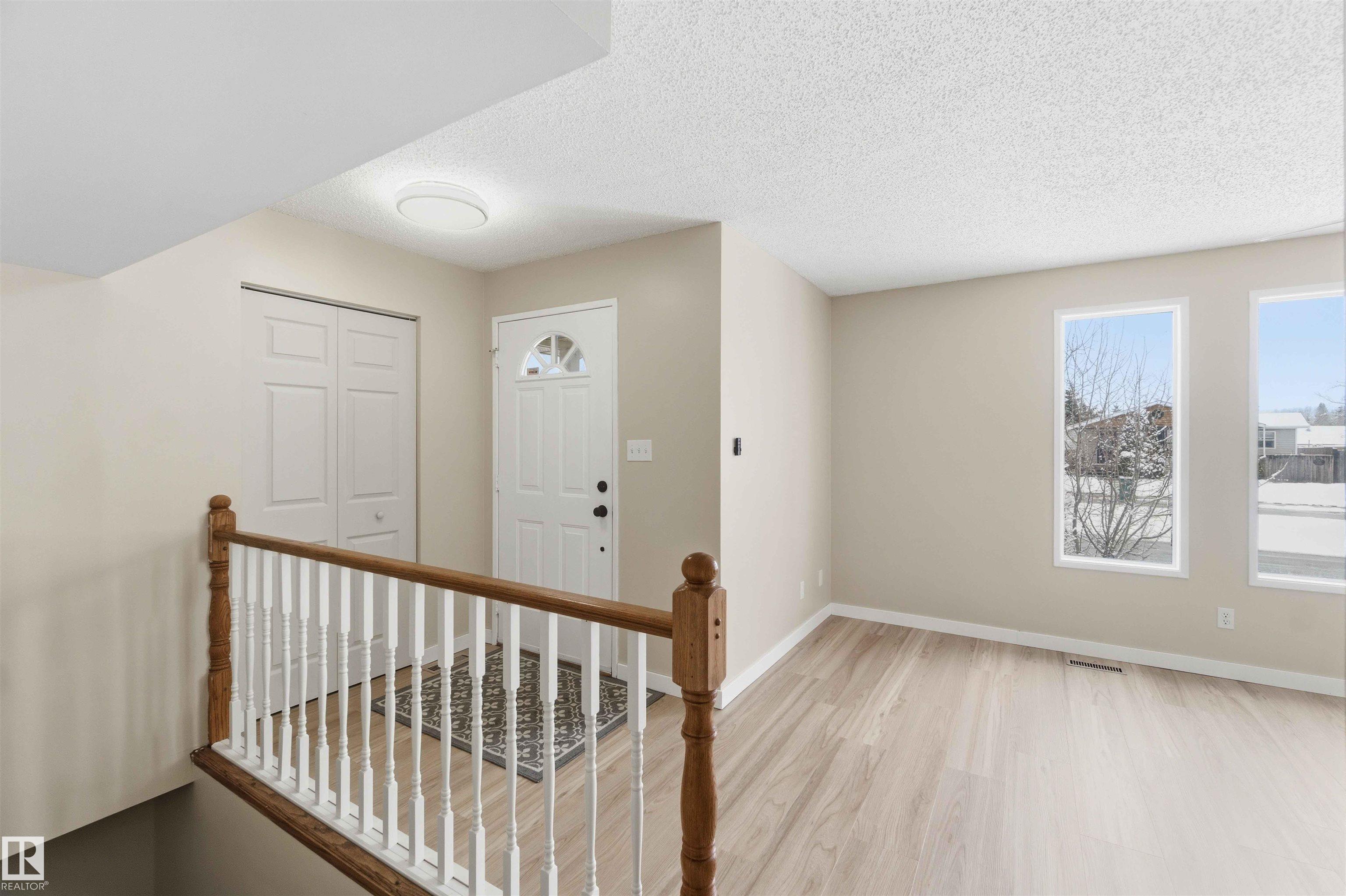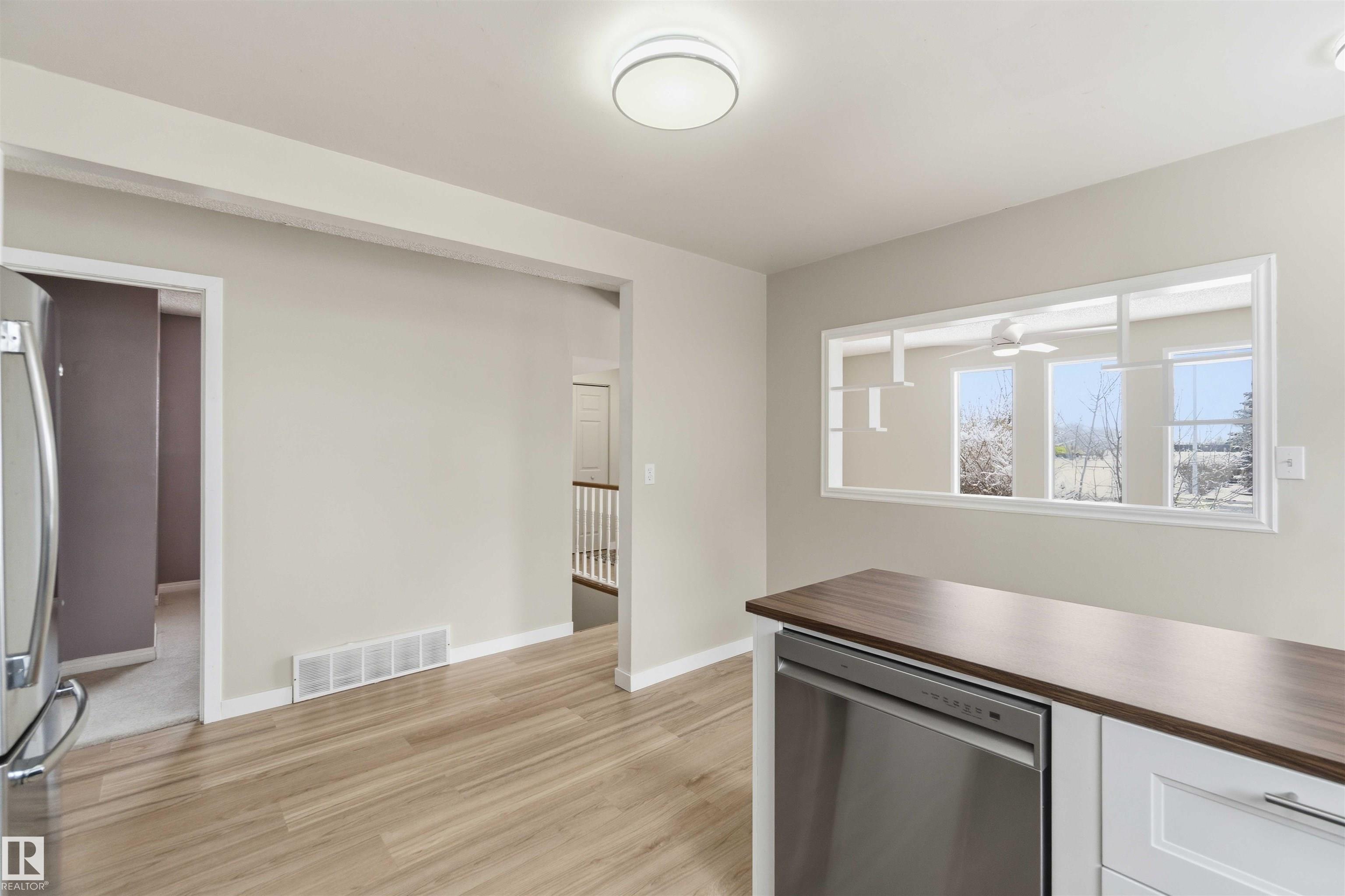 This charming 993 sq. ft. bungalow in Gibbons is the quintessential starter home, offering an unbeatable mix of affordability and high-value modern updates. The main floor features three comfortable bedrooms and has been beautifully refreshed with brand-new flooring and a stunning kitchen completed just months ago, while the finished basement provides a spacious rec room and two additional bedrooms (please note basement windows do not meet current egress codes). You can enjoy total peace of mind with major mechanical upgrades including a new furnace and central AC installed in 2022, along with a lovely new deck built last year that is perfect for summer entertaining. Ideally situated for convenience, this move-in-ready gem is located just 15 minutes from the military base, making it a fantastic opportunity for service members or first-time buyers looking for a solid investment in a friendly community. some picture are virtually Stages