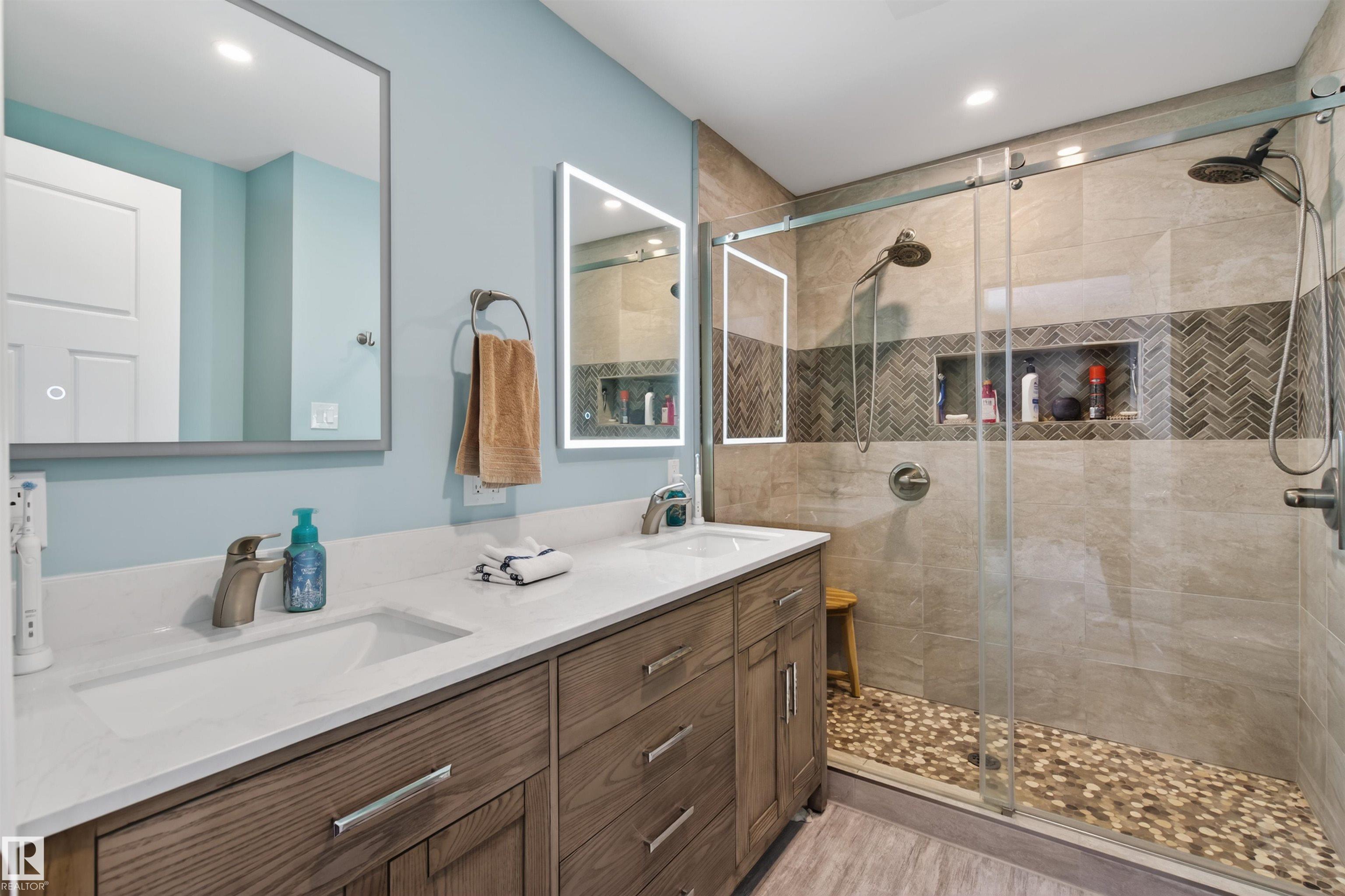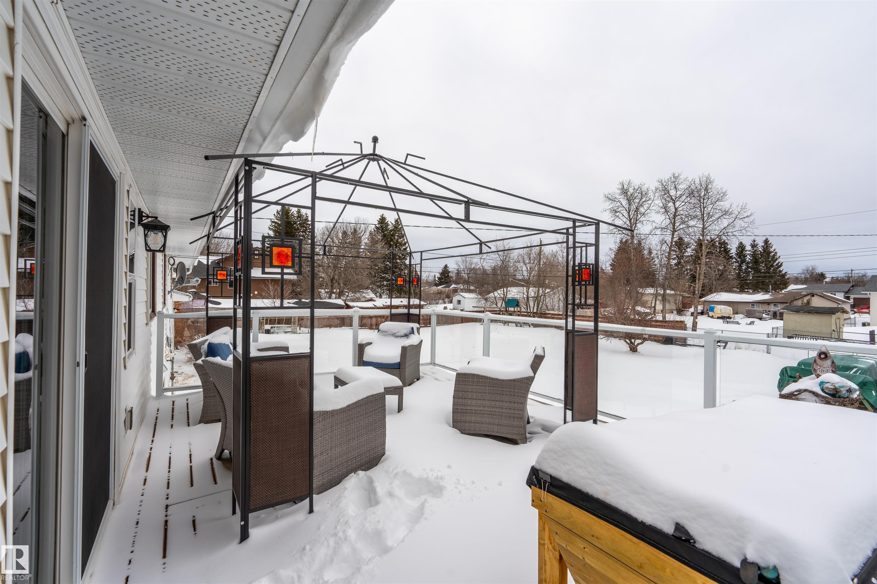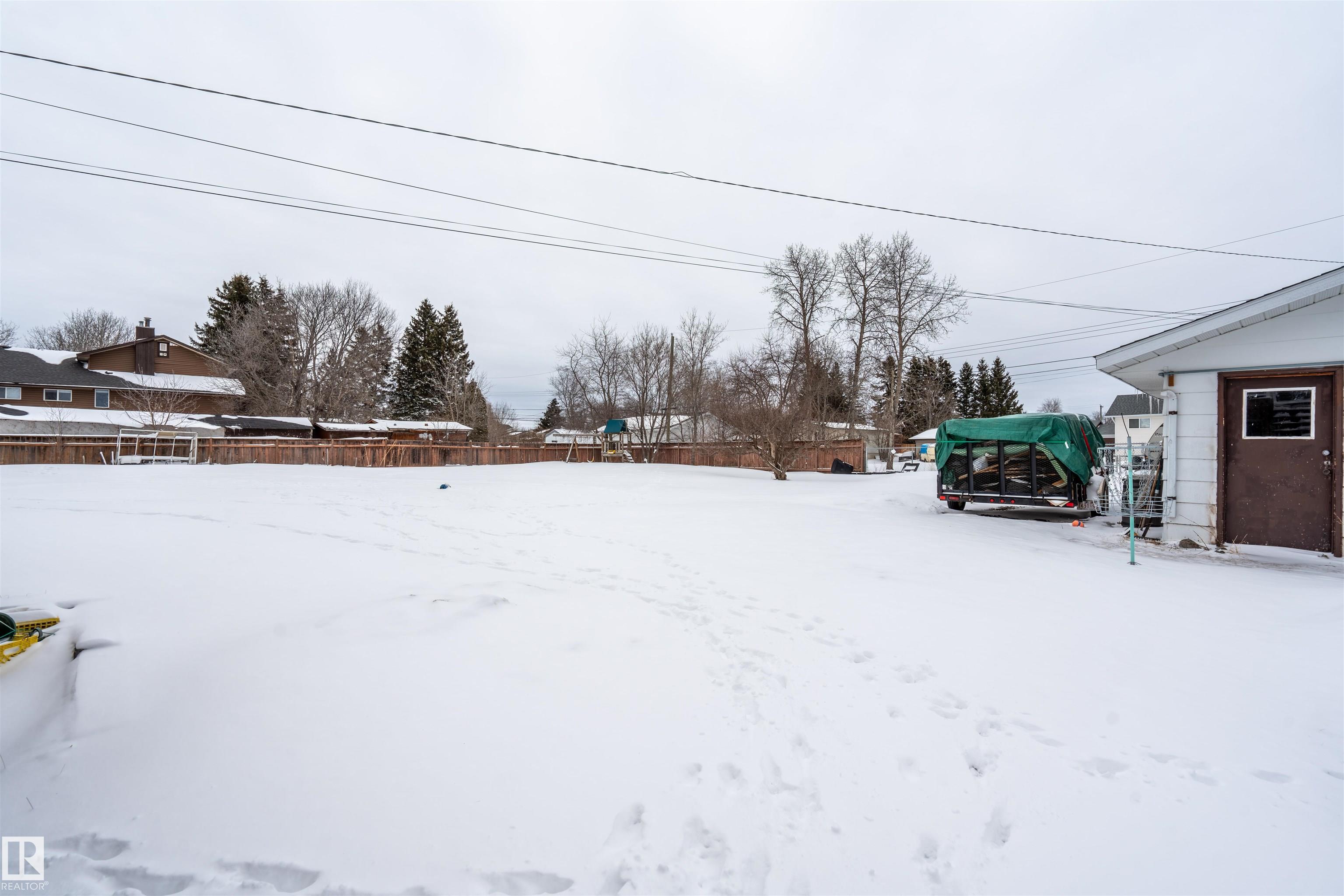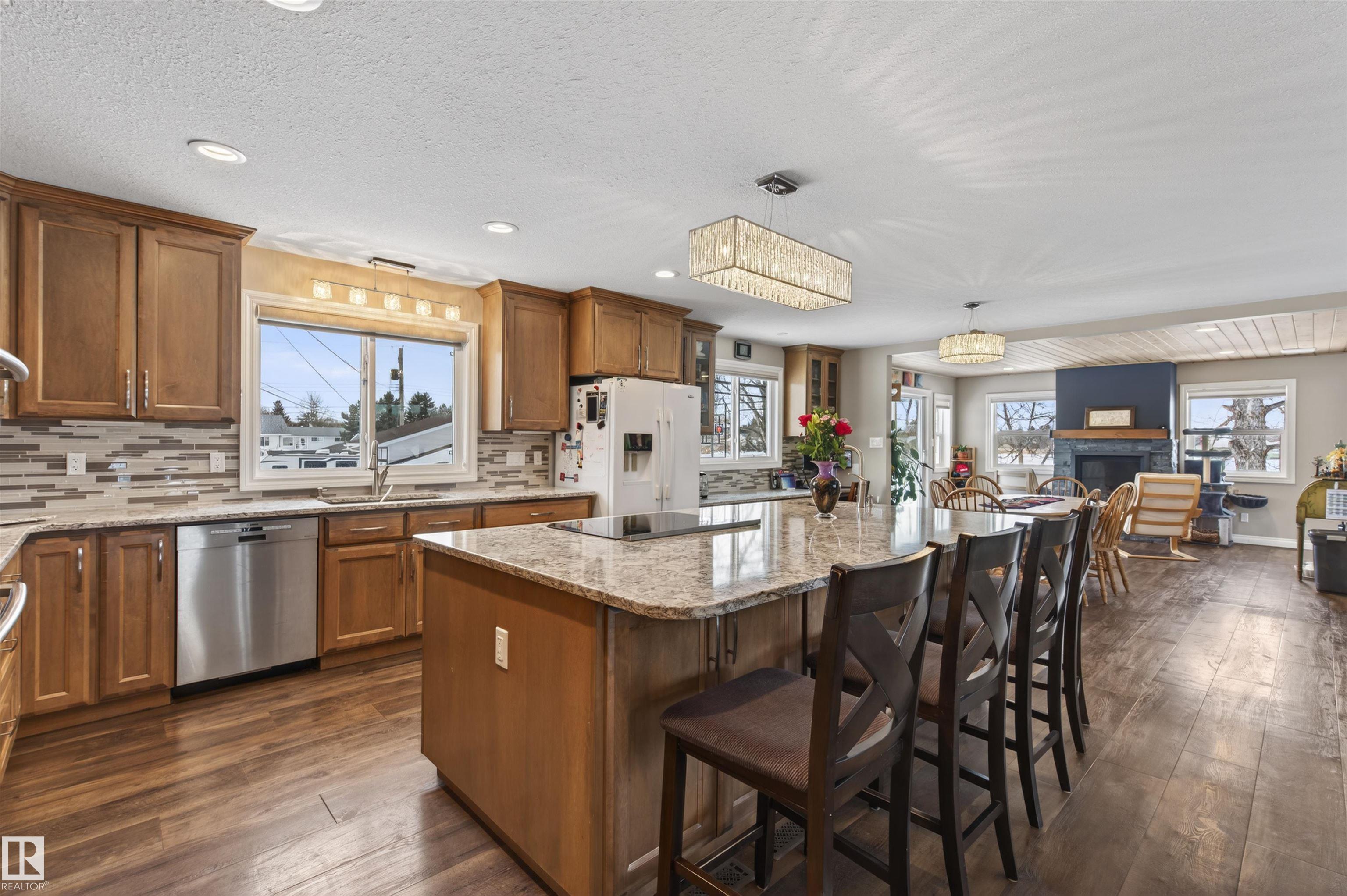 Tucked away on a dead-end street, this 5 bedroom property offers a rare in-town 0.6 acre lot with space, privacy, and an incredible setup for both family living and hobbies - imagine country living in town. The attached heated double garage is matched by an impressive 1,500 sq ft detached shop with 220 plug. Inside, the fully renovated main level showcases updated flooring, kitchen, bathrooms, and a beautifully redesigned primary bedroom. The showpiece kitchen features a massive island with prep sink, quartz countertops, double wall ovens, cooktop in the island, and a large coffee bar. A cozy sitting room with gas fireplace and patio doors opens to the backyard, while the bright living room is filled with natural light from oversized windows. The spacious primary retreat offers a huge closet area and ensuite with double vanity and 6 ft tiled shower with dual shower heads. The walkout basement with in-floor heat adds a family room, 2 bedrooms, 2 baths, library/office space, mudroom, and tons of storage.