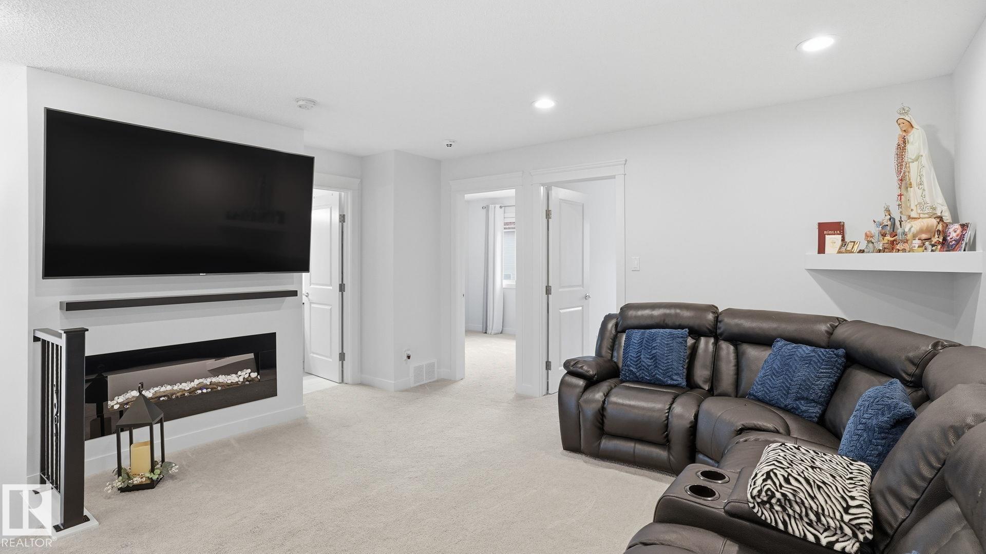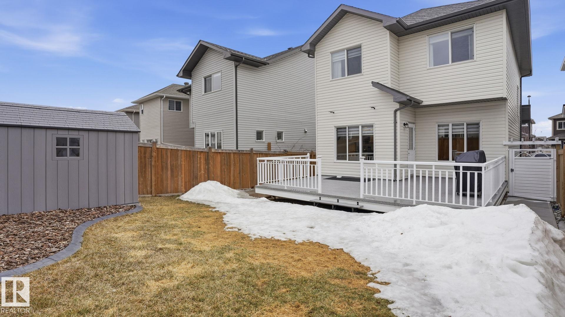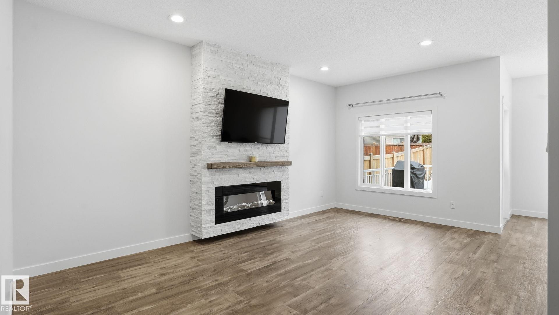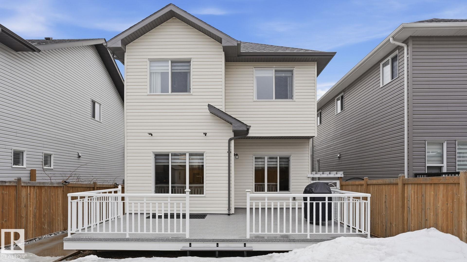 Beautiful 2-storey home in Cy Becker offering over 2400 sqft of thoughtfully designed living space and premium upgrades including A/C/, custom garage and finishes throughout. This 4 bedroom, 4 bathroom home blends style and function with a bright, open main floor featuring 9 ft ceilings, a striking stone fireplace, and seamless flow between the living, dining, and kitchen. The modern kitchen has quartz countertops, eat up island, pantry, and stainless steel appliances. Upstairs, a spacious bonus room creates the perfect setting for movie nights or a home office, alongside 3 bedrooms and 2 full baths. The king-sized primary retreat features vaulted ceilings, a walk-in closet, and ensuite. The finished basement adds a large rec room with dry bar, an additional bedroom, and full bath. Enjoy a landscaped yard with maintenance-free deck and ample green space. Upgraded heated double garage with epoxy floors, drain, water, and extended driveway. Close to parks, schools, transit & lake walking pathway & trails.