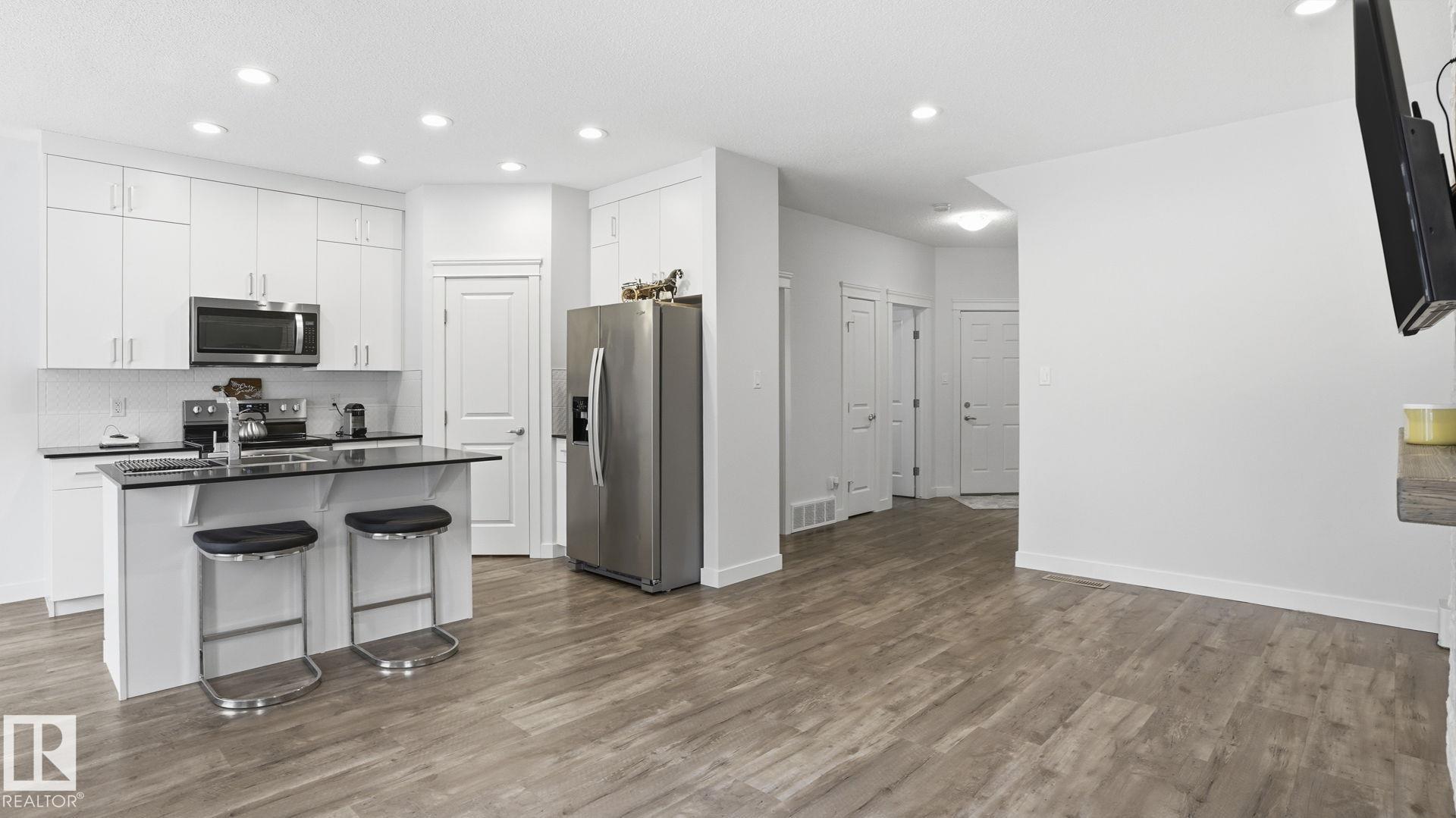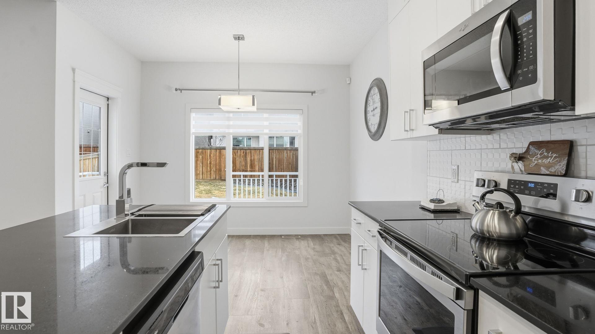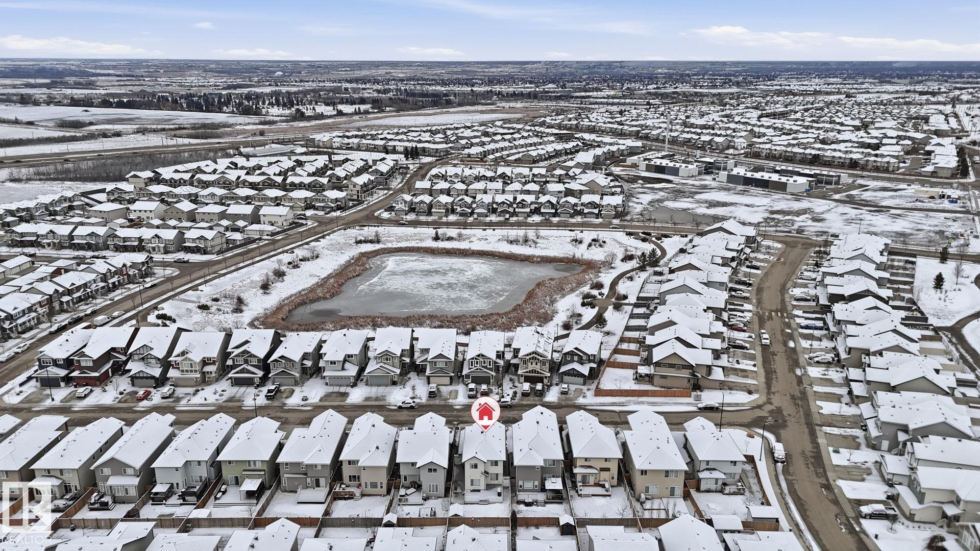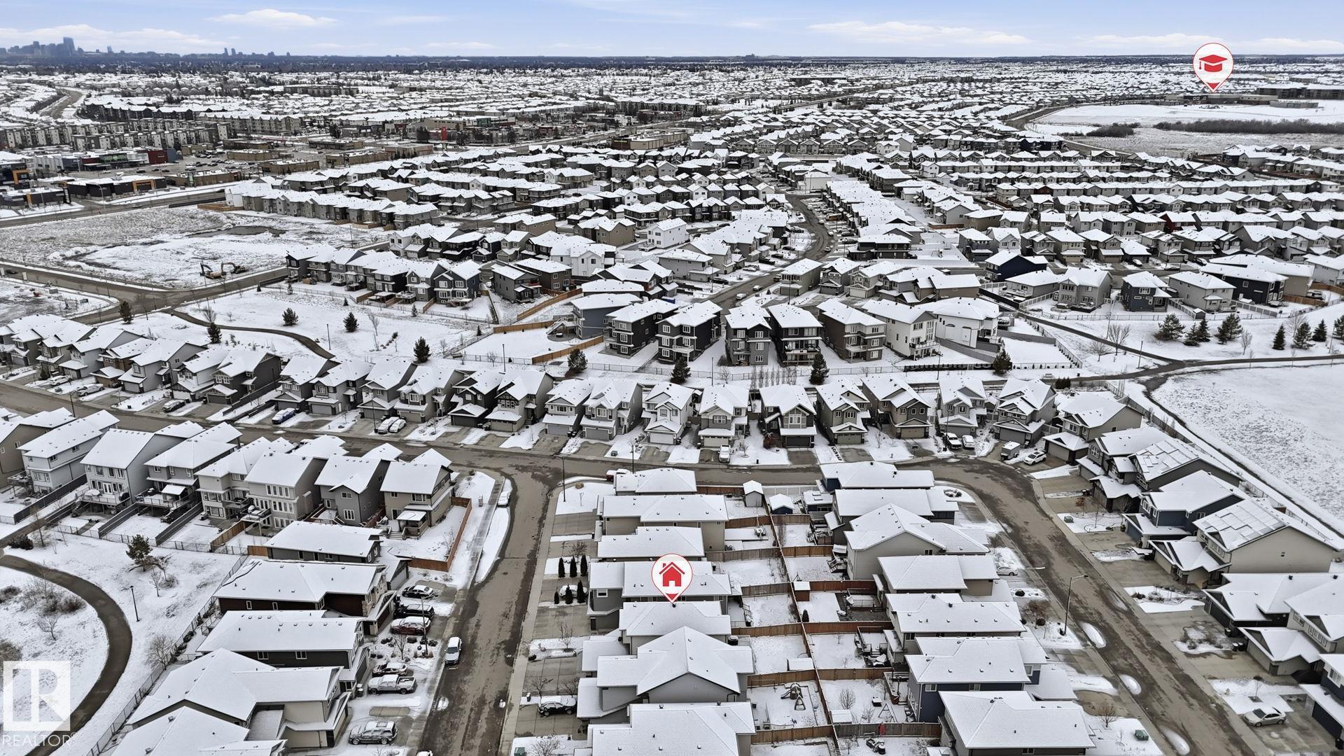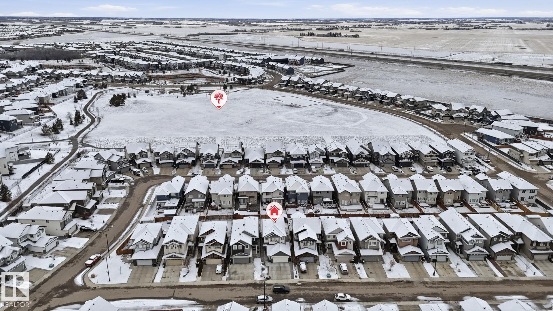 Beautiful 2-storey home in Cy Becker offering over 2400 sqft of thoughtfully designed living space and premium upgrades including A/C/, custom garage and finishes throughout. This 4 bedroom, 4 bathroom home blends style and function with a bright, open main floor featuring 9 ft ceilings, a striking stone fireplace, and seamless flow between the living, dining, and kitchen. The modern kitchen has quartz countertops, eat up island, pantry, and stainless steel appliances. Upstairs, a spacious bonus room creates the perfect setting for movie nights or a home office, alongside 3 bedrooms and 2 full baths. The king-sized primary retreat features vaulted ceilings, a walk-in closet, and ensuite. The finished basement adds a large rec room with dry bar, an additional bedroom, and full bath. Enjoy a landscaped yard with maintenance-free deck and ample green space. Upgraded heated double garage with epoxy floors, drain, water, and extended driveway. Close to parks, schools, transit & lake walking pathway & trails.