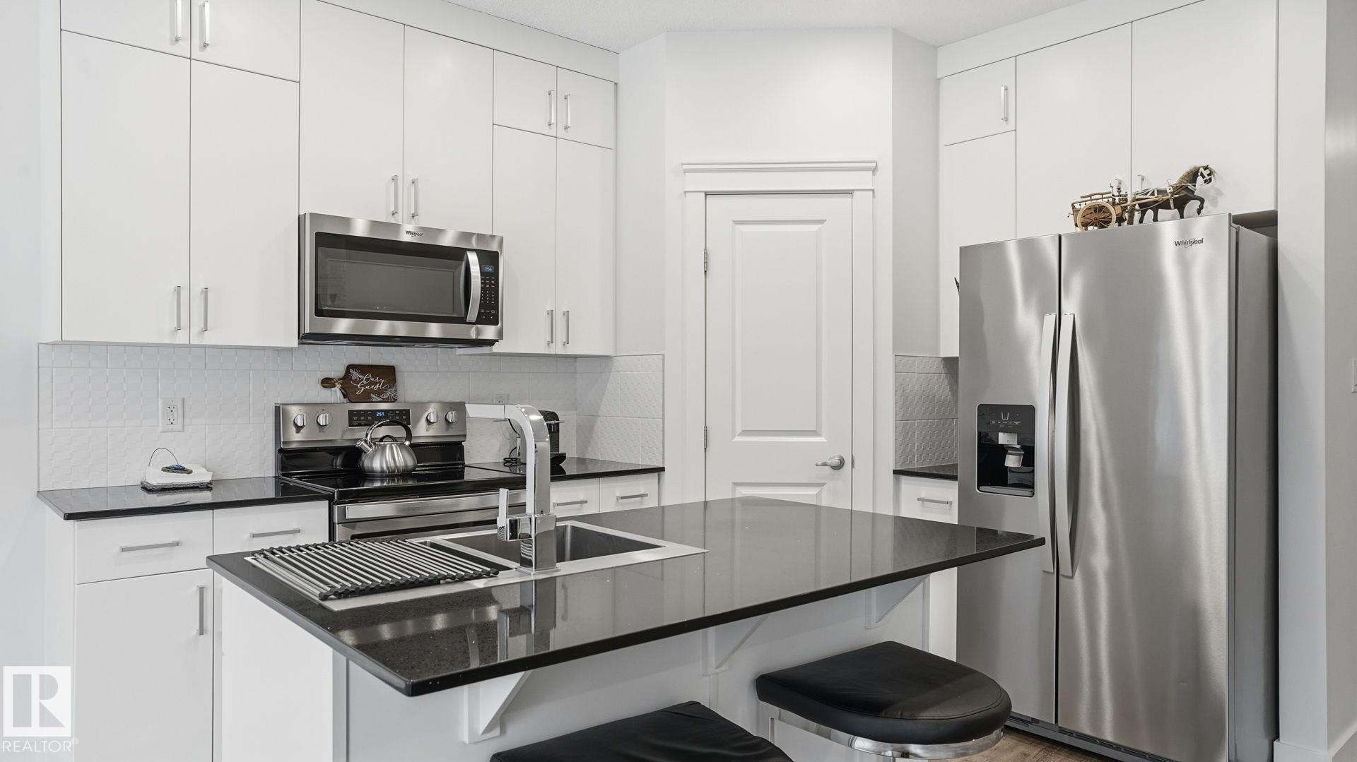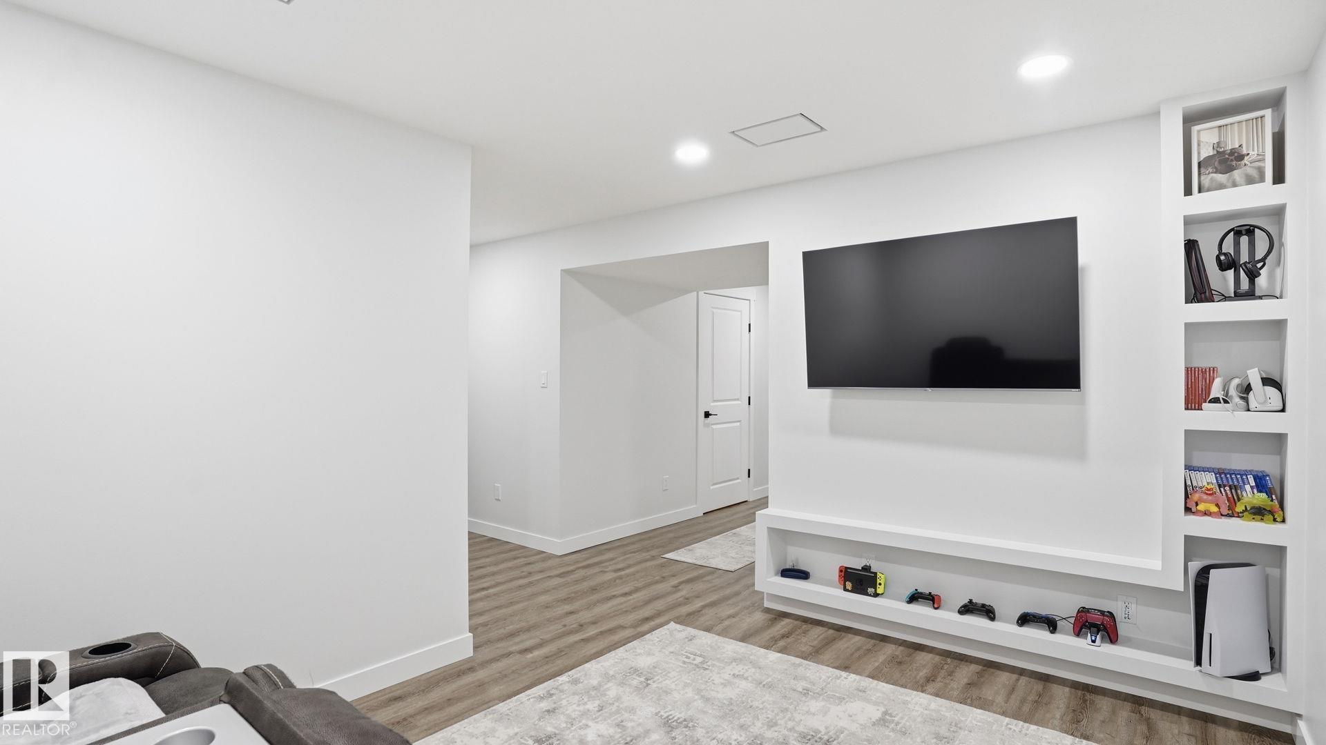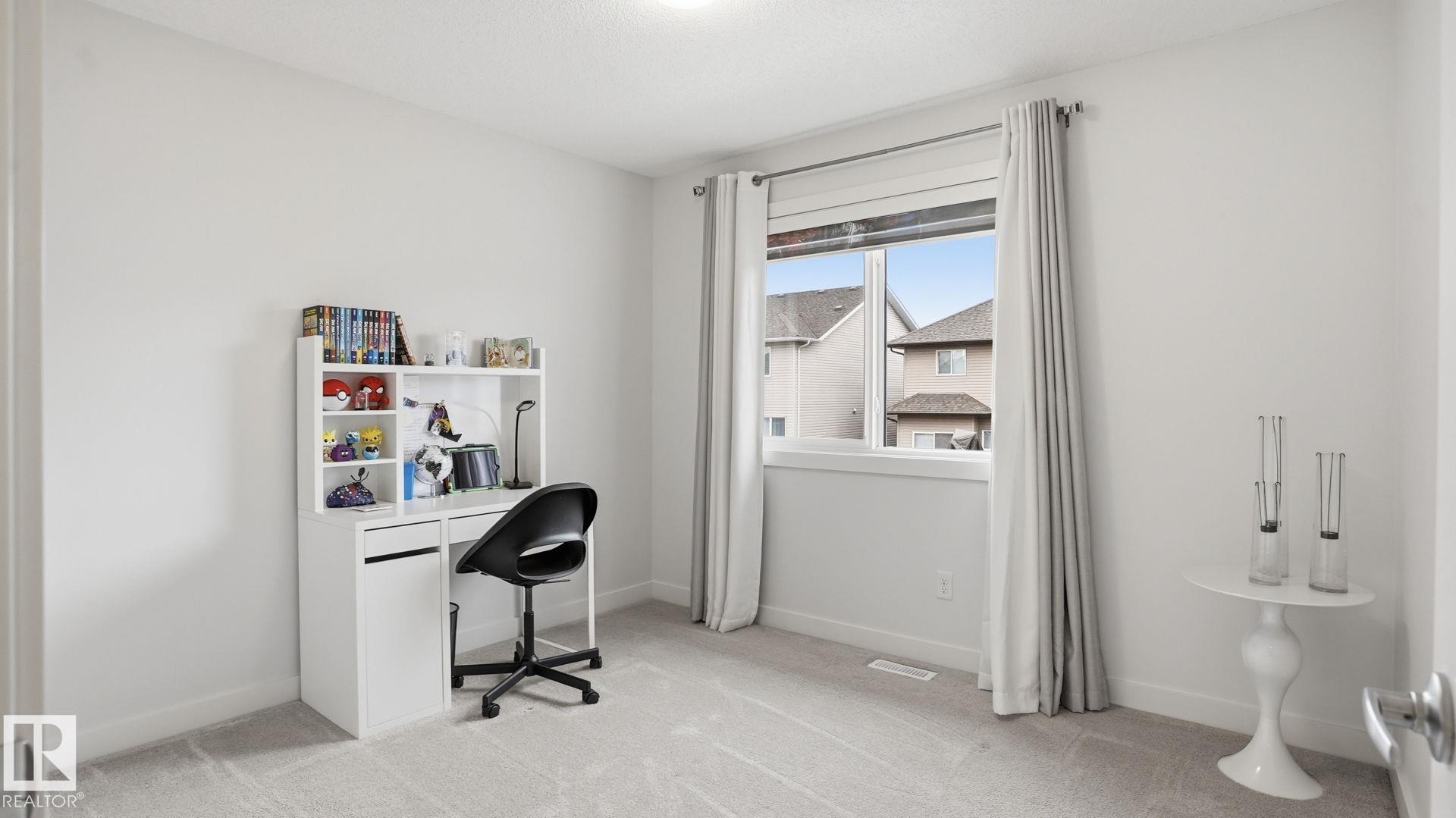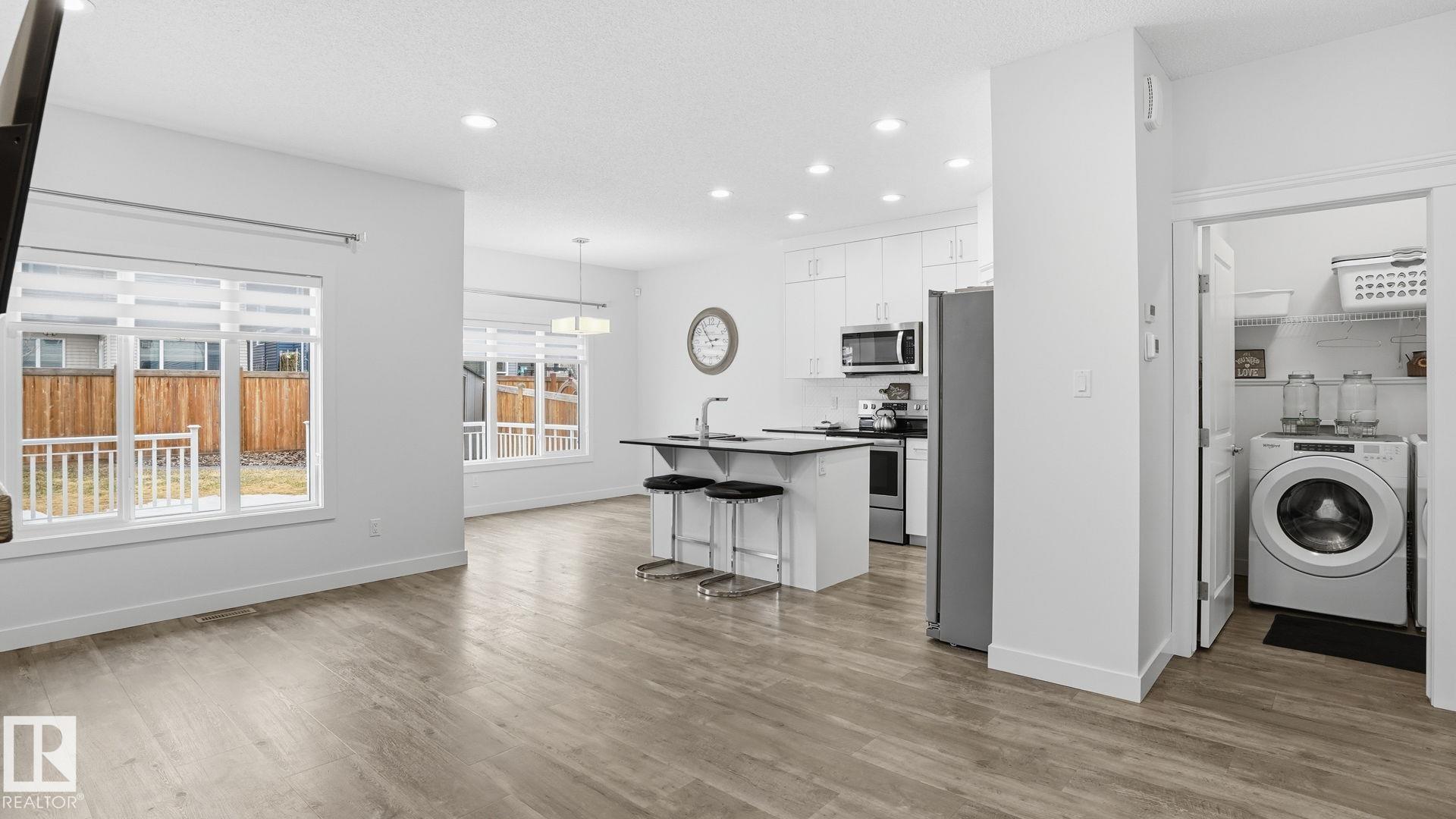 Beautiful 2-storey home in Cy Becker offering over 2400 sqft of thoughtfully designed living space and premium upgrades including A/C/, custom garage and finishes throughout. This 4 bedroom, 4 bathroom home blends style and function with a bright, open main floor featuring 9 ft ceilings, a striking stone fireplace, and seamless flow between the living, dining, and kitchen. The modern kitchen has quartz countertops, eat up island, pantry, and stainless steel appliances. Upstairs, a spacious bonus room creates the perfect setting for movie nights or a home office, alongside 3 bedrooms and 2 full baths. The king-sized primary retreat features vaulted ceilings, a walk-in closet, and ensuite. The finished basement adds a large rec room with dry bar, an additional bedroom, and full bath. Enjoy a landscaped yard with maintenance-free deck and ample green space. Upgraded heated double garage with epoxy floors, drain, water, and extended driveway. Close to parks, schools, transit & lake walking pathway & trails.