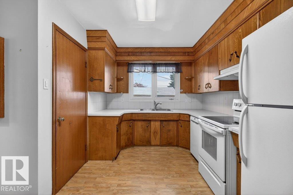 Kenilworth Classic! Fantastic bungalow ideal for retro restoration or a contemporary renovation...you choose! Large living room with woodburning stove. Formal dining room with built-in cabinet. Functional kitchen with wood cabinets. 3+1 bedroom plus 2 full baths. Bedroom 3 has been converted to main floor laundry, but could easily be restored to bedroom. Backdoor enters into grade level landing ideal for separate entry and basement suite potential. Newer vinyl siding, vinyl windows, high-eff furnace and hardwood floors are some of the upgrades in this home. Fully finished basement with rec room, bath and bedroom. Huge private lot with exposed aggregate walk, mature trees and double garage. Homes like this are becoming hard to find. This won't last long!
