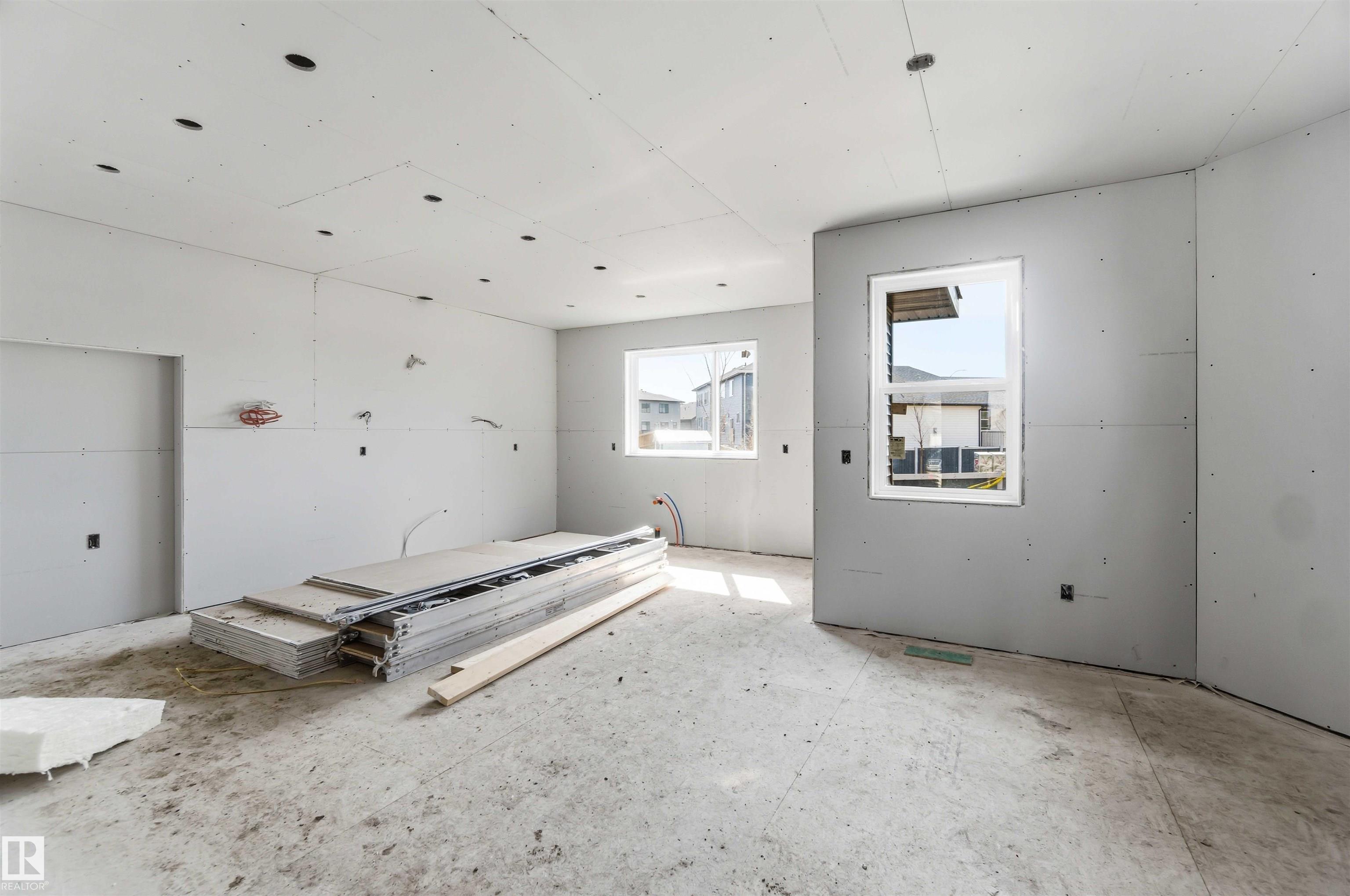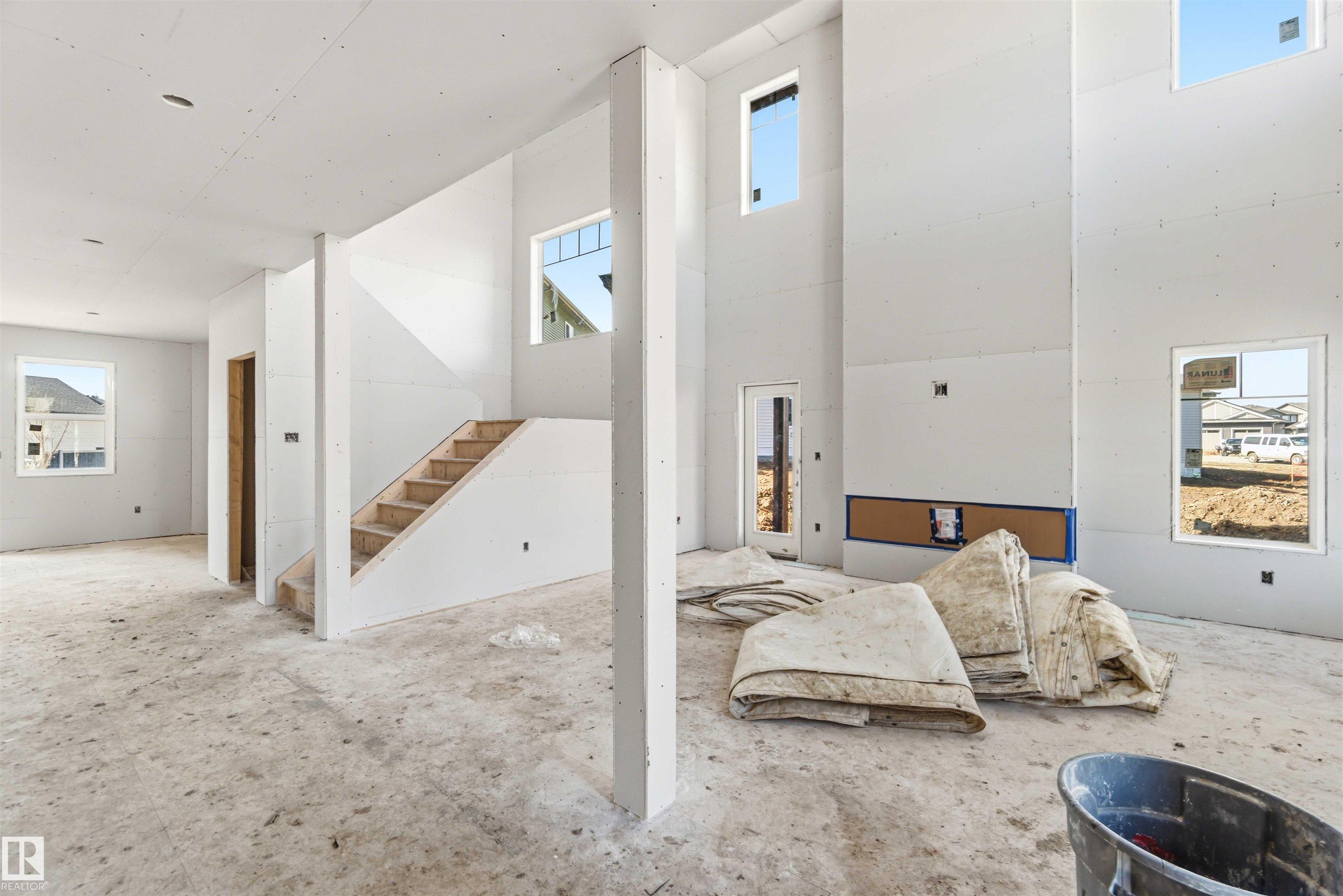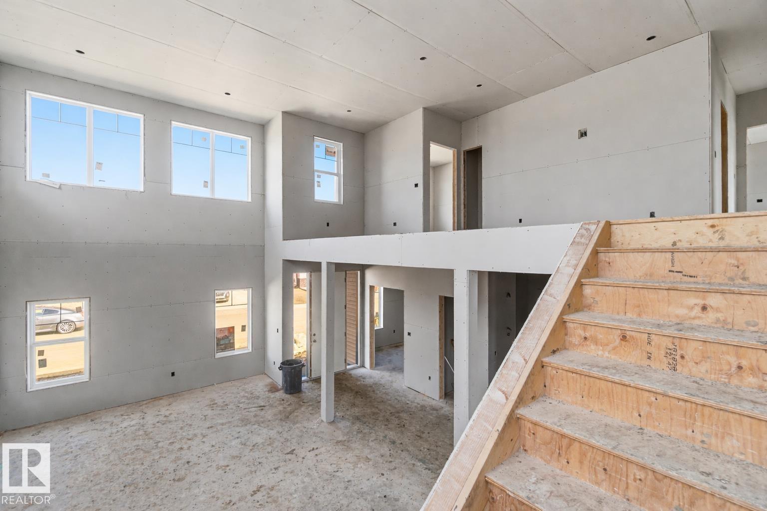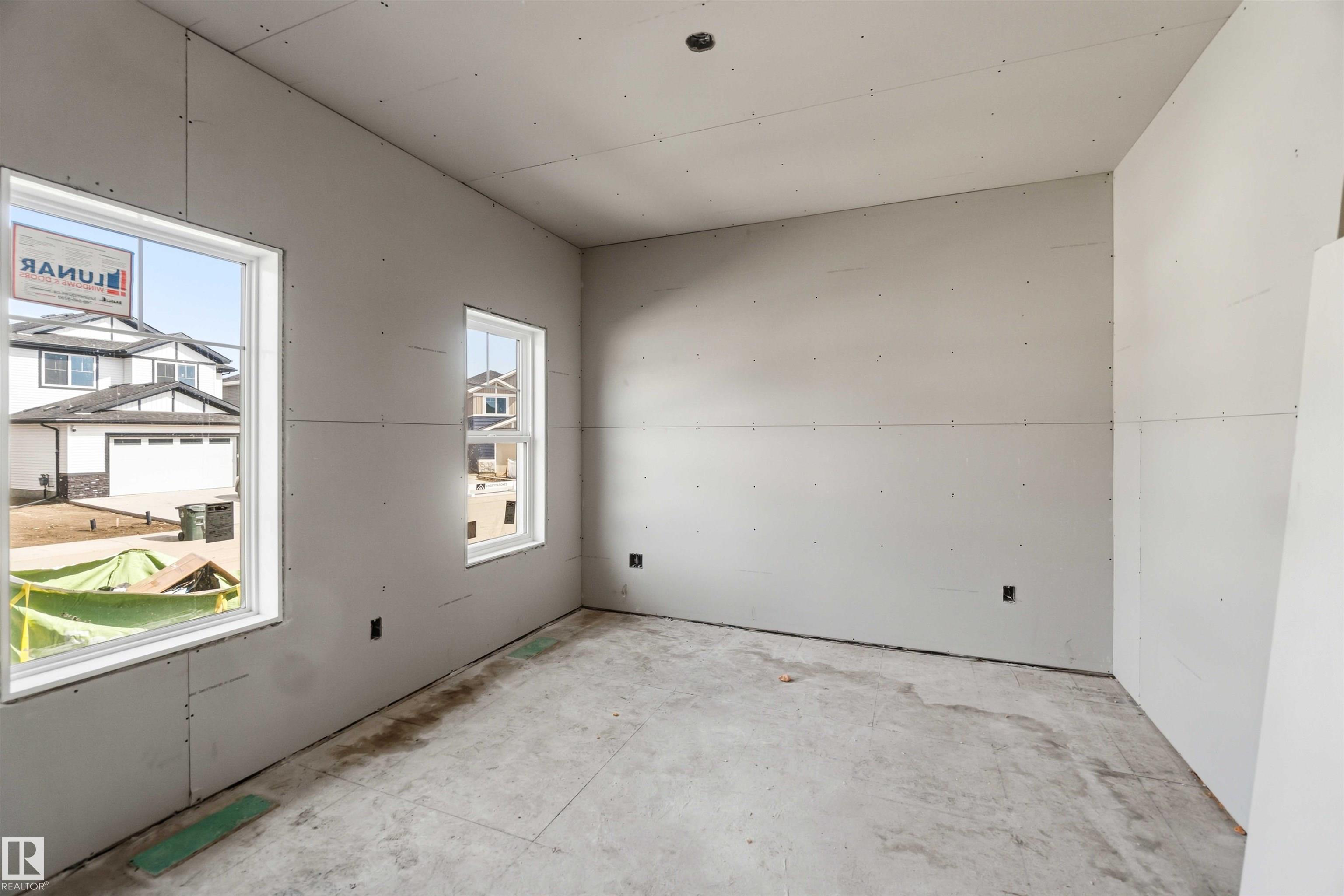 BRAND NEW! GRAND MANOR LIKE Home by local builder LCM Construction, is located on a large corner lot in Hilldowns Spruce Grove! This timeless 2,972 Sq.ft luxury 2-storey home offers presence w/ curb appeal, toasted almond & urban bronze vinyl exterior, black window & door trim, black garage doors, stamped concrete & accent stone. The 3.5 car garage has epoxy flooring, electrical panel & high ceilings for a lift. The main floor w/9 ft ceilings, LVP flooring, flex/office room, mudroom w/built-in bench, 20 ft open-to-below ballroom living room w/ feature wall & 3 sided fireplace, kitchen w/ 9.5 long quartz island, barn style sink, spice kitchen w/sink & beverage cooler, walkthrough pantry, SS built-in appliances, black fixtures & hardware. Upstairs offers an open bonus room, laundry room w/quartz countertop & sink, 3 spacious beds, & private primary bed w/ 5-piece ensuite w/ heated floor, fireplace, 7' soaker tub, enclosed toilet, & large walkthrough closet. Bonus large covered deck & separate grilling deck.