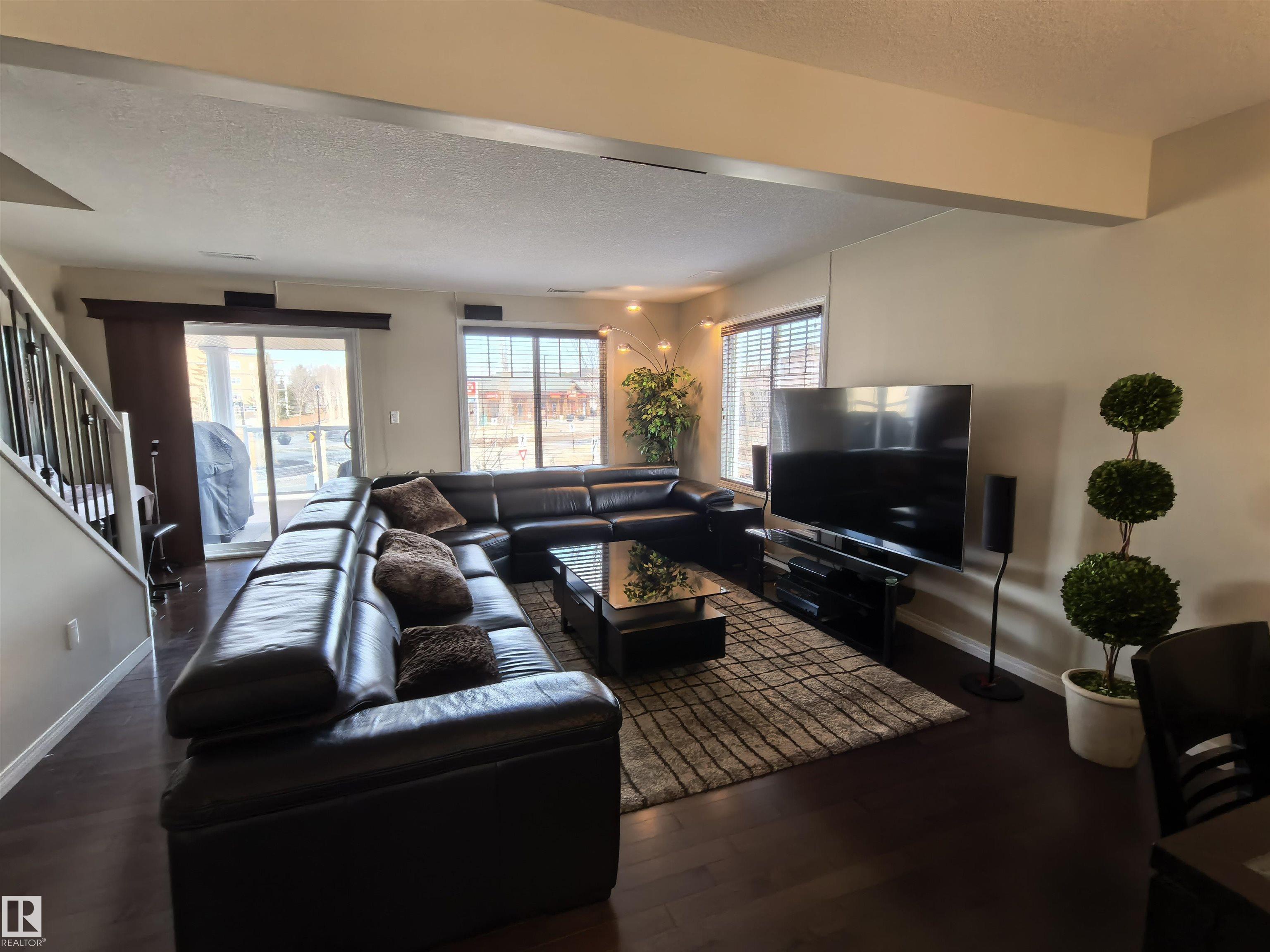Welcome to this exceptional 3-story end-unit townhouse, it offers the perfect blend of business opportunity and modern living. The main floor is fully equipped for commercial or professional use, featuring street-front access, an accessible washroom, a double attached garage for storage or private parking, its own dedicated furnace, hot water tank, and air-conditioning system?providing full independence, comfort, and efficiency for business operations. Upstairs, enjoy a beautifully appointed kitchen with granite countertops, stainless steel appliances, and a bright dining area. The spacious living room opens onto a private balcony, creating an inviting space for relaxation. A convenient 2-piece washroom completes this level. The top floor provides a peaceful retreat with a spacious primary suite, two additional bedrooms, a full bathroom, and upstairs laundry for added convenience. A rare chance to live, work, and thrive in one versatile property.