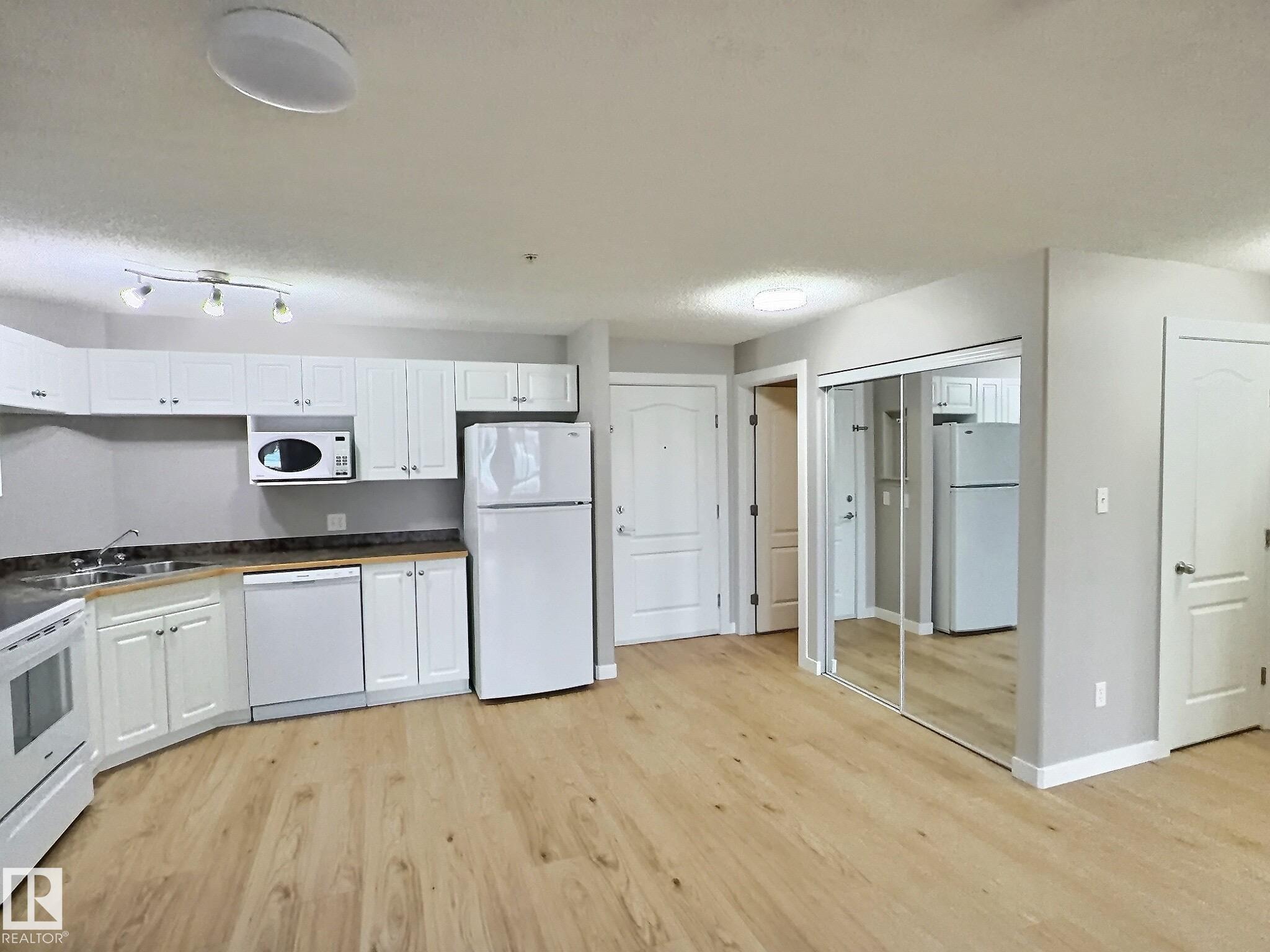 QUICK POSSESSION!! Live in one of West Edmonton?s sought-after communities, The Hamptons. This beautifully renovated 2 bedroom, 2 bathroom MAIN floor condo is LIKE NEW with brand new appliances, fresh paint, new flooring- EVERYTHING DONE! Unit is located close to the main doors for convenience. Inside, you?ll find a bright open-concept layout with a spacious living room and large windows bringing in plenty of natural light. Both bedrooms are generously sized, including a primary suite with its own full ensuite with a walkthrough closet. Enjoy the ease of in-suite laundry with a massive storage room, TWO titled parking stalls and a well kept common area. Location is close to public transportation, steps from amenities like grocery shops and restaurants and quick access off the Henday and Whitemud making this an easy to live in or rent property!
