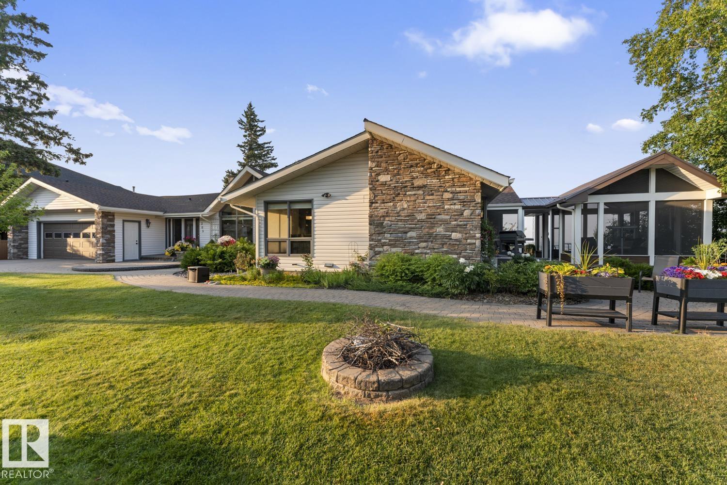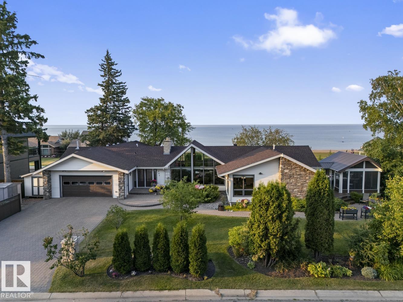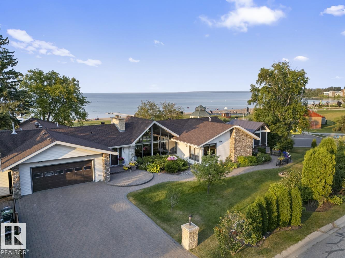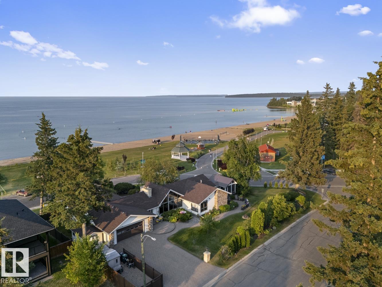 A landmark Cold Lake Estate set on 2 prime lots with panoramic lake views from every room. This 2750+ sf architecturally designed bungalow features a sunken living room with stunning stone wood fireplace, vaulted ceiling, formal dining room, a brand new kitchen wing, and 4 bedrooms on the main. Luxurious bathrooms - uncompromising quality throughout. With thoughtful comfort and elegance in mind, the home has AC, premium flooring, and a multitude of options for entertaining, as natural light floods the home. Flex space has a tranquil lakeview room with seamless flow to a heated ,screened in gazebo - perfect for relaxing or entertaining year-round. Outdoors, enjoy a meticulously landscaped yard with underground irrigation, a robotic lawnmower, premium composite decking and hottub complete with hidden storage for outdoor items. Lower level has a theatre room. Plenty of parking on the paving stone driveway. A rare opportunity to own one of Cold Lake's most distinguished homes - full list of extras available.
