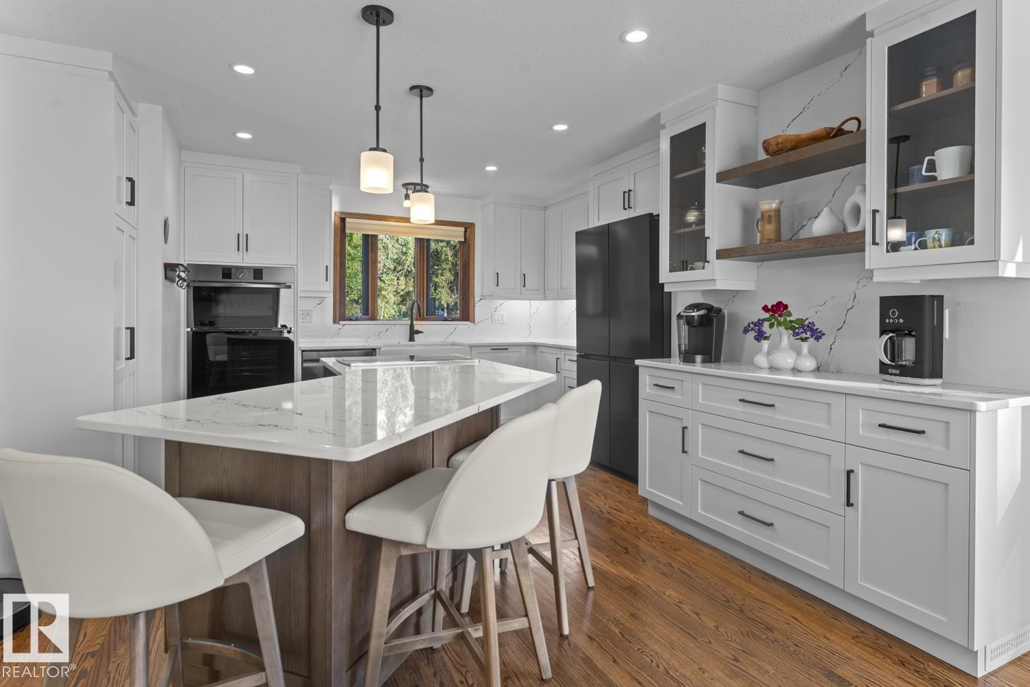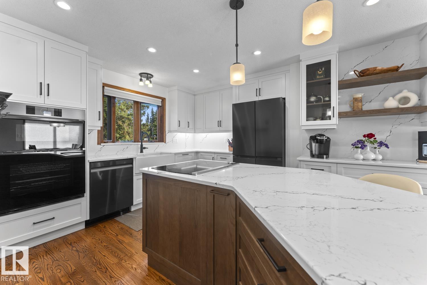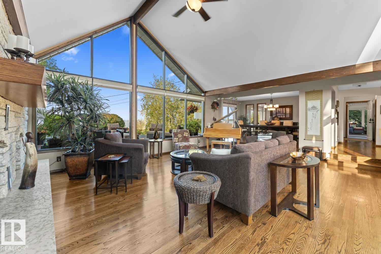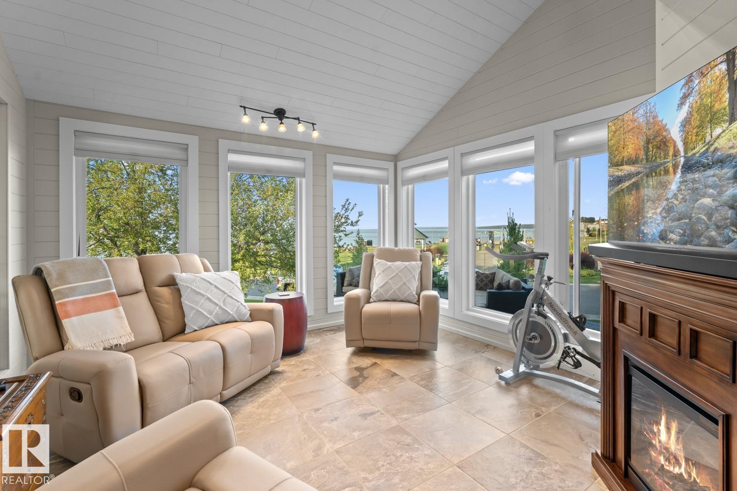 A landmark Cold Lake Estate set on 2 prime lots with panoramic lake views from every room. This 2750+ sf architecturally designed bungalow features a sunken living room with stunning stone wood fireplace, vaulted ceiling, formal dining room, a brand new kitchen wing, and 4 bedrooms on the main. Luxurious bathrooms - uncompromising quality throughout. With thoughtful comfort and elegance in mind, the home has AC, premium flooring, and a multitude of options for entertaining, as natural light floods the home. Flex space has a tranquil lakeview room with seamless flow to a heated ,screened in gazebo - perfect for relaxing or entertaining year-round. Outdoors, enjoy a meticulously landscaped yard with underground irrigation, a robotic lawnmower, premium composite decking and hottub complete with hidden storage for outdoor items. Lower level has a theatre room. Plenty of parking on the paving stone driveway. A rare opportunity to own one of Cold Lake's most distinguished homes - full list of extras available.