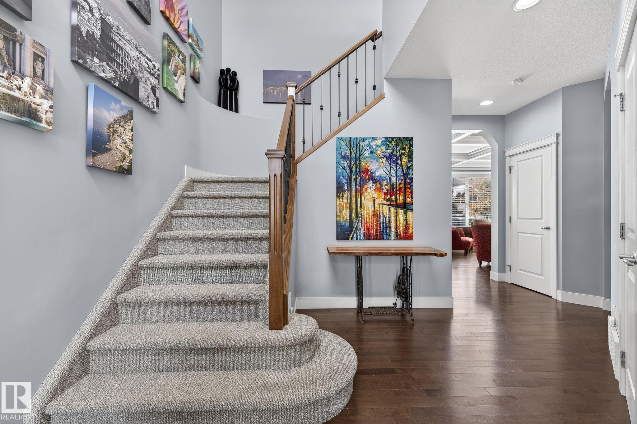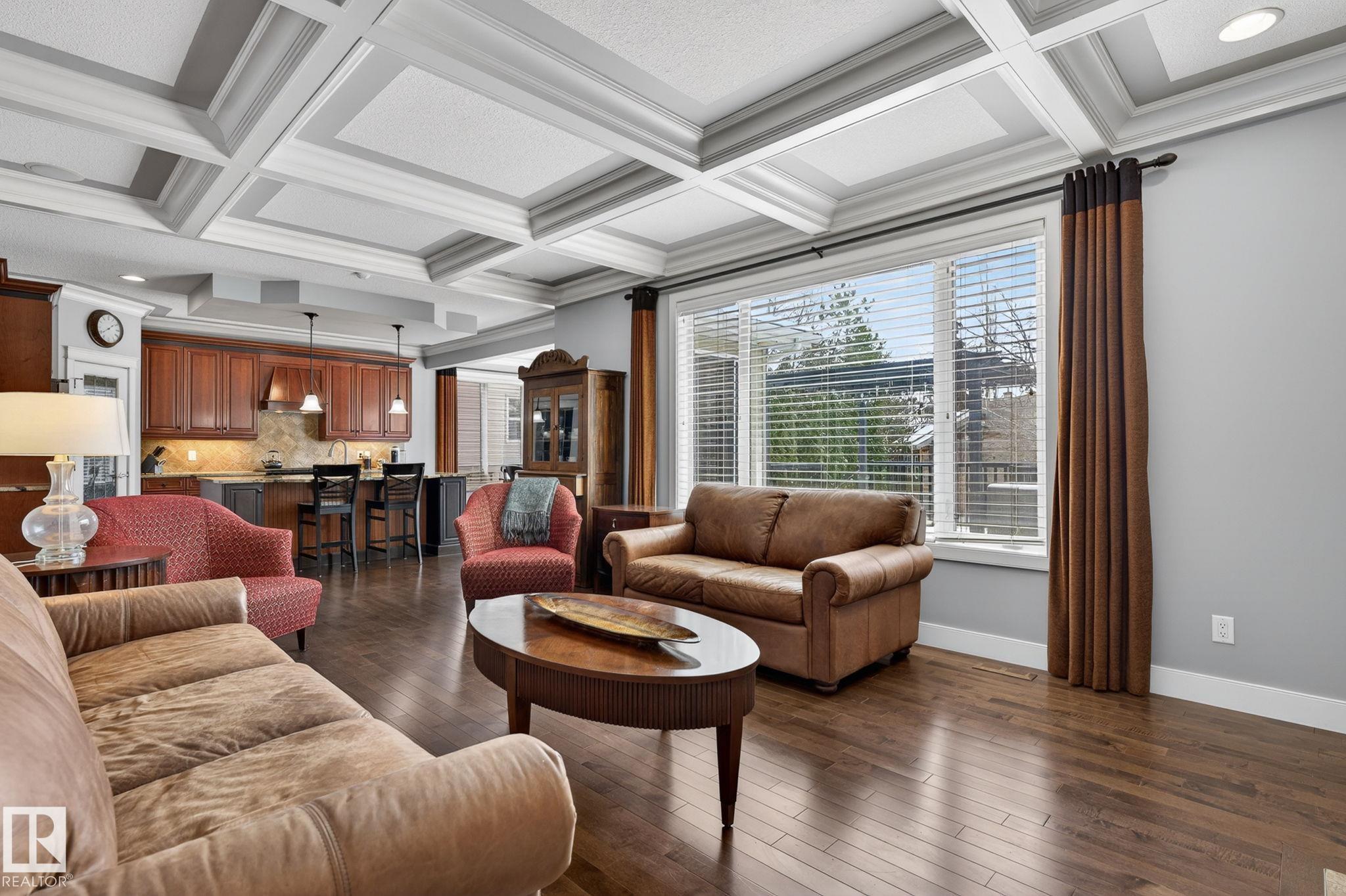 Custom-built Executive 2 STOREY offers elegance, and magnificent living spaces. Built on a Large Lot with a Heated Triple Car Garage. The Main Floor hosts a Large Den, Soaring High Ceilings, Large living space with its warm open floor plan is imbued with natural light. The kitchen outstanding from every angle, showcases tasteful finishes such as granite counters, custom cabinetry with Stainless Steel Appliance?s. Island with breakfast bar. The Open Living space with Coffered ceilings warmed by a gorgeous fireplace. The Upper Level feature?s 3 bedrooms, 2 Full Bathrooms & a Large Bonus Room. The Master retreat with high ceilings showcases a 3 Tier Fireplace, luxurious 5 piece ensuite, soaker tub, his and her sinks & 2 walk-in closets. This beautifully finished basement offers the perfect blend of comfort and entertainment, custom wet bar with rich cabinetry, perfect for entertaining in style. Bedroom, and spa like bath. Elegant wainscoting and detailed finishes add a touch of sophistication throughout.