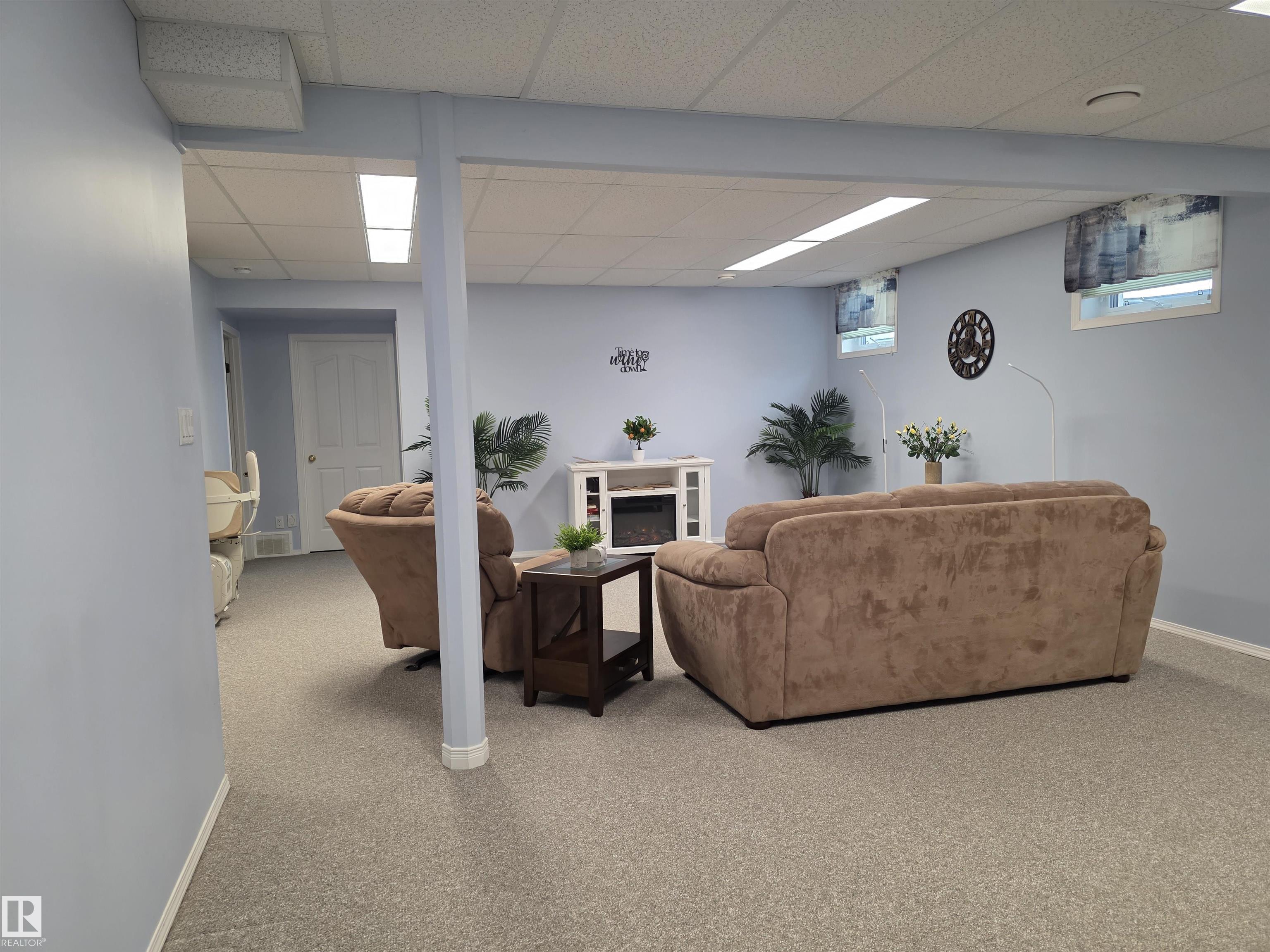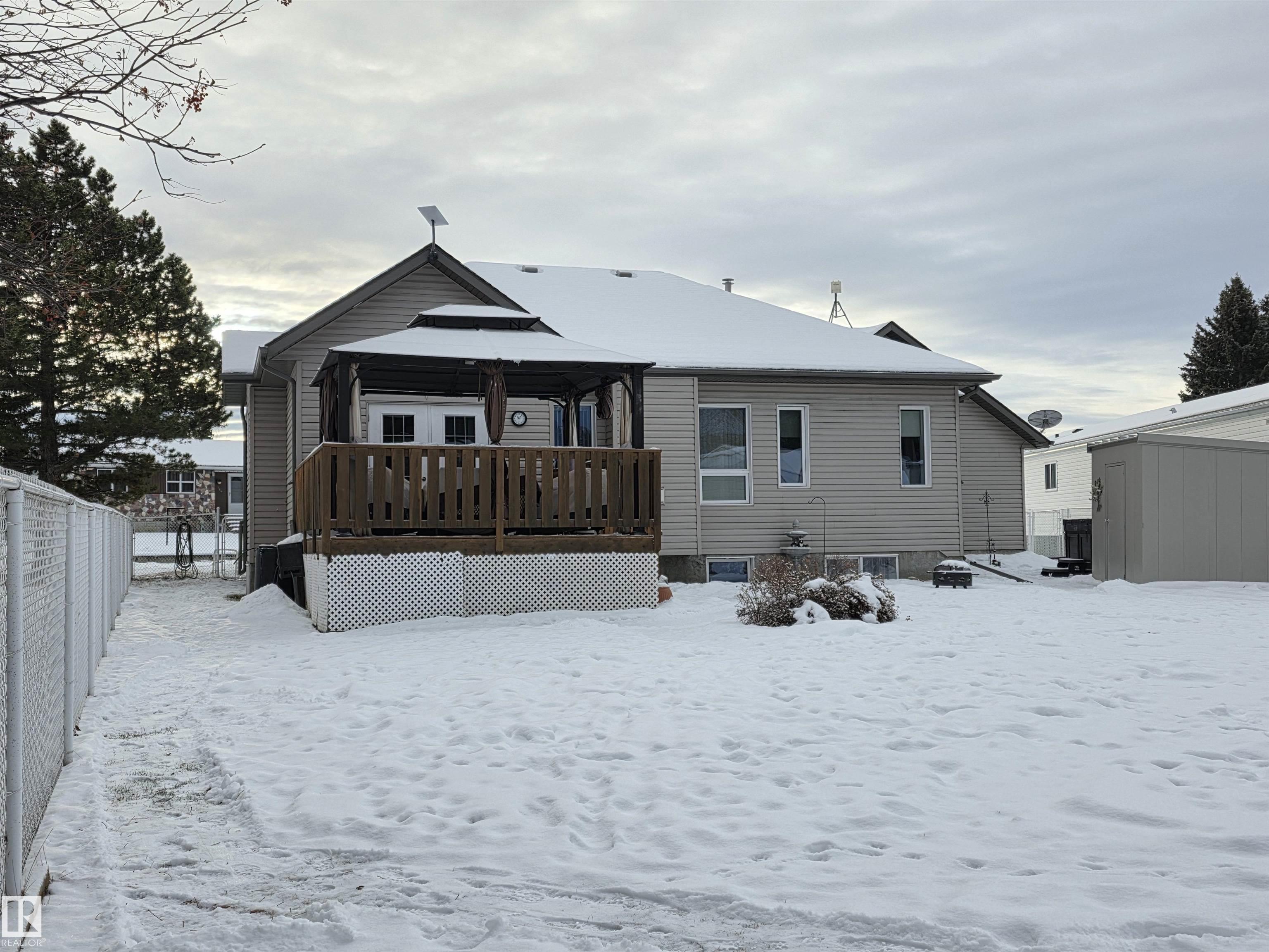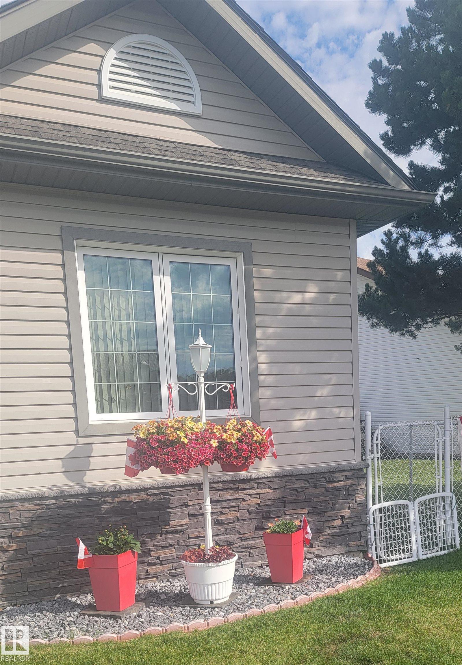 Welcome to this inviting 4-bedroom, 3-bathroom bungalow built in 2003. The main floor boasts a bright kitchen that flows into the dining area, along with a vaulted living room featuring a cozy gas fireplace. Two bedrooms are located on this level: one includes a convenient 3-piece ensuite with a shower, while the other has access to a dual-access 4 piece bathroom. This level has laundry in a closet. The insulated concrete form basement expands your living space, offering two additional bedrooms, a three-piece bath with a shower, a generous family room, a large storage room, and a utility room. The double attached garage, with concrete driveway, is equipped with a wheelchair lift for easy accessibility. Step outside to enjoy the landscaped private, fenced, backyard, with hot tub that has a lift. There is spacious deck complete with gazebo. Located close to schools and all the amenities that Breton offers. This home provides plenty of room for family and friends to gather and create lasting memories.