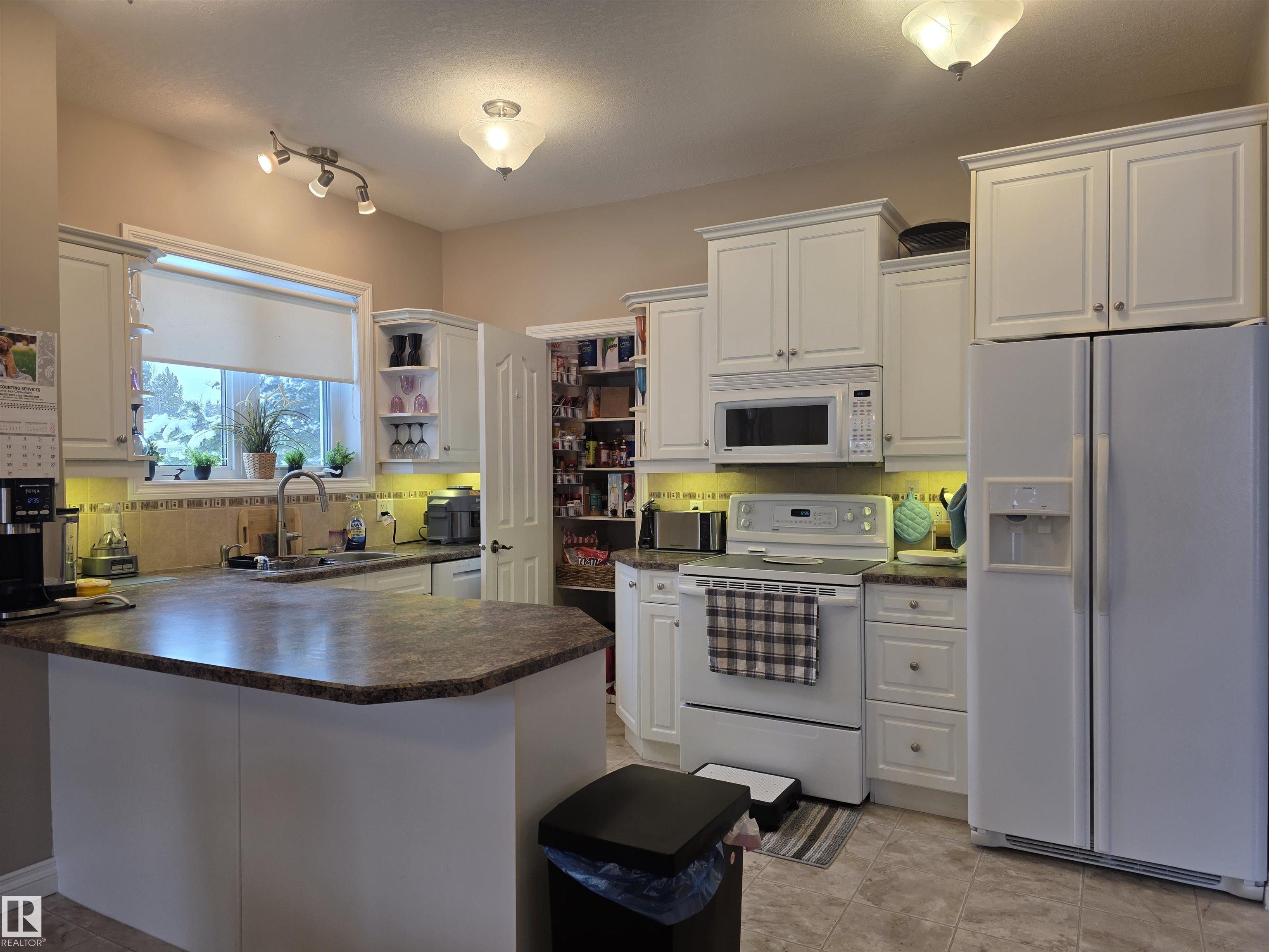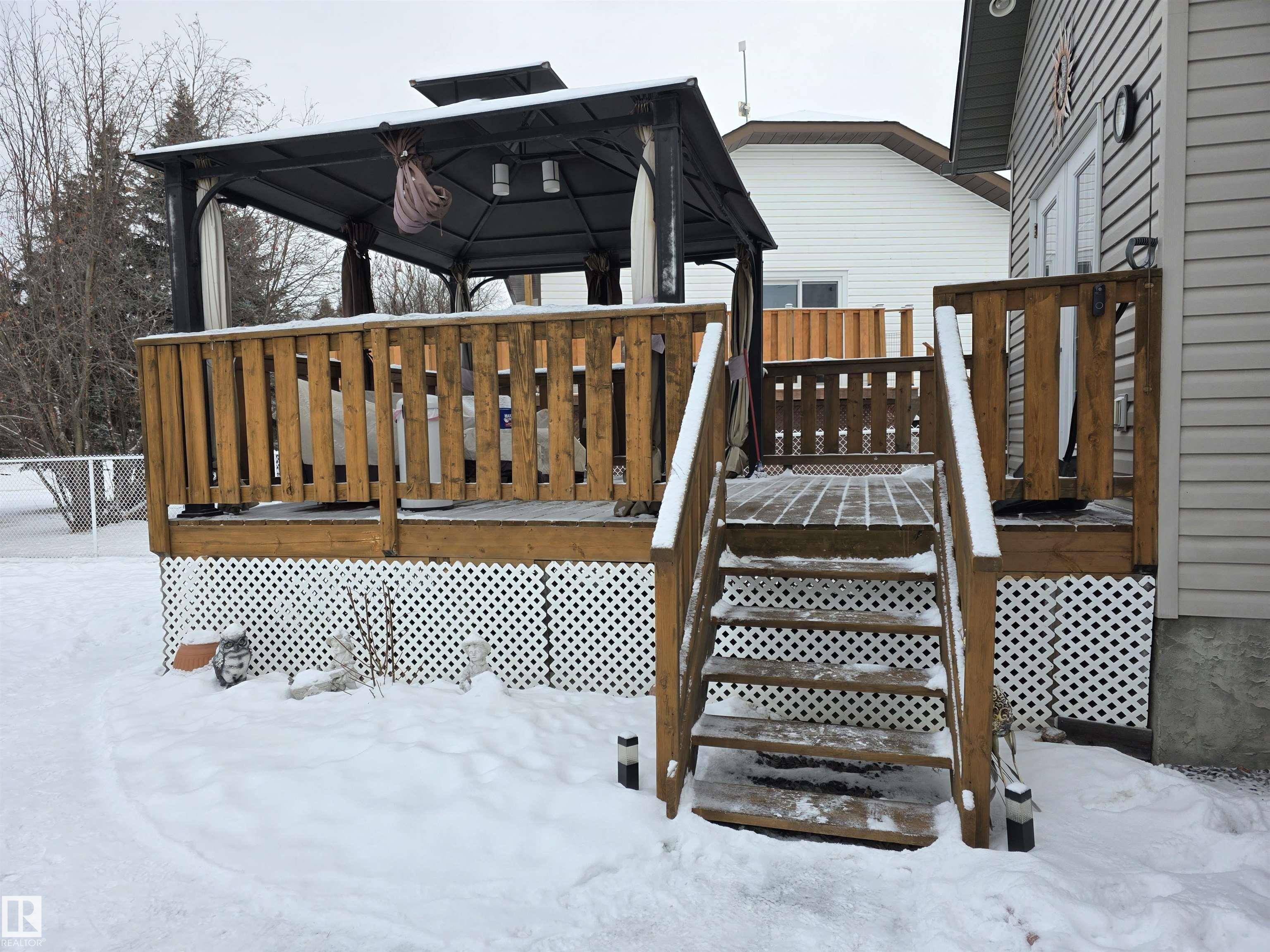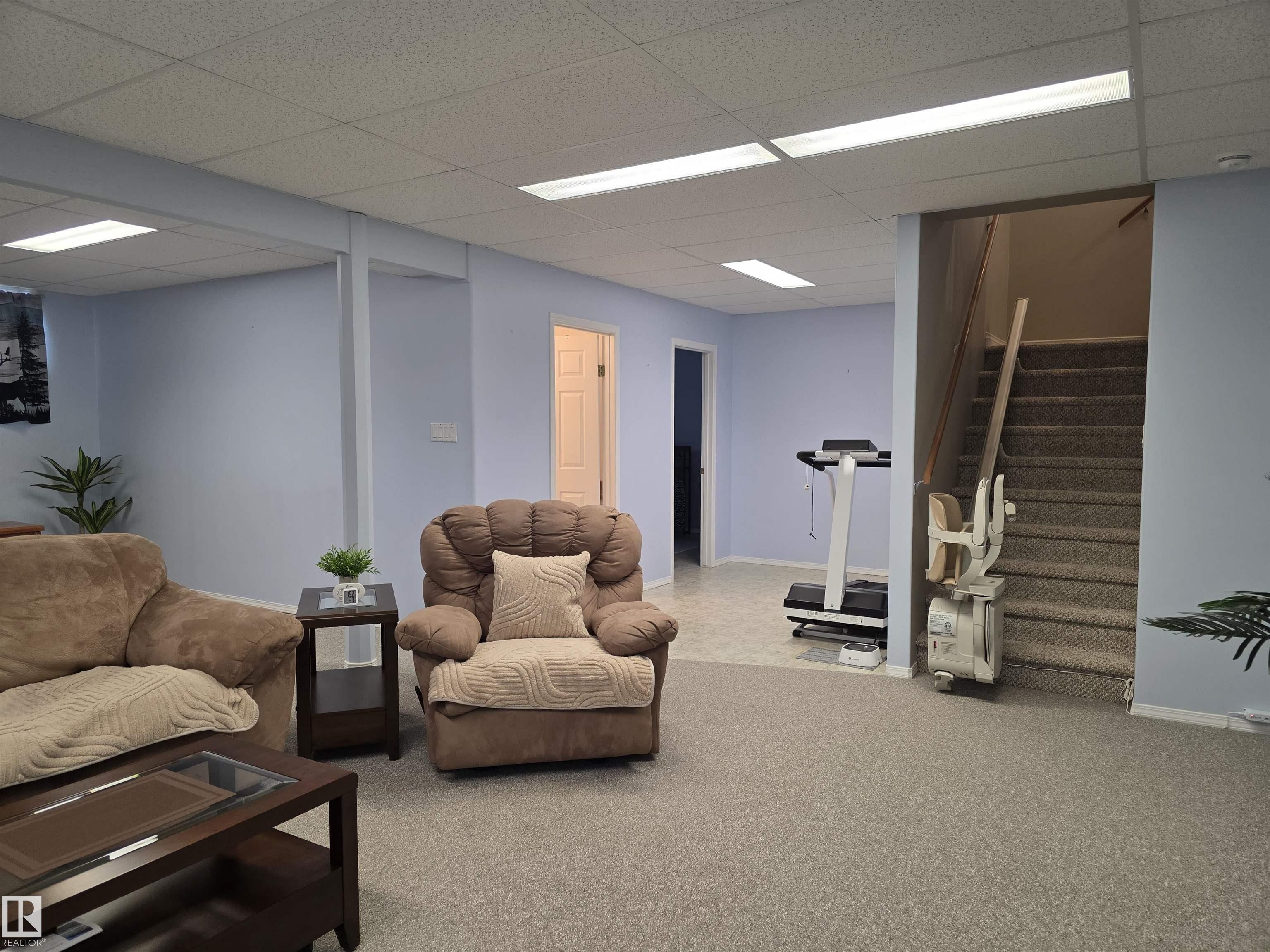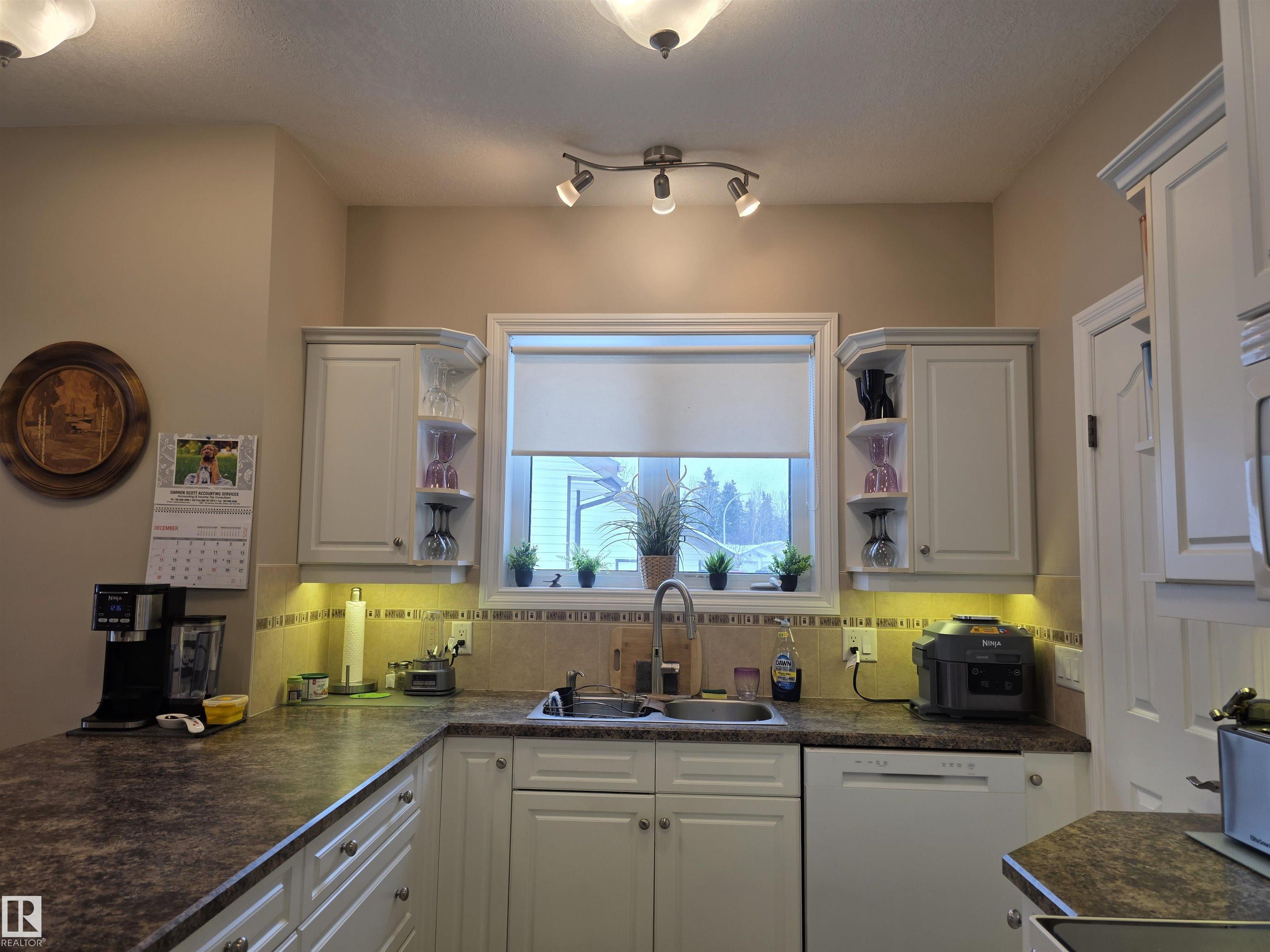 Welcome to this inviting 4-bedroom, 3-bathroom bungalow built in 2003. The main floor boasts a bright kitchen that flows into the dining area, along with a vaulted living room featuring a cozy gas fireplace. Two bedrooms are located on this level: one includes a convenient 3-piece ensuite with a shower, while the other has access to a dual-access 4 piece bathroom. This level has laundry in a closet. The insulated concrete form basement expands your living space, offering two additional bedrooms, a three-piece bath with a shower, a generous family room, a large storage room, and a utility room. The double attached garage, with concrete driveway, is equipped with a wheelchair lift for easy accessibility. Step outside to enjoy the landscaped private, fenced, backyard, with hot tub that has a lift. There is spacious deck complete with gazebo. Located close to schools and all the amenities that Breton offers. This home provides plenty of room for family and friends to gather and create lasting memories.